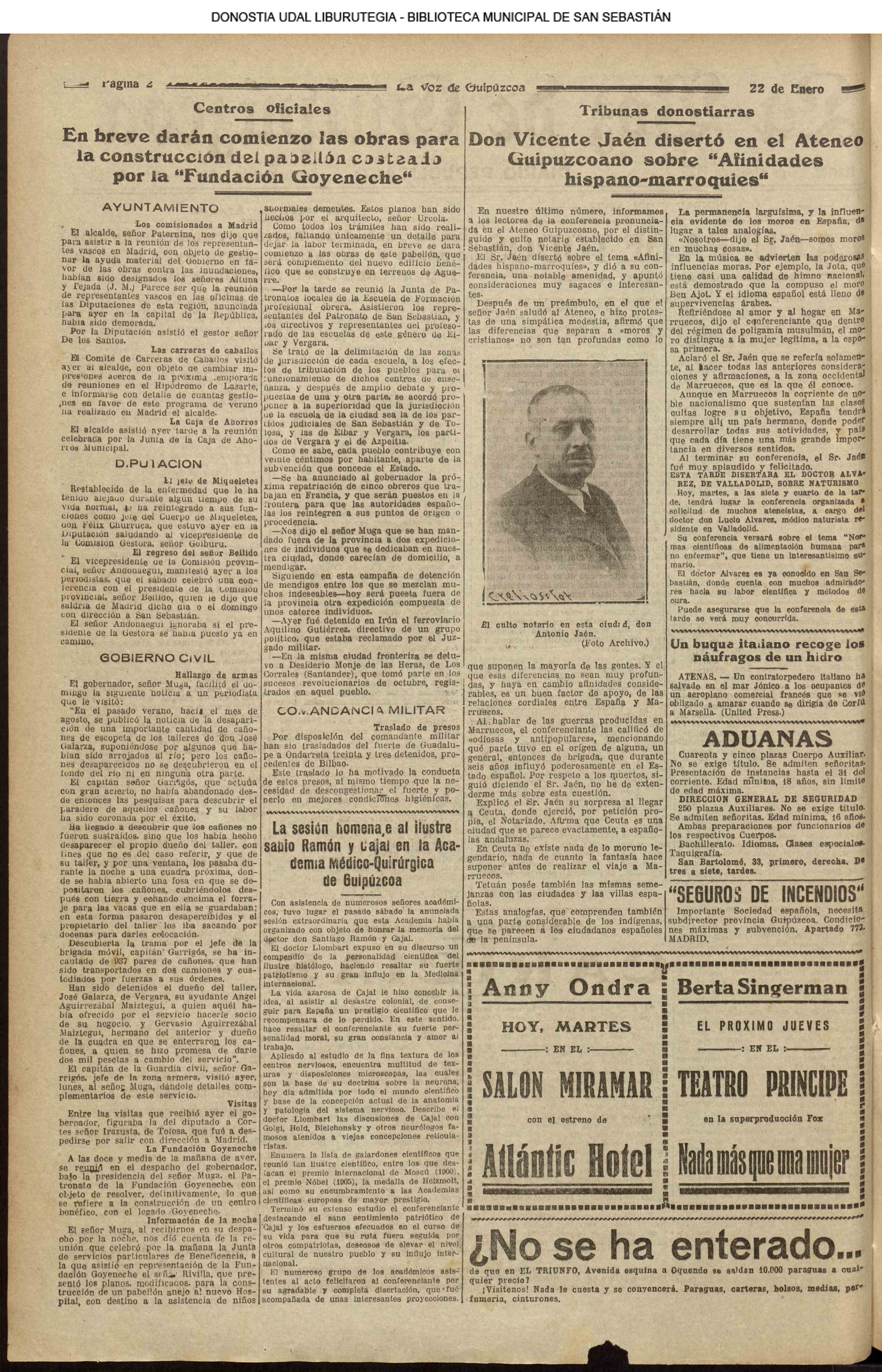 (1923) Entrega al Ayuntamiento y apertura al público de la biblioteca del duque de Mandas.(La Voz de Guipúzcoa)