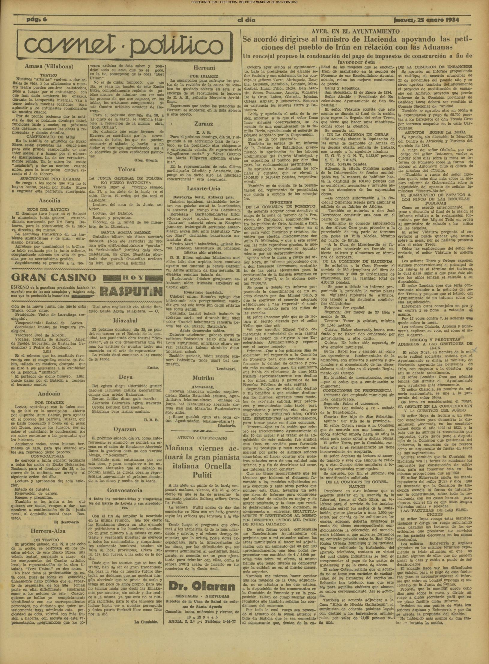 (1926) En la Academia médico-quirúrgica diserta el Dr. Uzcanga '(don Agustín), acerca de "La analgesia en el parto normal " ; tomando parte en la discusión sus colegas señores Arrillaga, Oreja, Ayestarán, Bergareche y Usandizaga.