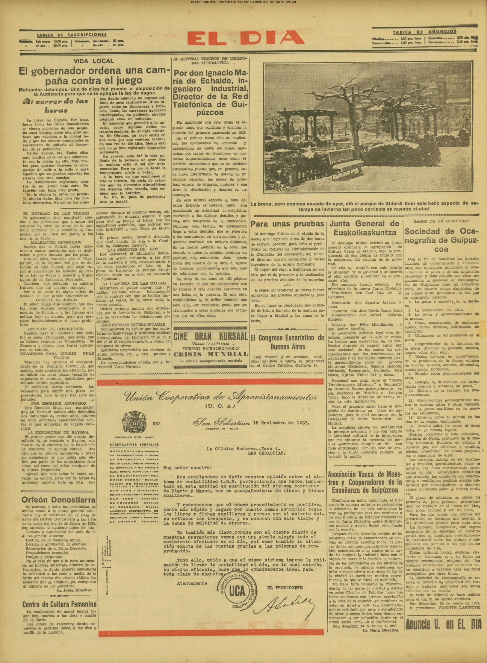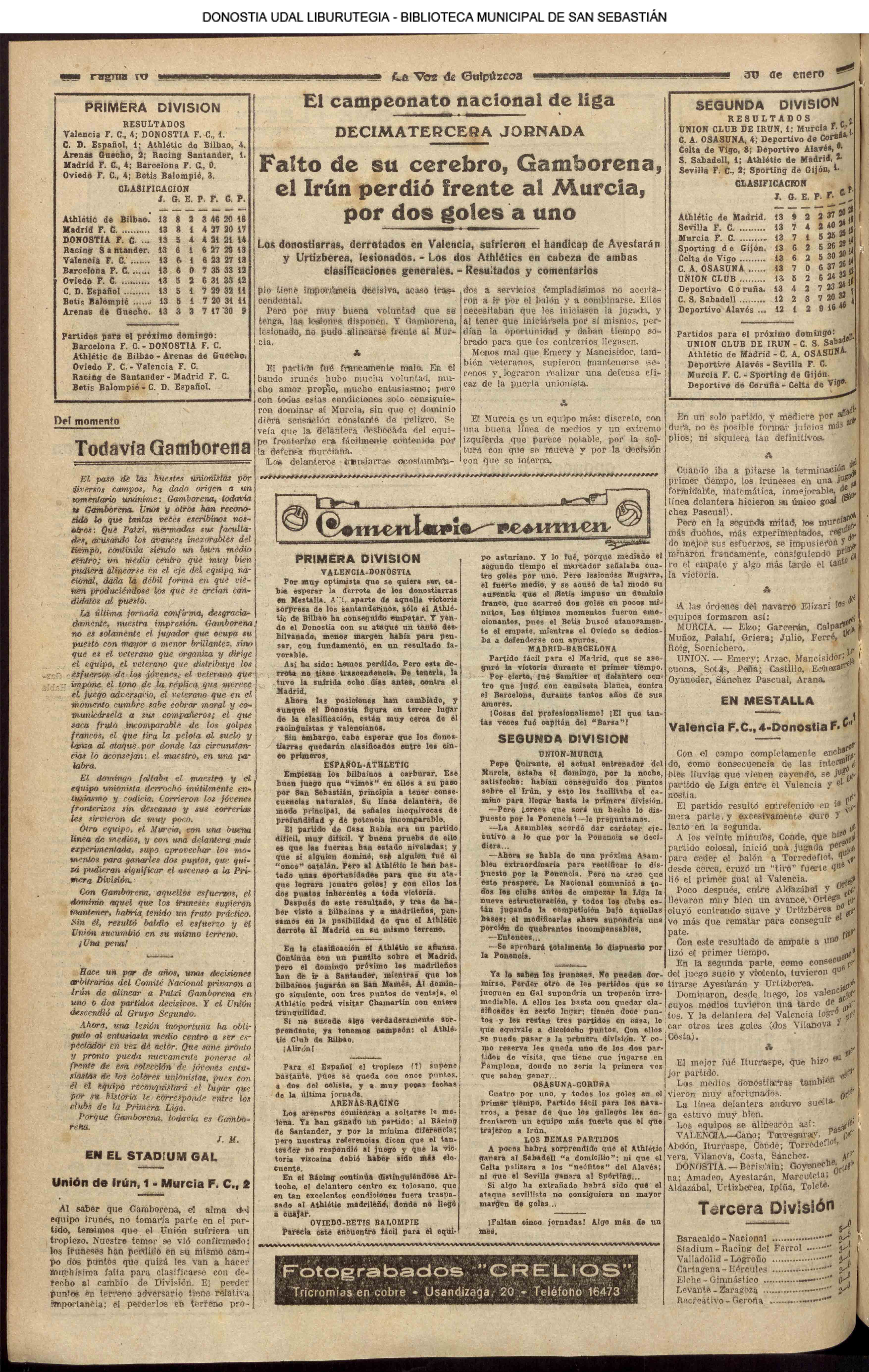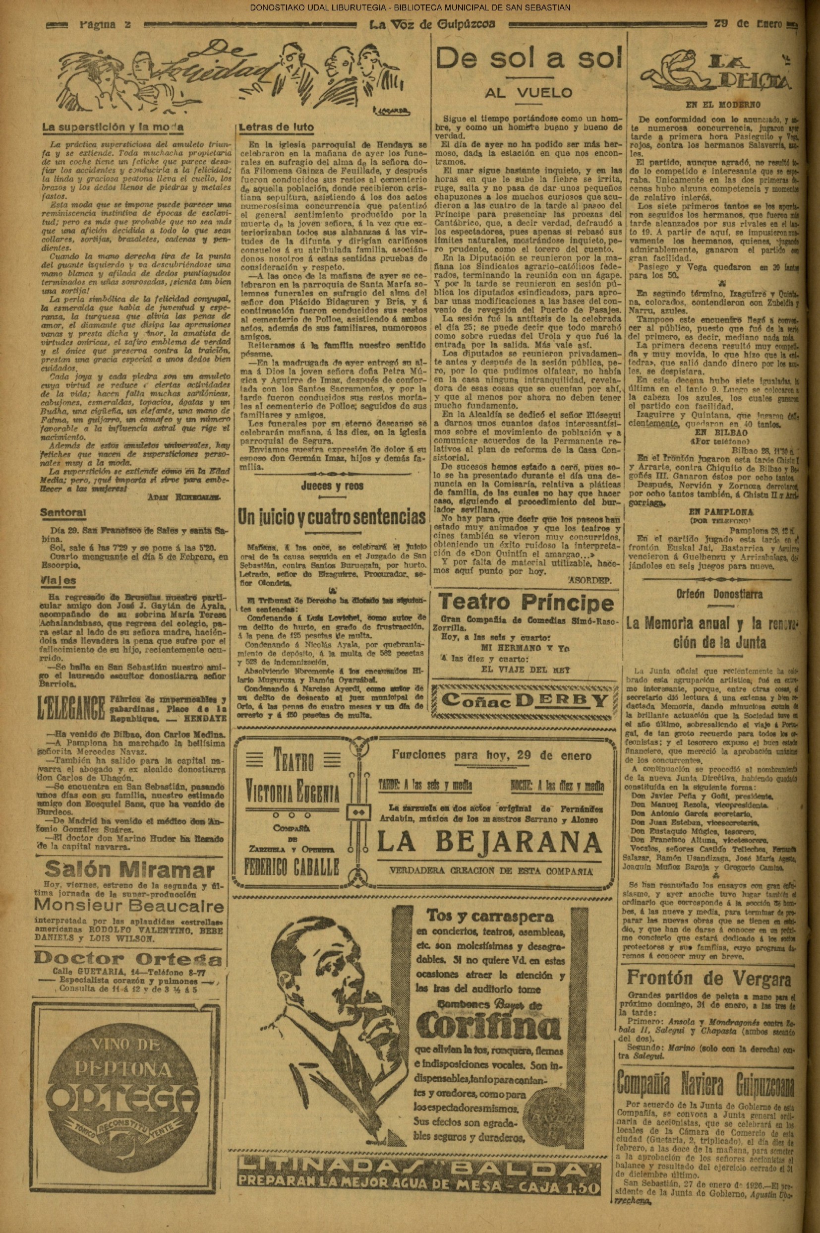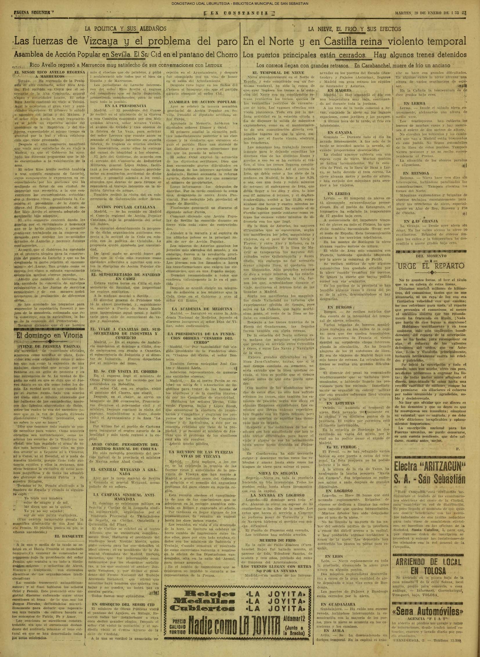 (La Voz de Guipúzcoa/cont)(El Pueblo Vasco/cont)(El Pais Vasco)(La Constancia) (1932) SESIÓN DE LA DIPUTACIÓN (La Voz de Guipúzcoa)(El Pueblo Vasco)(El Día)(La Constancia) (1934) ASILO DE ZORROAGA - Comida extraordinaria servida a los asilados por las cigarreras donostiarras (La Voz de Guipúzcoa)(El Pueblo Vasco)(El Día)(La Constancia) # VALENCIA (4-1) DONOSTIA (La Voz de Guipúzcoa)(El Pueblo Vasco)(El Día)(La Constancia) (1935) TEMPORAL DE LLUVIA, VIENTO, GRANIZO Y NIEVE (fotorreportaje) (La Voz de Guipúzcoa)(El Pueblo Vasco)(El Día/foto)(La Constancia)