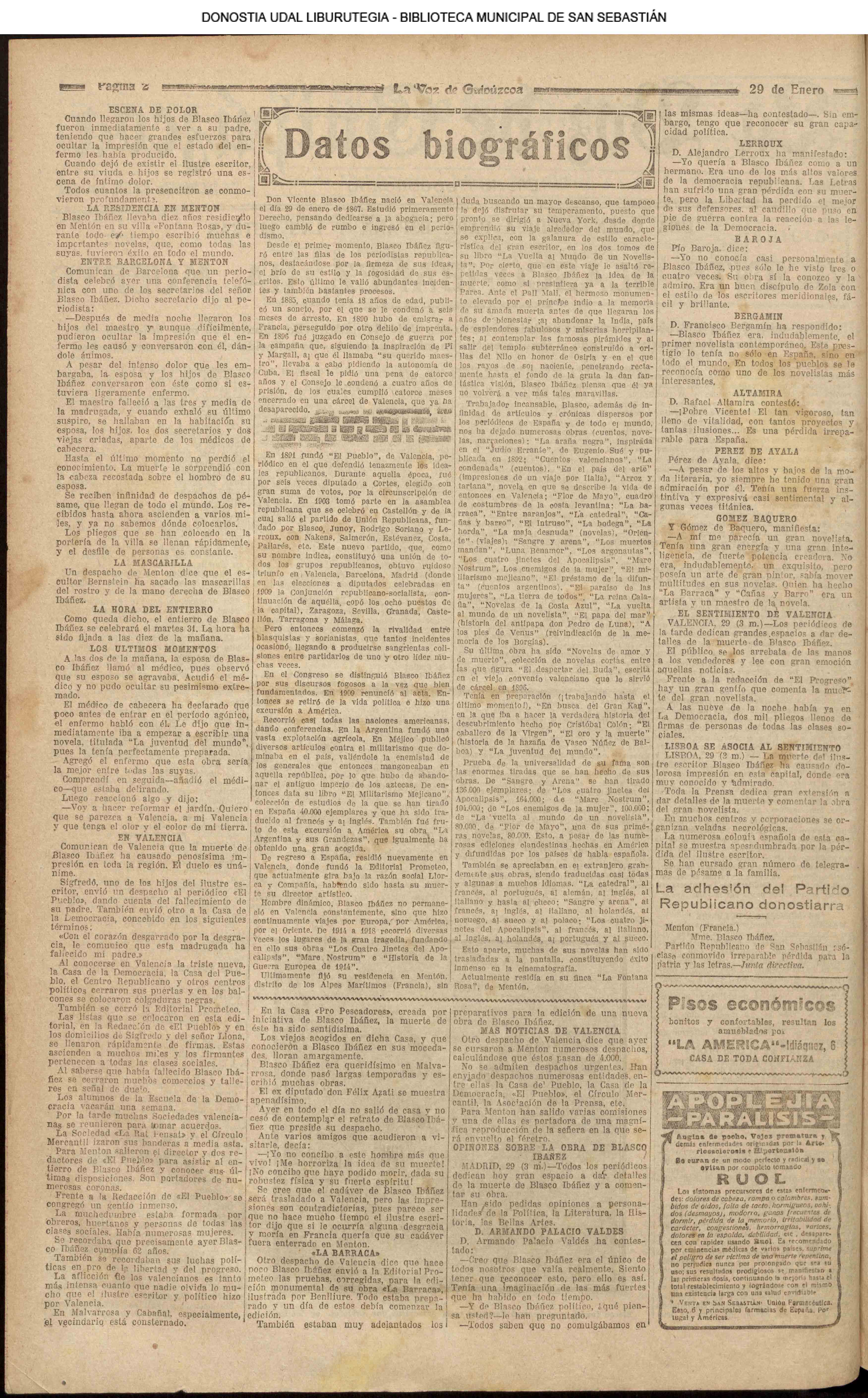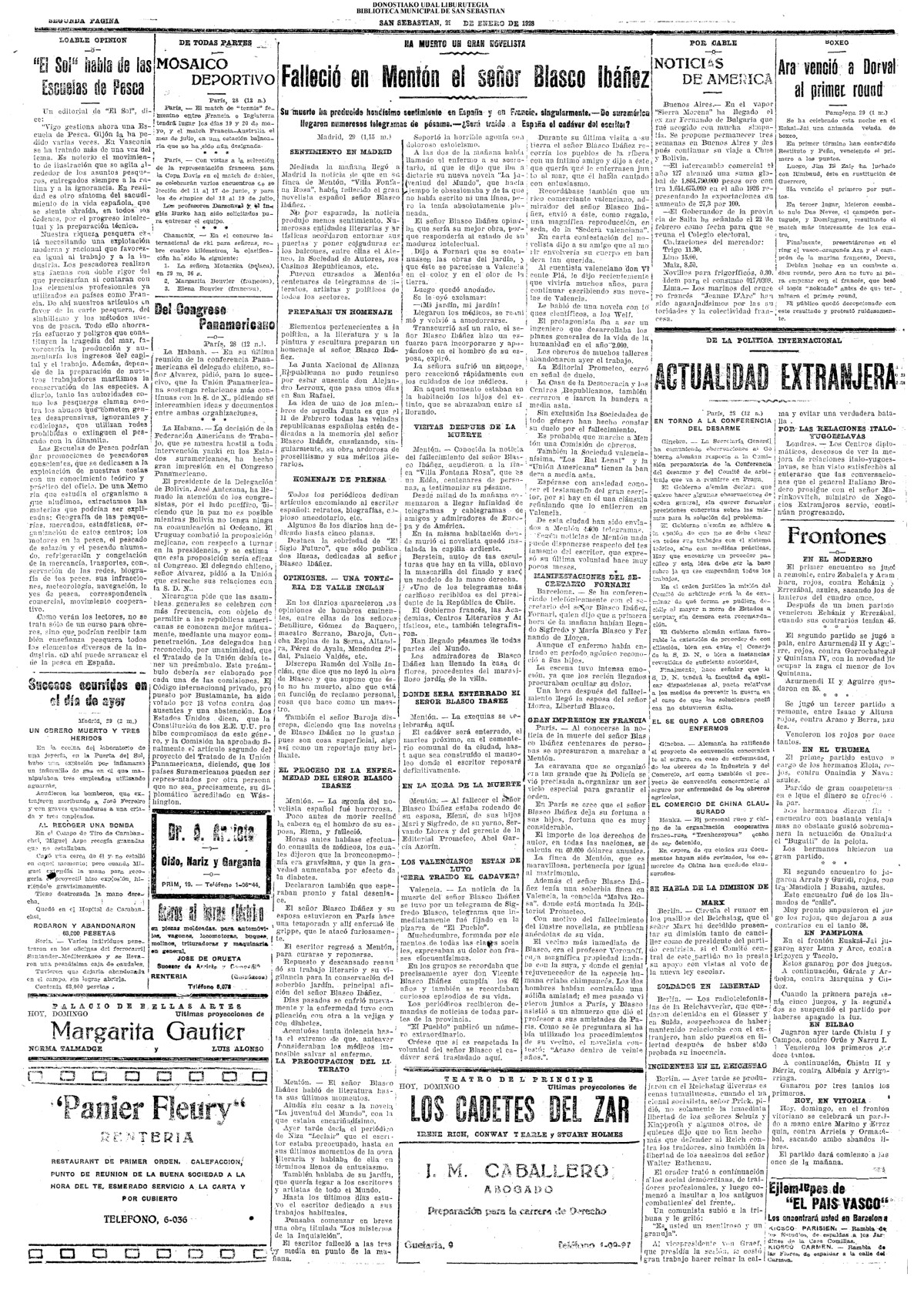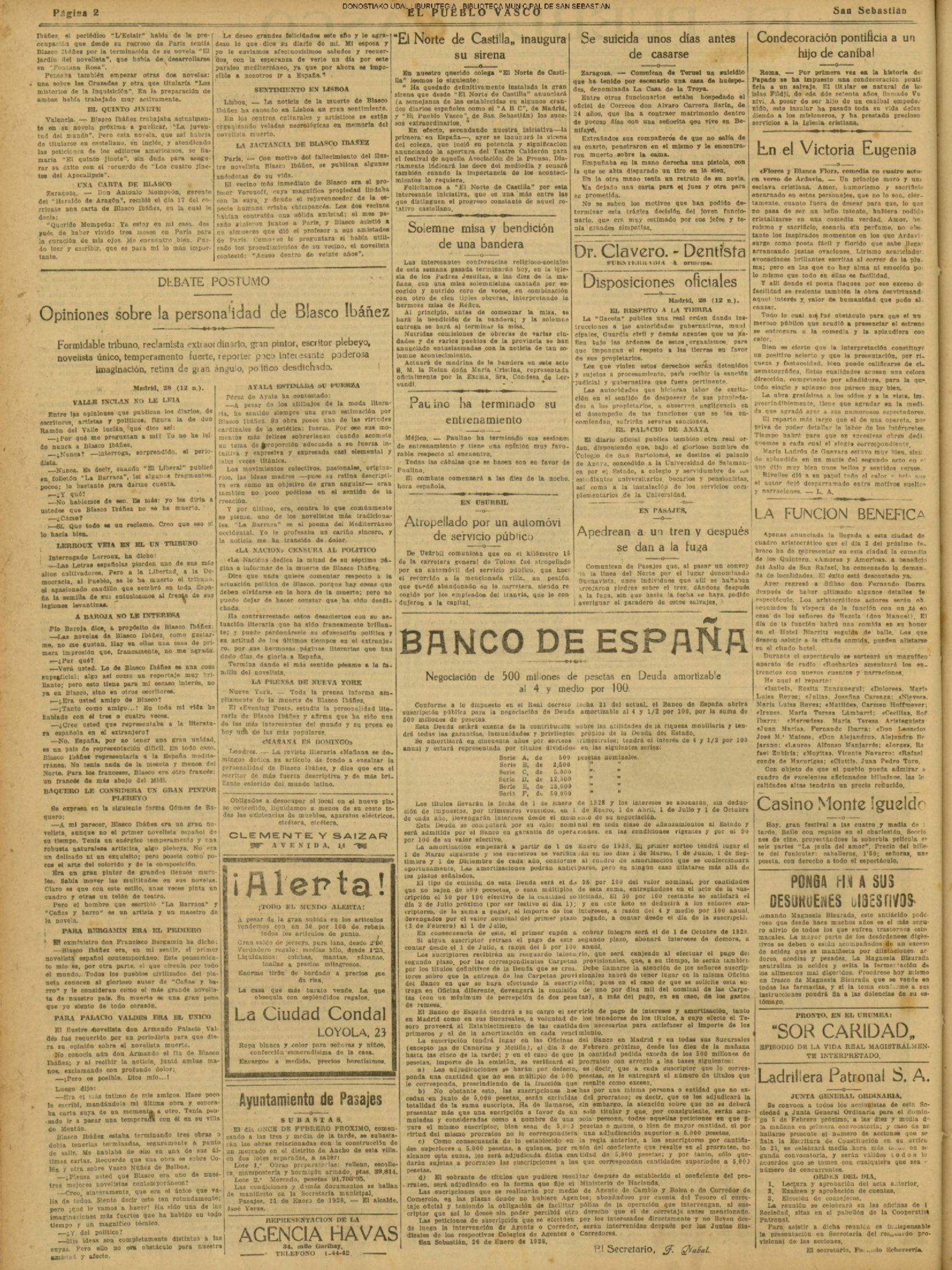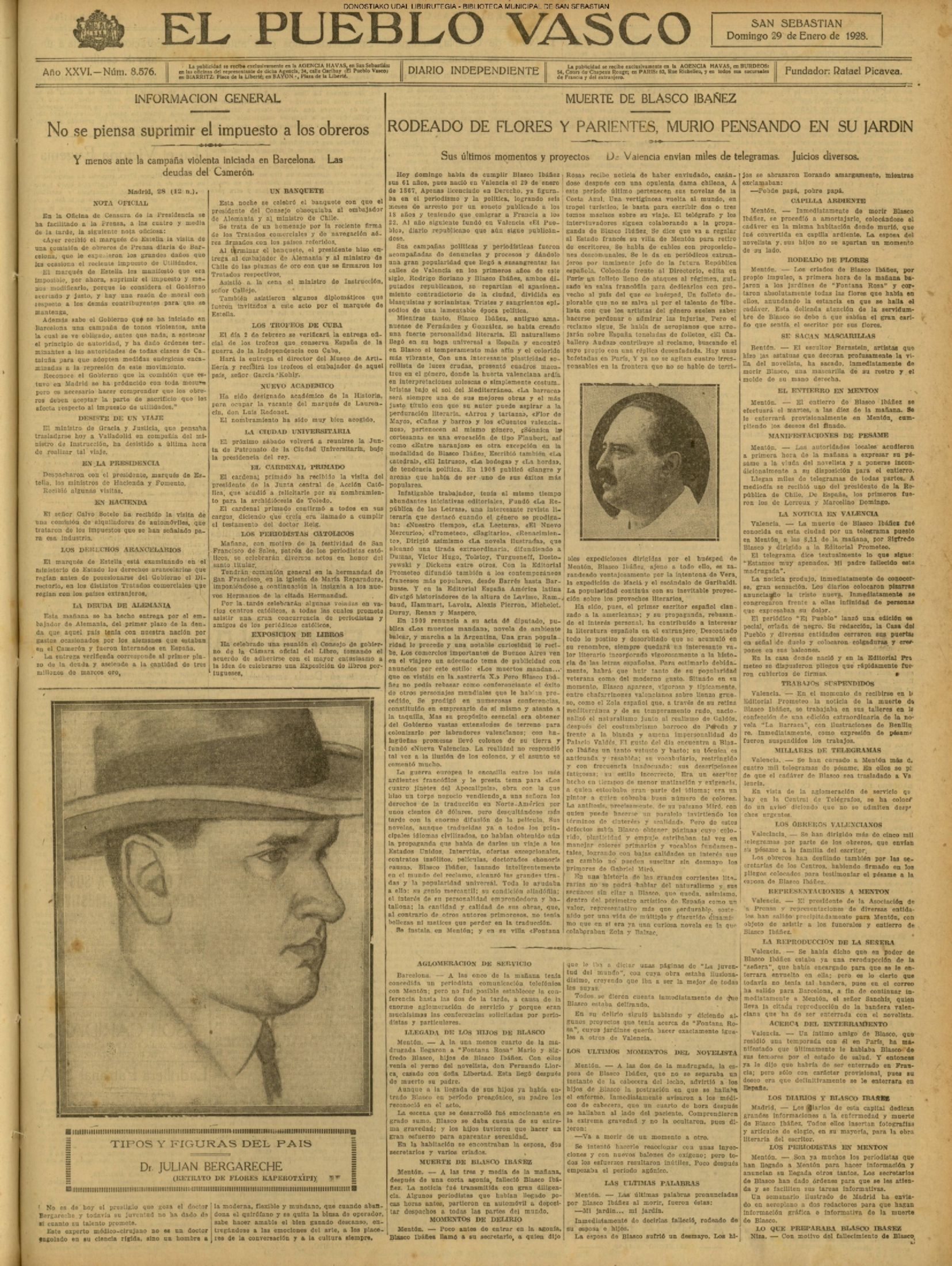 (La Voz de Guipúzcoa)(El Pueblo Vasco)(El Pais Vasco)(La Constancia) (1928) MUERE VICENTE BLASCO IBAÑEZ