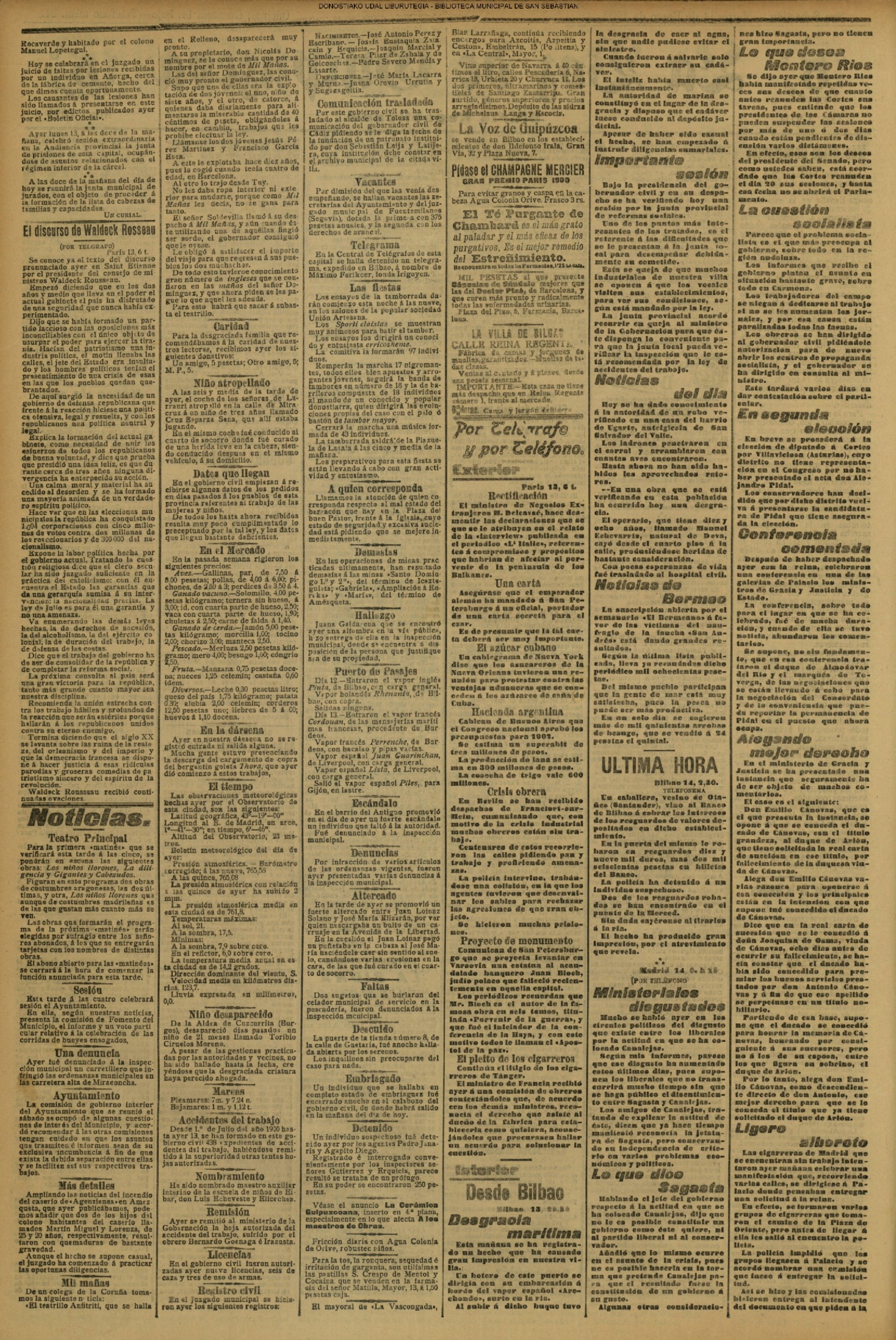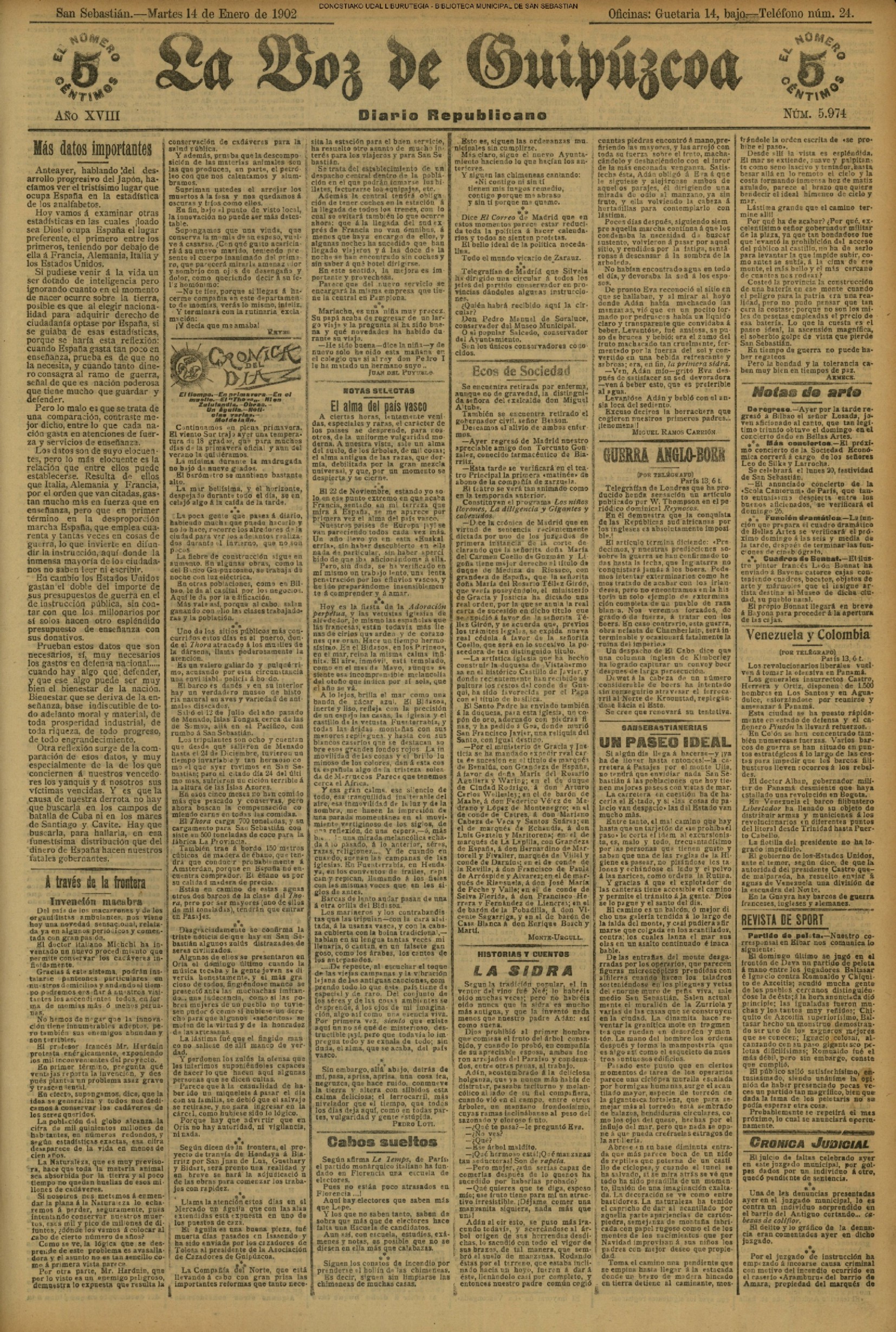 1893![]() PRENSA #El Fuerista: periódico católico. Dios, Patria, Rey. # La Unión Vascongada. # La Voz de Guipúzcoa: diario republicano # |