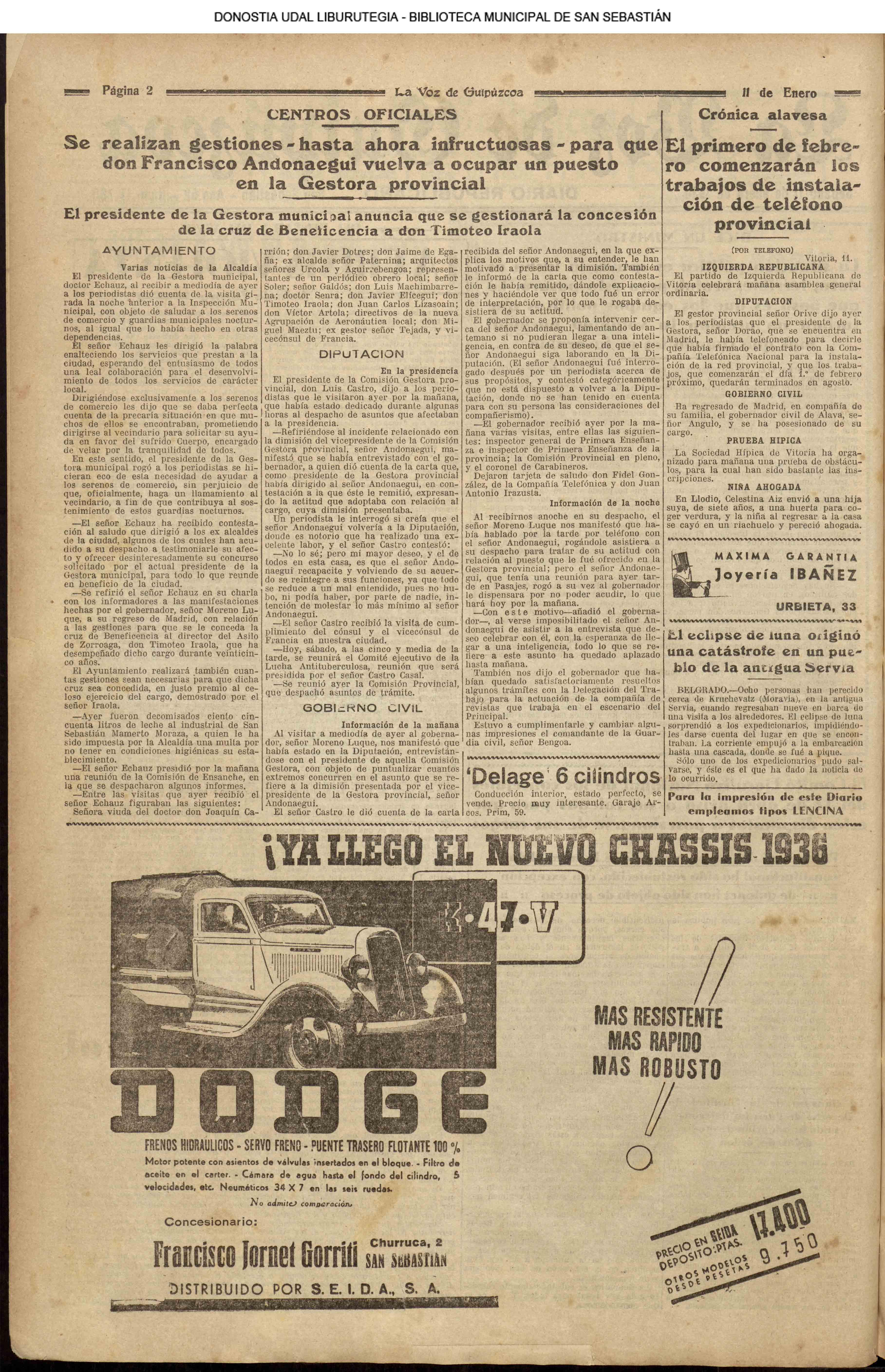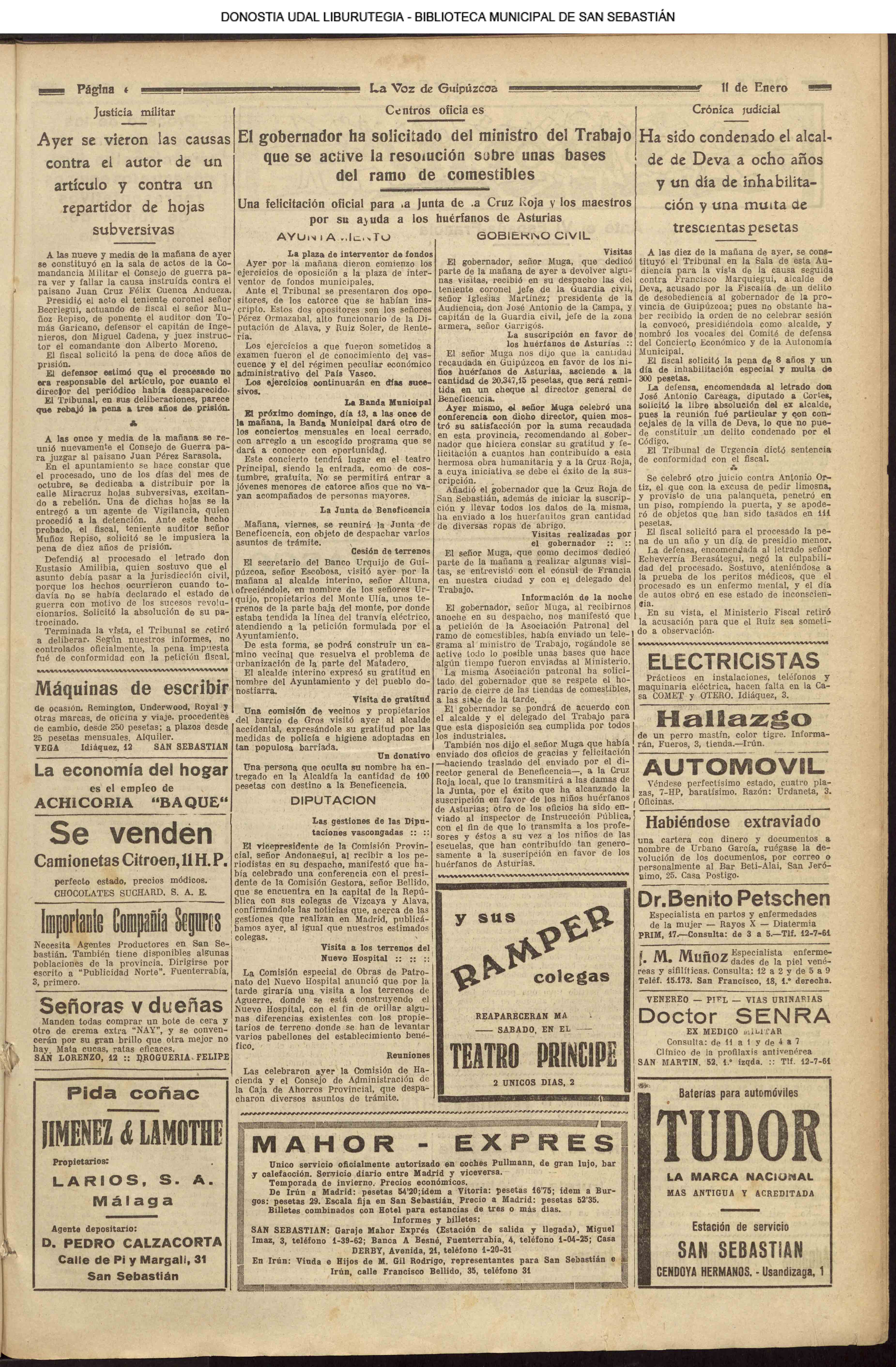 | 1931 LA VOZ DE GUIPUZCOA - (CENTROS OFICIALES)
