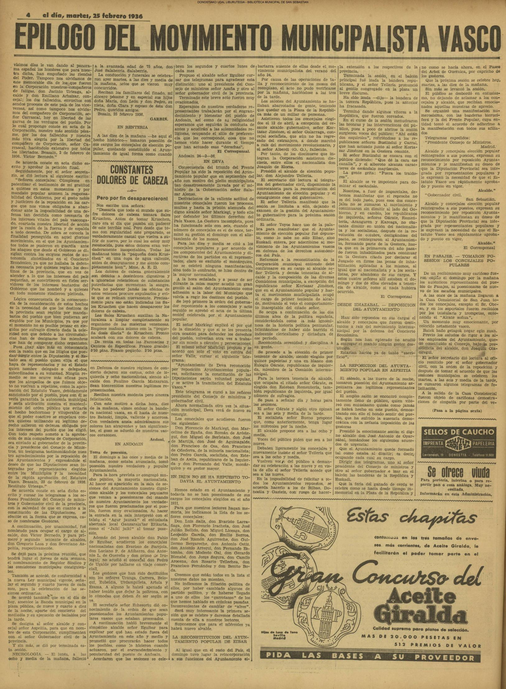 (La Voz de Guipúzcoa/cont)(El Pueblo Vasco/cont)(El Diario Vasco)(El Día/cont)(La Constancia)