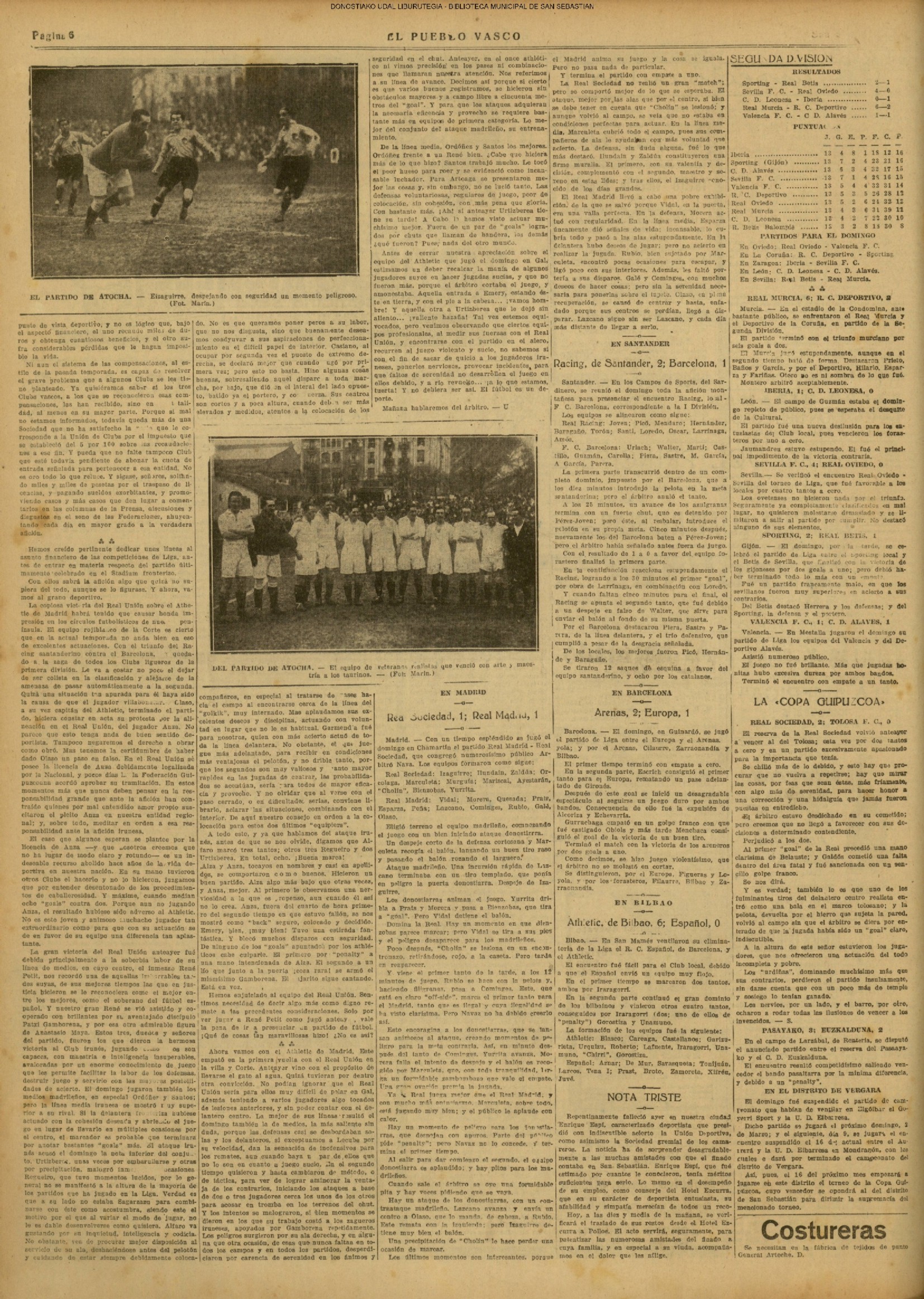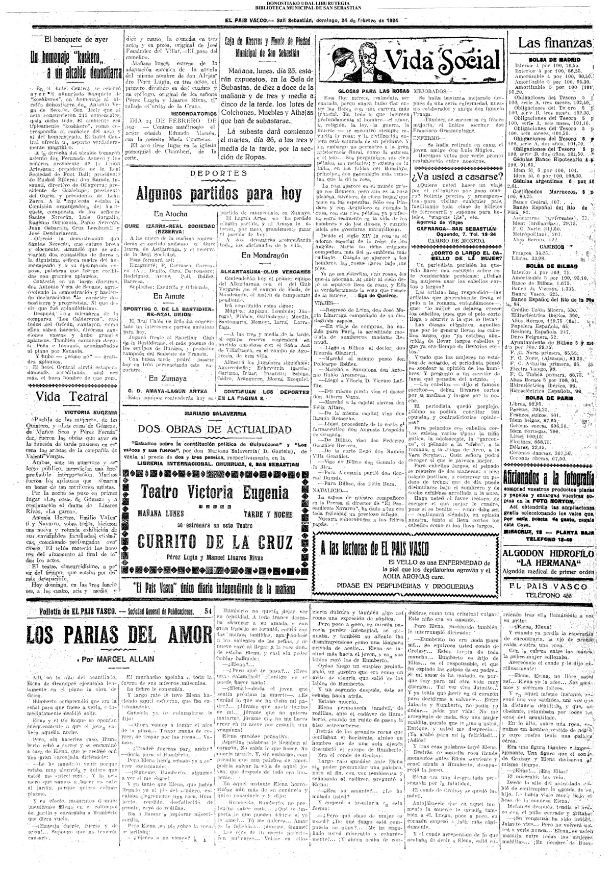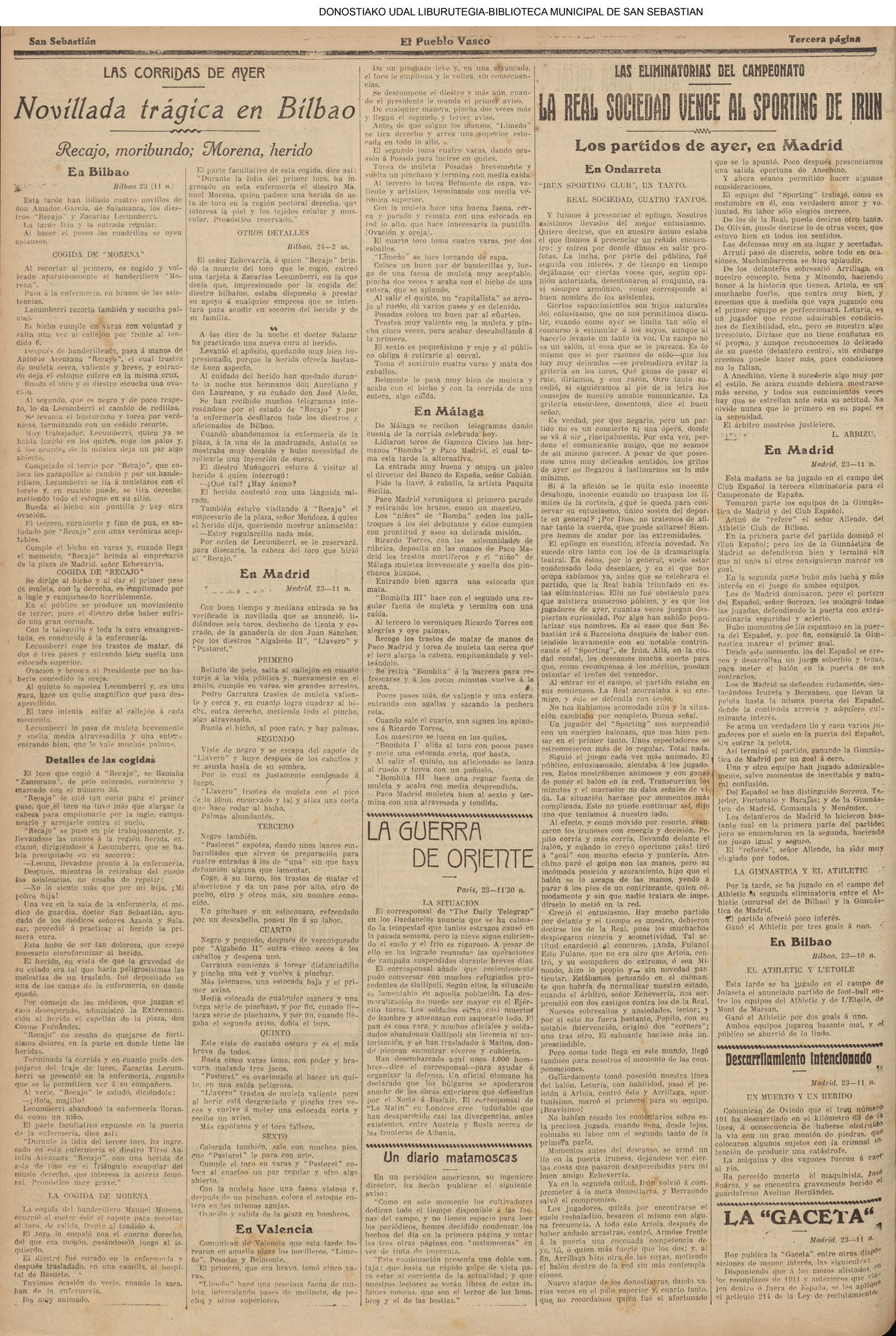 (1923) (La Voz de Guipúzcoa)(El Pueblo Vasco)(El Pais Vasco)(La Constancia)