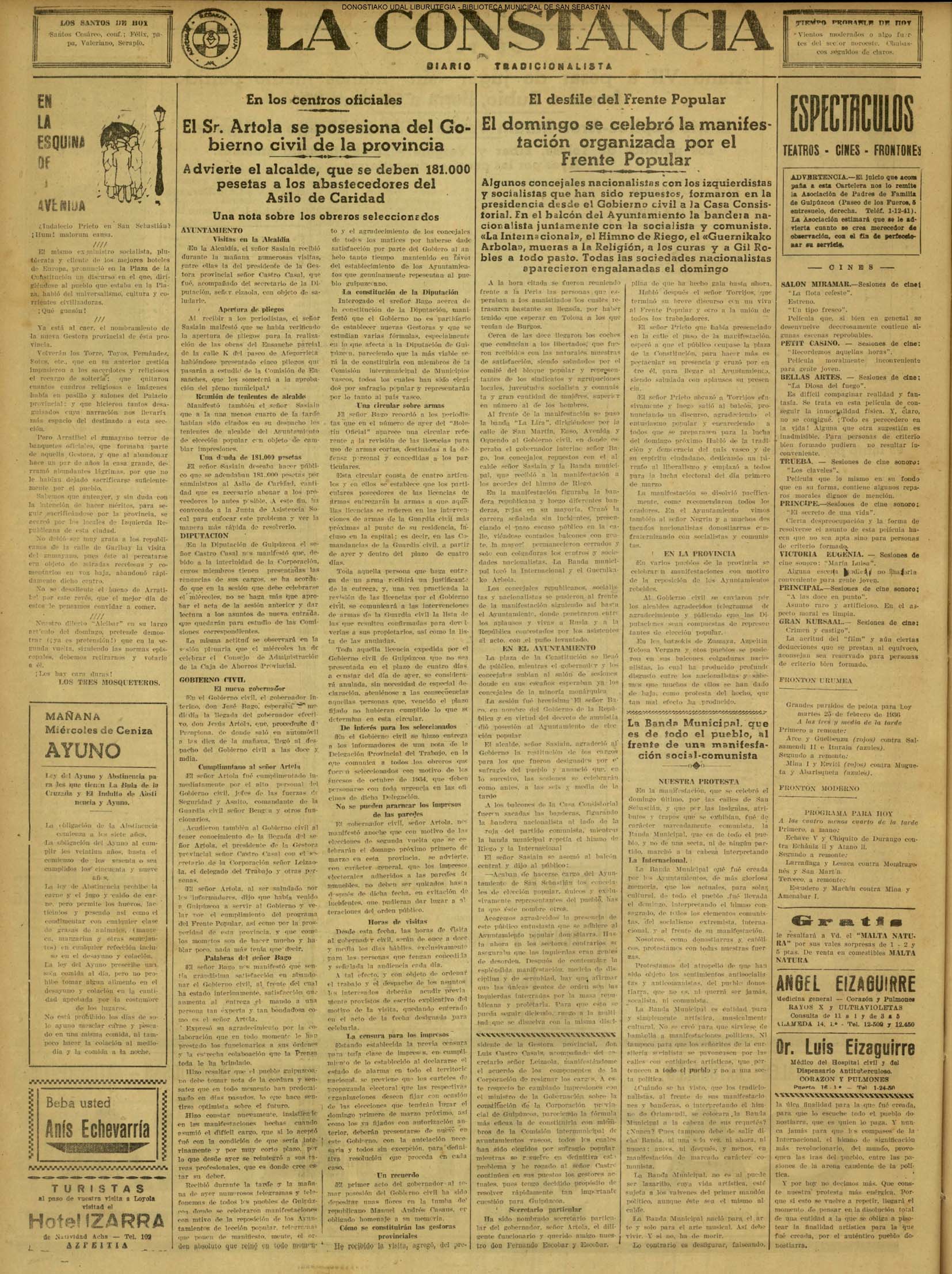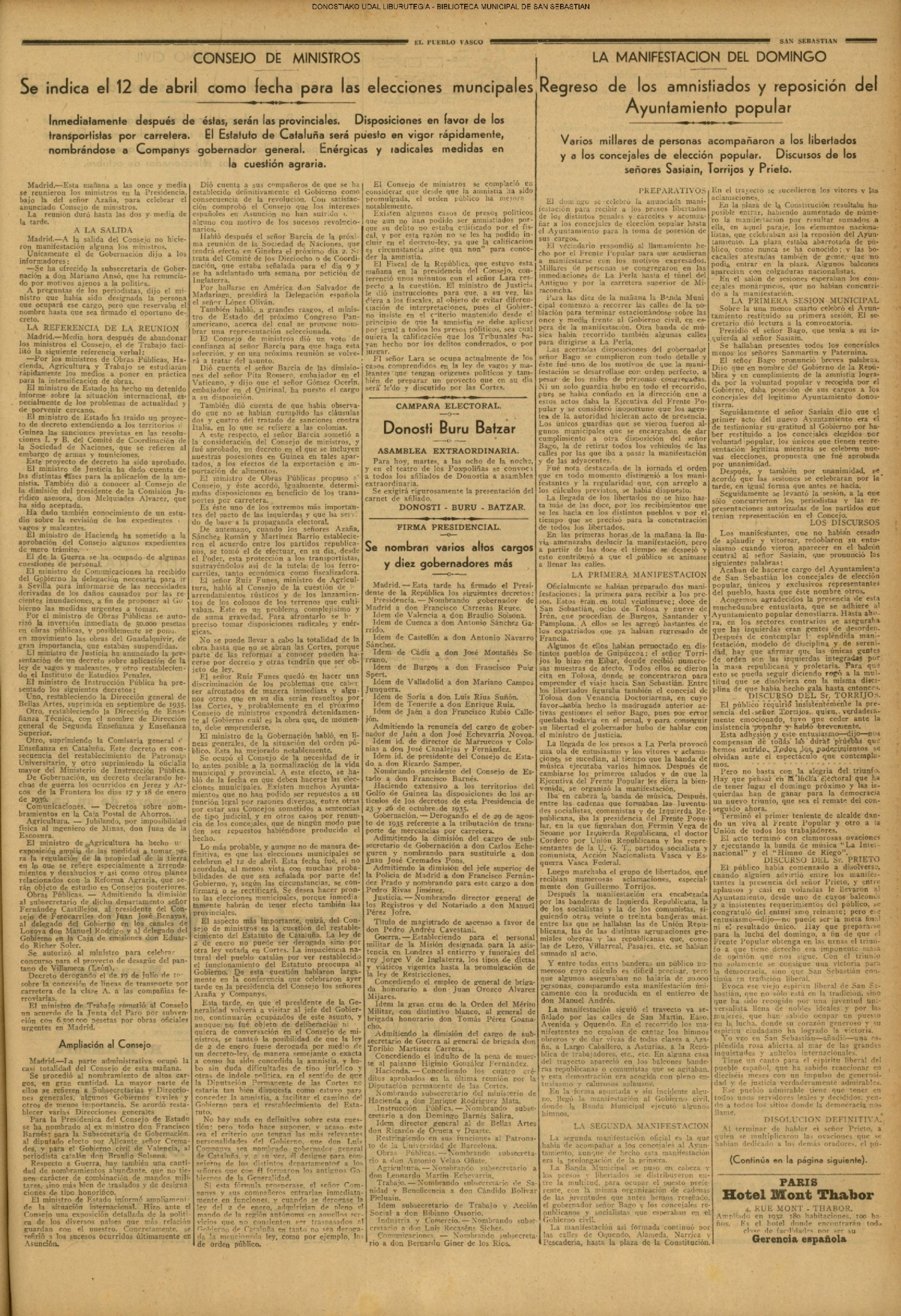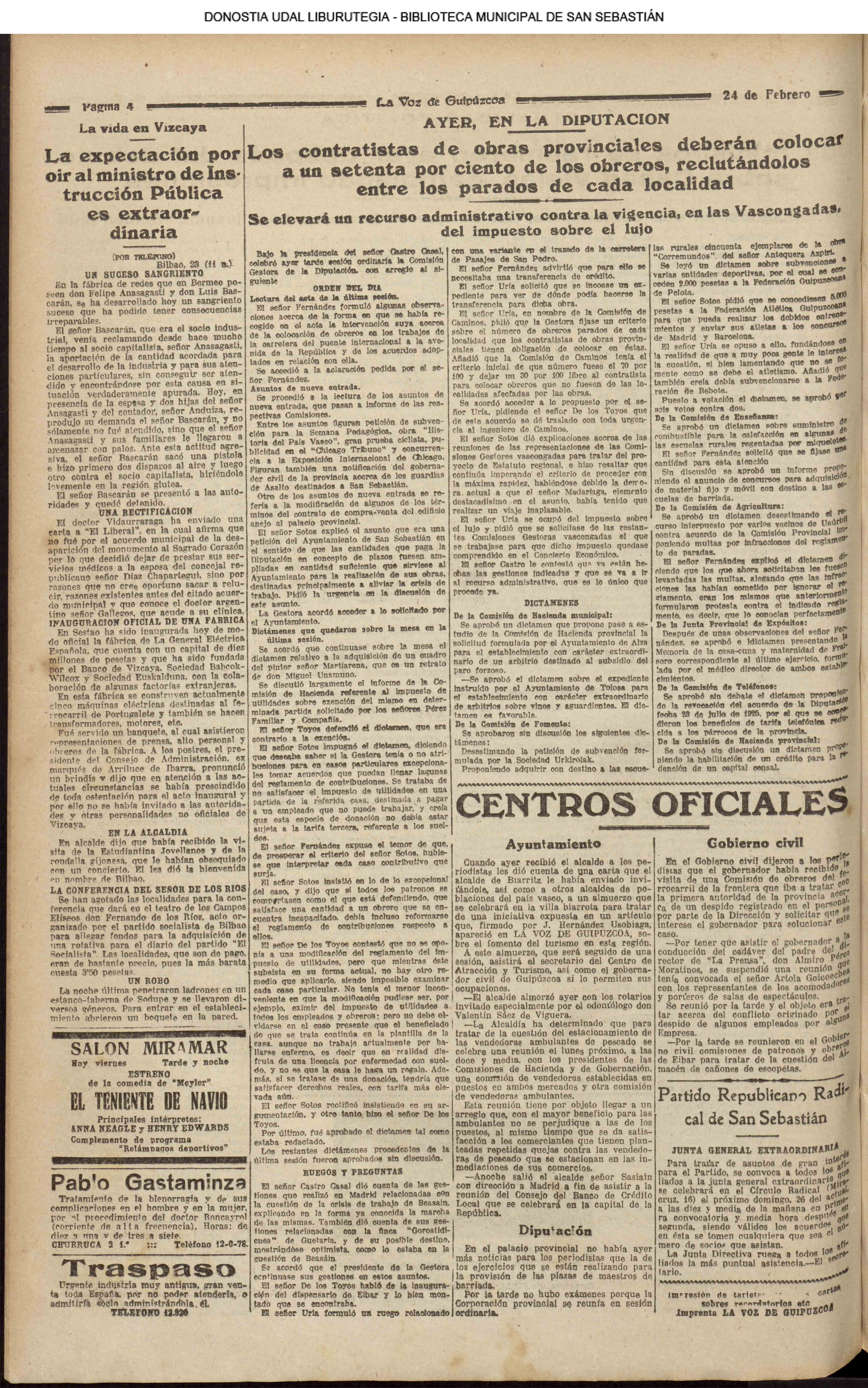 @ - La Voz de Guipúzcoa (ver más)(El Pueblo Vasco)(El País Vasco)(La Constancia)(1933) COMISIÓN GESTORA DE LA DIPUTACIÓN