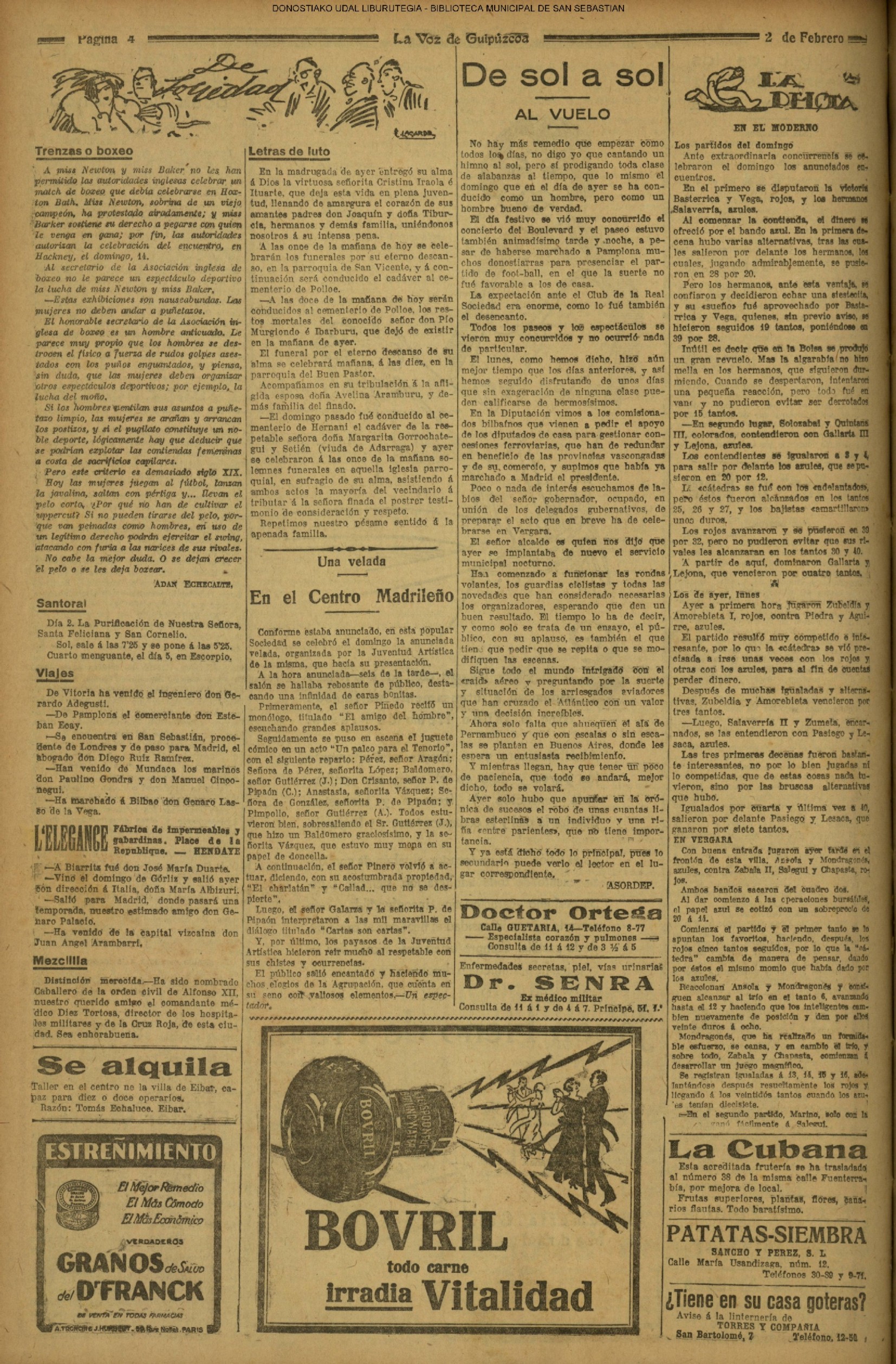 (1892) Fallece, de 57 años, Dª.Manuela Alen y Azubia, viuda de López Aizpurua, madre del escritor donostiarra «Mendiz Mendi» y abuela del colaborador de esta revista (SAN SEBASTIÁN, Revista Ilustrada) José Ramón López-Alén. (1893) Entra en funciones el pte. de la Audiencia, D. Joaquín de Castro. |
