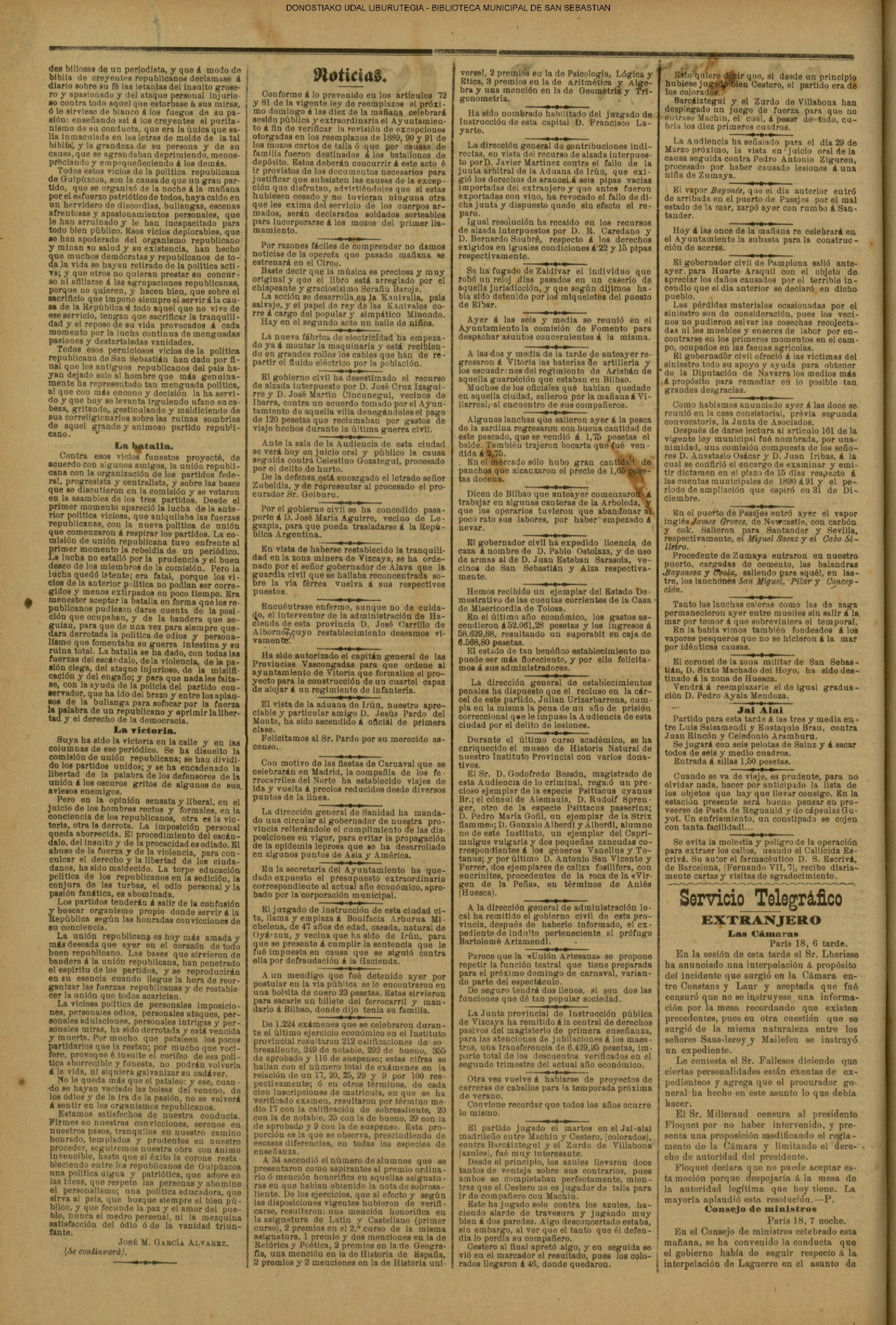 (1885) Es nombrado juez de Instrucción de San Sebastián D. Francisco García Díaz.