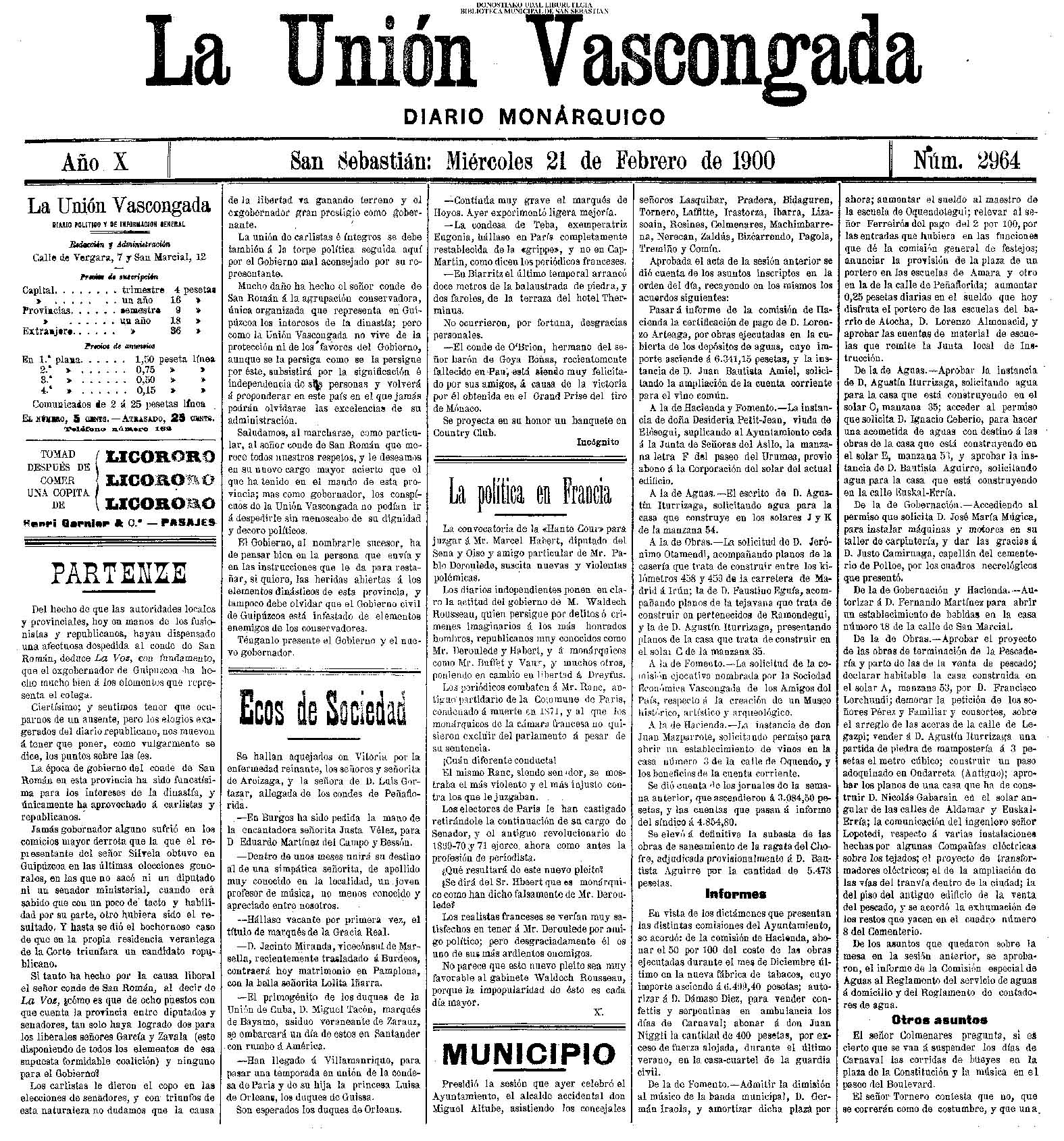 (La Voz de Guipúzcoa)(El Pueblo Vasco)(El Correo de Guipuzcoa)(La Constancia)(1910)
