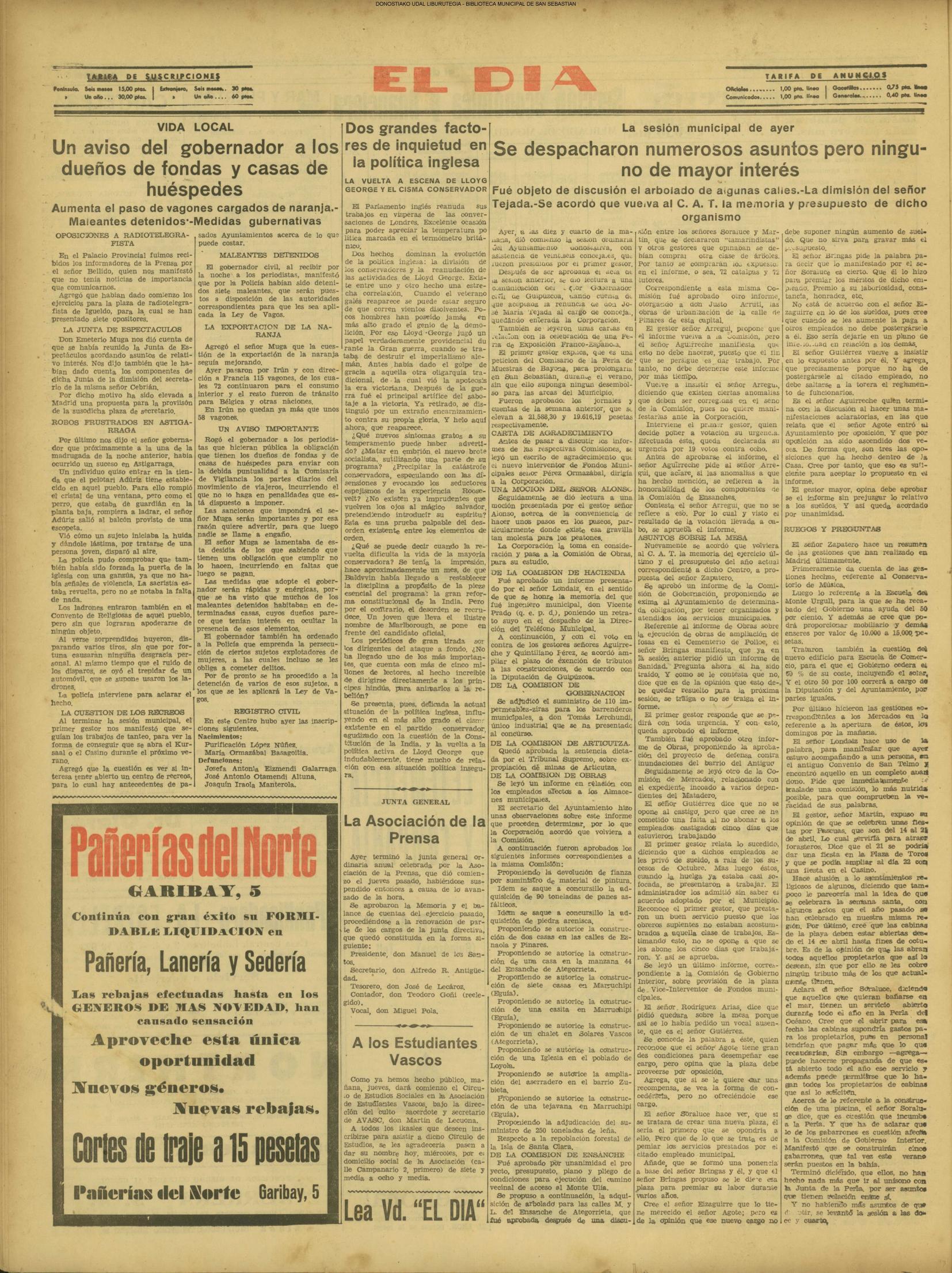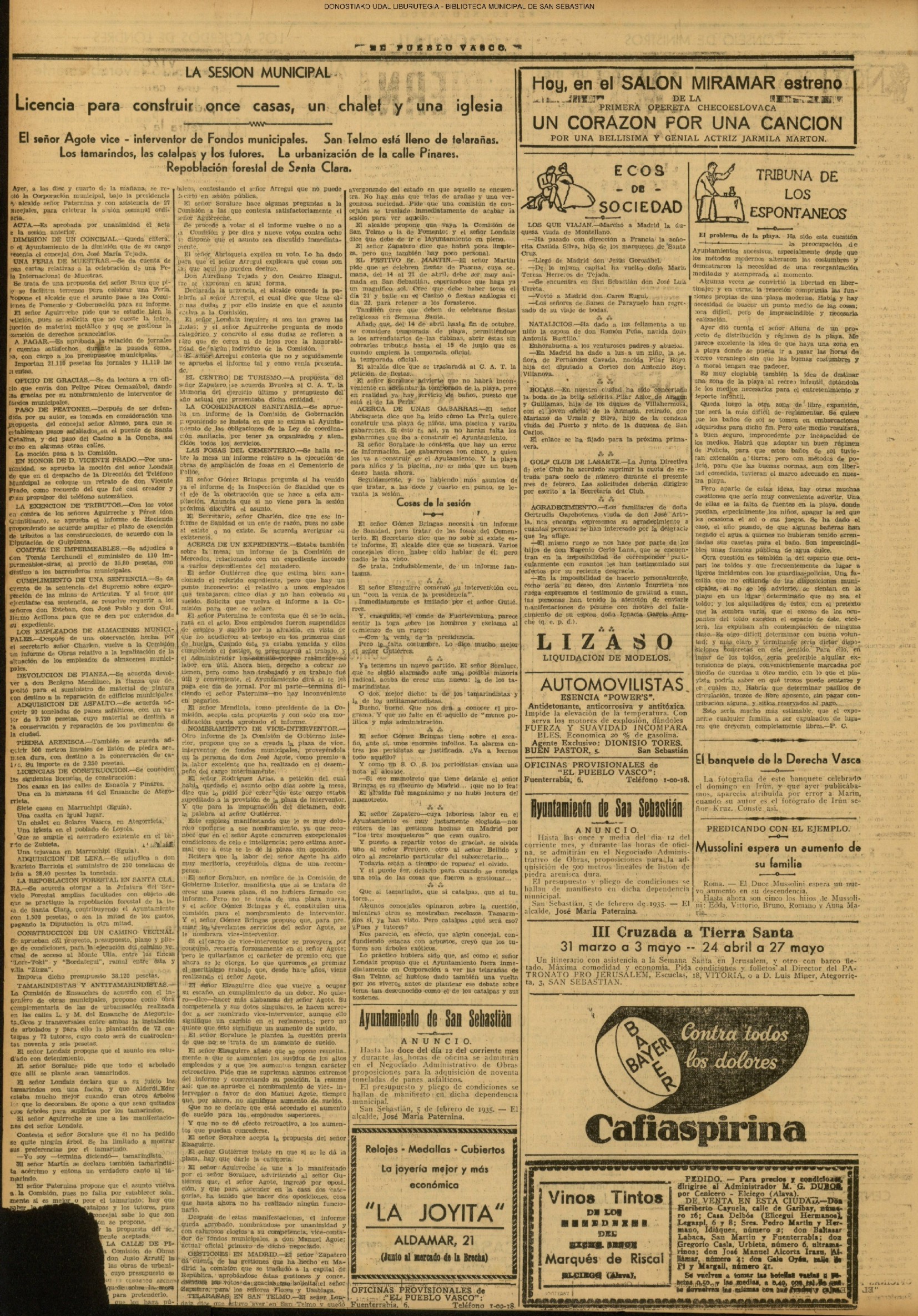 (1925) (La Voz de Guipúzcoa)(El Pueblo Vasco)(El Pais Vasco)(La Constancia)
