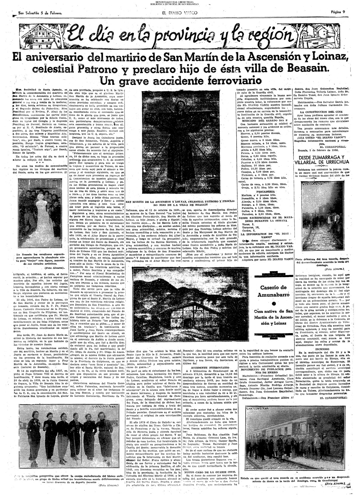 # El Aniversario del martirio de San Martín de la Ascensión y Loinaz, celestial Patrono y preclaro hijo de ésta villa de Beasain (El Diario Vasco)