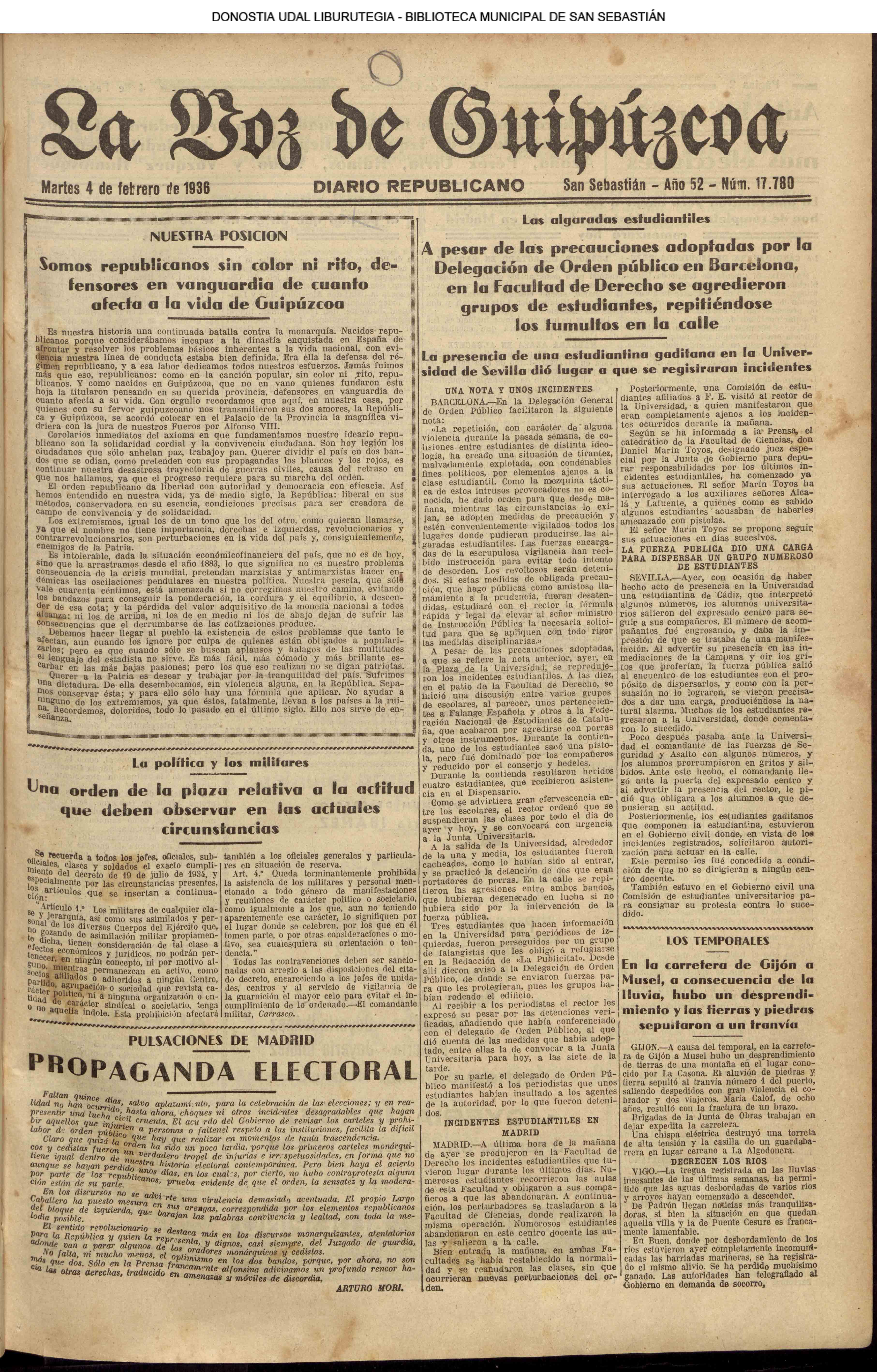 (La Voz de Guipúzcoa)(El Pueblo Vasco)(El Día)(La Constancia)