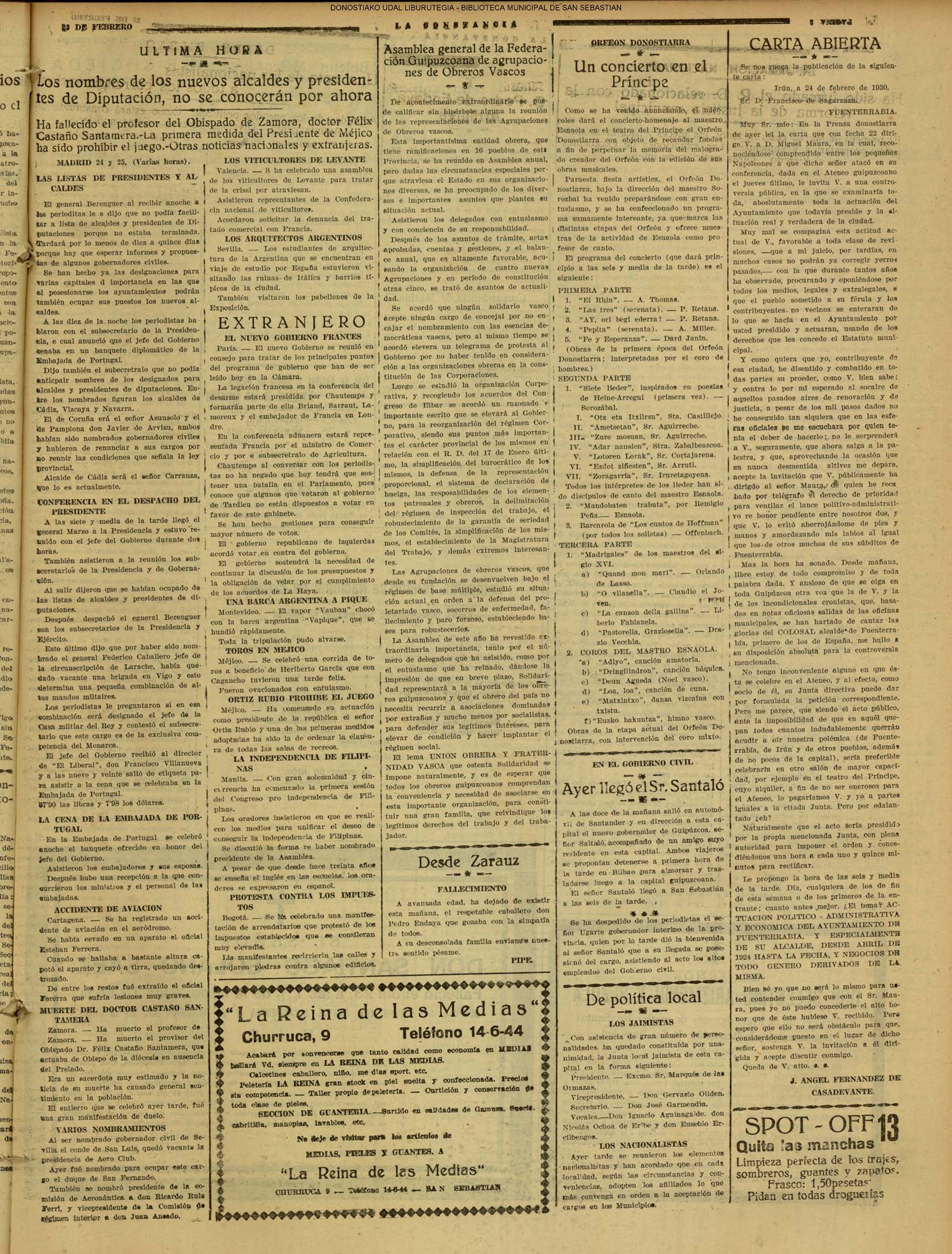(1934) (La Voz de Guipúzcoa)(El Pueblo Vasco)(El Día)(La Constancia)
