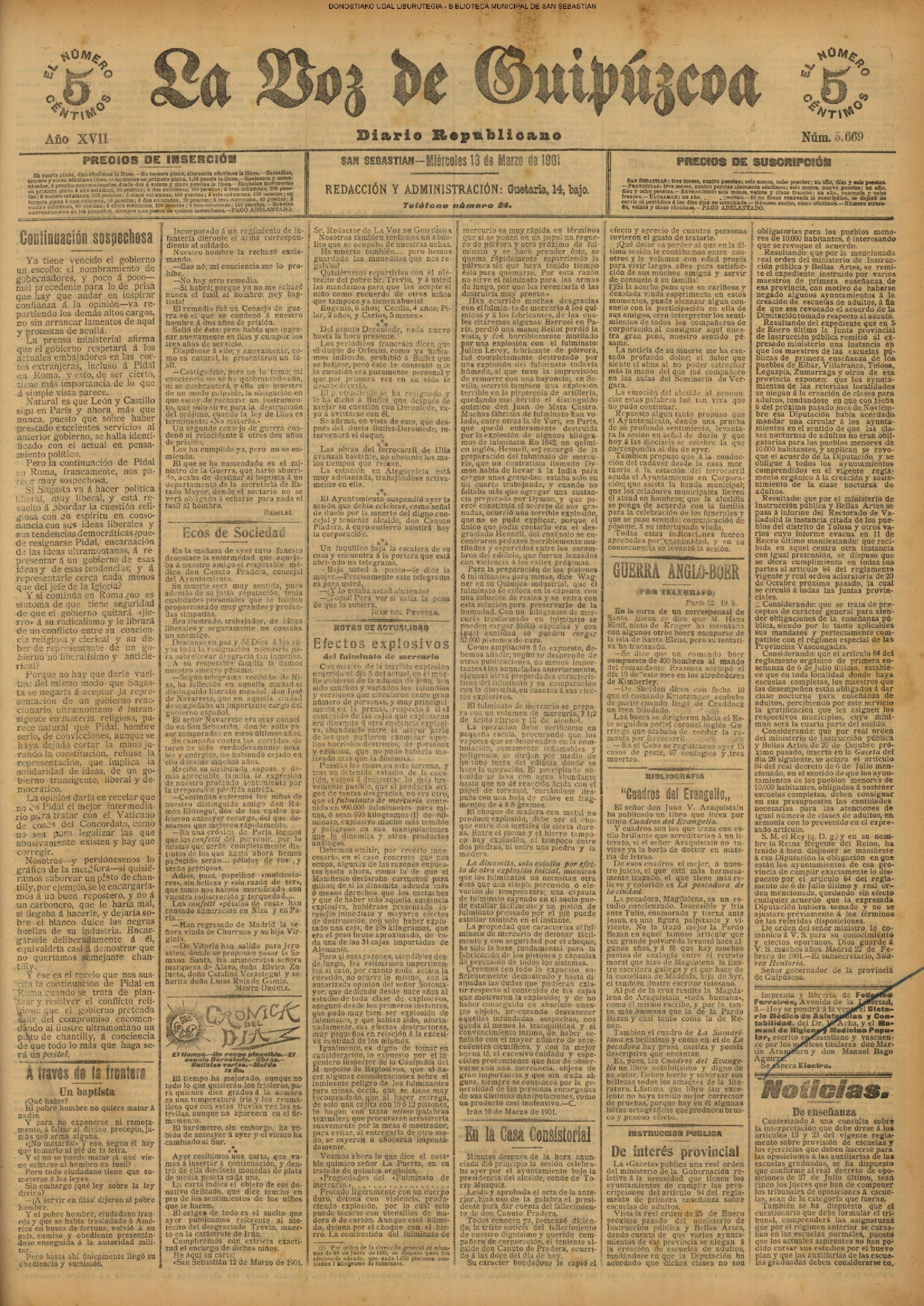 | 1939 | (DOMINGO) (*) ************************************************** (*).- PRENSA DEL DÍA # EL DIARIO VASCO :001.- PORTADA.- PARTE DE GUERRA.- /