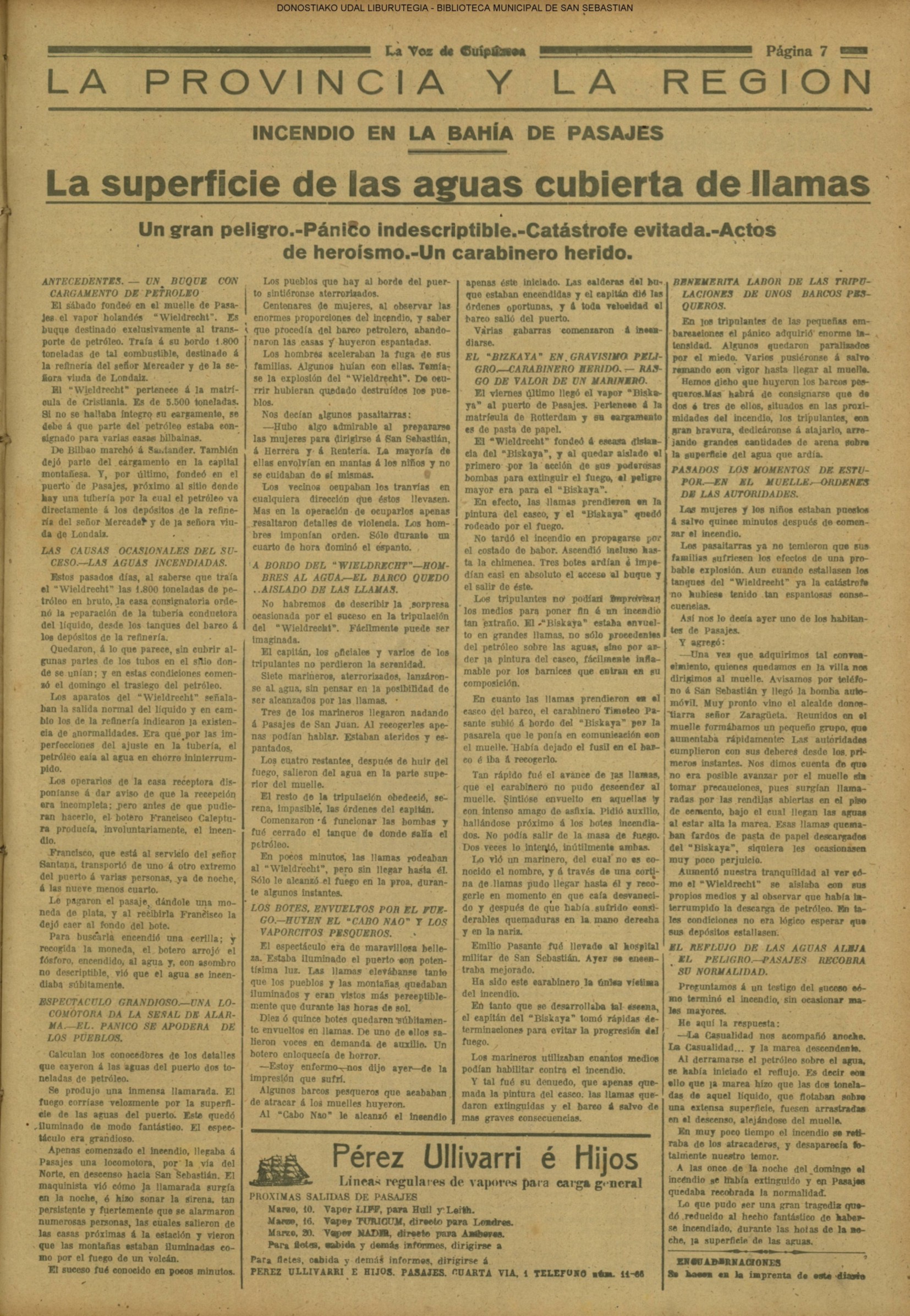 (1921) UN INCENDIO EN EL PUERTO DE PASAJES.- Pudo ocurrir una catástrofe