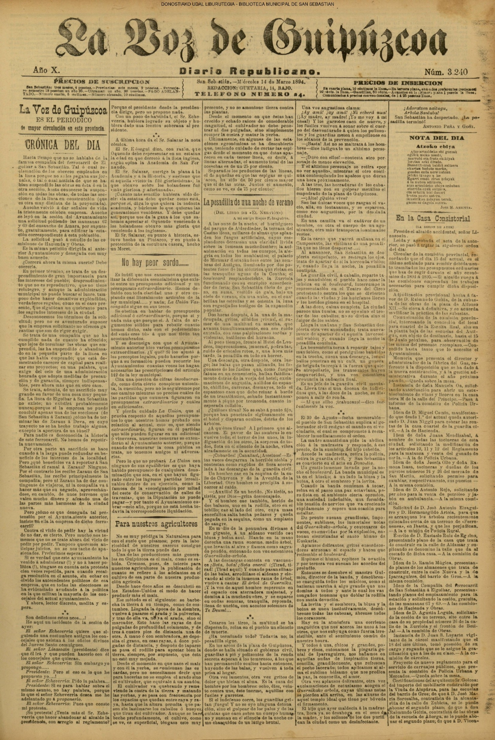 # El notable violinista donostiarra Clemente lbarguren se casa en Barcelona con la señorita guipuzcoana Juana Uranga e Iturbe; actuando de testigos Pablo Sarasate y el maestro Arbós. (La Voz de Guipúzcoa)
