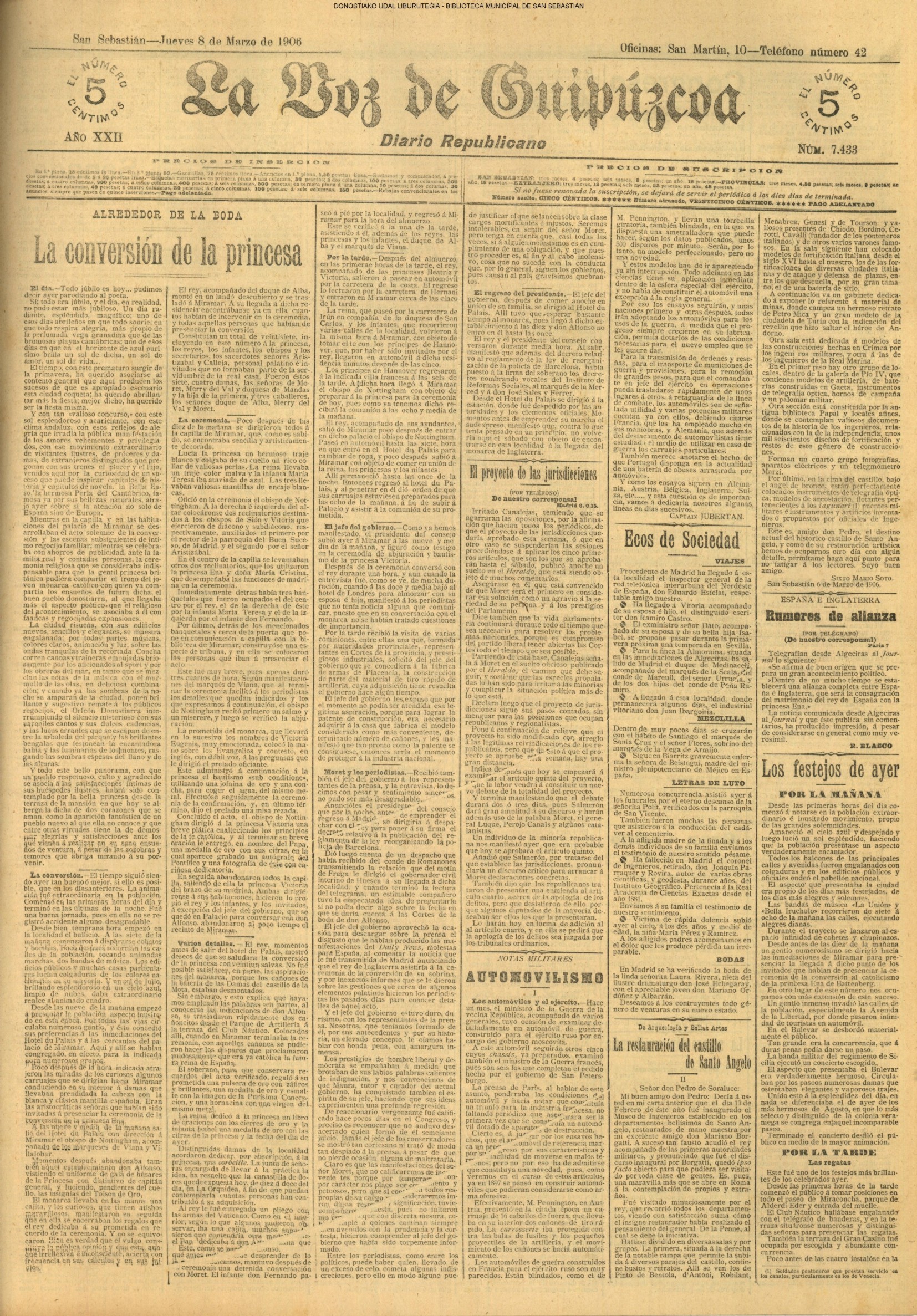 (La Voz de Guipuzcoa)(El Pueblo Vasco)(El Correo de Guipúzcoa)(La Constancia/ ver más)
