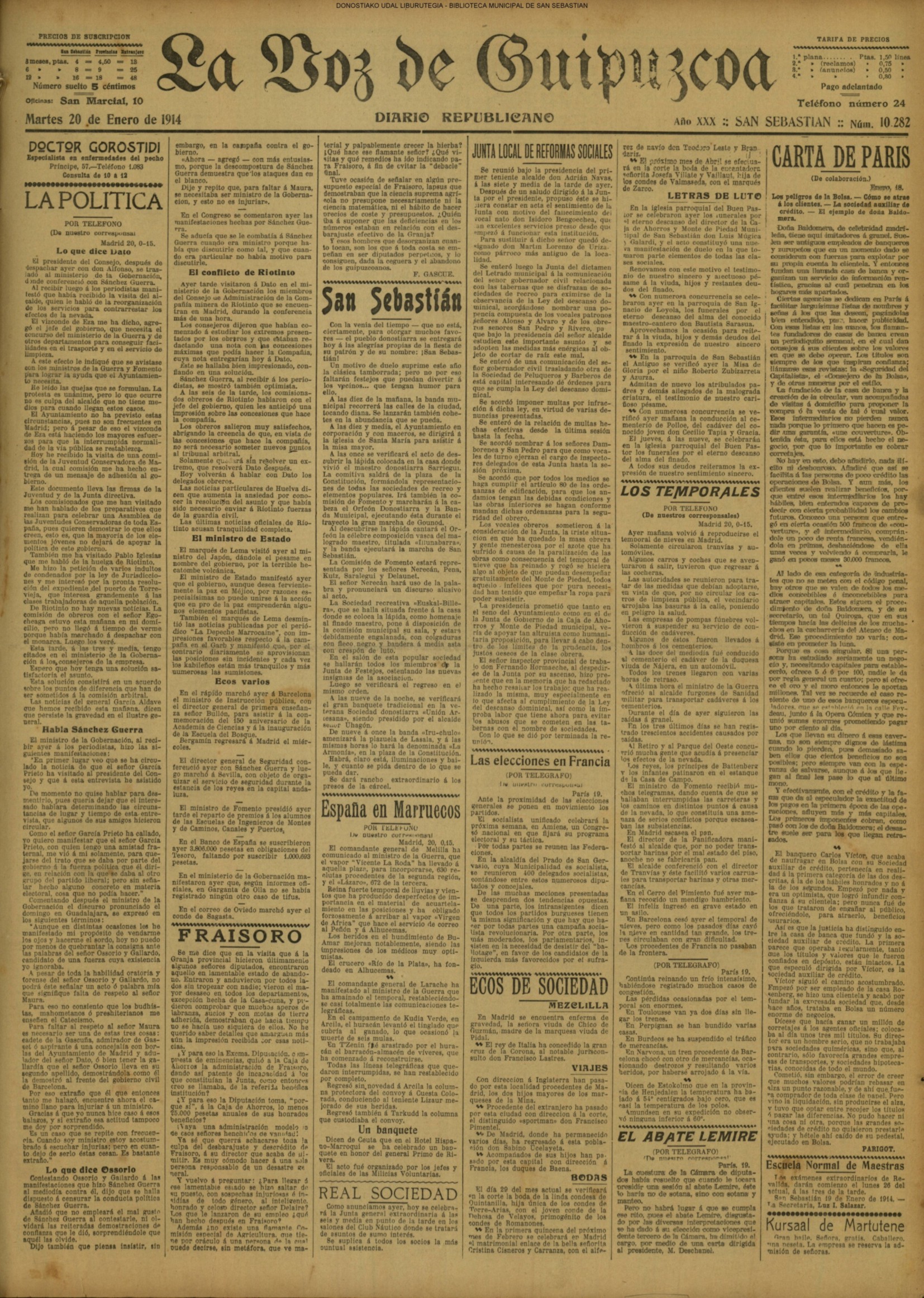 LA VOZ DE GUIPUZCOA. 20 de ENERO.