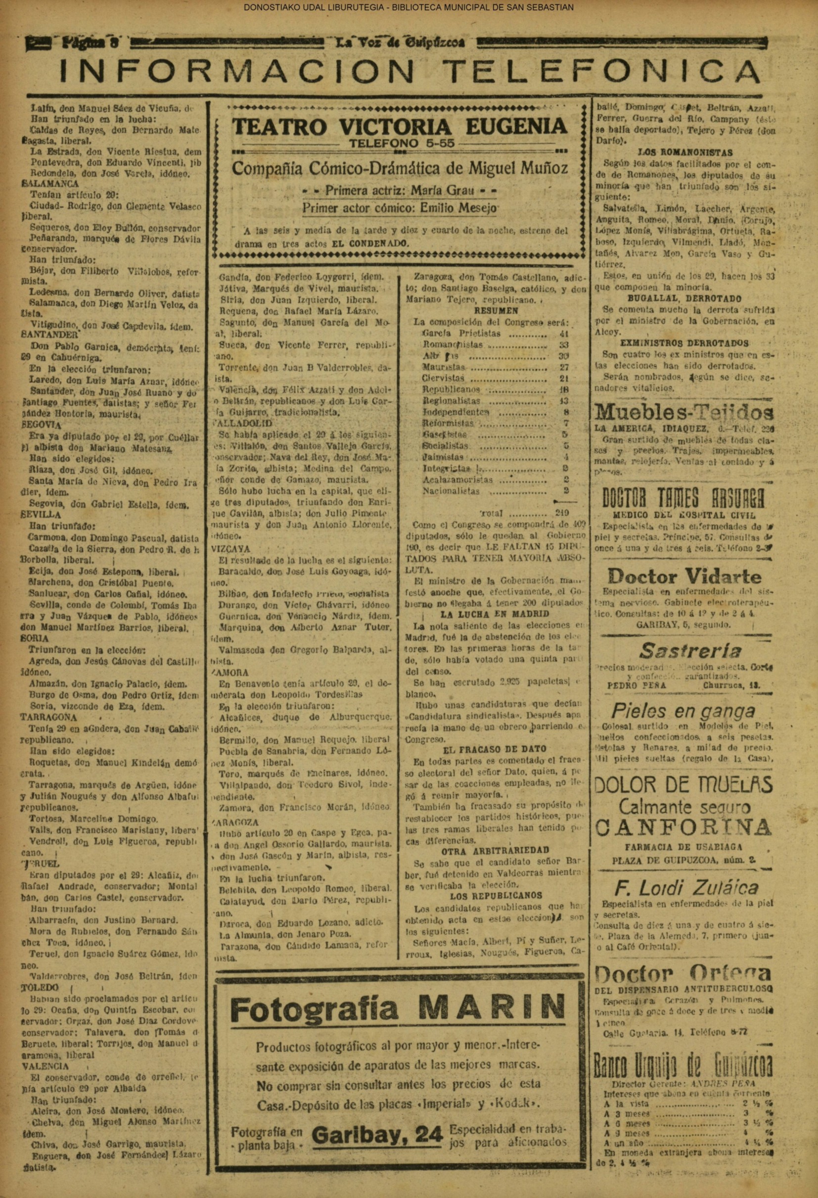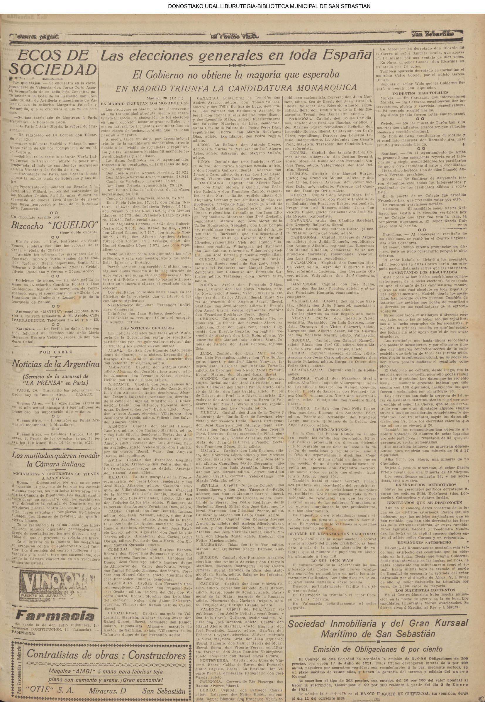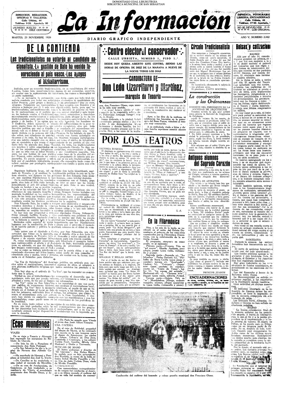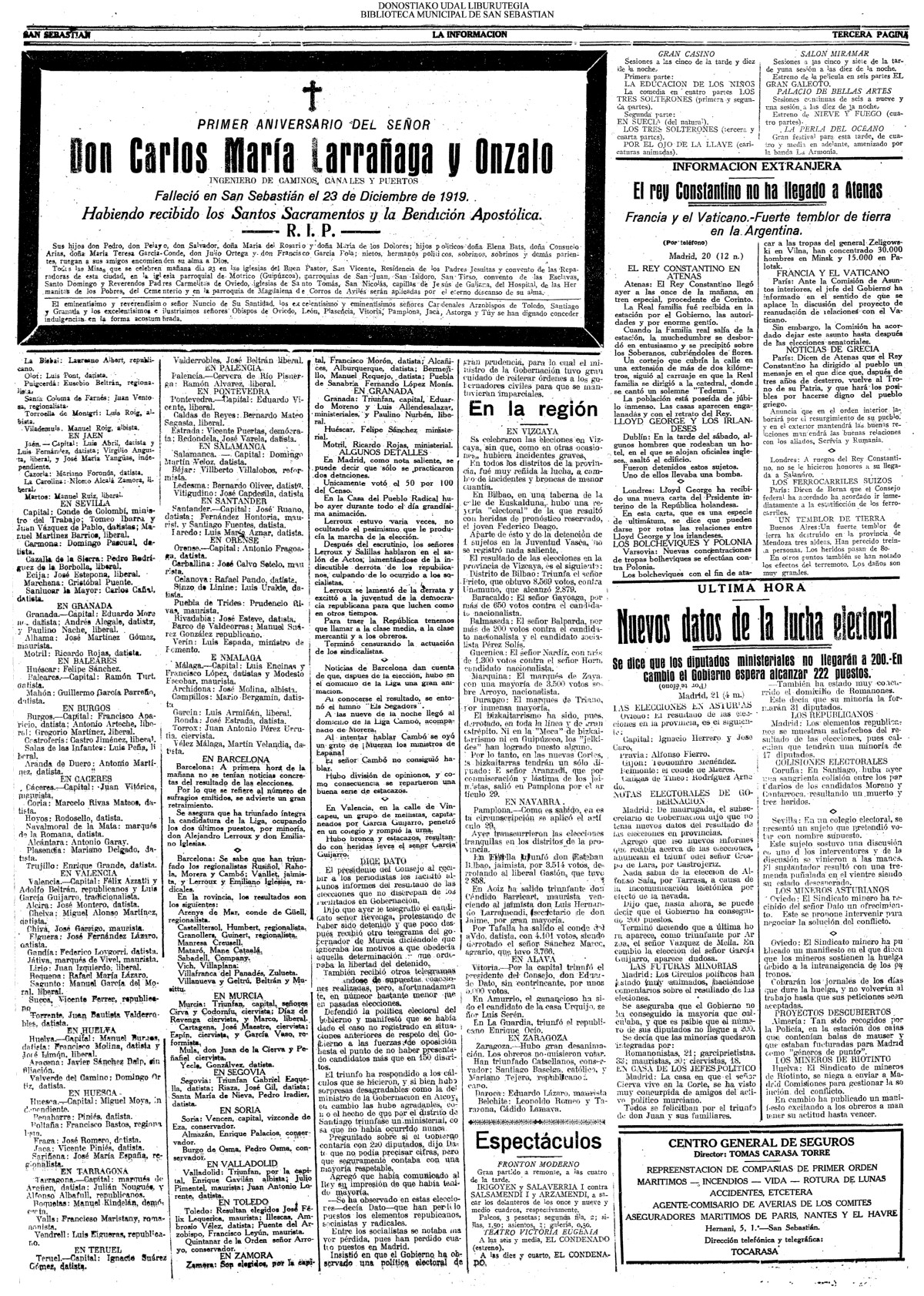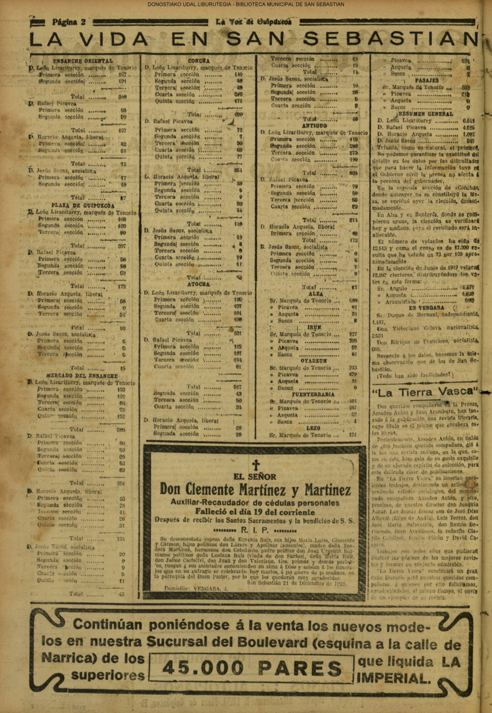 | 08.- Fallece don José Machimbarrena y Echave // Jornada Electoral // |