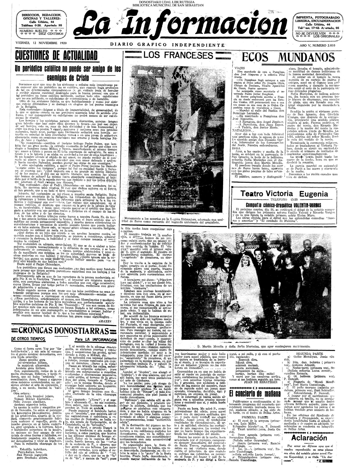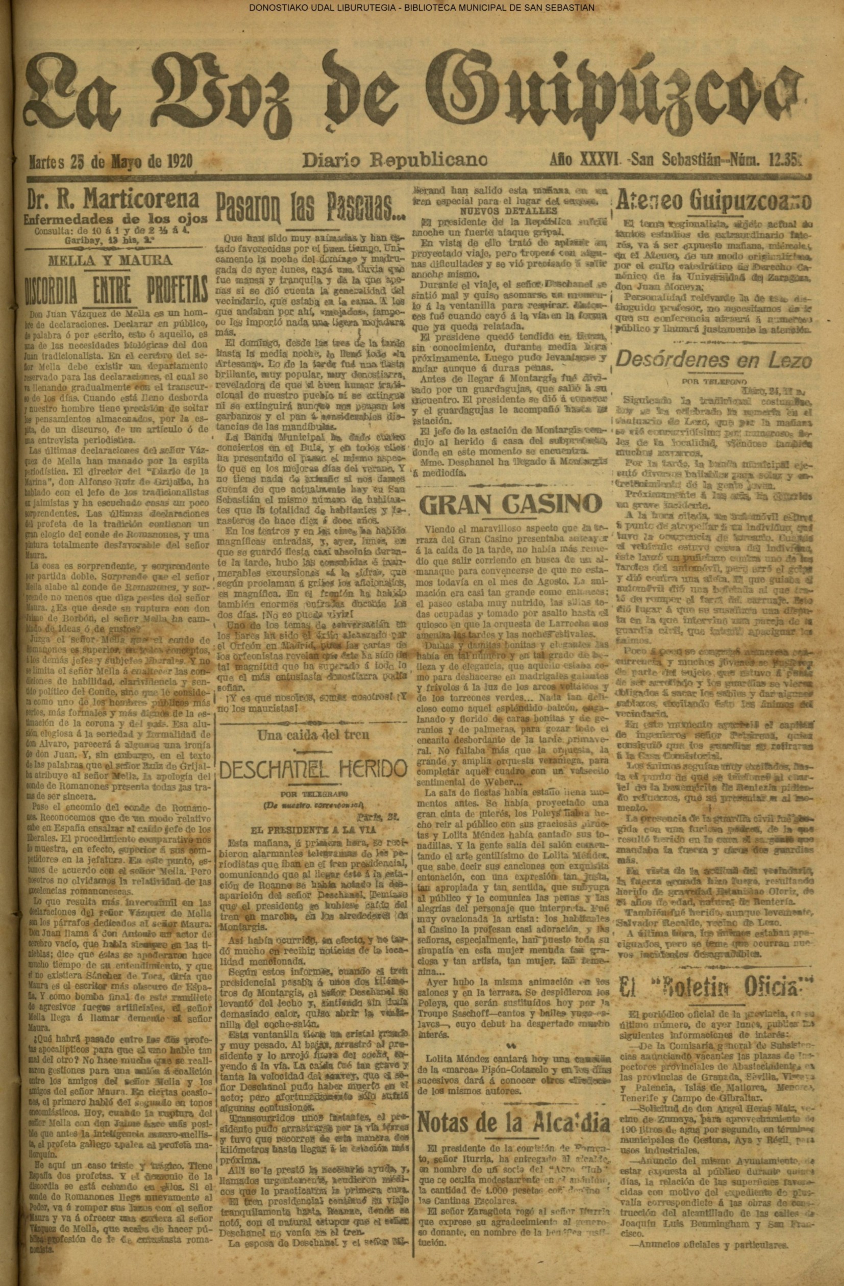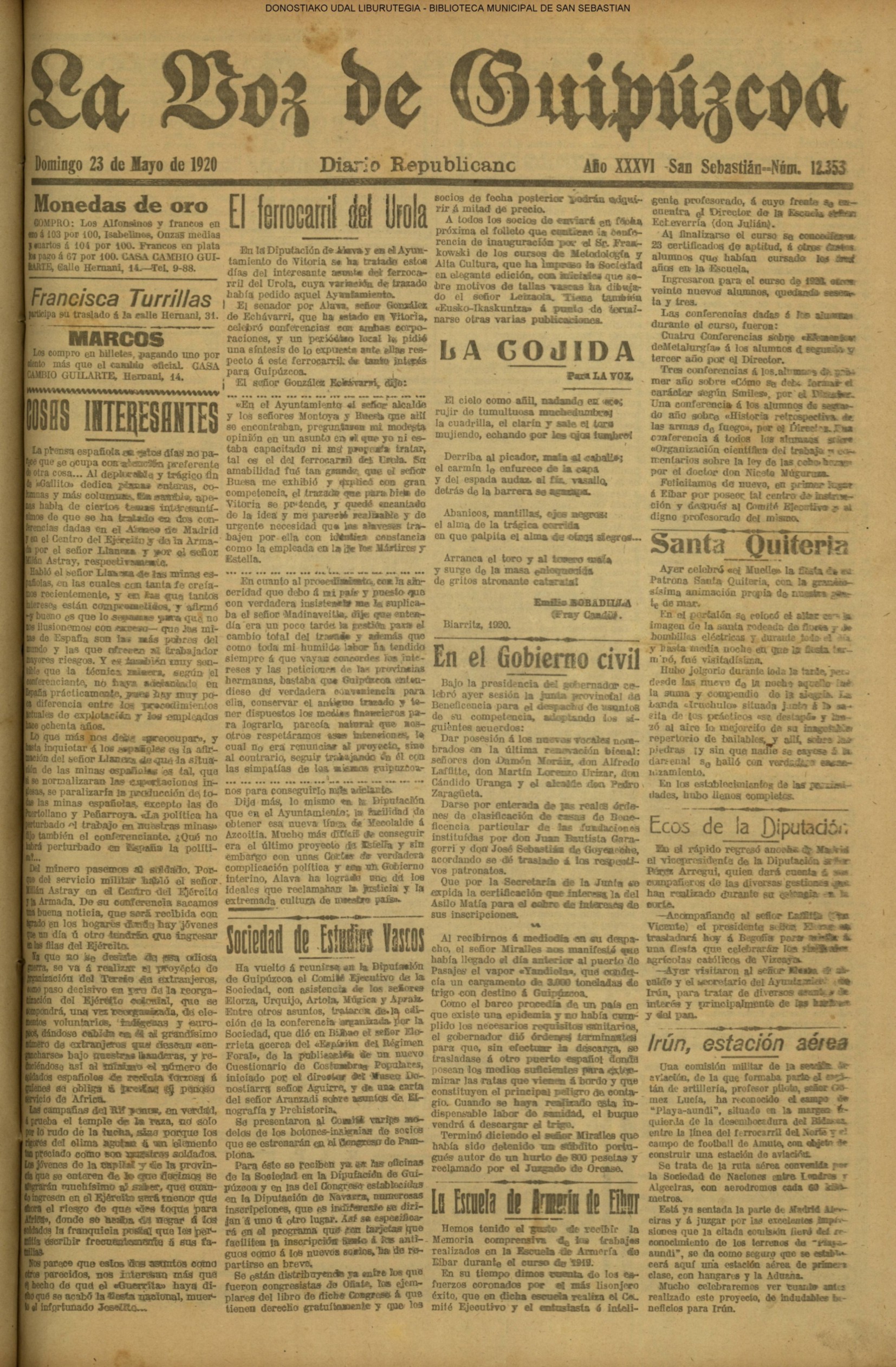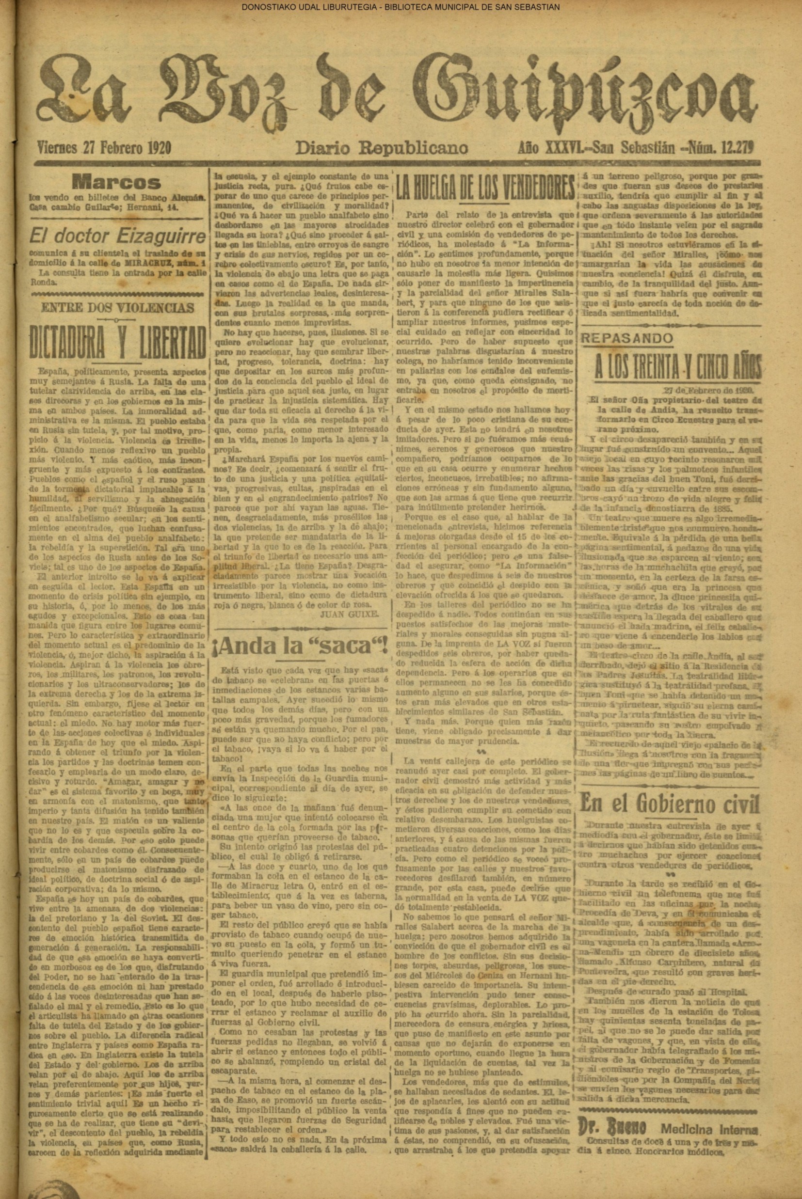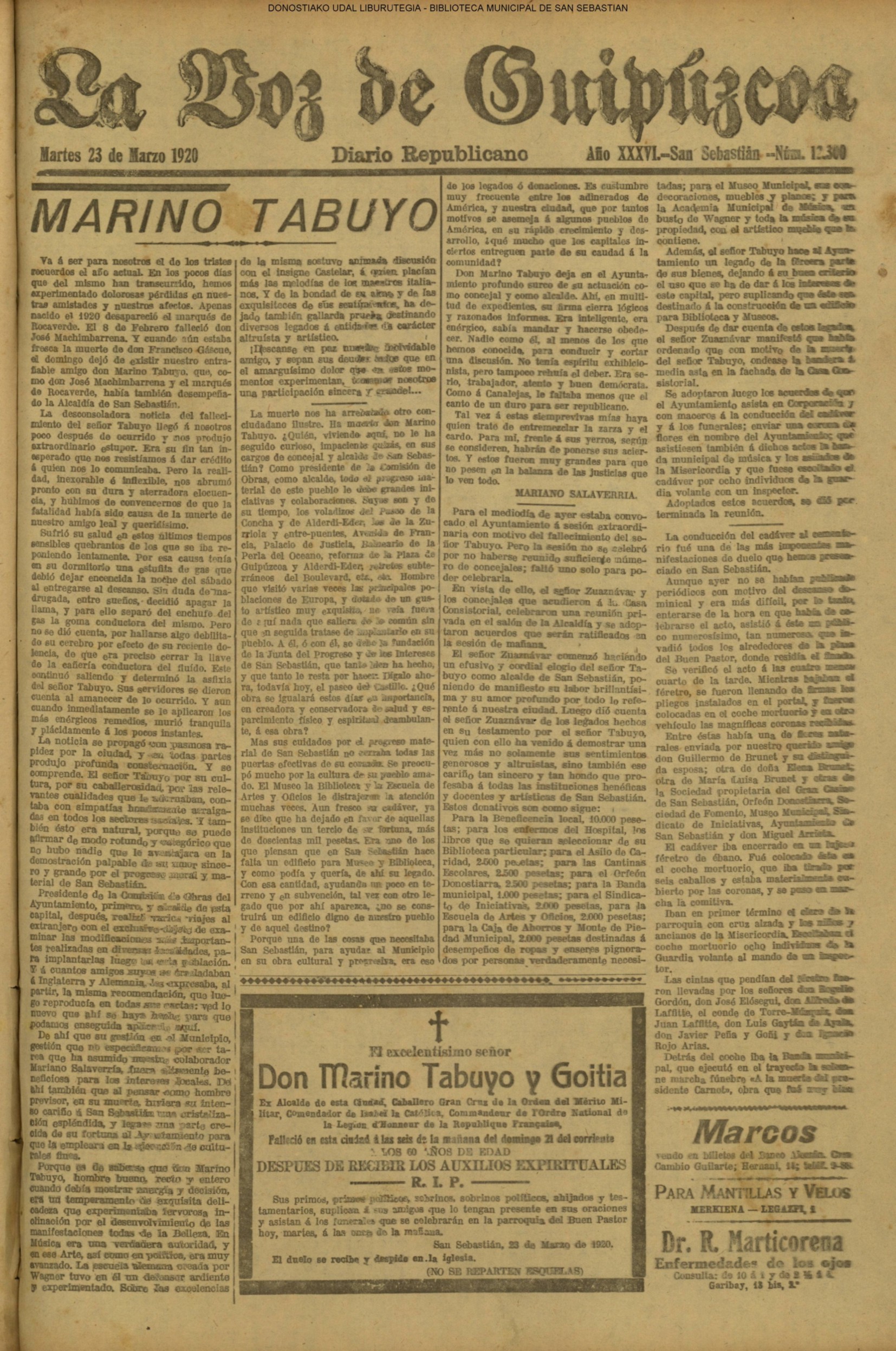 | 08.- Fallece don José Machimbarrena y Echave // Jornada Electoral // |