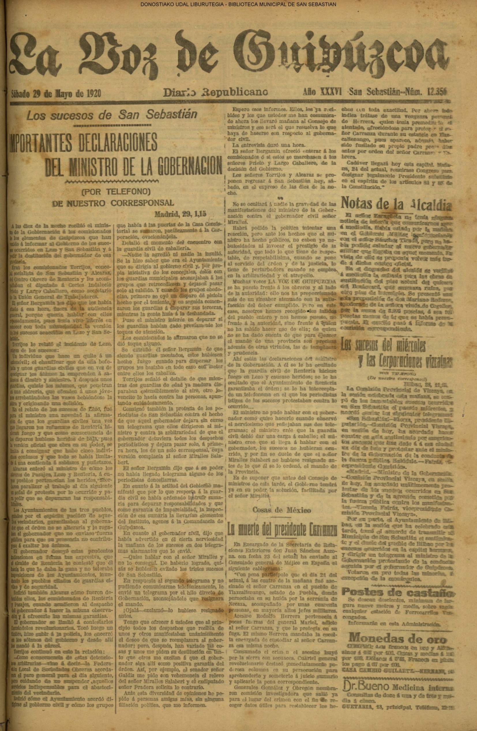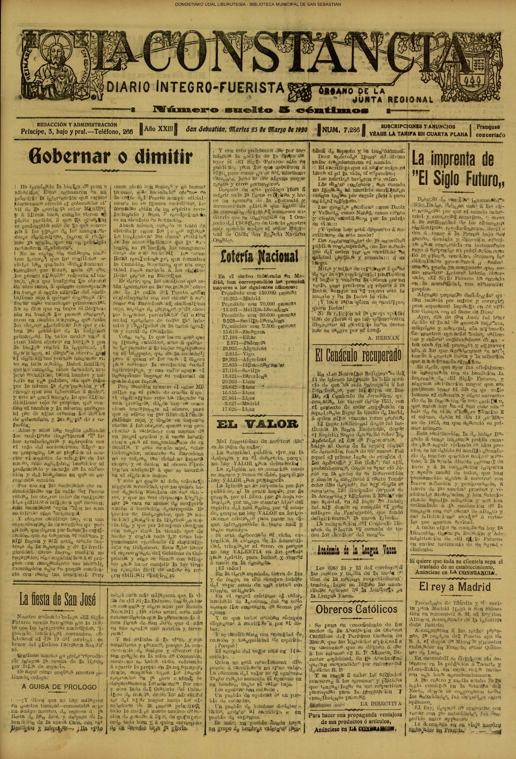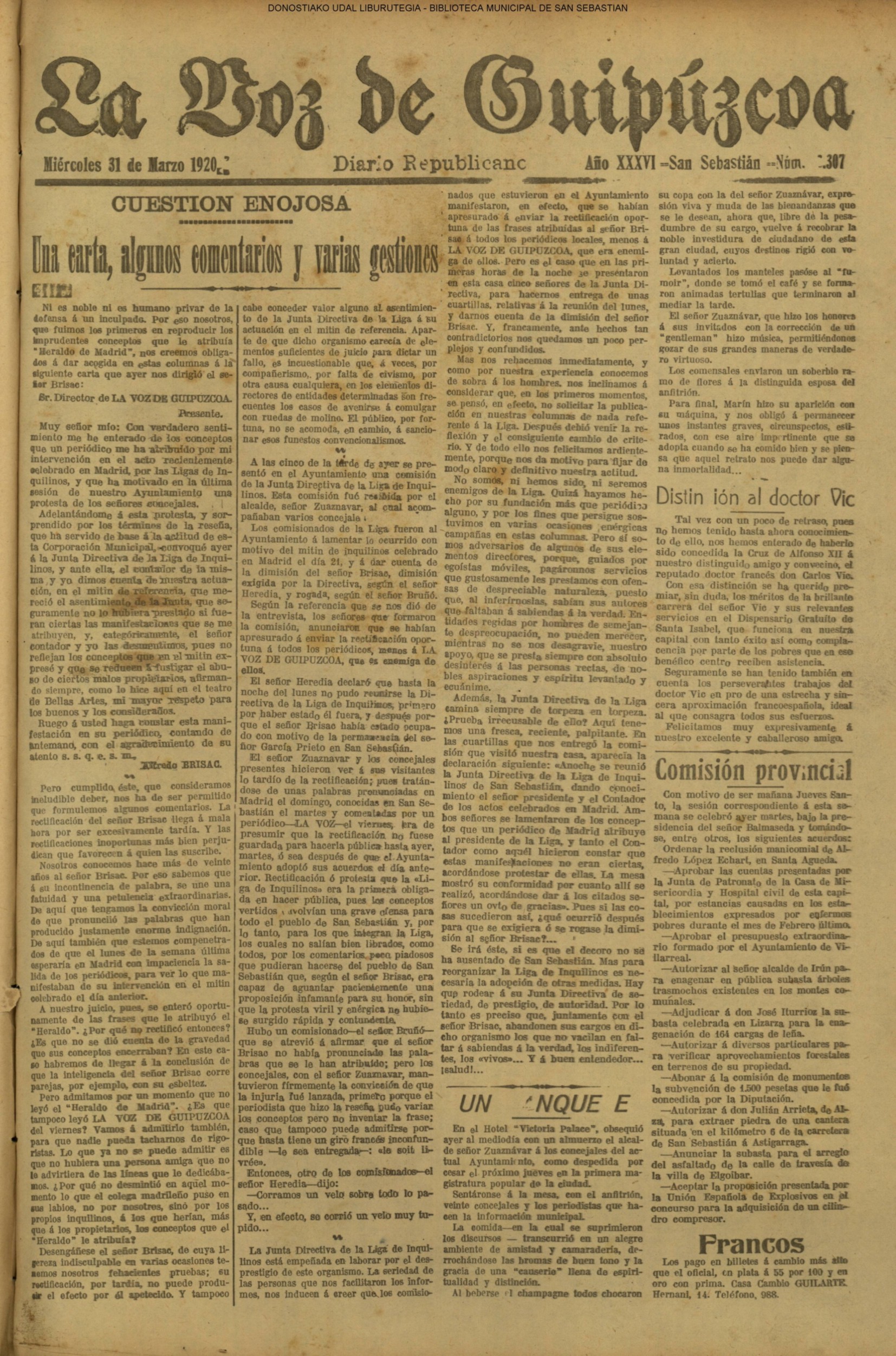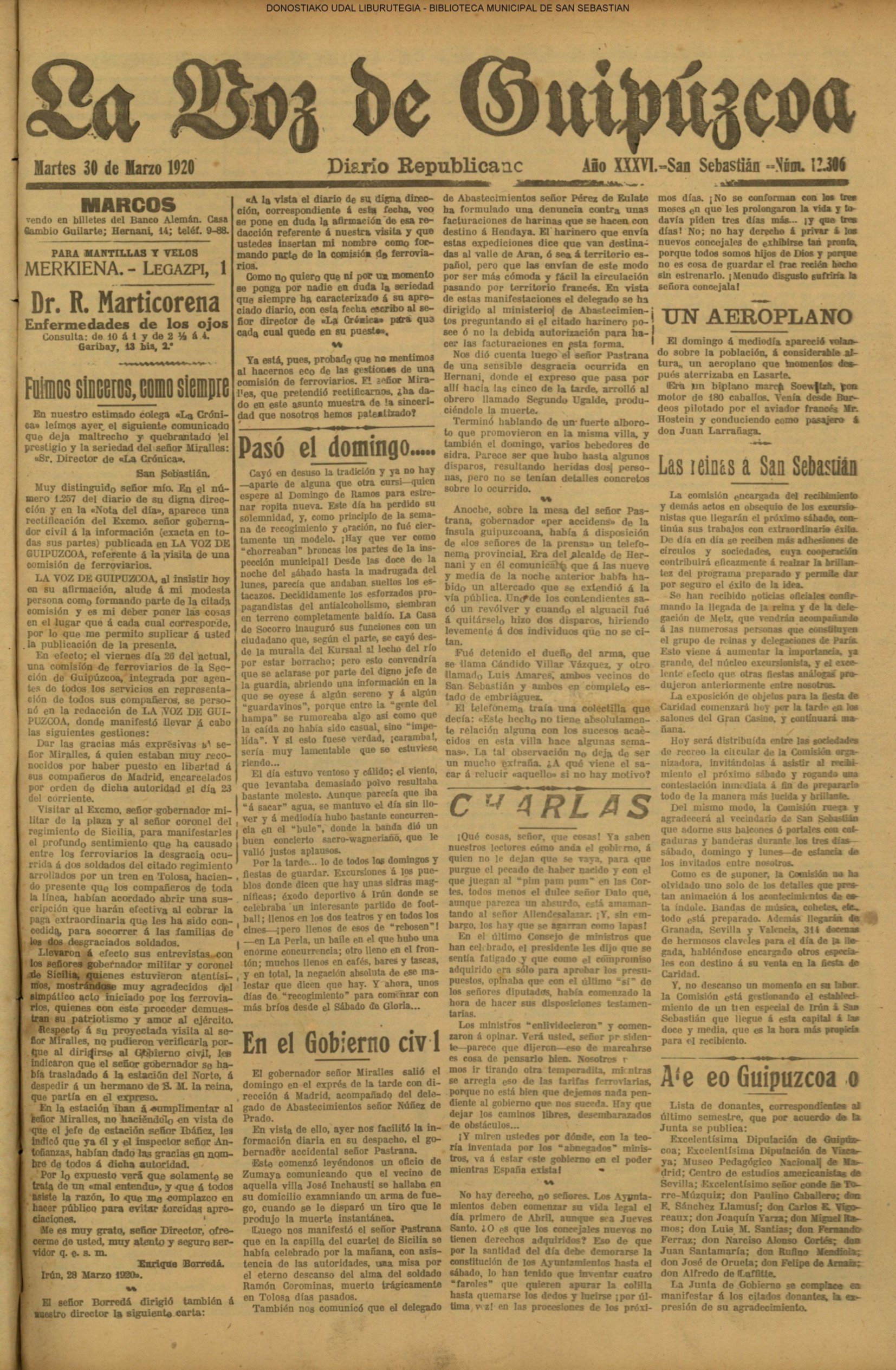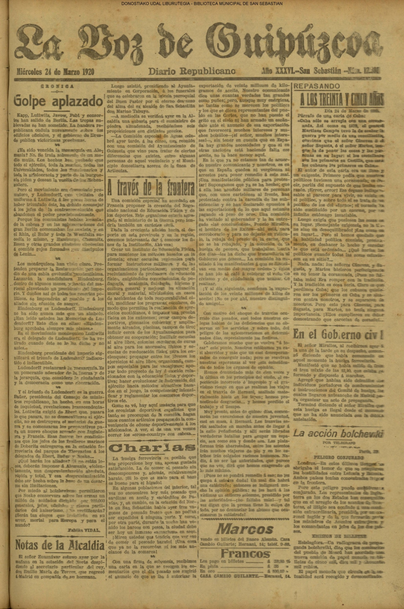 | 08.- Fallece don José Machimbarrena y Echave // Jornada Electoral // |