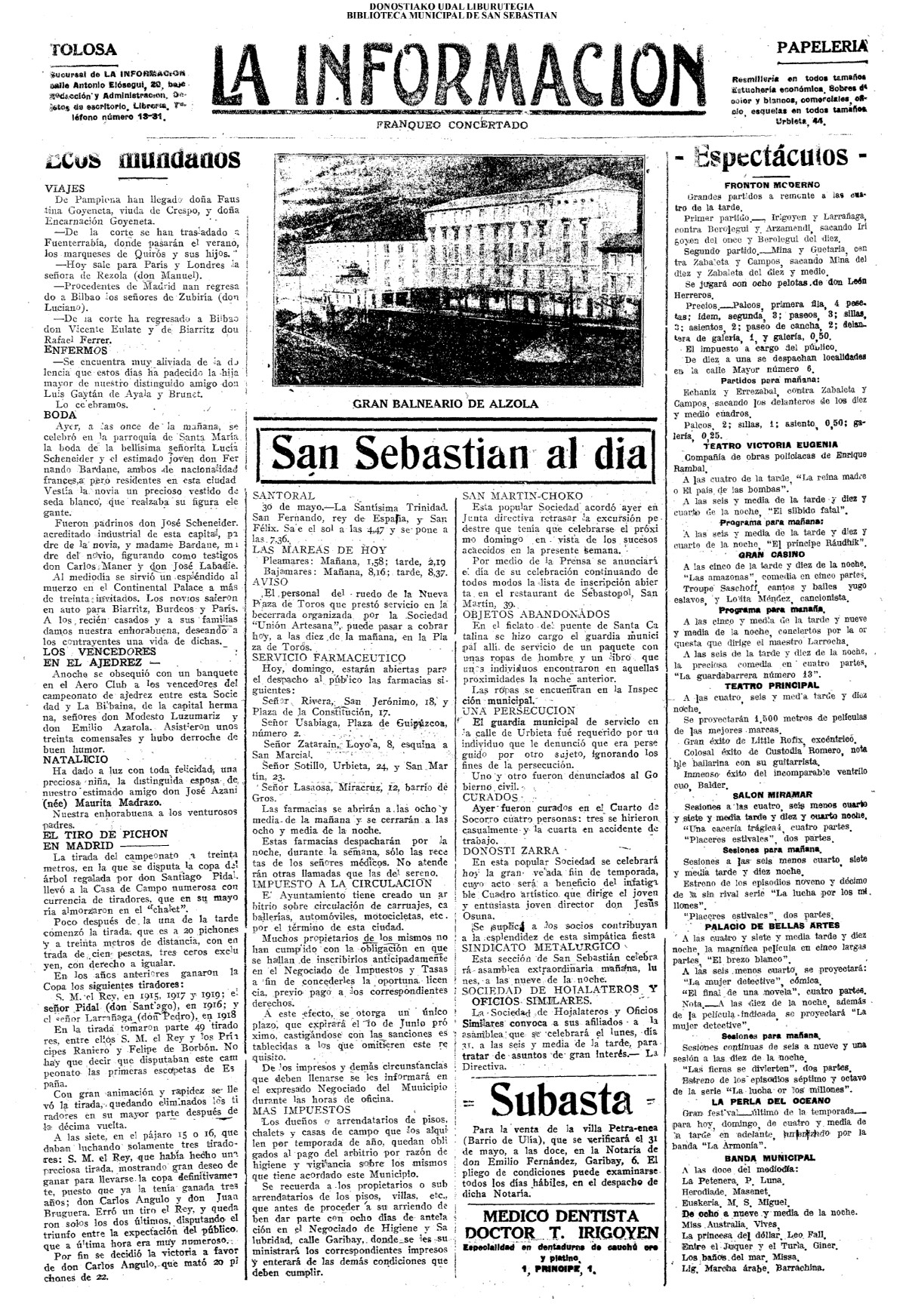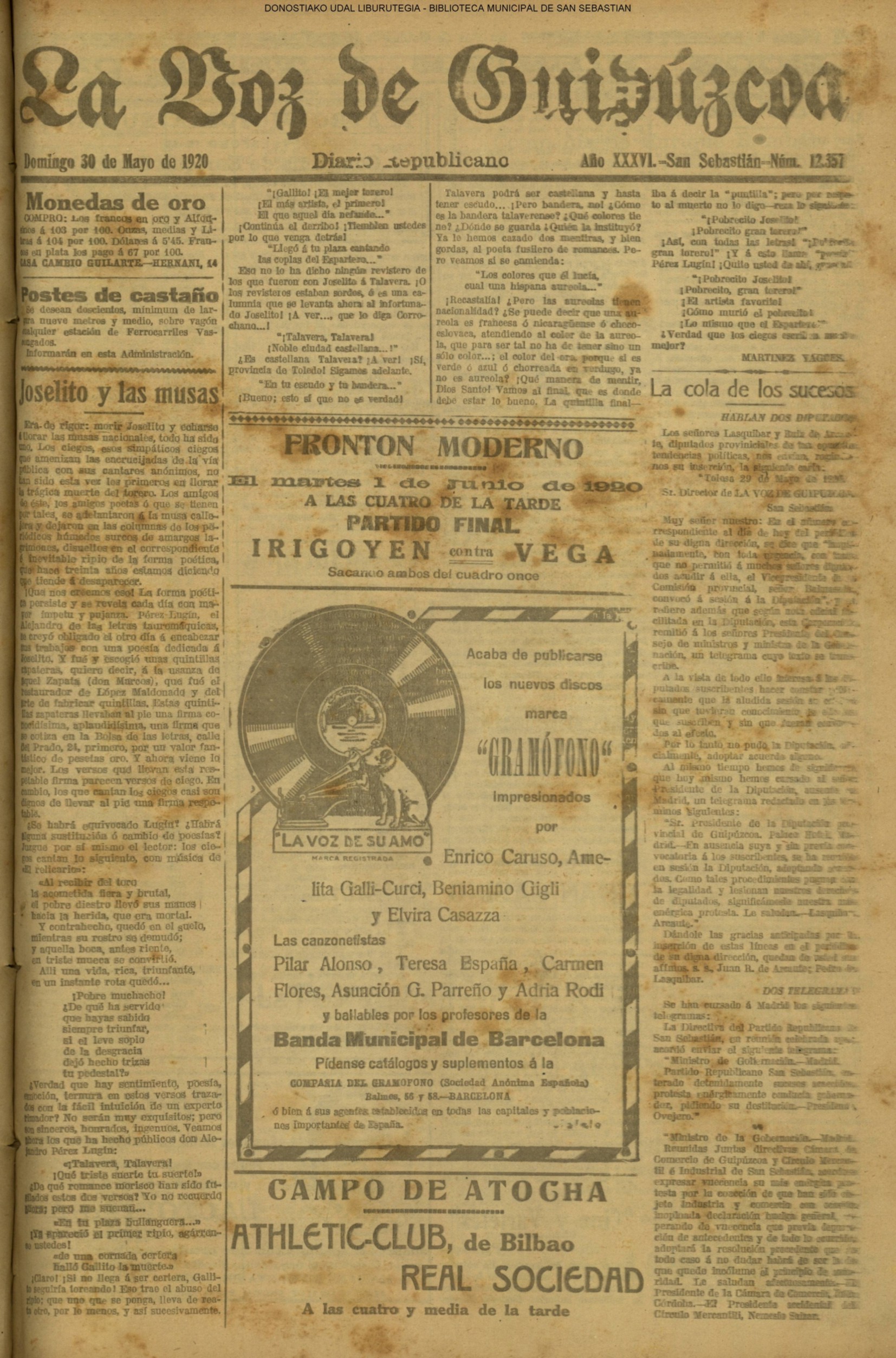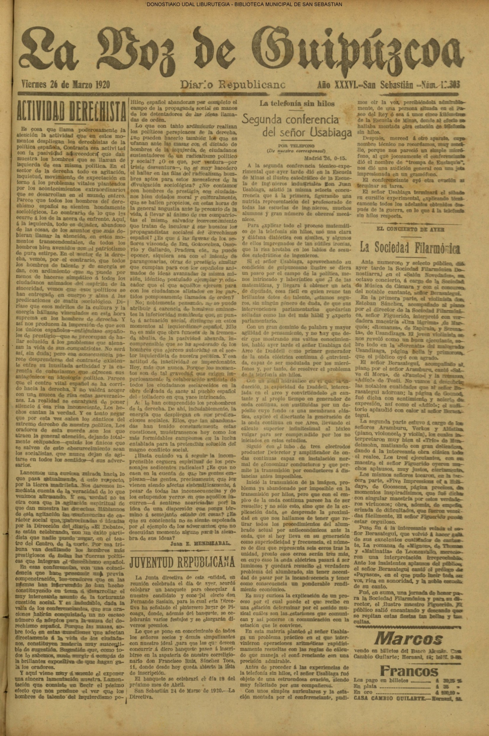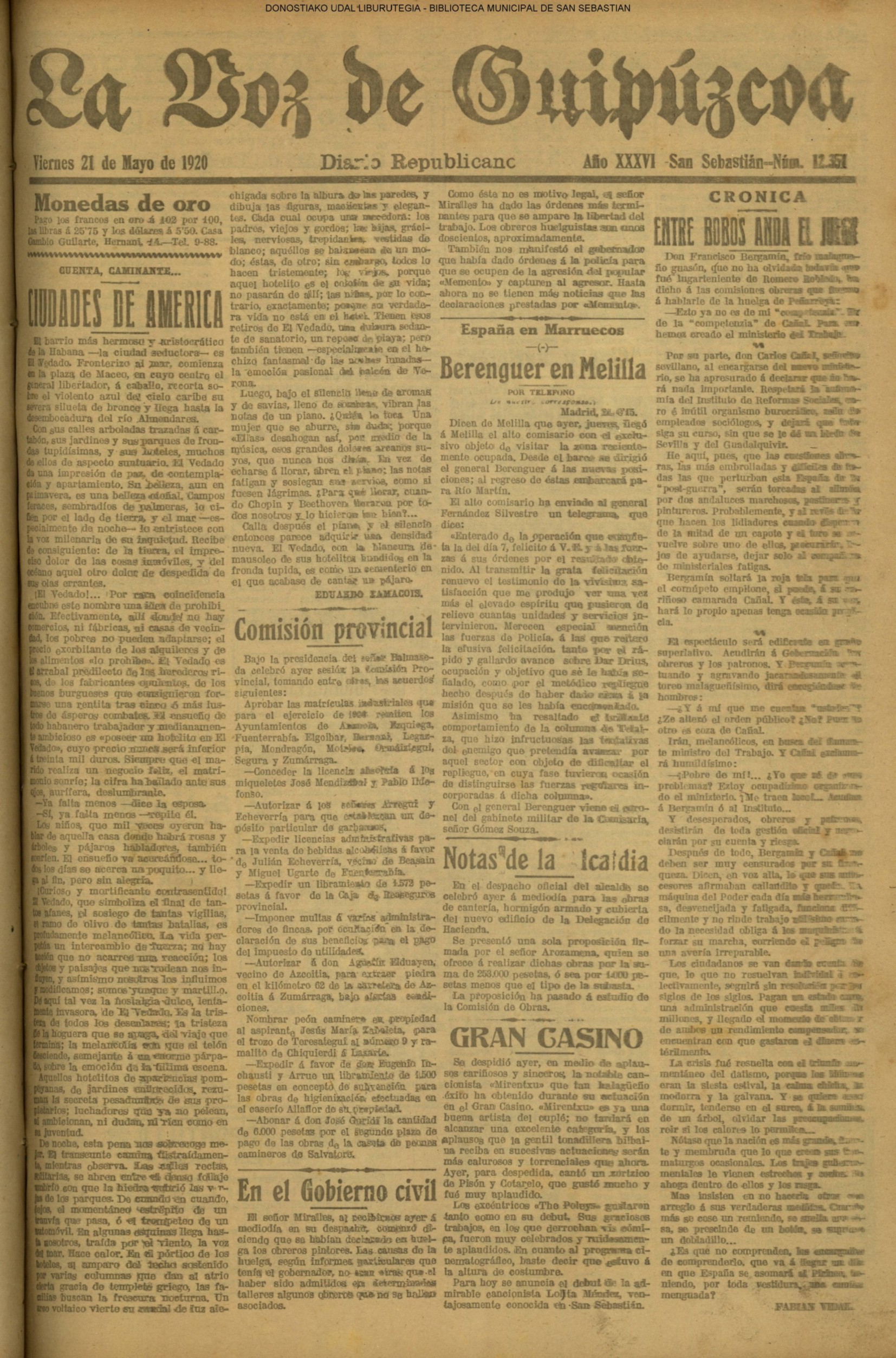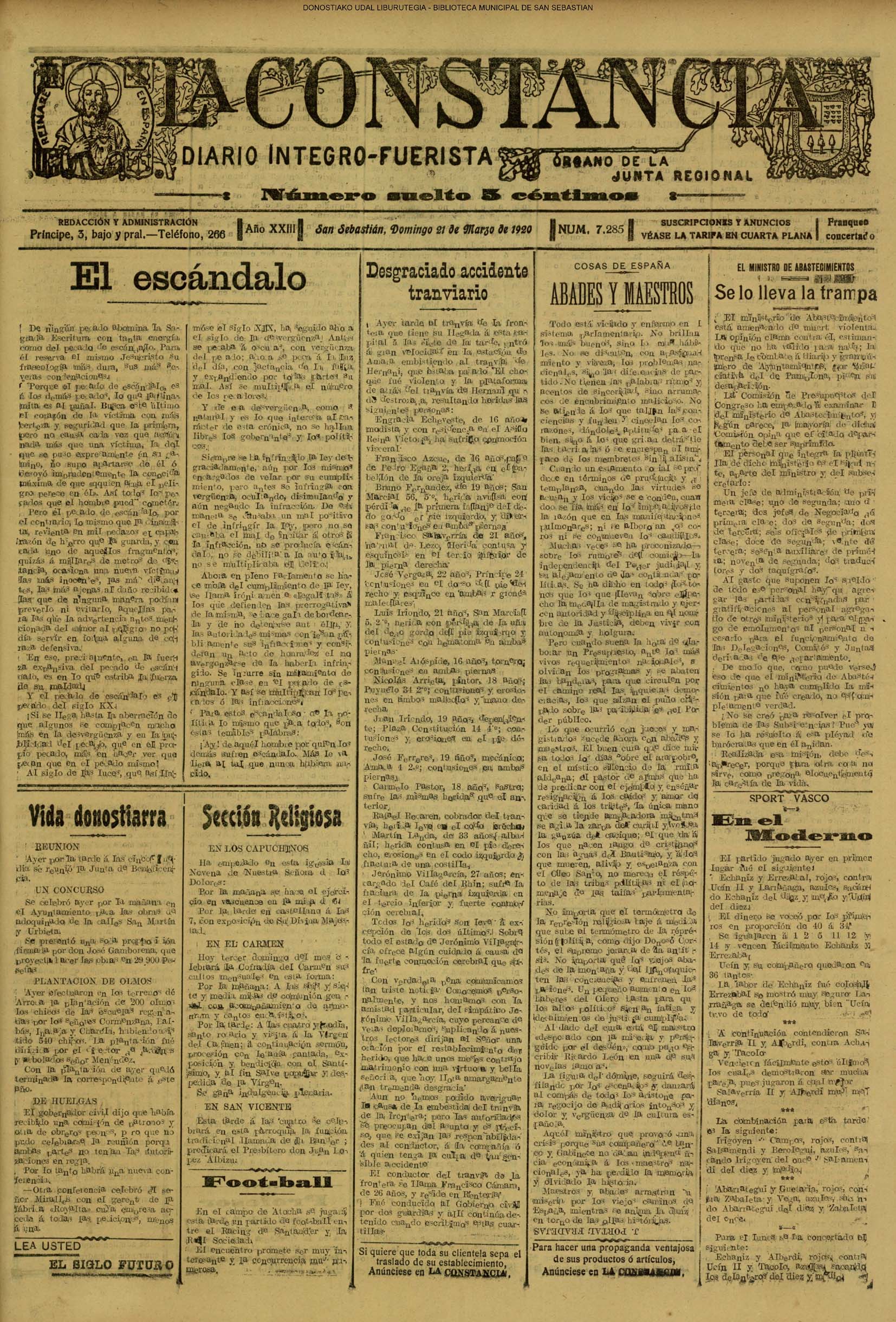 | 08.- Fallece don José Machimbarrena y Echave // Jornada Electoral // |