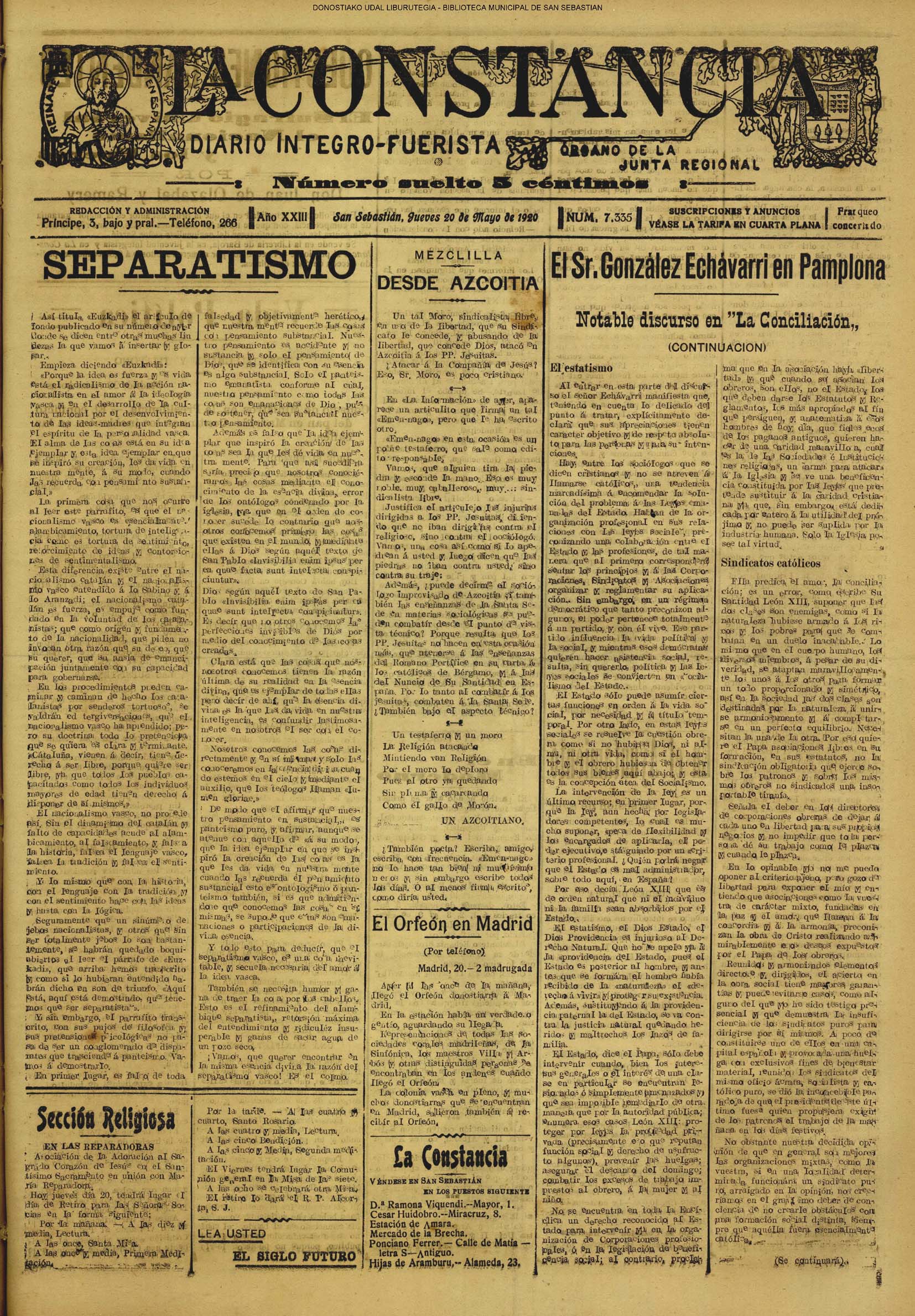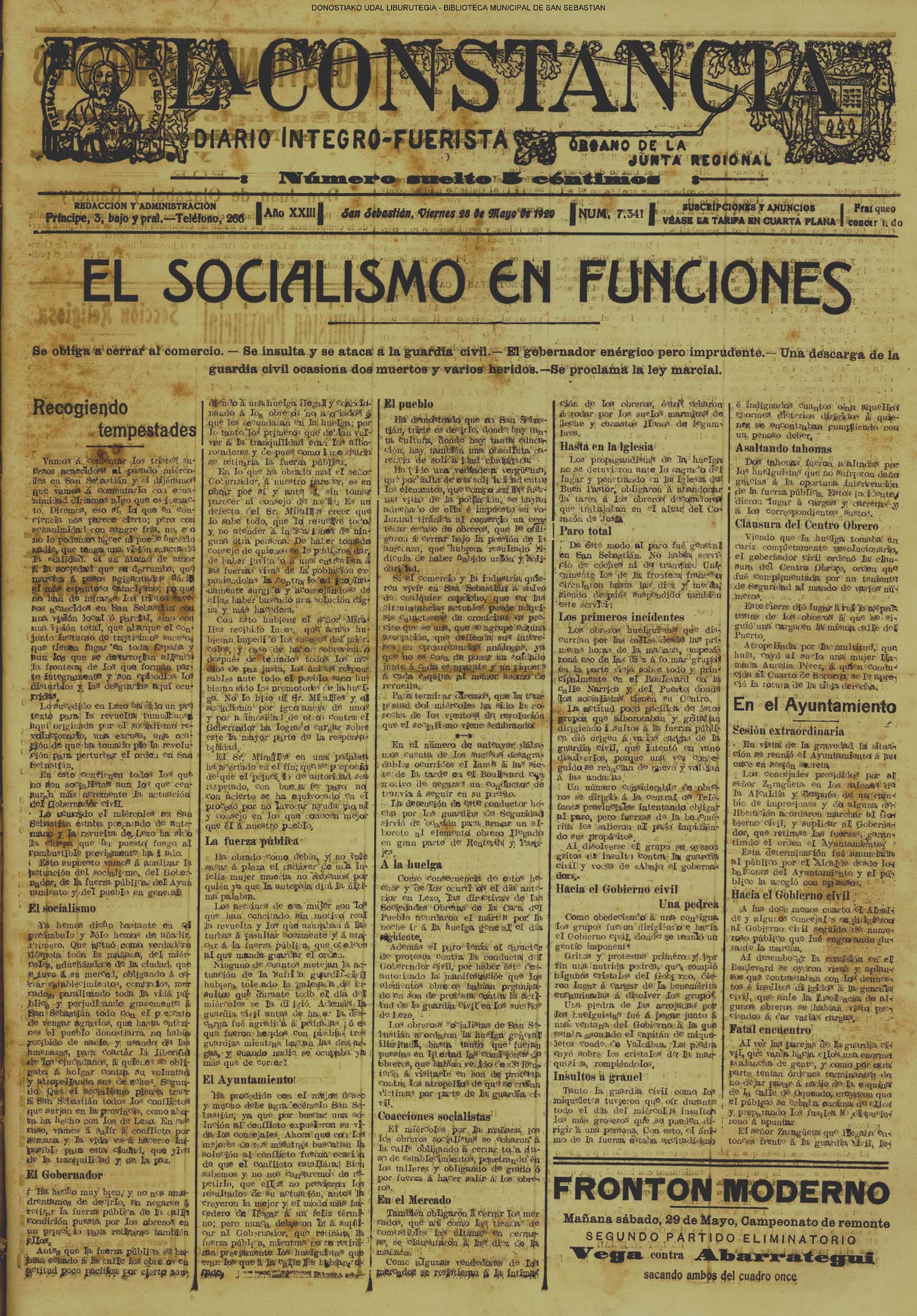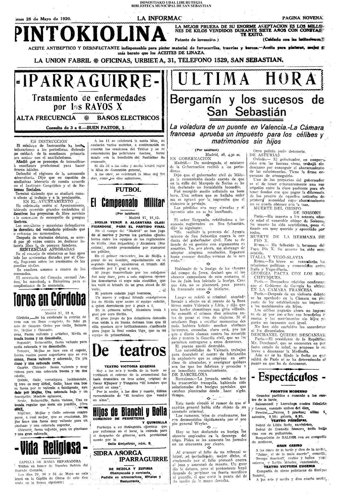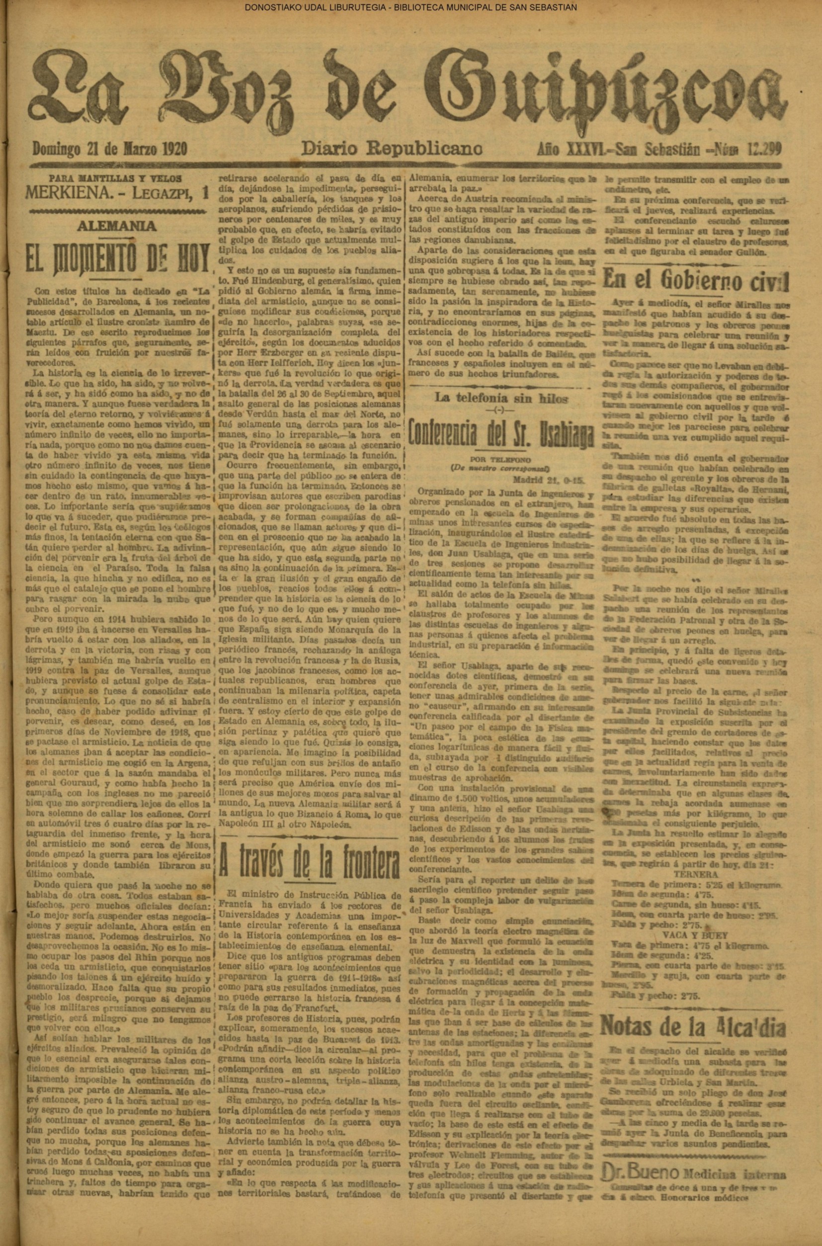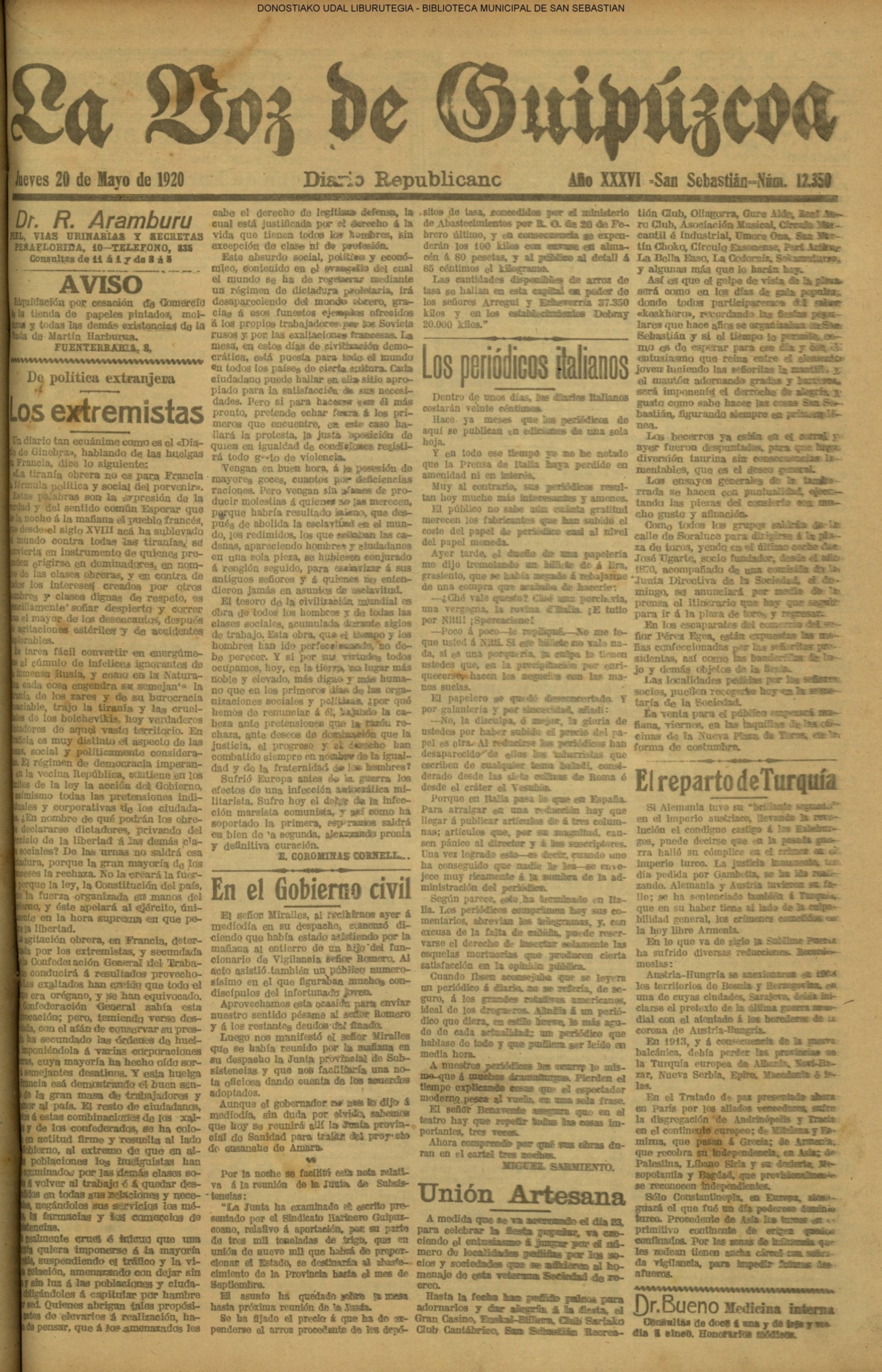 | 08.- Fallece don José Machimbarrena y Echave // Jornada Electoral // |
