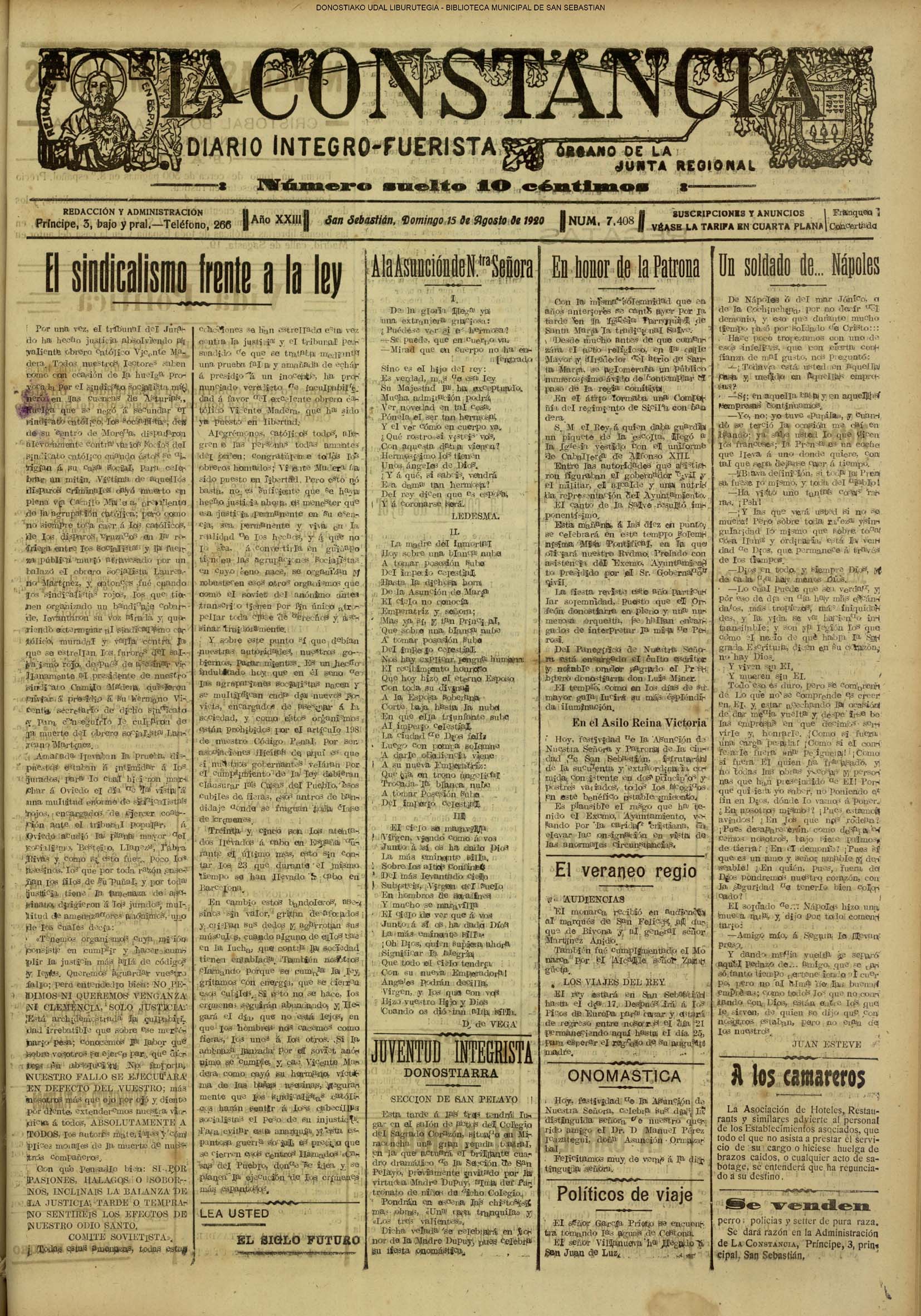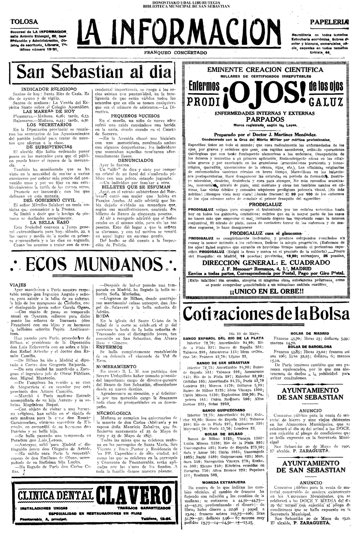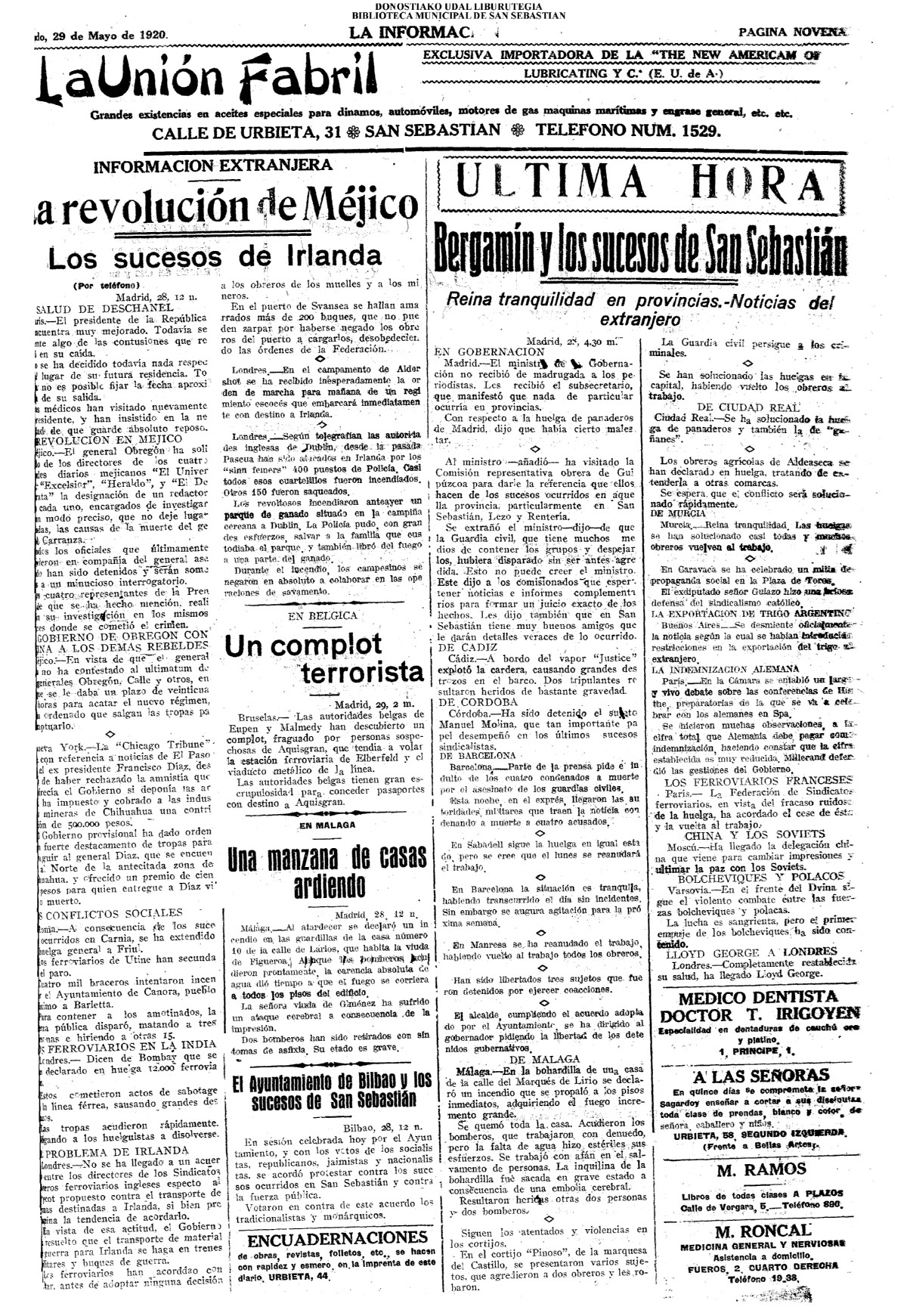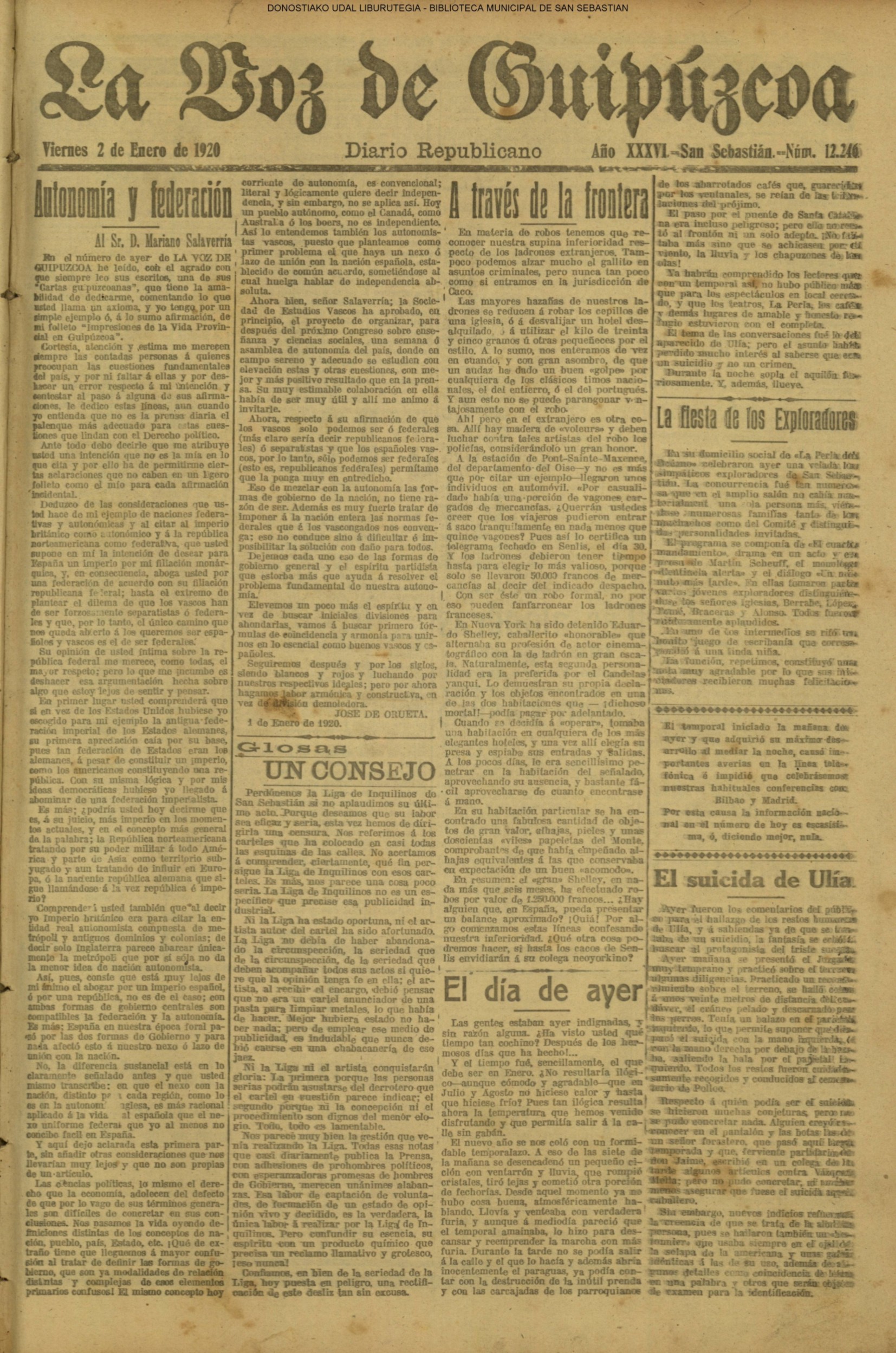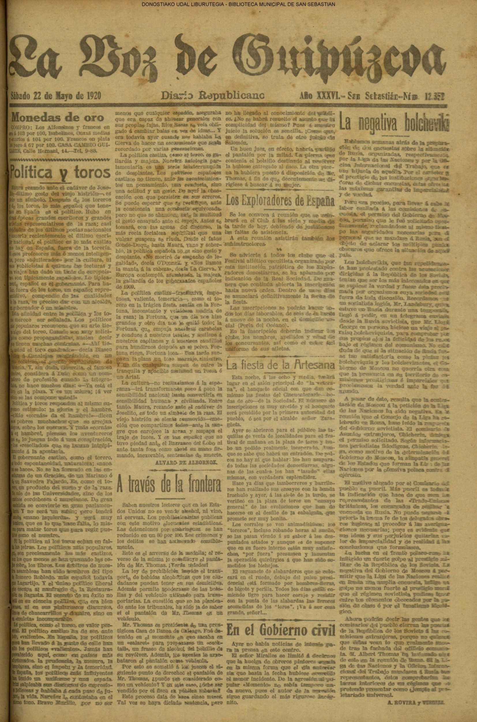 | 08.- Fallece don José Machimbarrena y Echave // Jornada Electoral // |