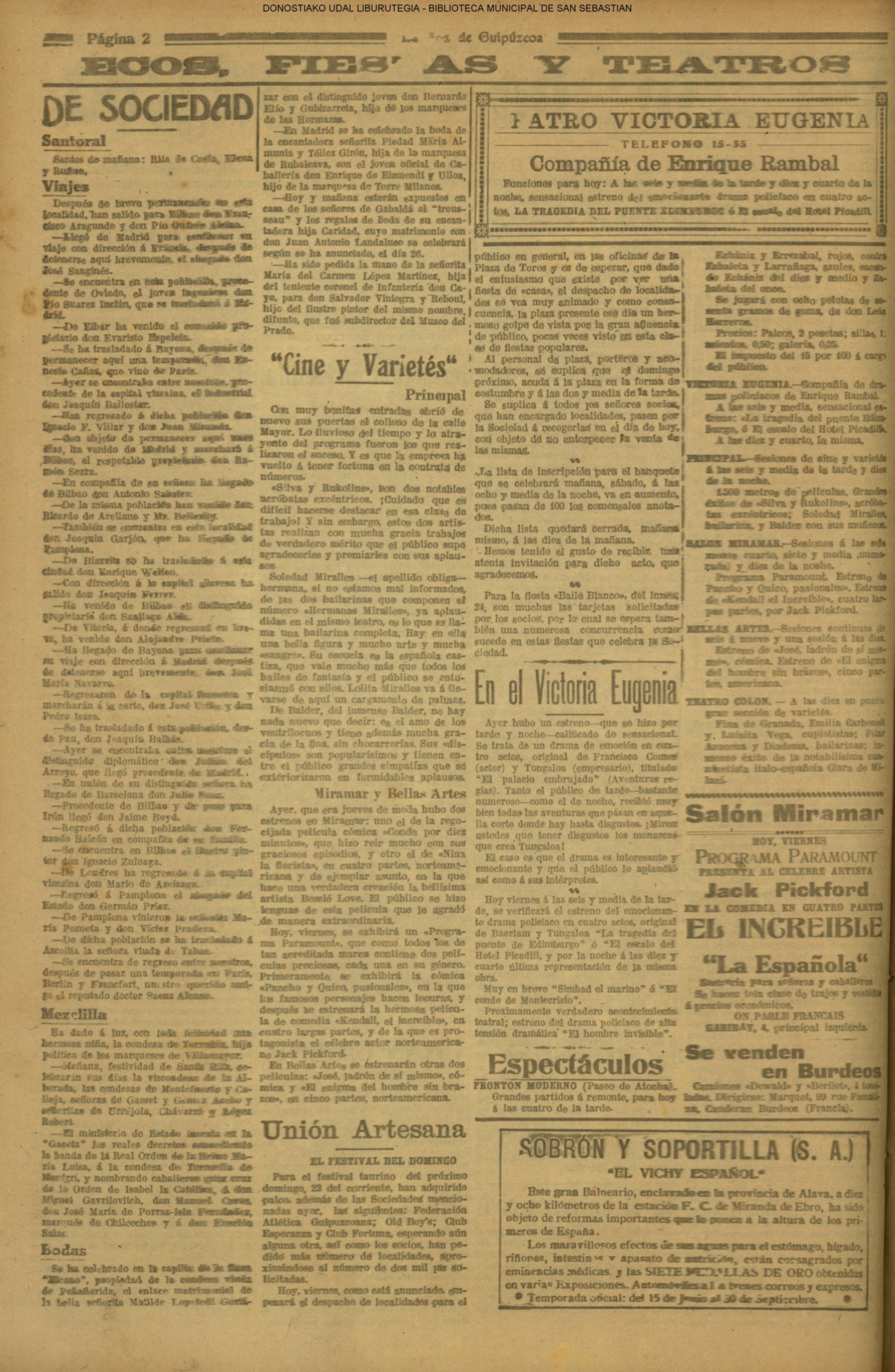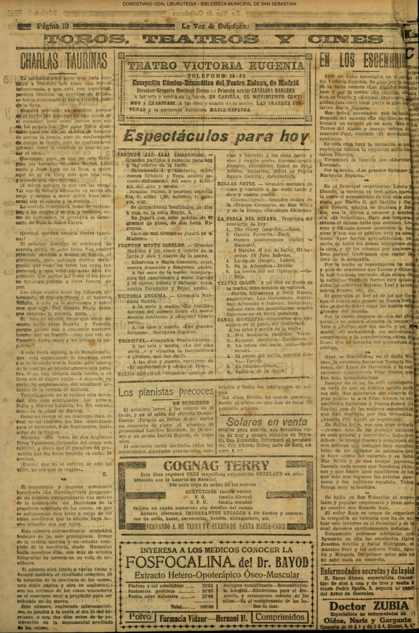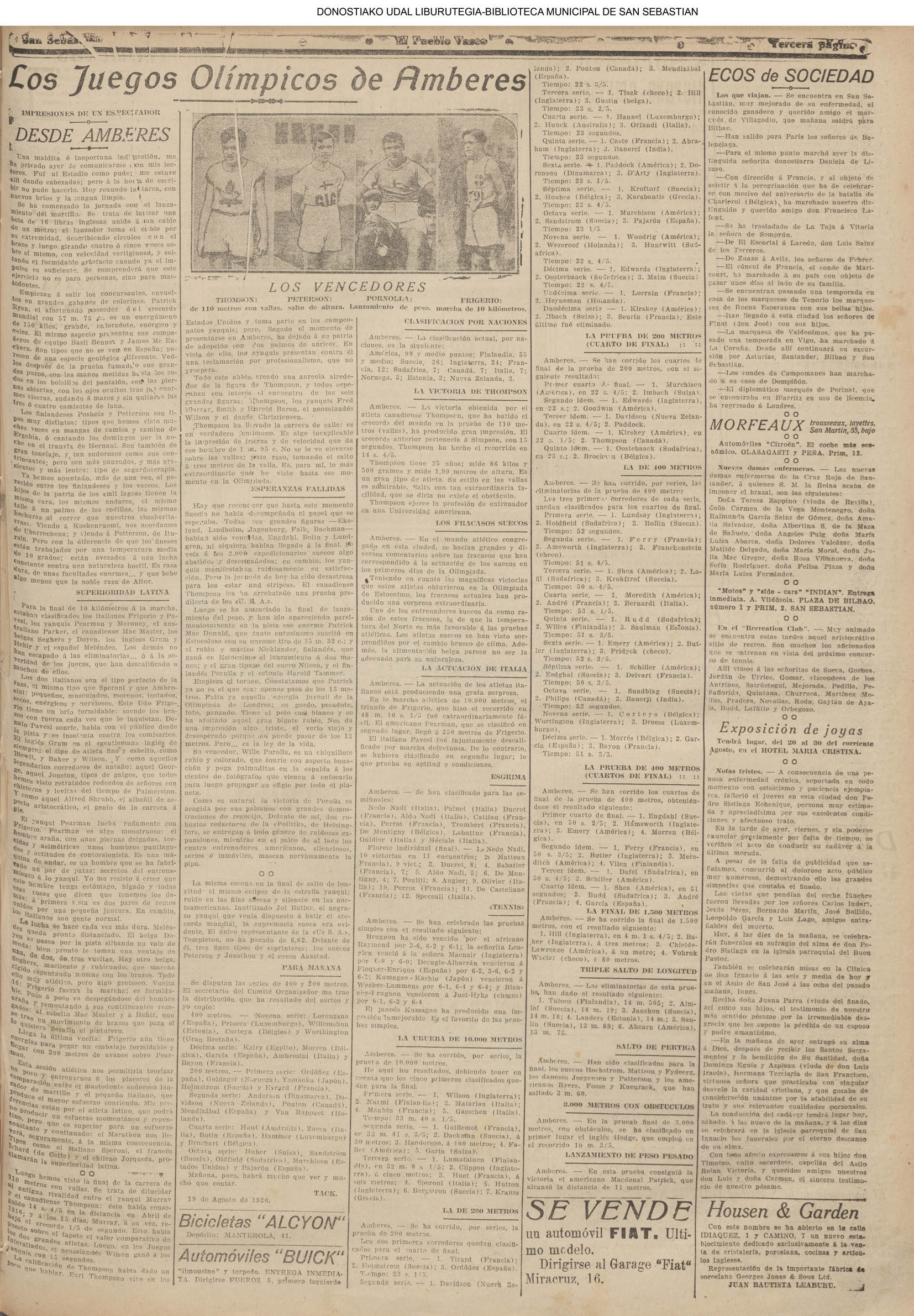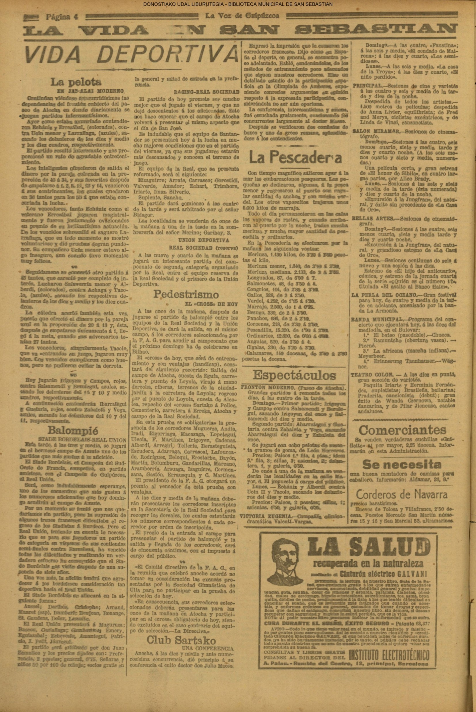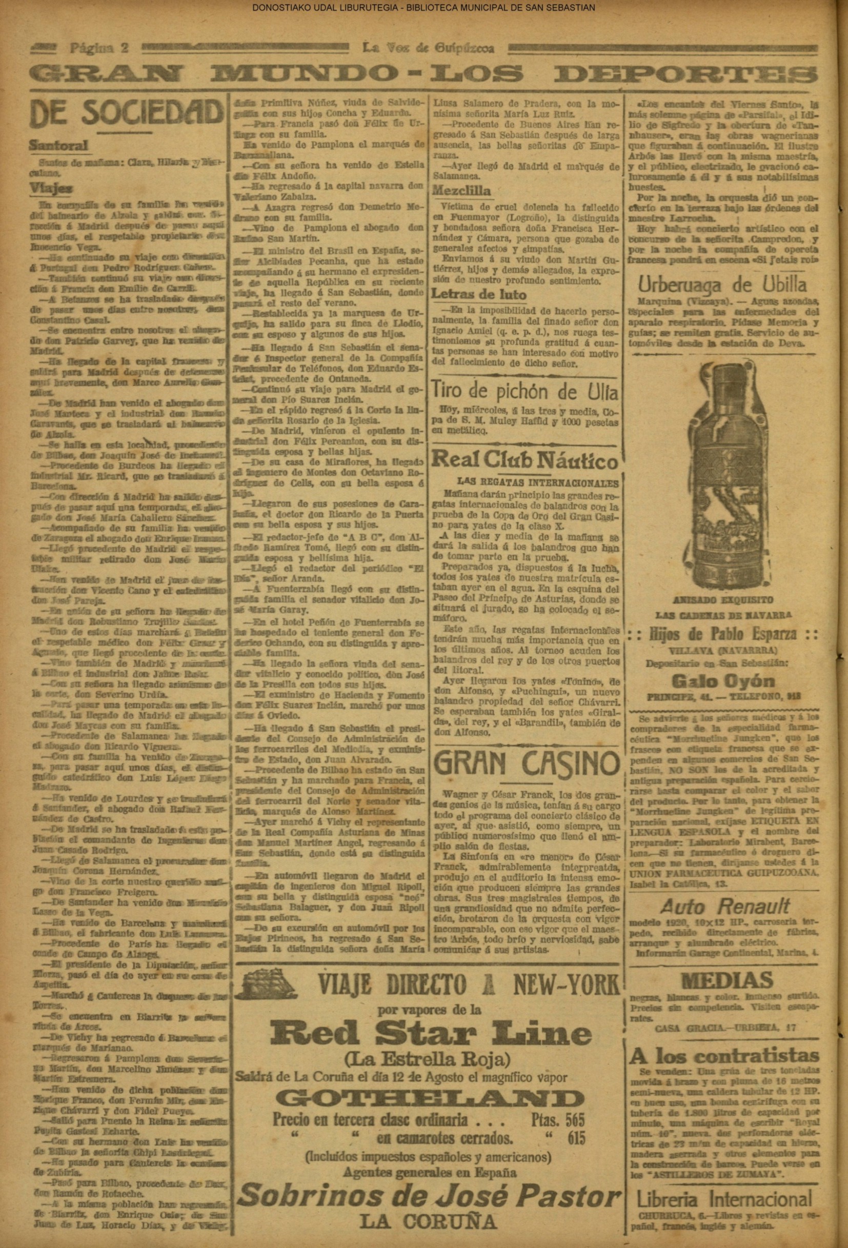 | Ayuntamiento de San Sebastián.—Concurso libre para la adjudicación de las obras de conducción de aguas desde la linea de Choritoquieta hasta la Ciudad-Jardín, pasando por el puente de Martutene, Chominenea y Loyola, de conformidad al nuevo presupuesto formalizado para la ejecución de las mismas y con estricta sujeción al pliego de condiciones que ha de regir la contrata que se halla de manifiesto en la Secretaria municipal. Los concursantes podrán presentar sus solicitudes en la mencionada Secretaria todos los días laborables, desde las nueve de la mañana a las dos de la tarde, donde se admitirán cuantas proposiciones se presenten hasta las doce de la mañana del día 16 de septiembre próximo; dia y hora señalados para proceder a la apertura de los pliegos presentados. San Sebastián, 14 de agosto de 1920.—El alcalde, Pedro Zaragüeta. (La Construcción moderna. 30/8/1920, no. 16.,p.18) |