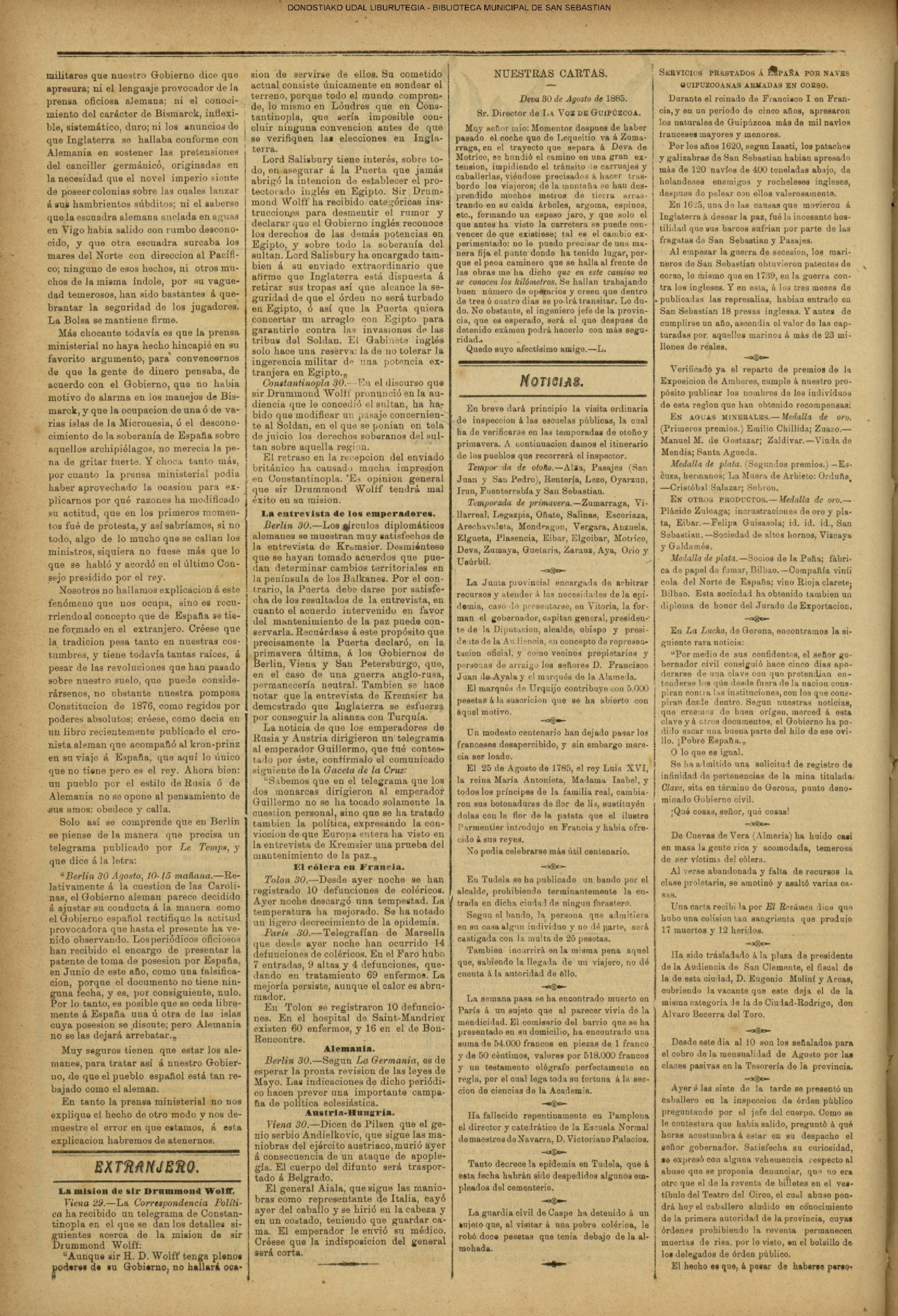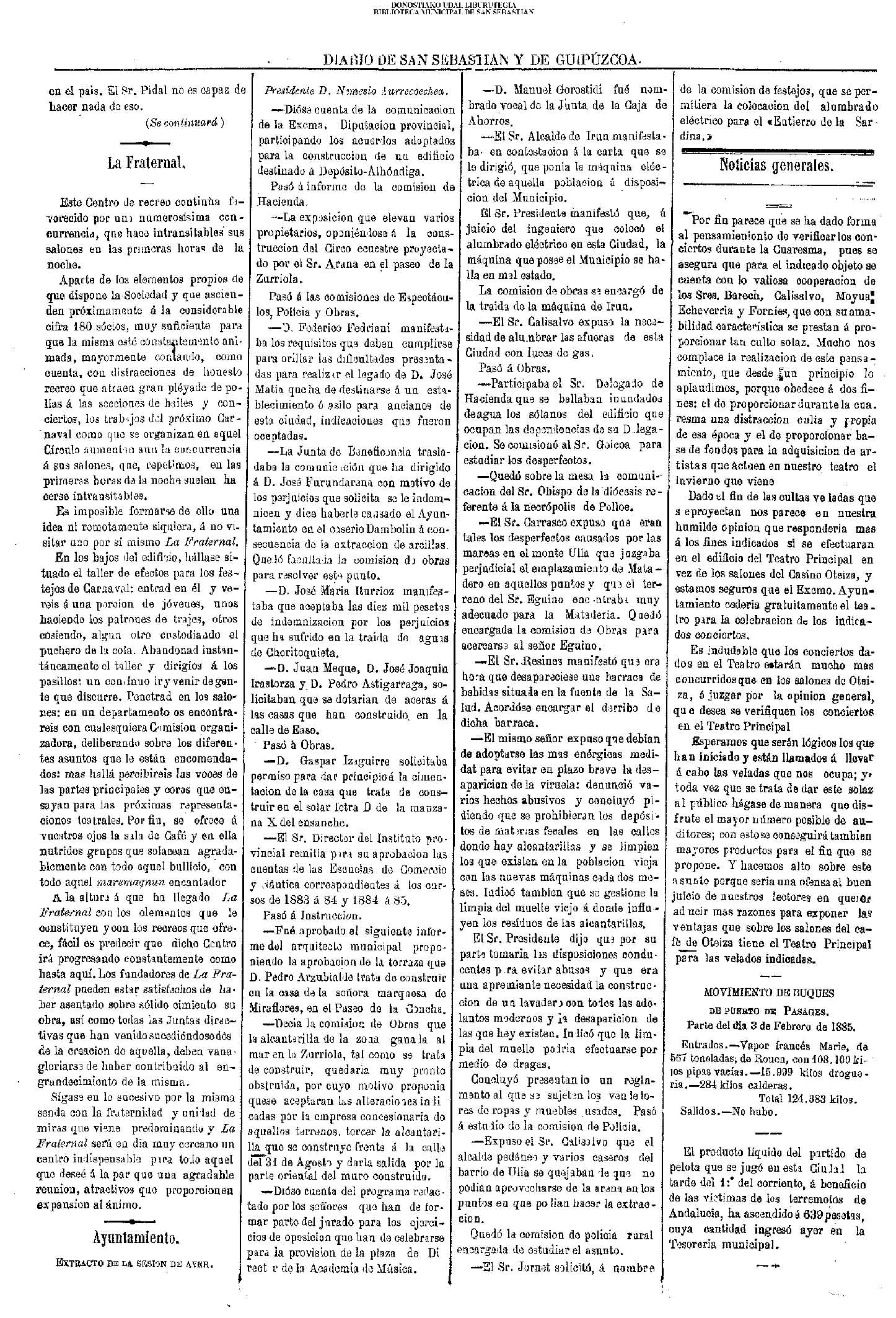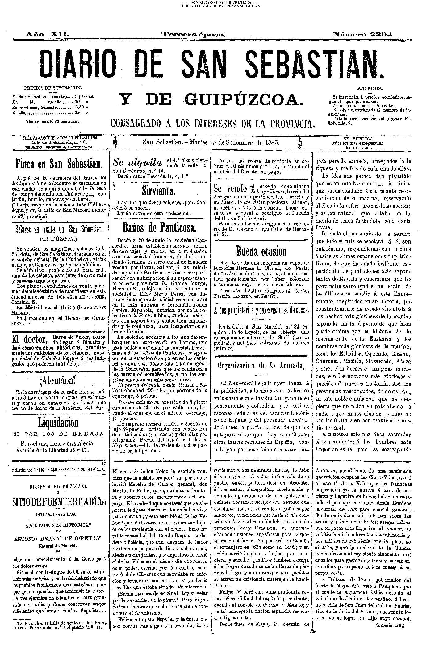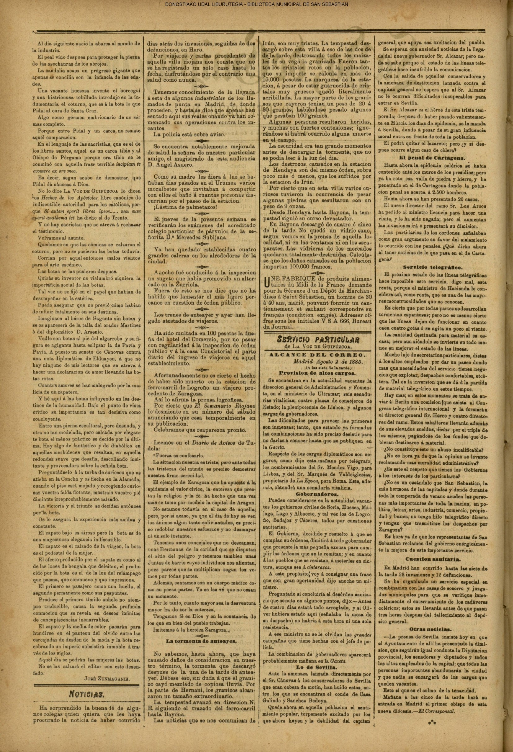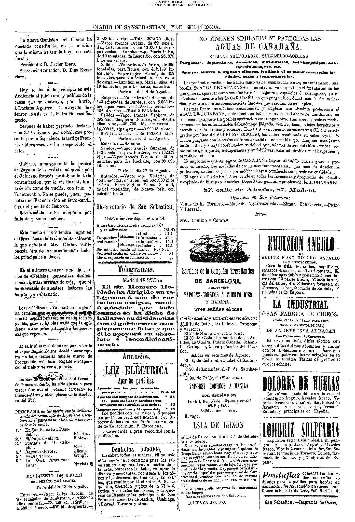A la vez, probablemente, tendrá lugar con gran ceremonia la imposición de la cruz de Beneficencia al director de dichas obras, D. Sebastián Cámio, y a los contramaestres Francisco Mambrona y Vicente Urresti, quienes la tienen justamente ganada por actos heroicos de valor, llevados a cabo en la terrible barra del Urumea.