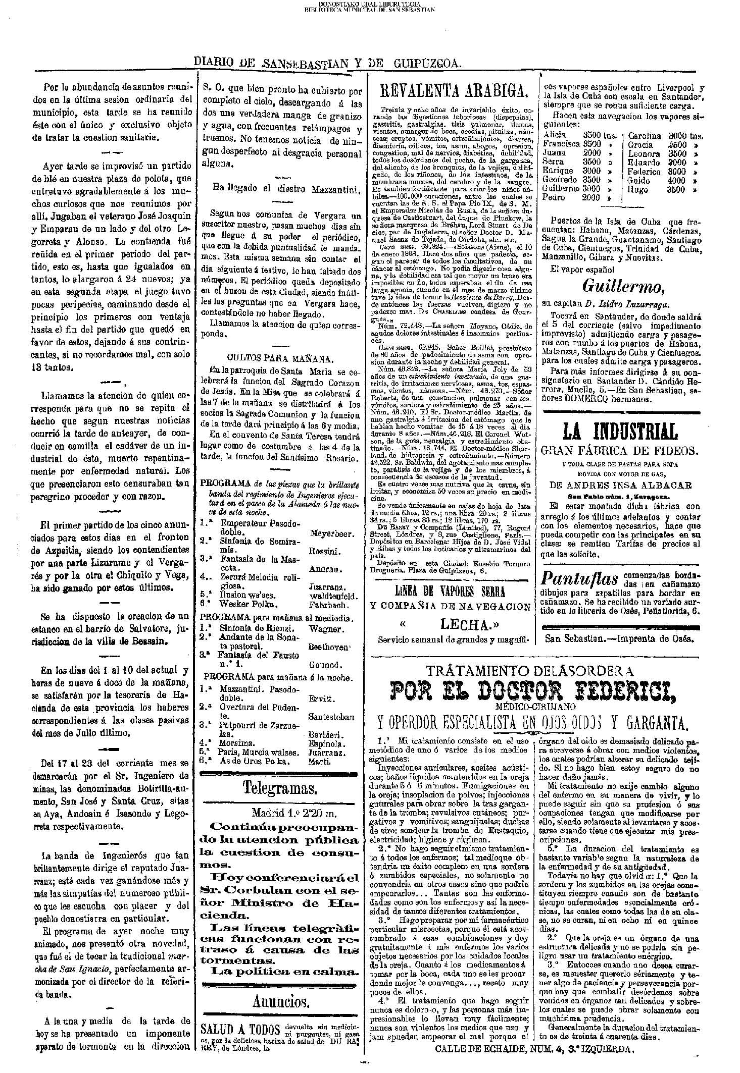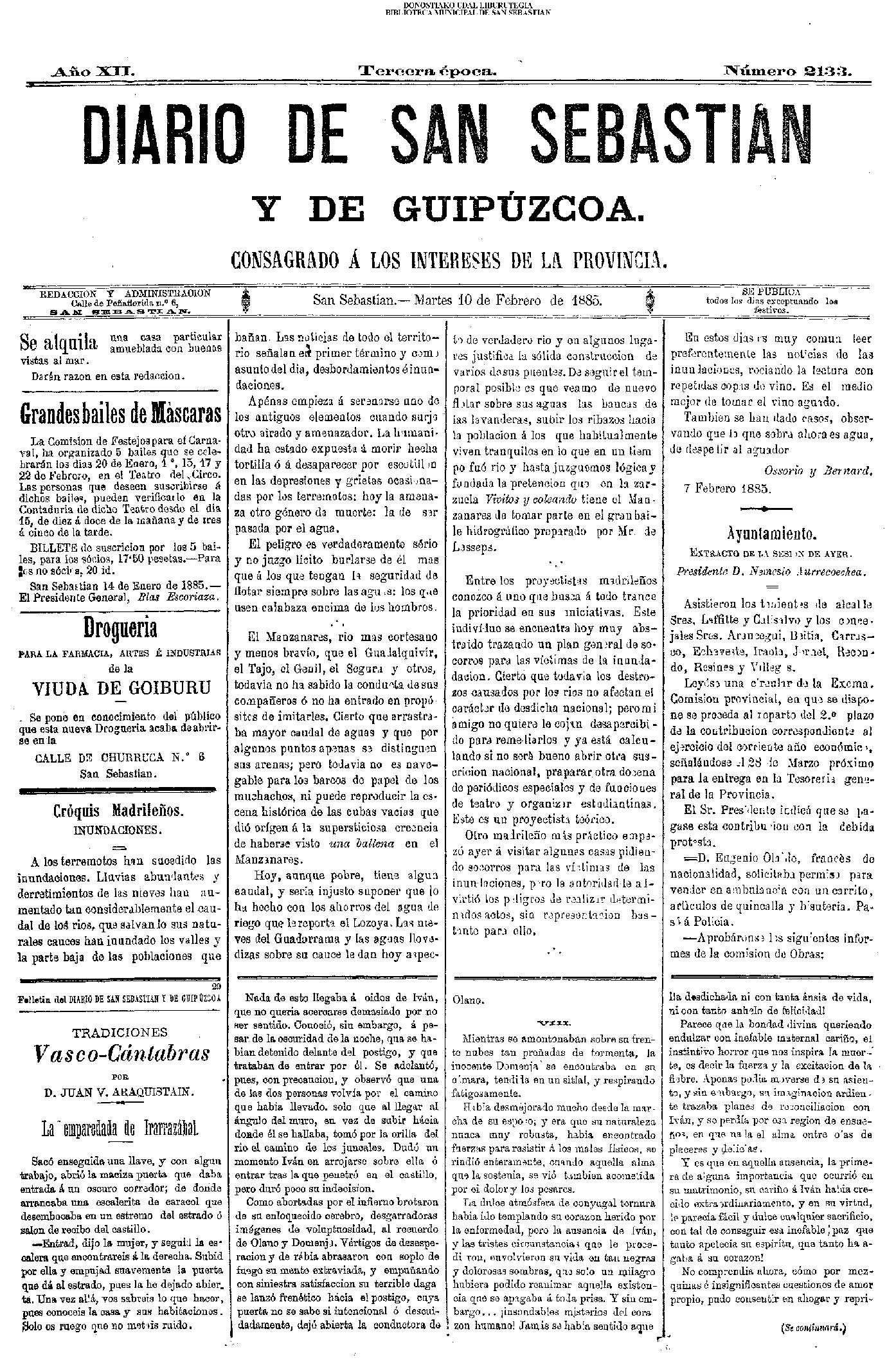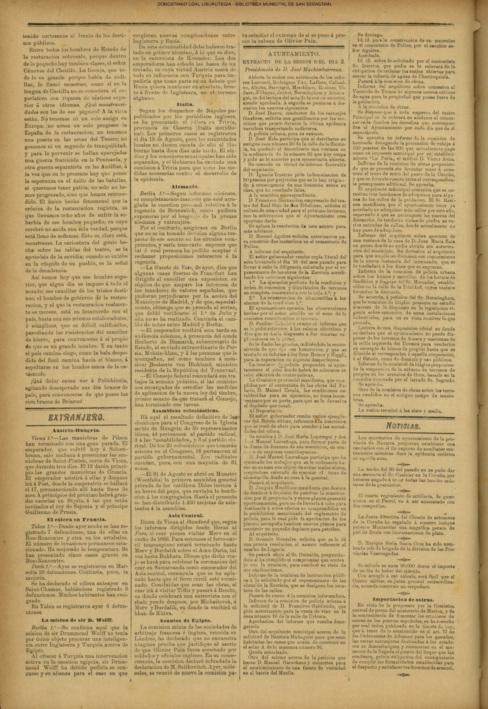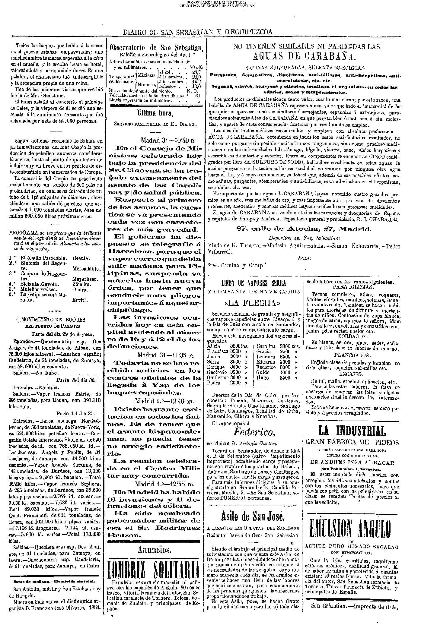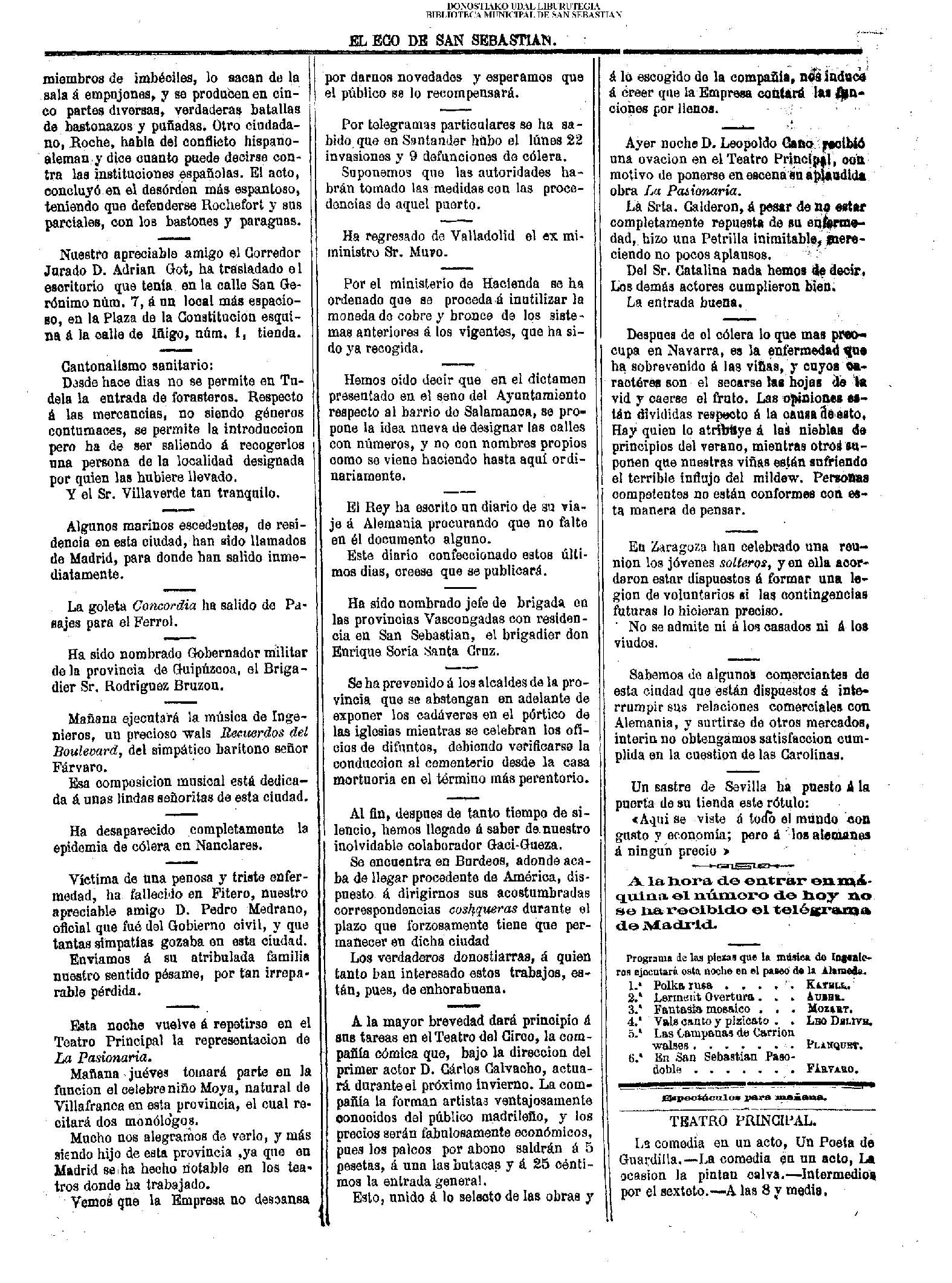 A la vez, probablemente, tendrá lugar con gran ceremonia la imposición de la cruz de Beneficencia al director de dichas obras, D. Sebastián Cámio, y a los contramaestres Francisco Mambrona y Vicente Urresti, quienes la tienen justamente ganada por actos heroicos de valor, llevados a cabo en la terrible barra del Urumea.