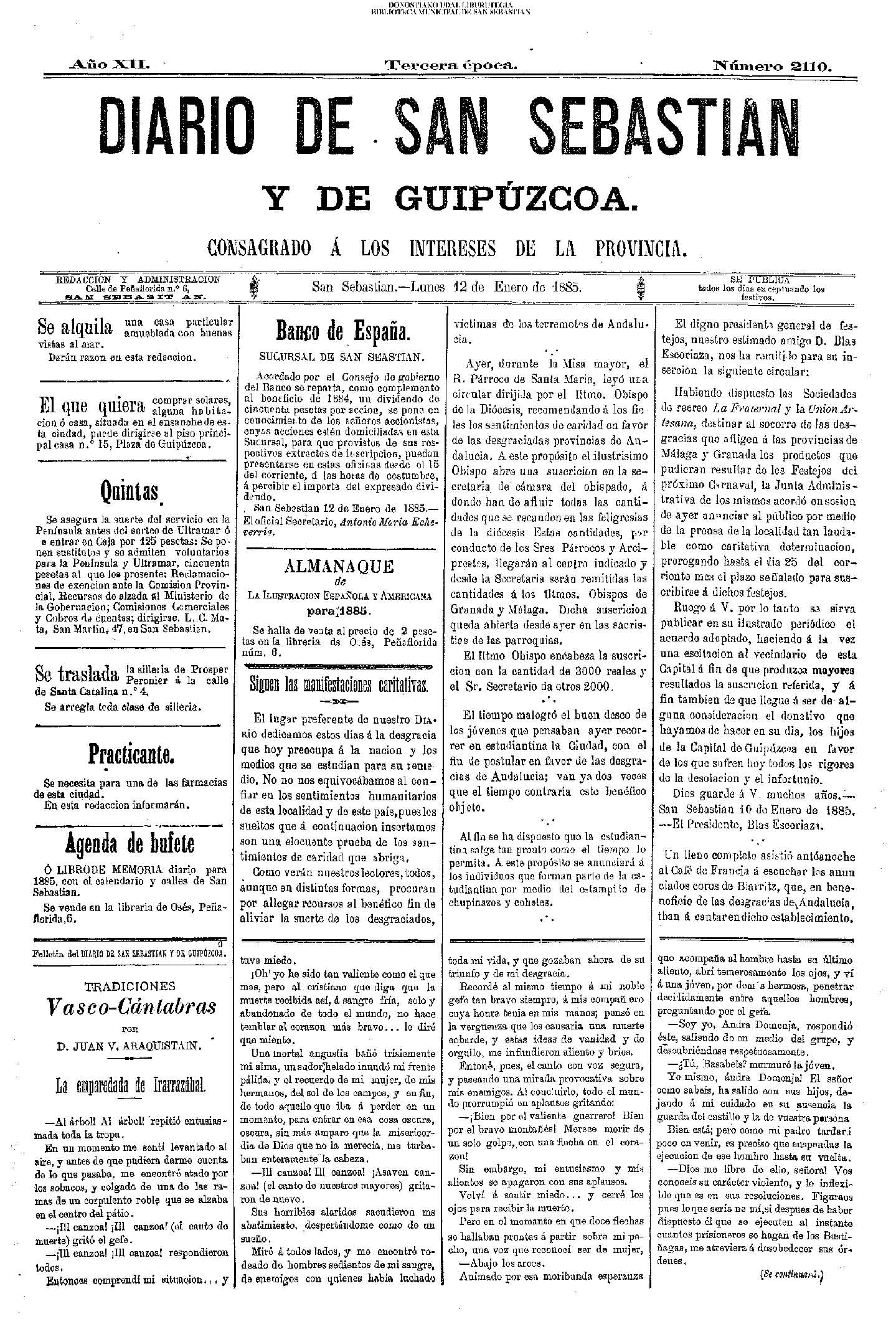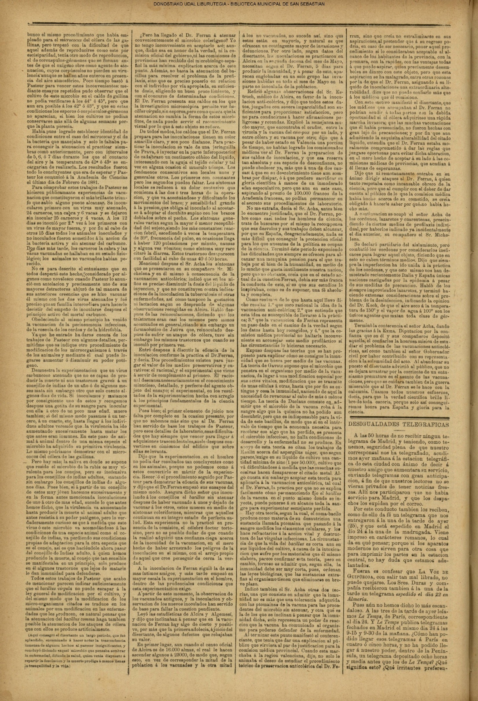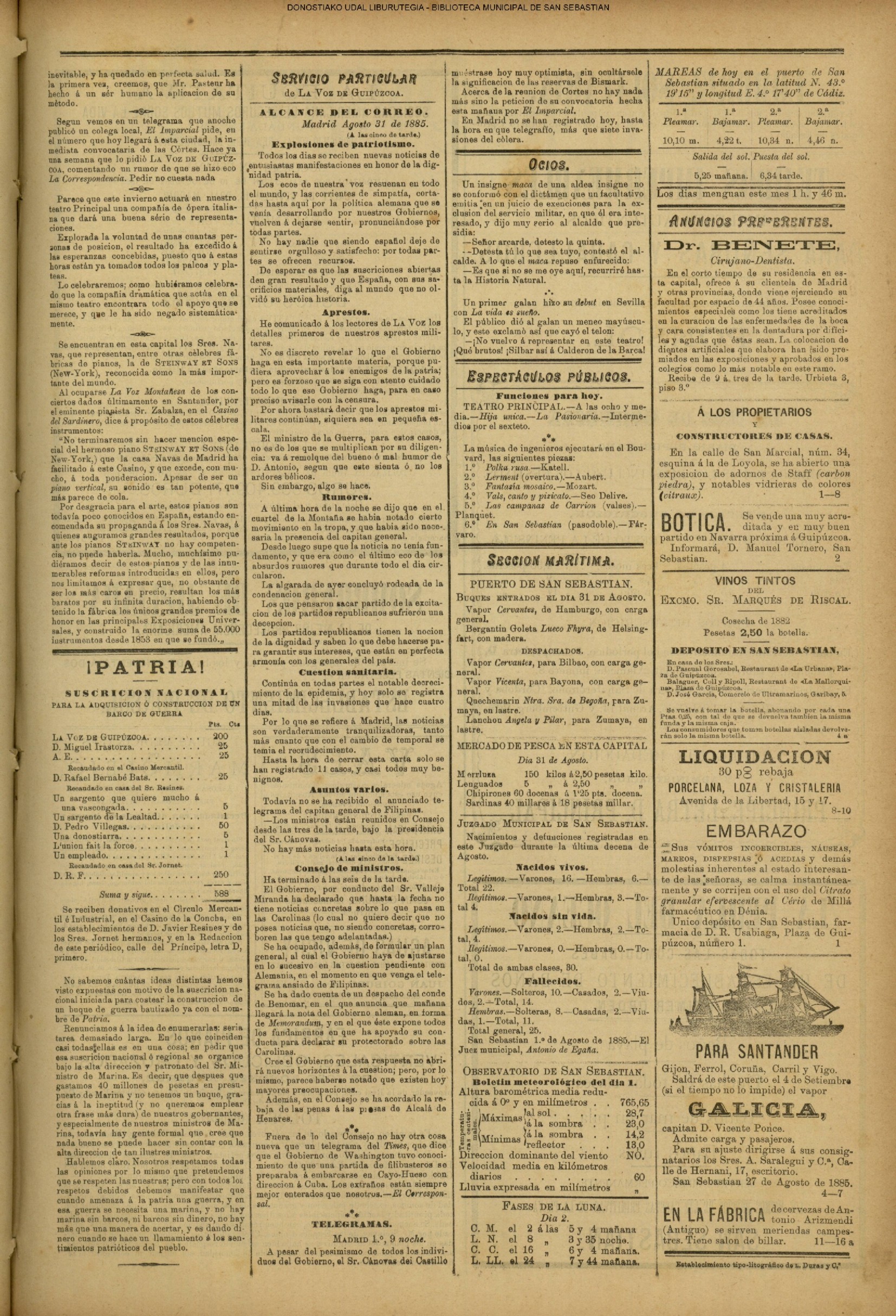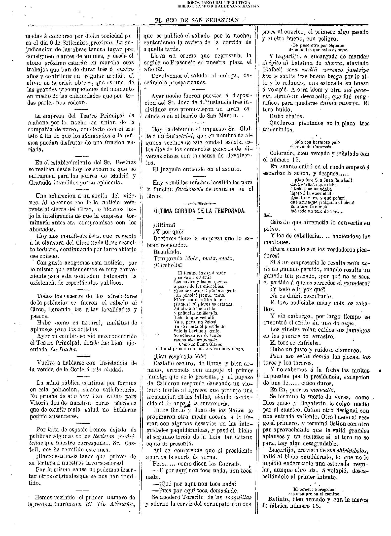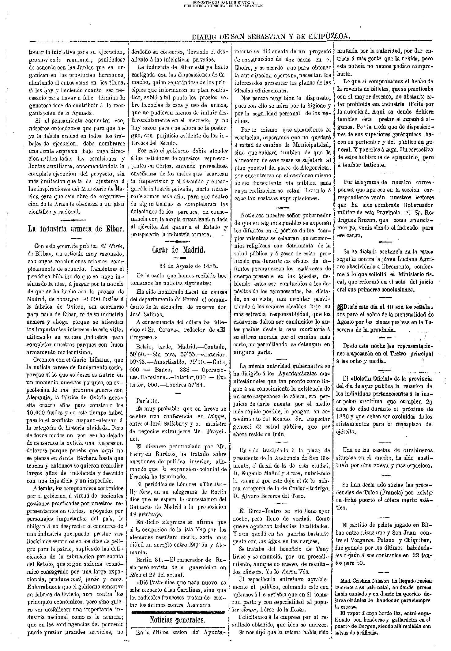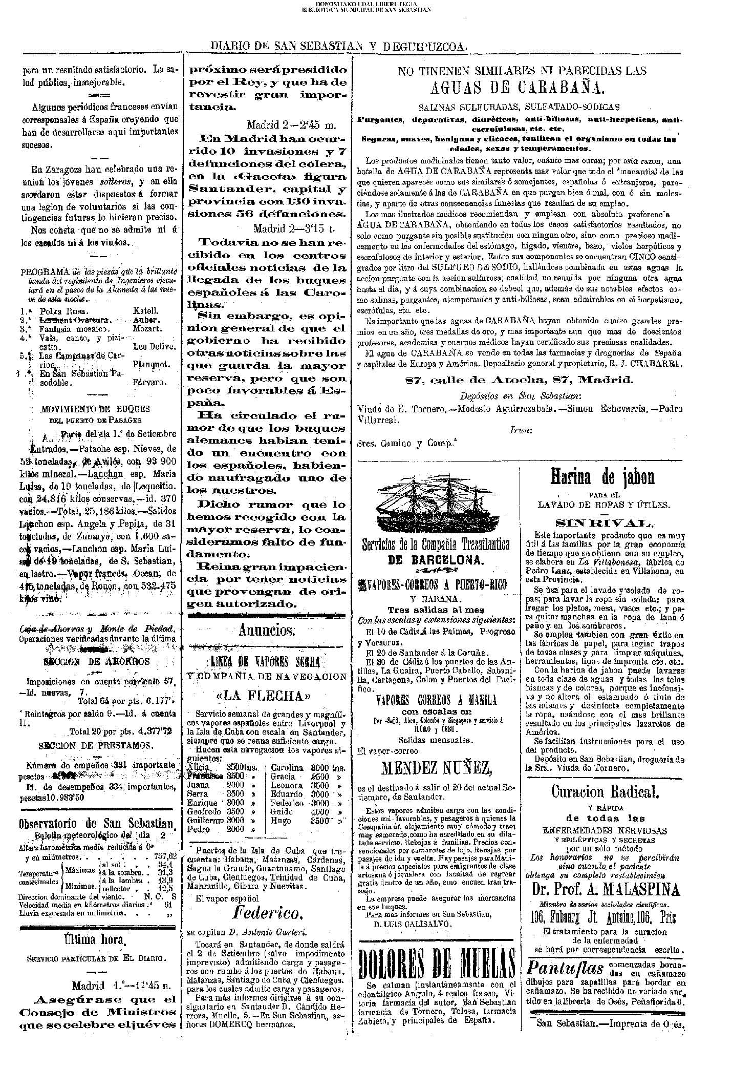 A la vez, probablemente, tendrá lugar con gran ceremonia la imposición de la cruz de Beneficencia al director de dichas obras, D. Sebastián Cámio, y a los contramaestres Francisco Mambrona y Vicente Urresti, quienes la tienen justamente ganada por actos heroicos de valor, llevados a cabo en la terrible barra del Urumea.