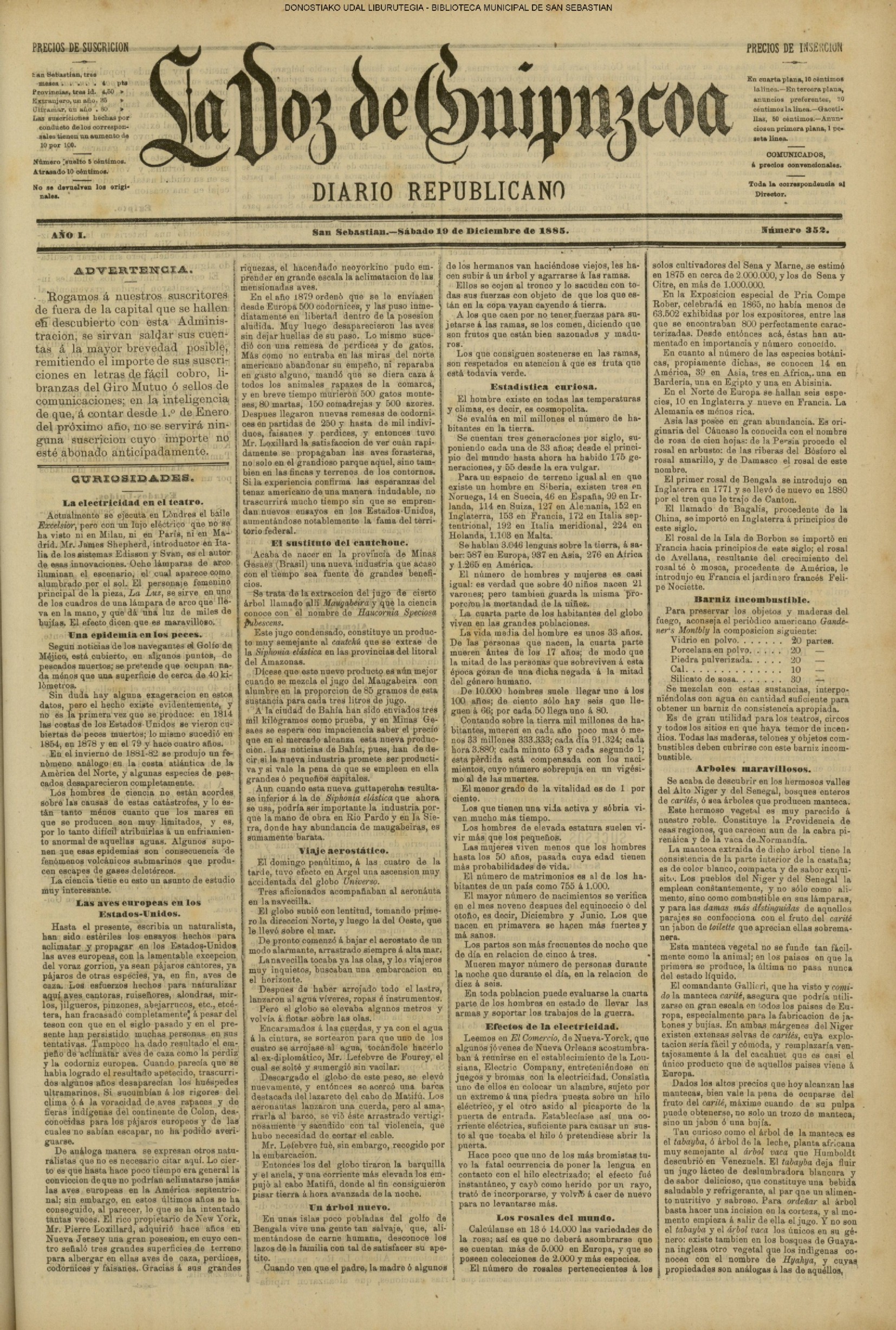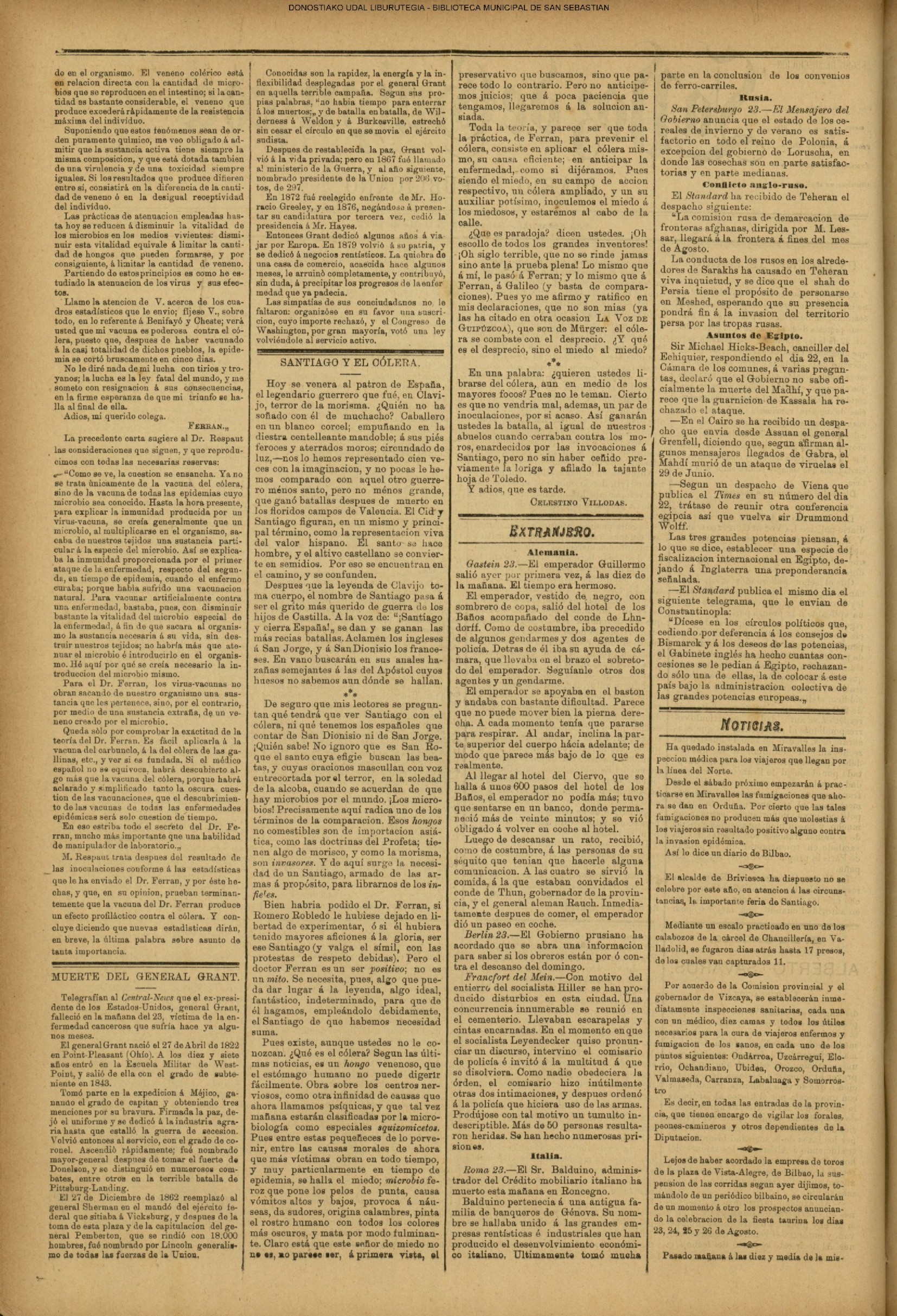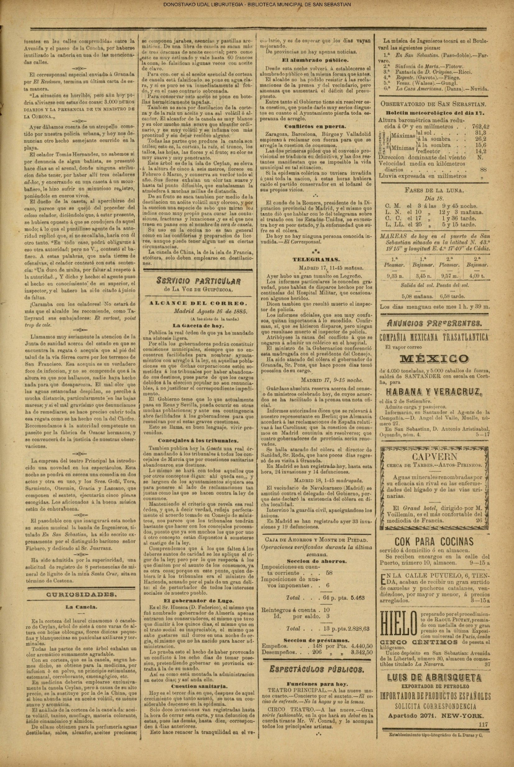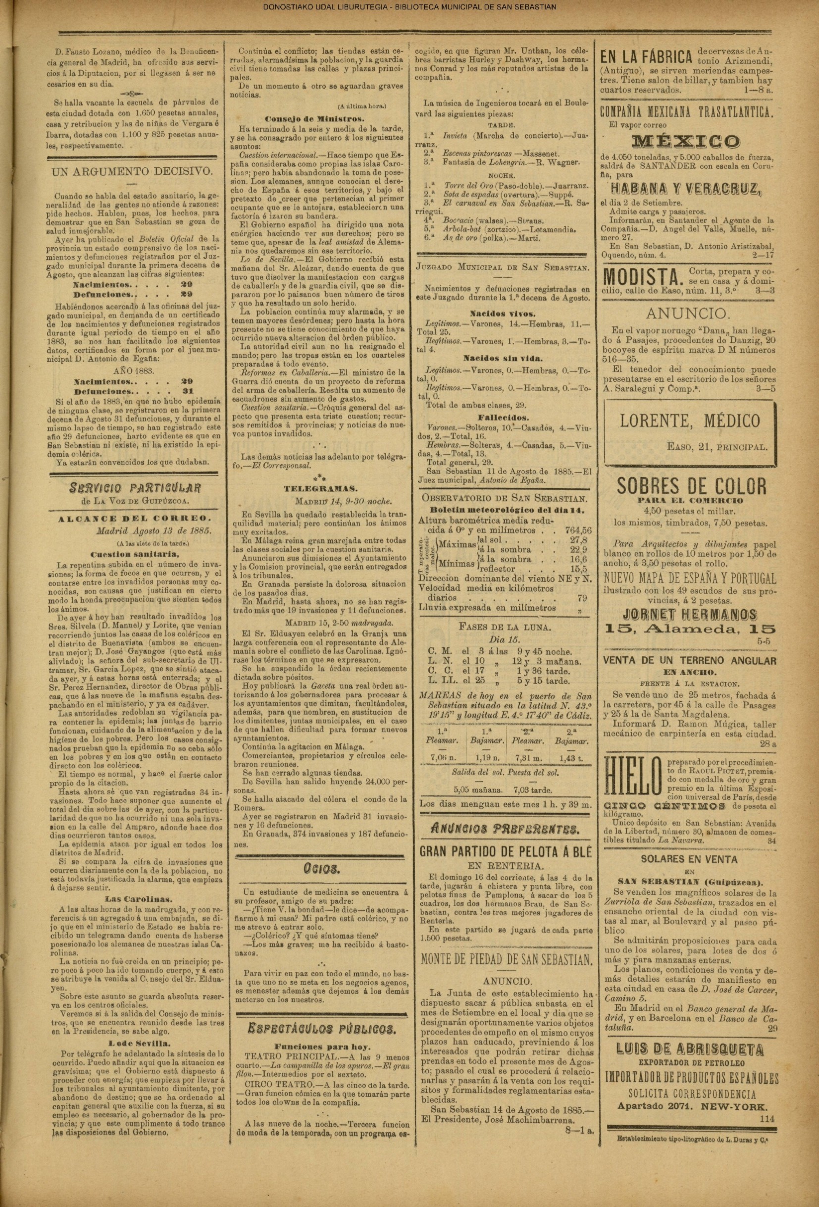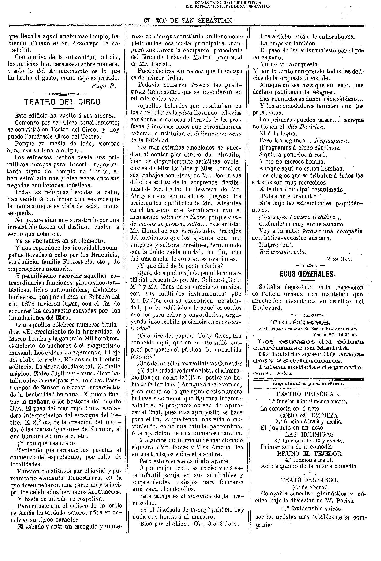 A la vez, probablemente, tendrá lugar con gran ceremonia la imposición de la cruz de Beneficencia al director de dichas obras, D. Sebastián Cámio, y a los contramaestres Francisco Mambrona y Vicente Urresti, quienes la tienen justamente ganada por actos heroicos de valor, llevados a cabo en la terrible barra del Urumea.