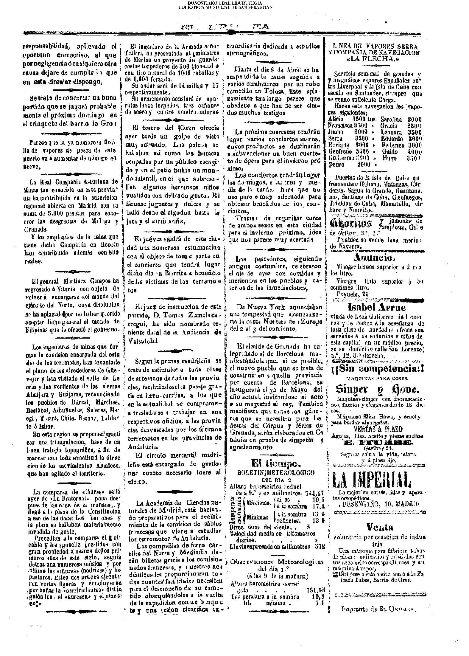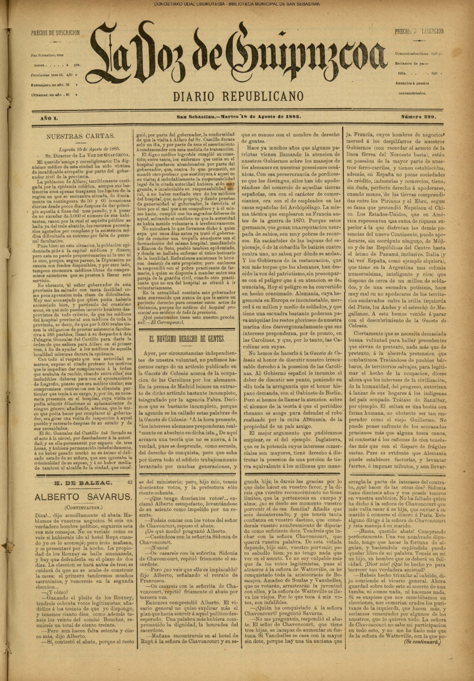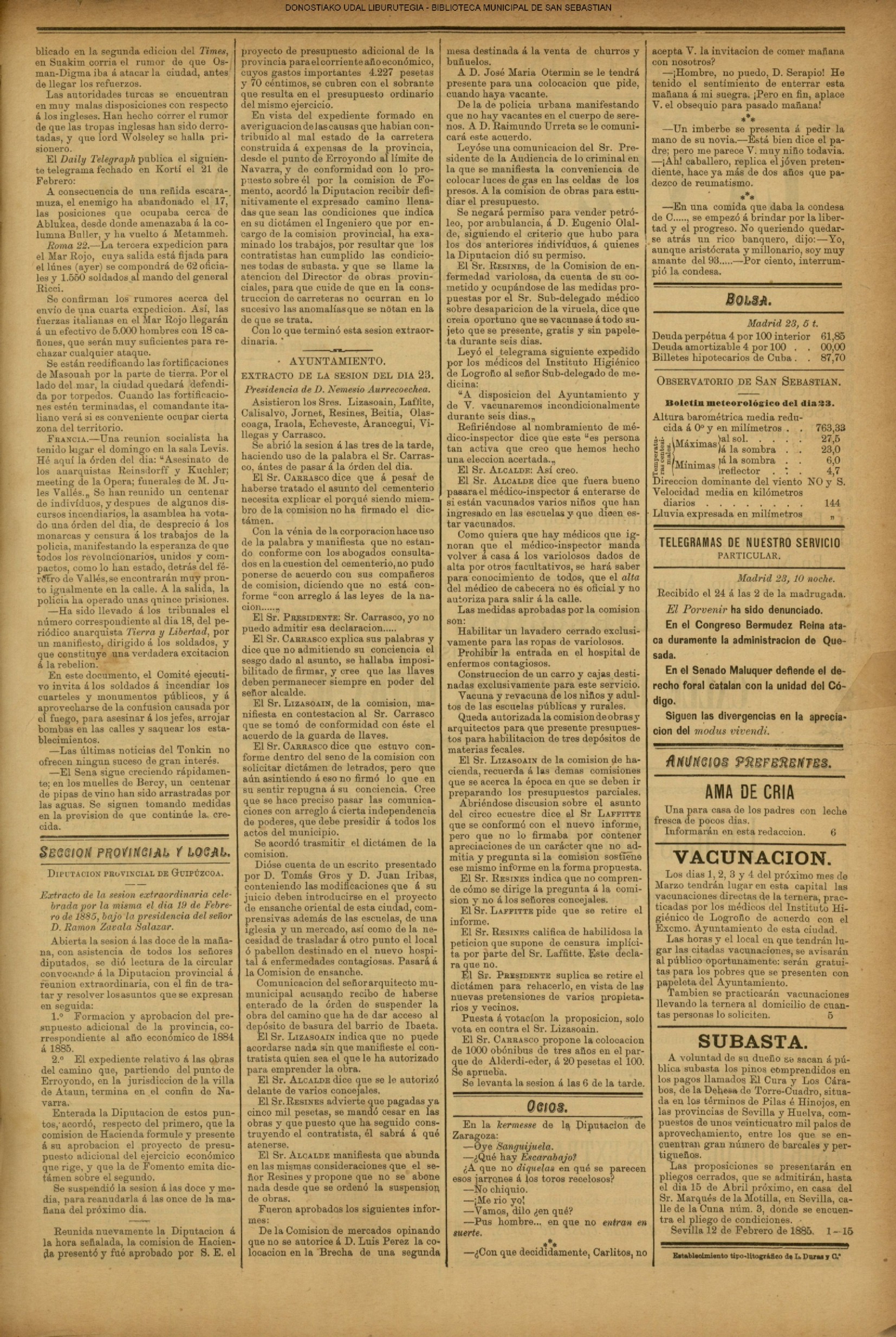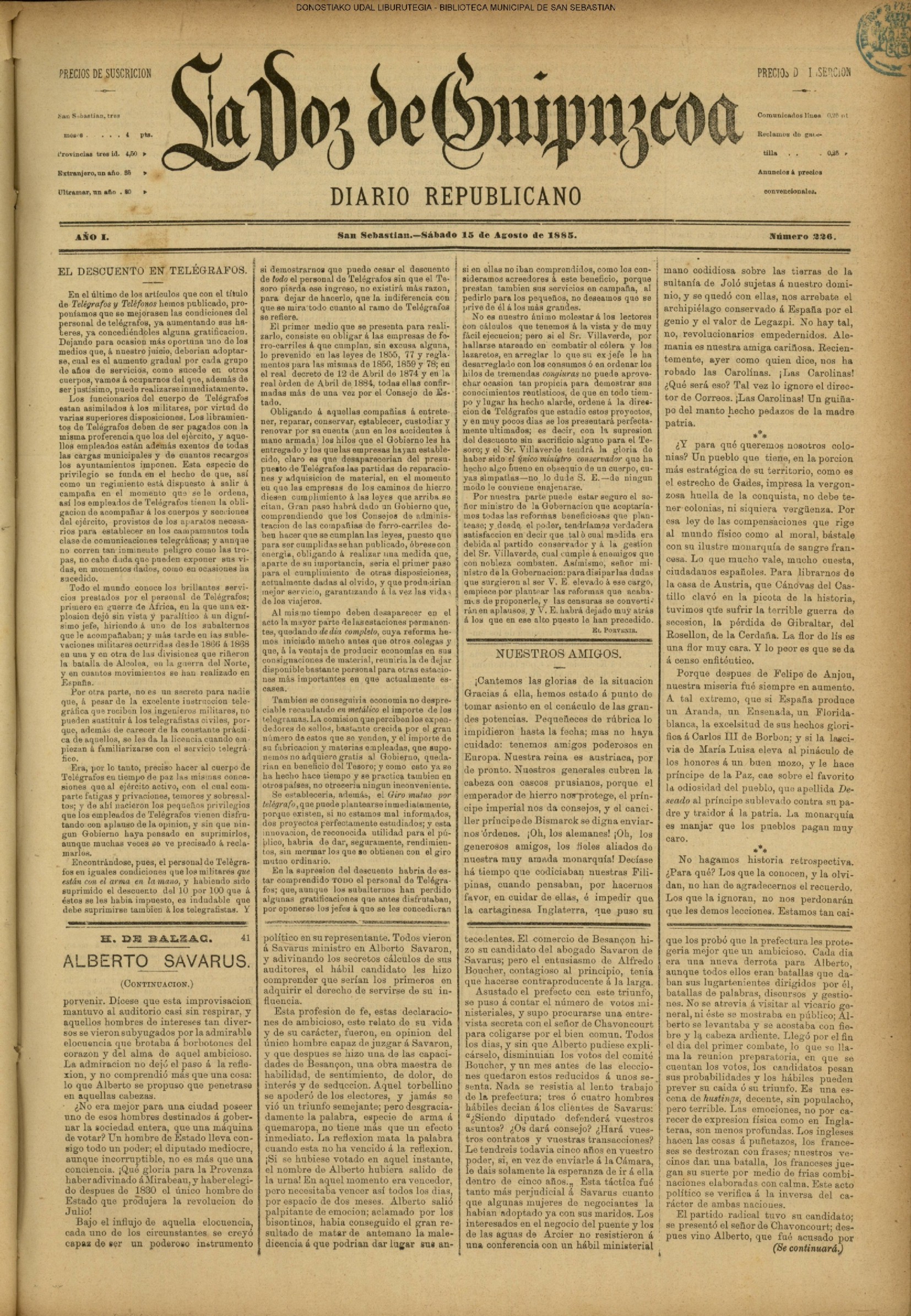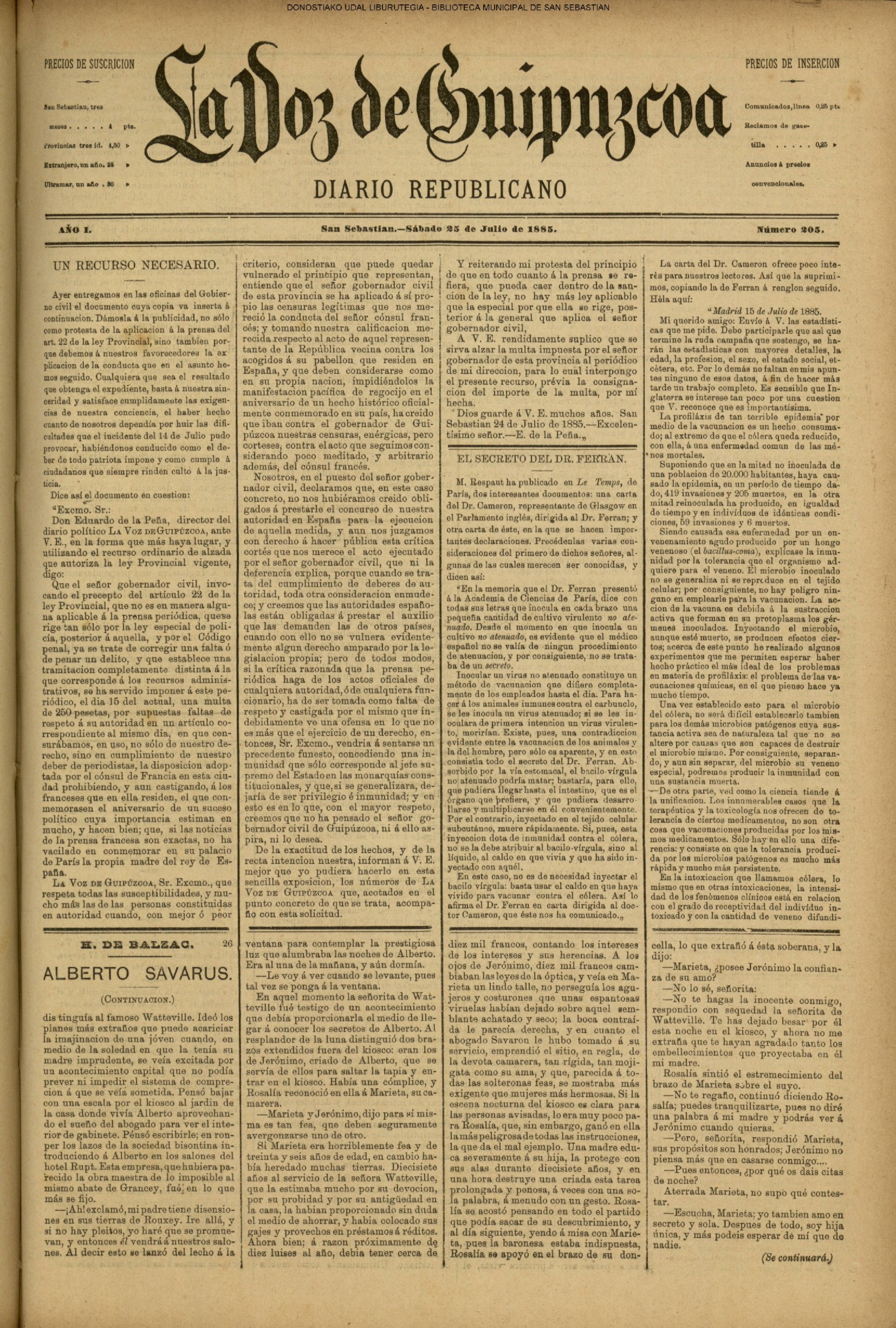 A la vez, probablemente, tendrá lugar con gran ceremonia la imposición de la cruz de Beneficencia al director de dichas obras, D. Sebastián Cámio, y a los contramaestres Francisco Mambrona y Vicente Urresti, quienes la tienen justamente ganada por actos heroicos de valor, llevados a cabo en la terrible barra del Urumea.