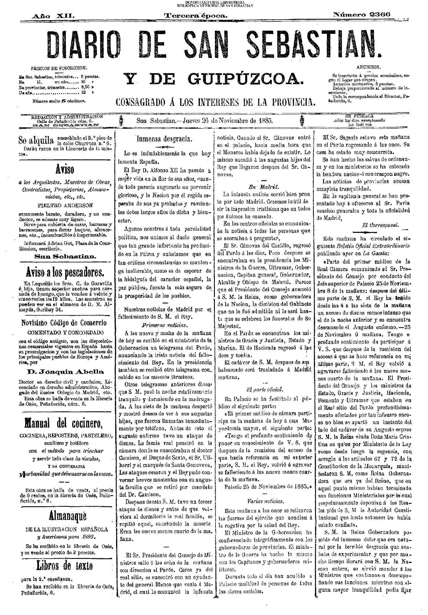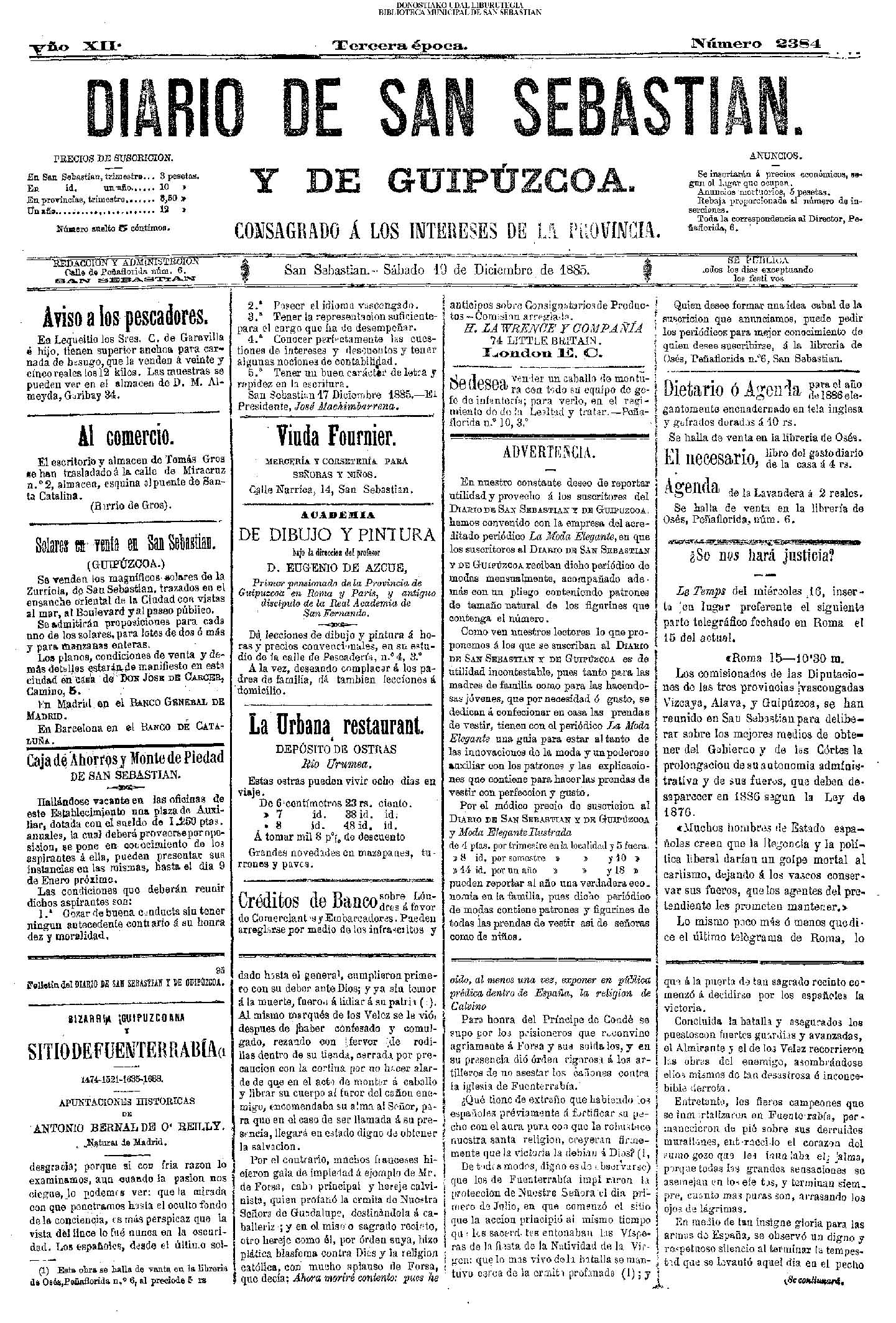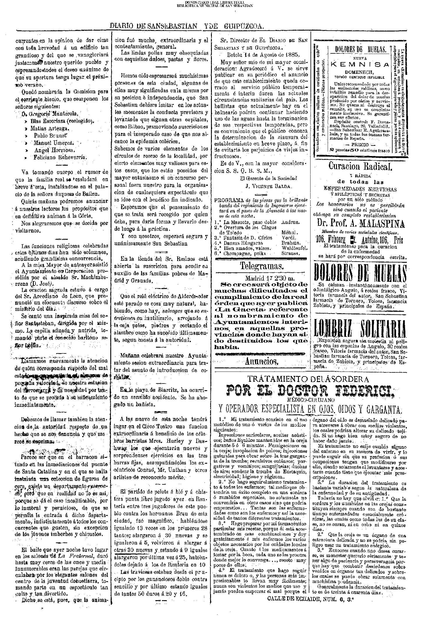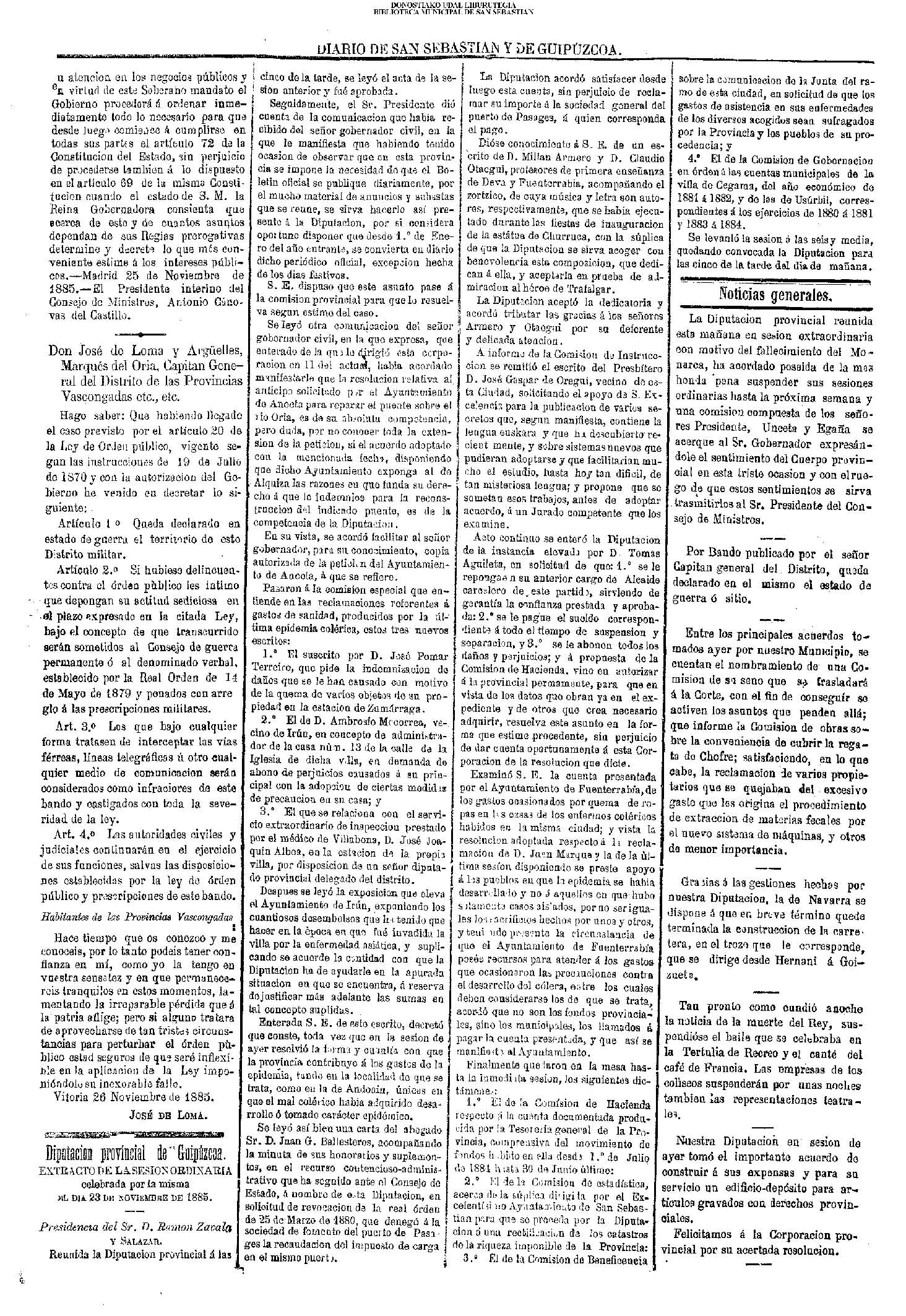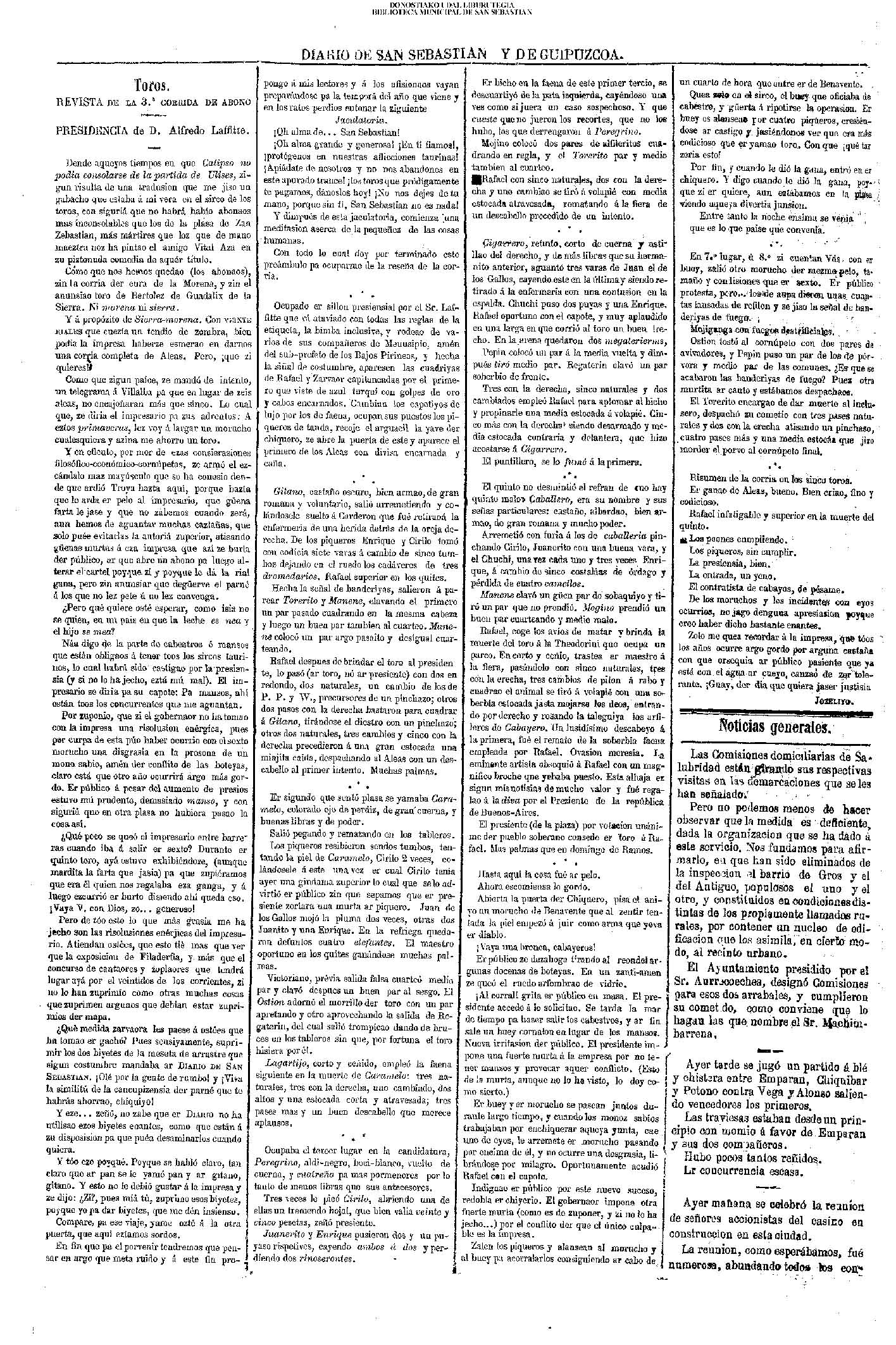 El año pasado se tenía todo preparado para que S. M. el Rey, en su viaje de Gijón a ésta, pusiera la última piedra de las obras; este verano, si D. Alfonso XII vuelve a Betelu y visita & esta capital, se le suplicará que coloque la primera del puente proyectado, después que los terrenos sean bendecidos.