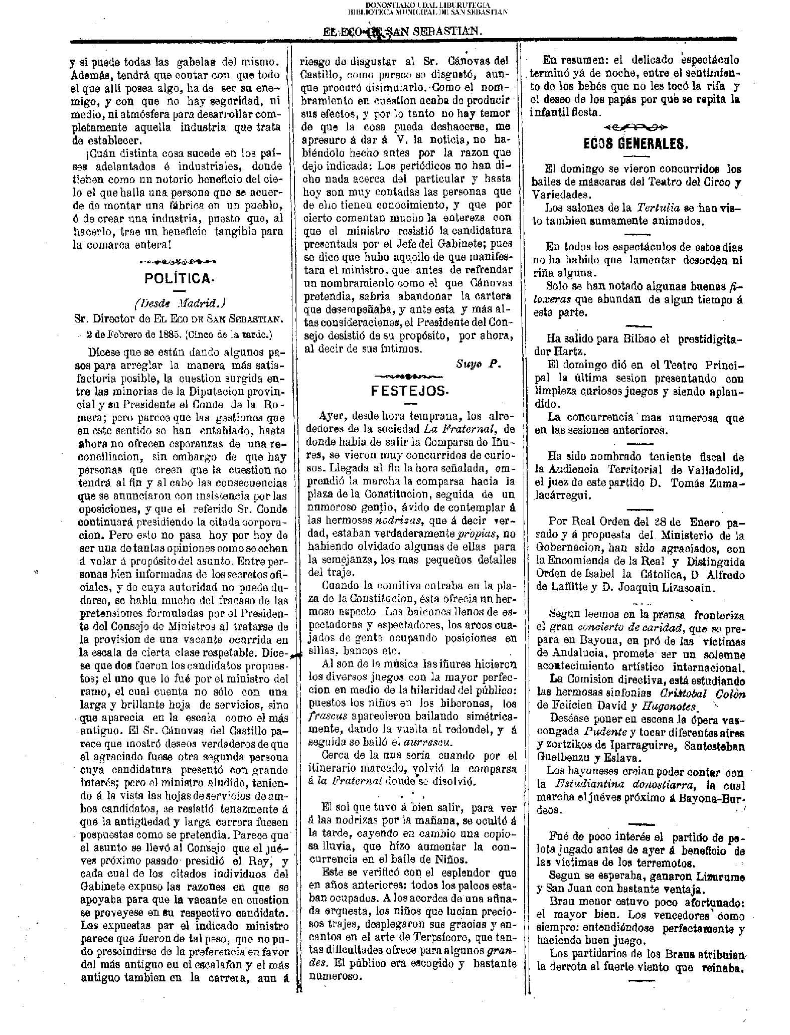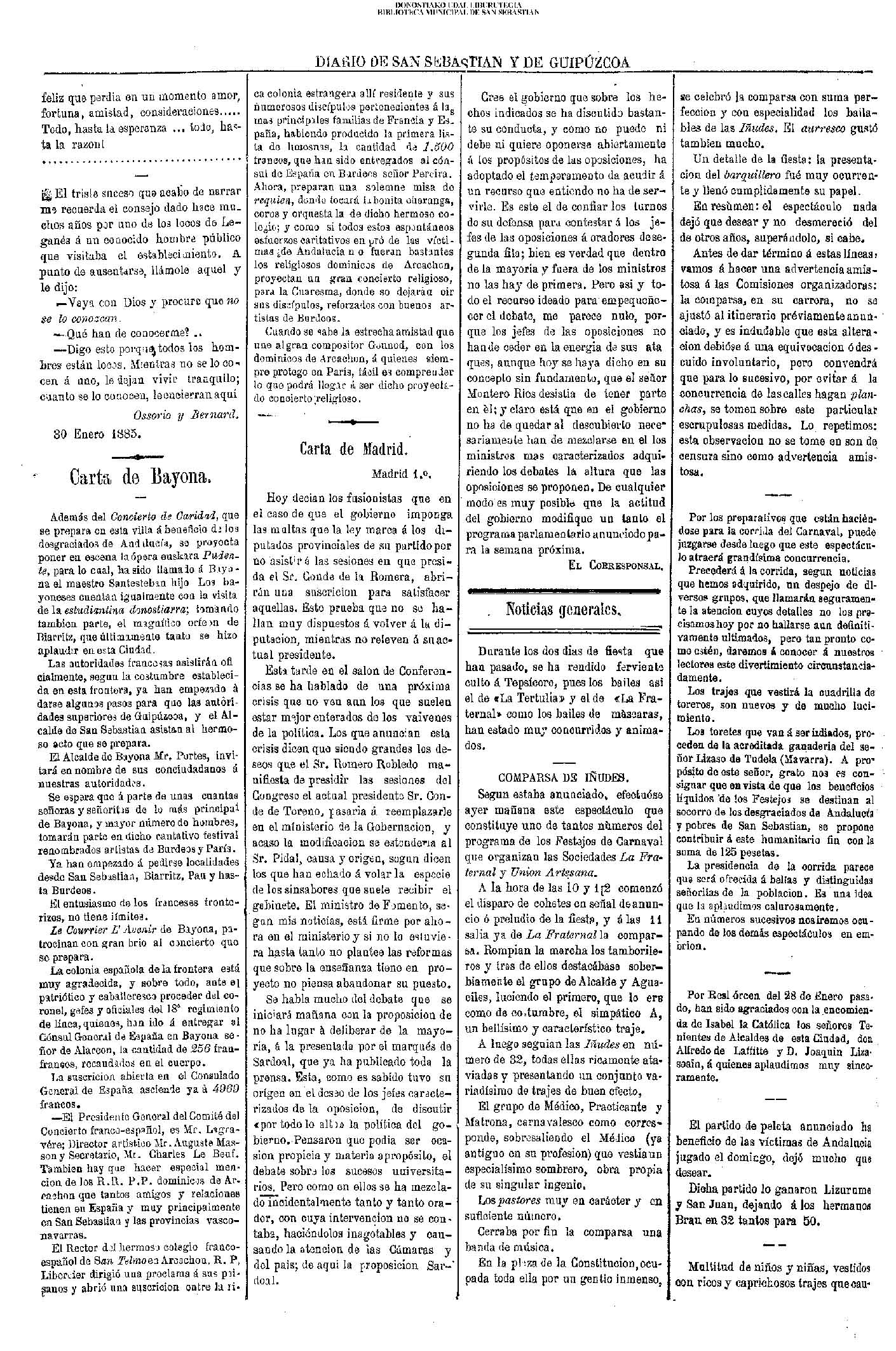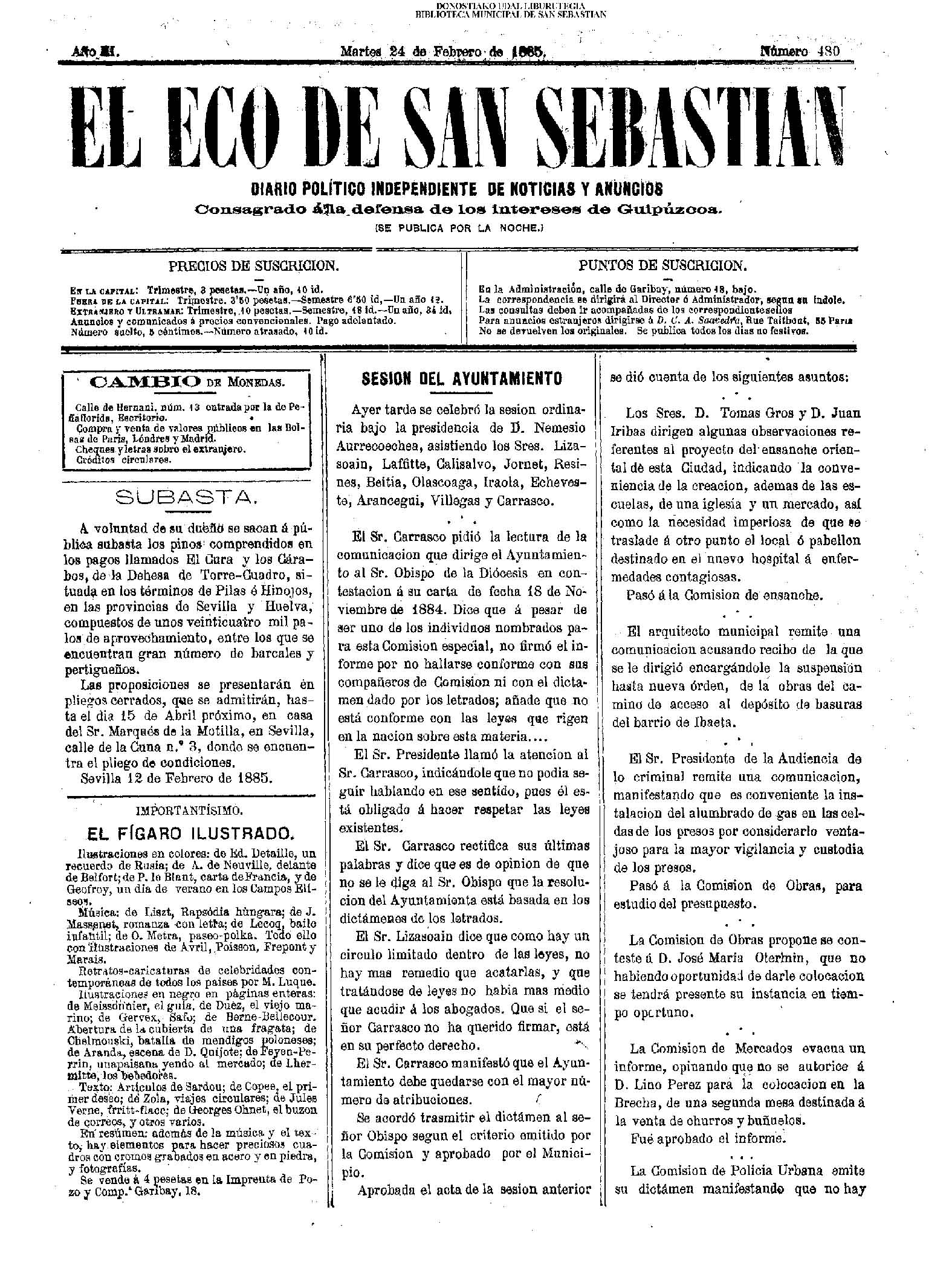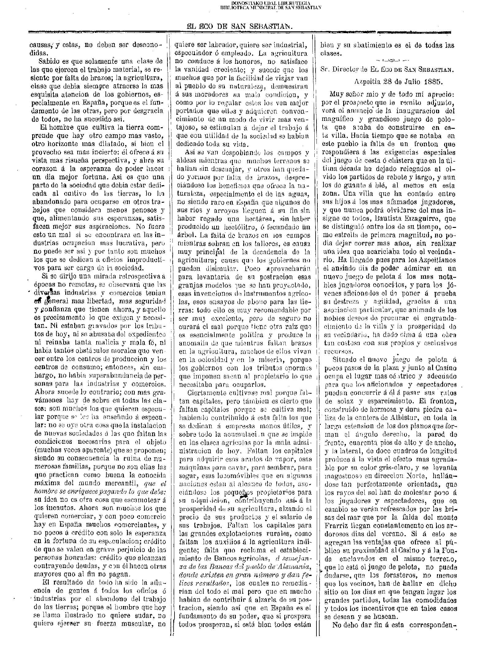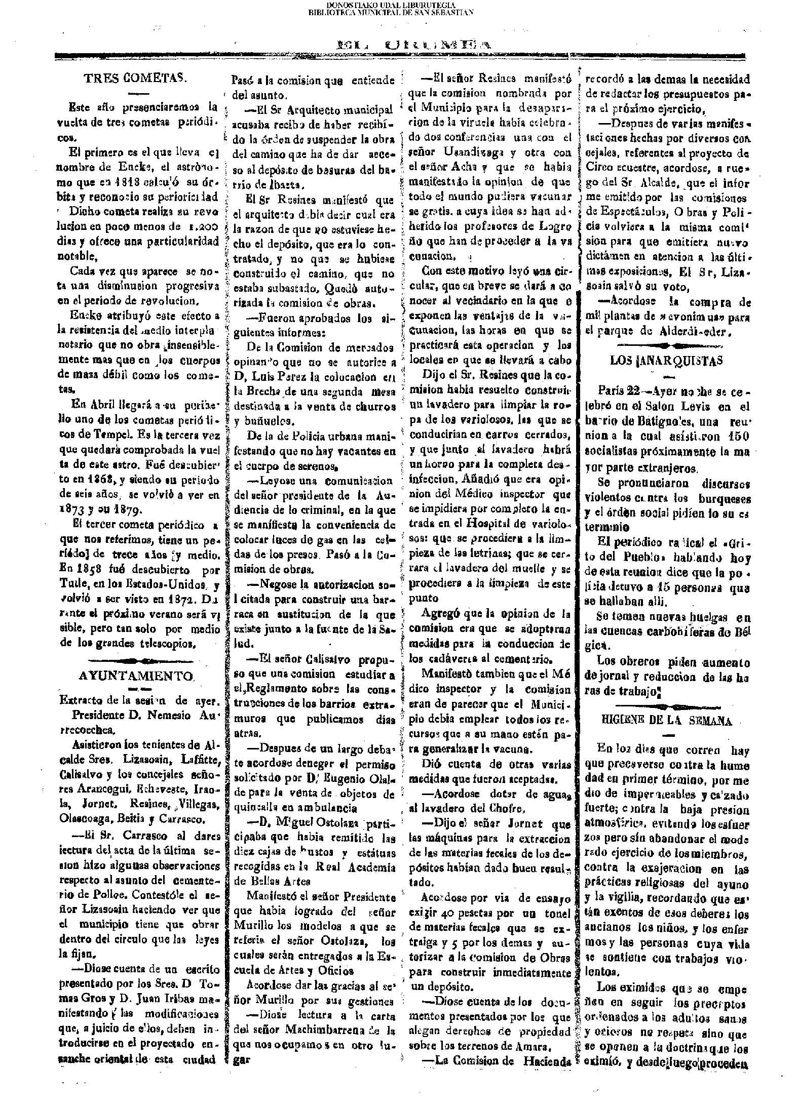 El año pasado se tenía todo preparado para que S. M. el Rey, en su viaje de Gijón a ésta, pusiera la última piedra de las obras; este verano, si D. Alfonso XII vuelve a Betelu y visita & esta capital, se le suplicará que coloque la primera del puente proyectado, después que los terrenos sean bendecidos.