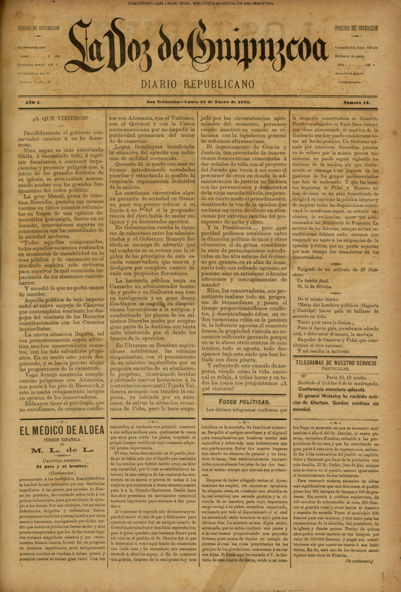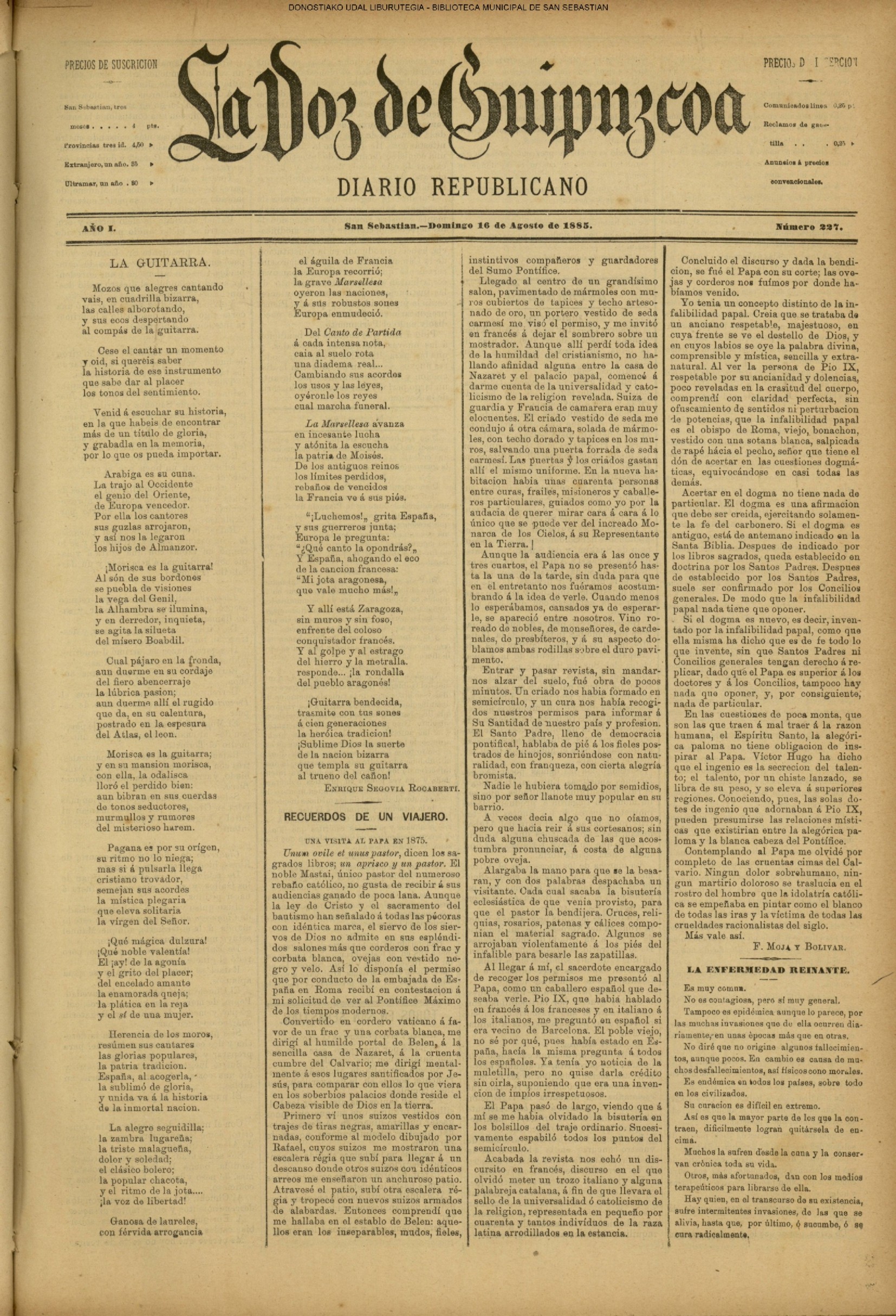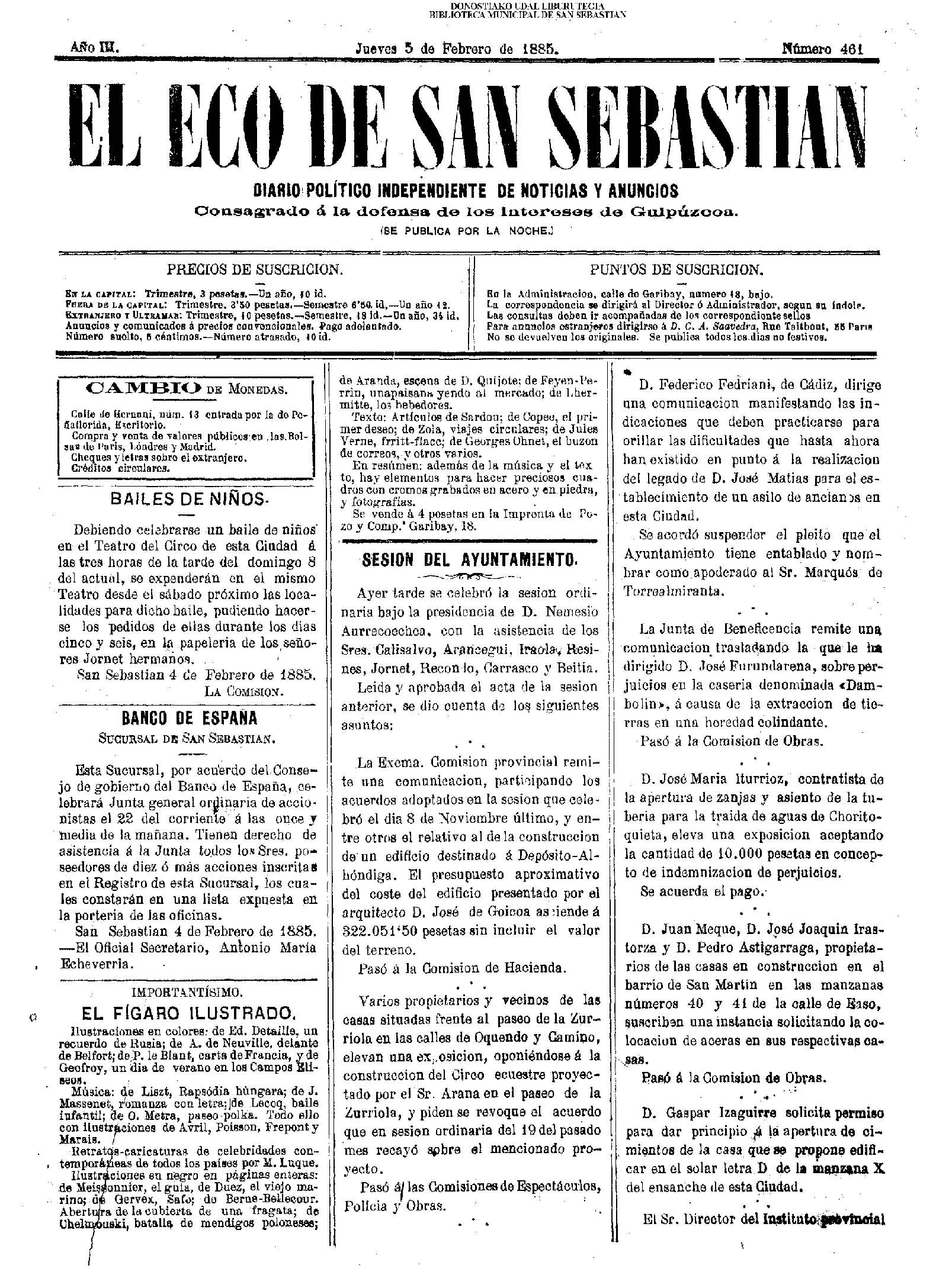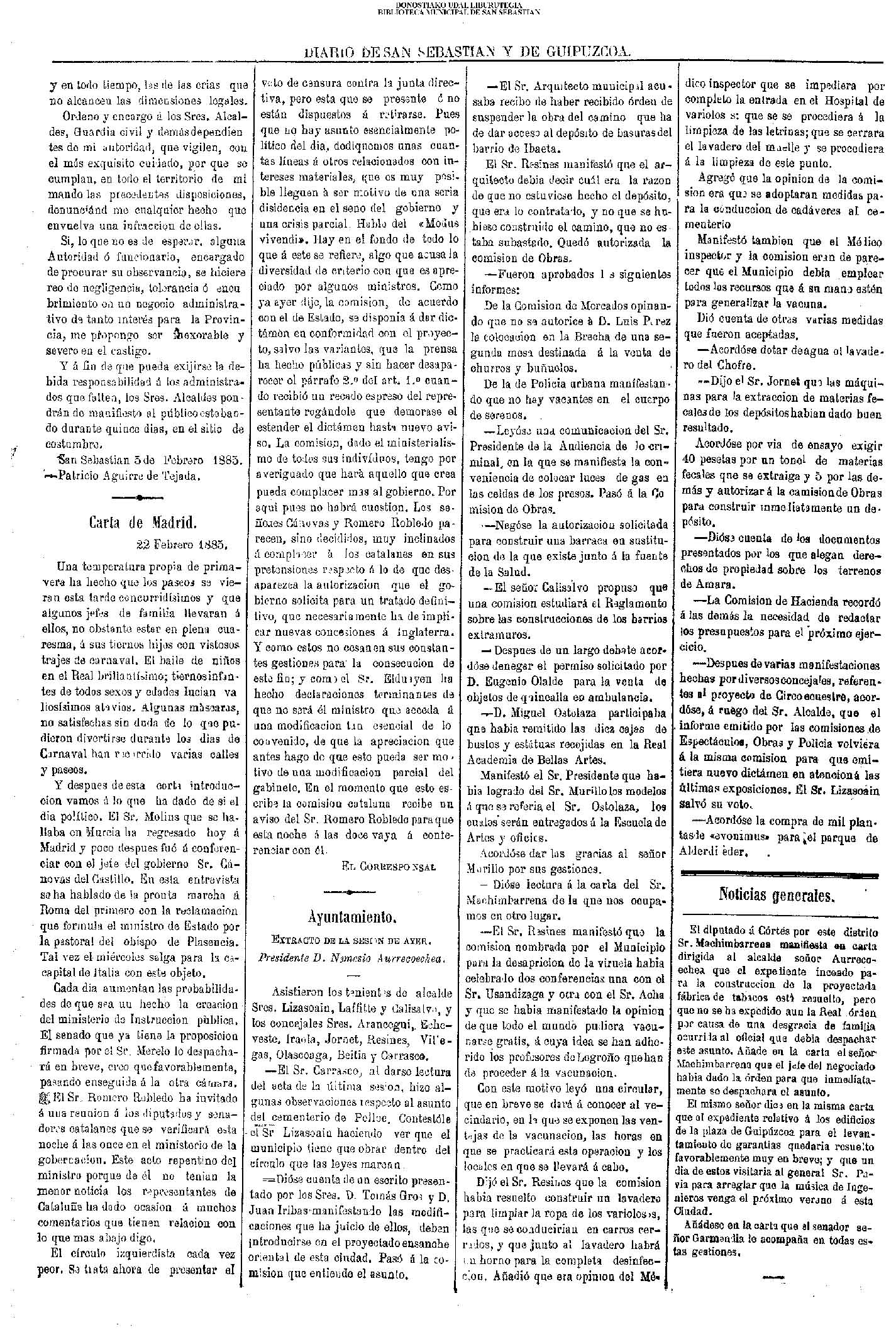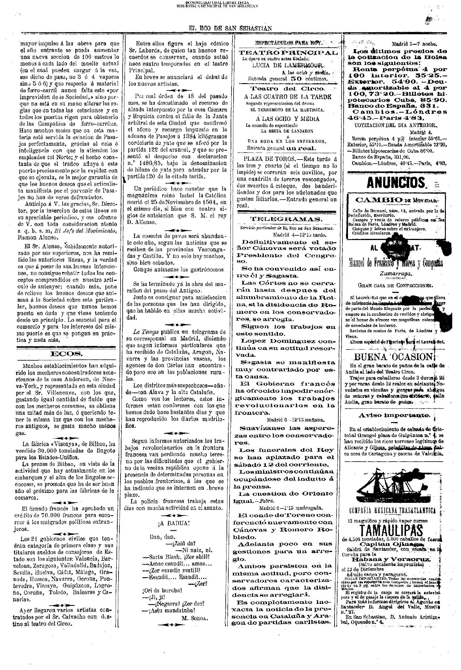 El año pasado se tenía todo preparado para que S. M. el Rey, en su viaje de Gijón a ésta, pusiera la última piedra de las obras; este verano, si D. Alfonso XII vuelve a Betelu y visita & esta capital, se le suplicará que coloque la primera del puente proyectado, después que los terrenos sean bendecidos.