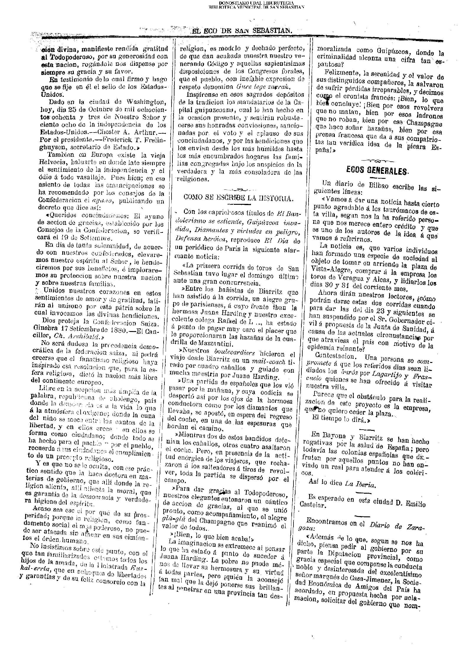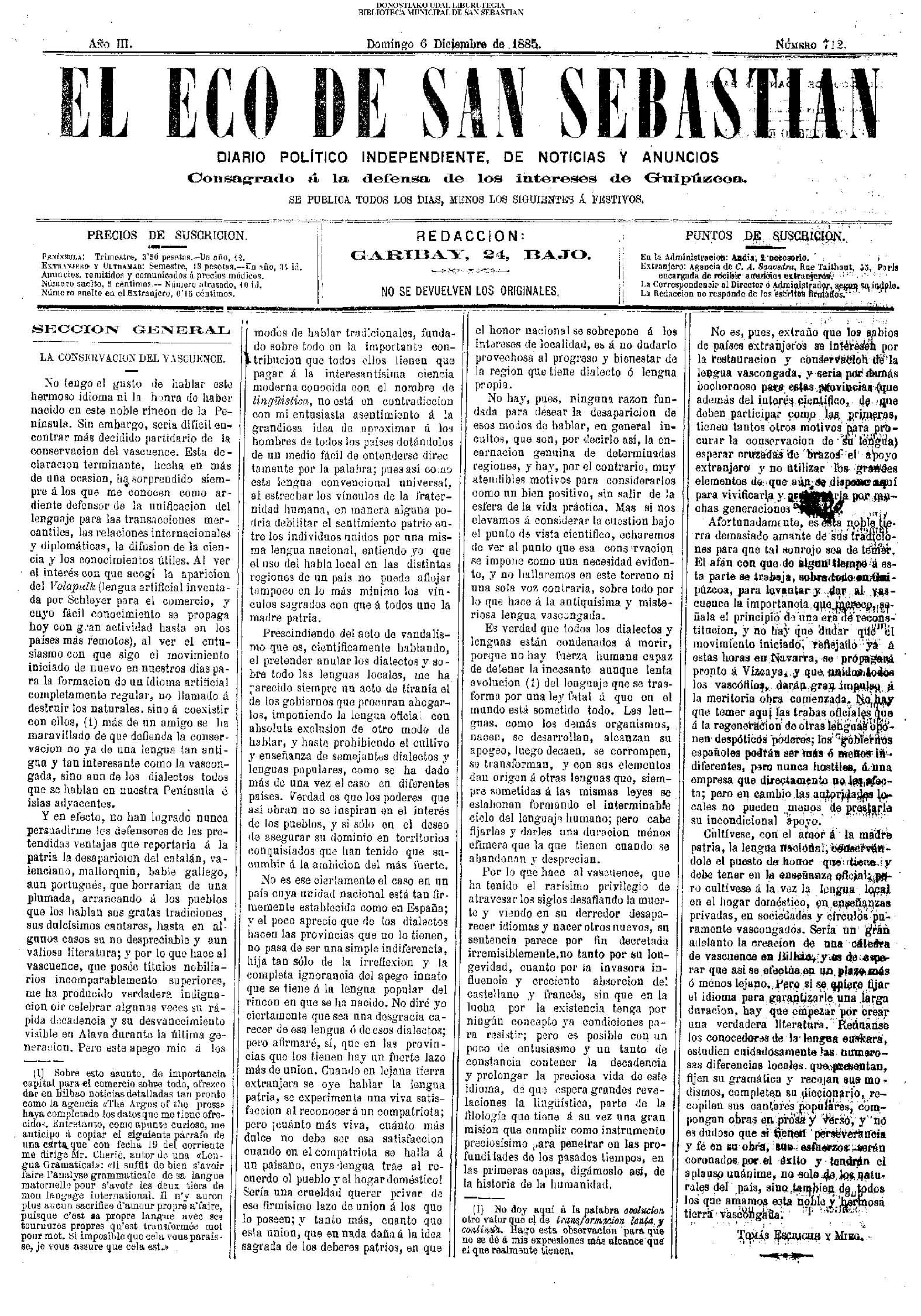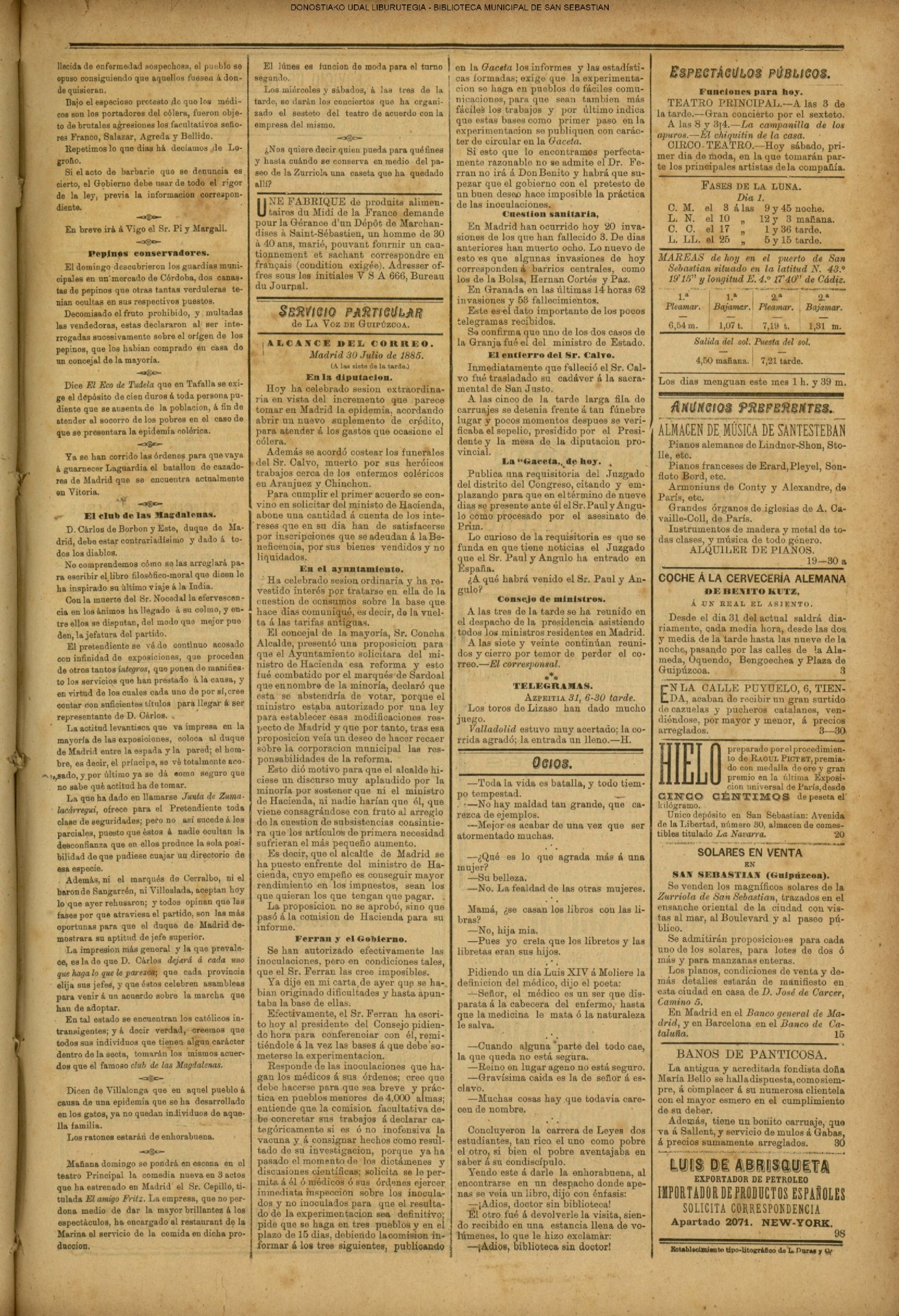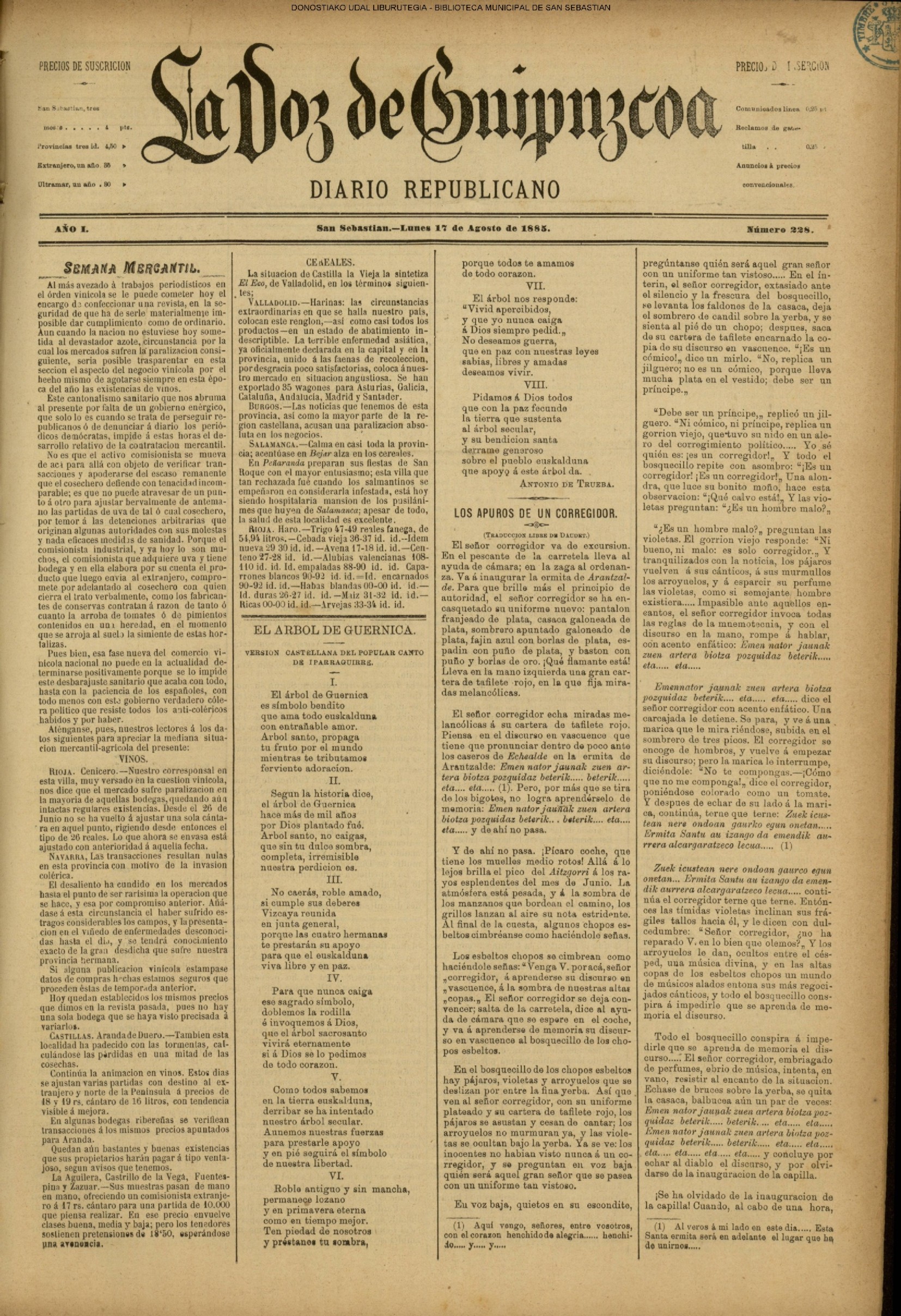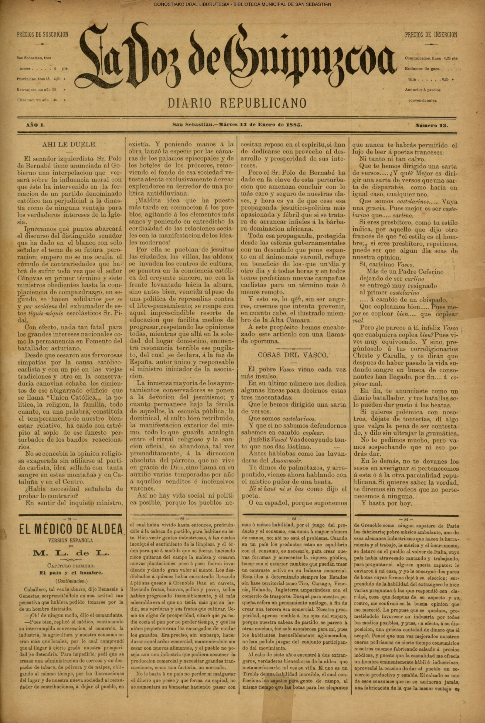El año pasado se tenía todo preparado para que S. M. el Rey, en su viaje de Gijón a ésta, pusiera la última piedra de las obras; este verano, si D. Alfonso XII vuelve a Betelu y visita & esta capital, se le suplicará que coloque la primera del puente proyectado, después que los terrenos sean bendecidos.
