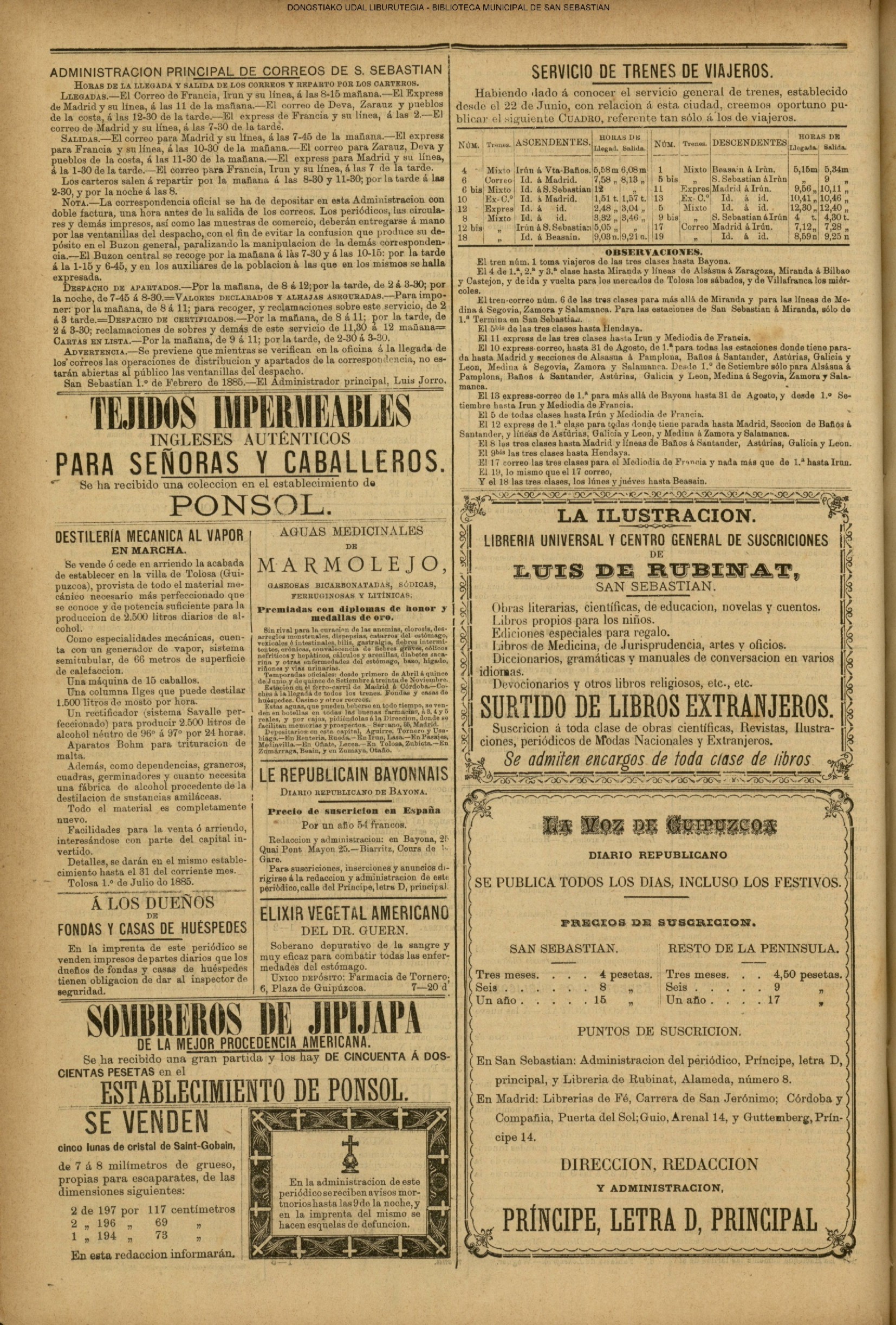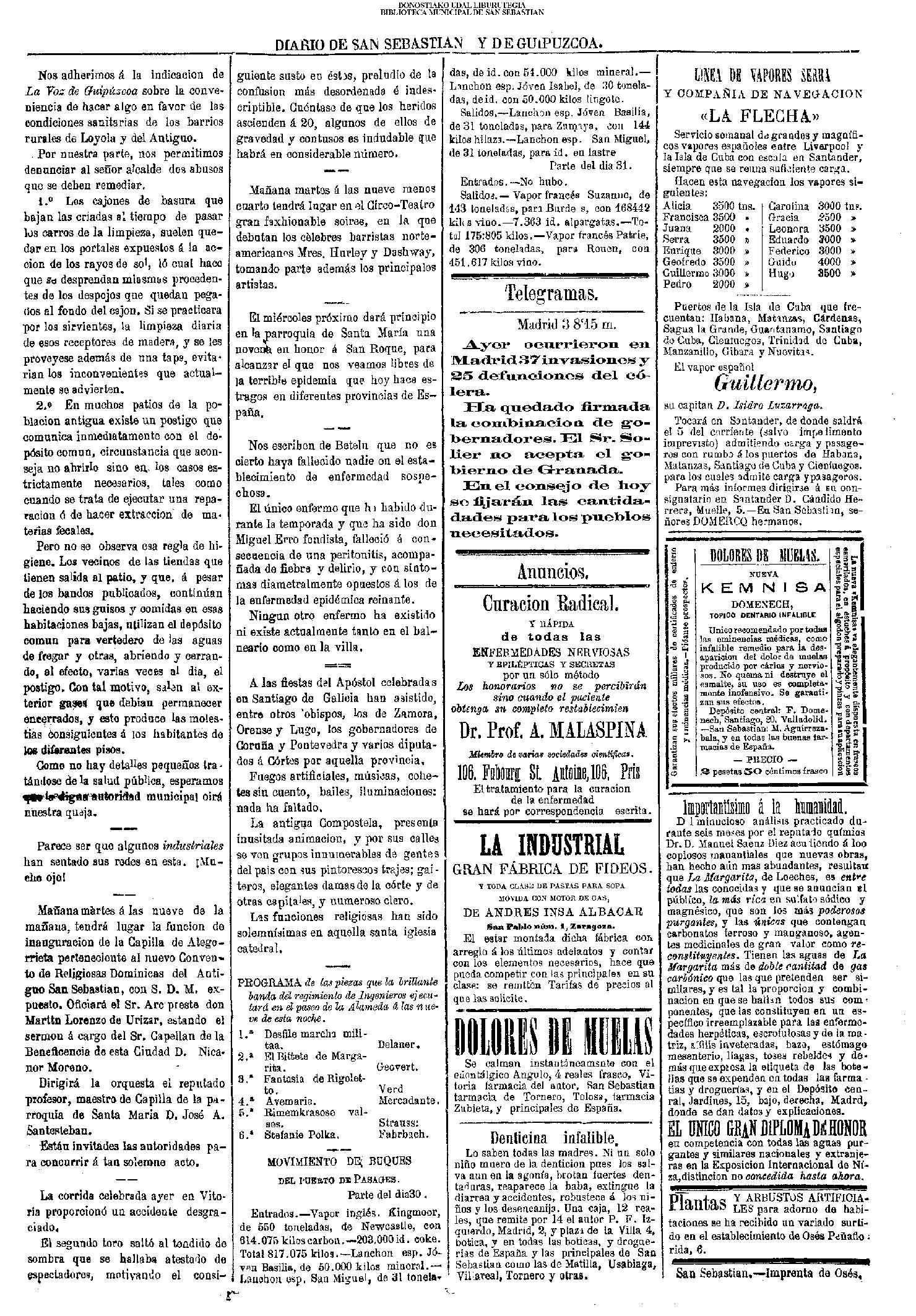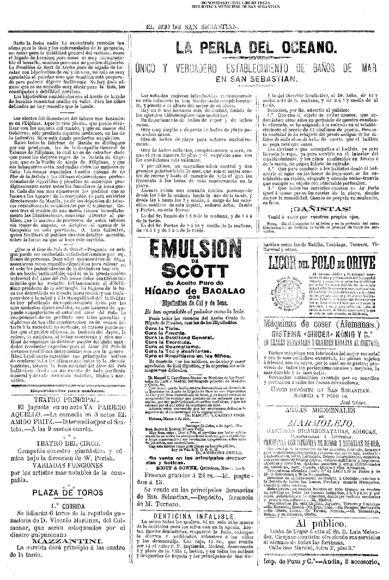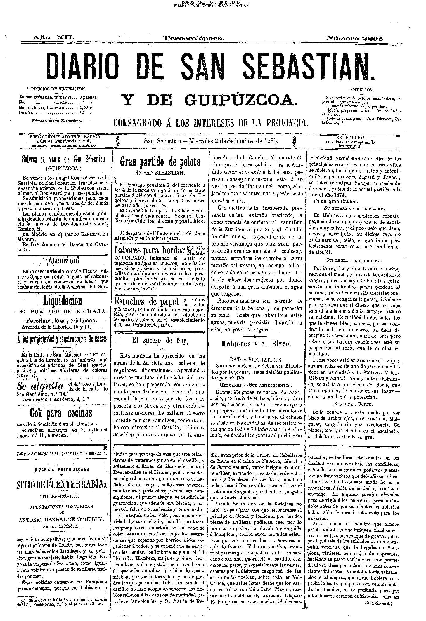 «El día 21 de Julio, fiesta de S. M. la Reina Cristina, quedaron terminadas las soberbias obras hidráulicas llevadas a cabo en la majestuosa, a la vez que furiosa barra del Urumea, en la Zurriola, gracias a la energía y constancia del difunto Marqués de Salamanca.