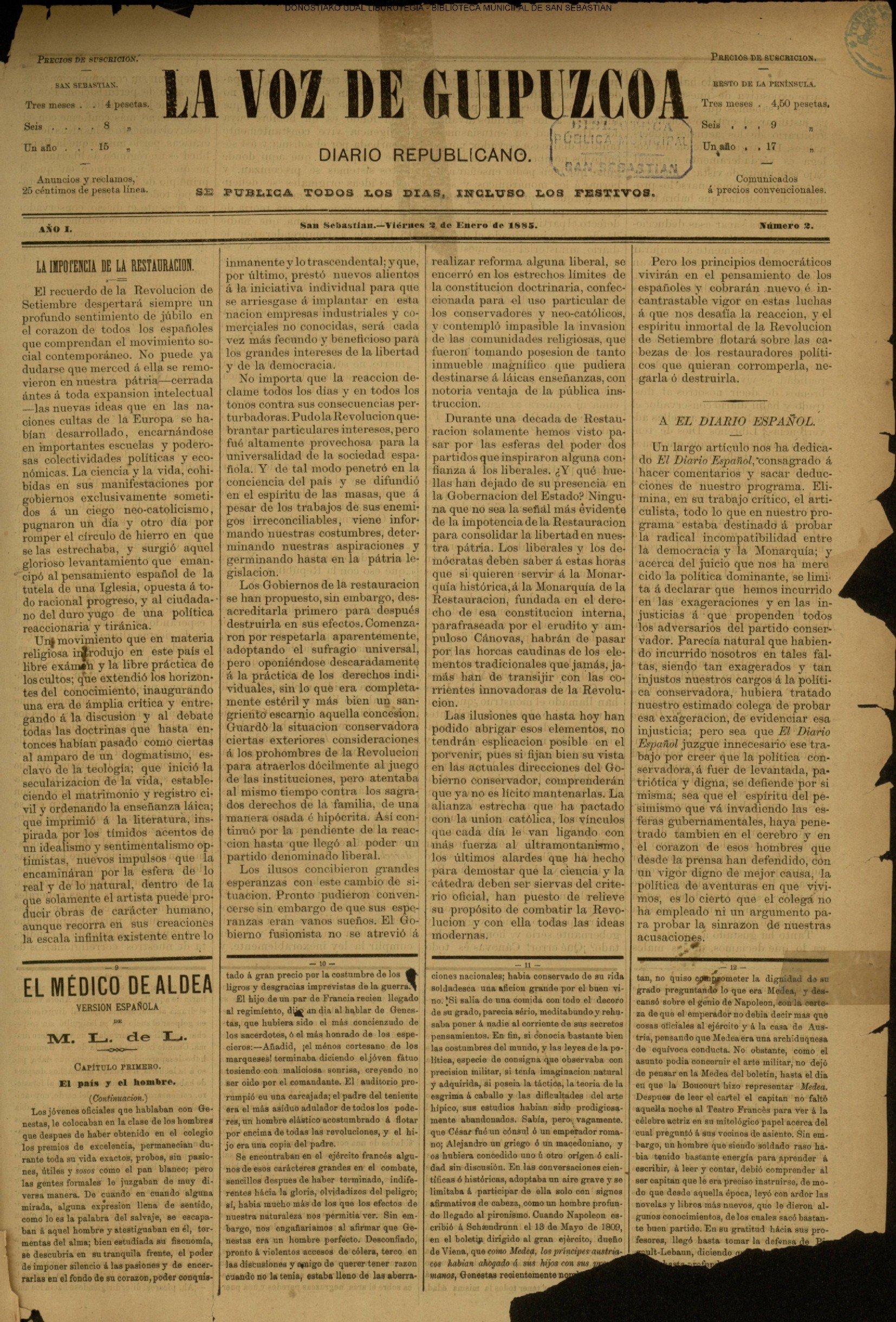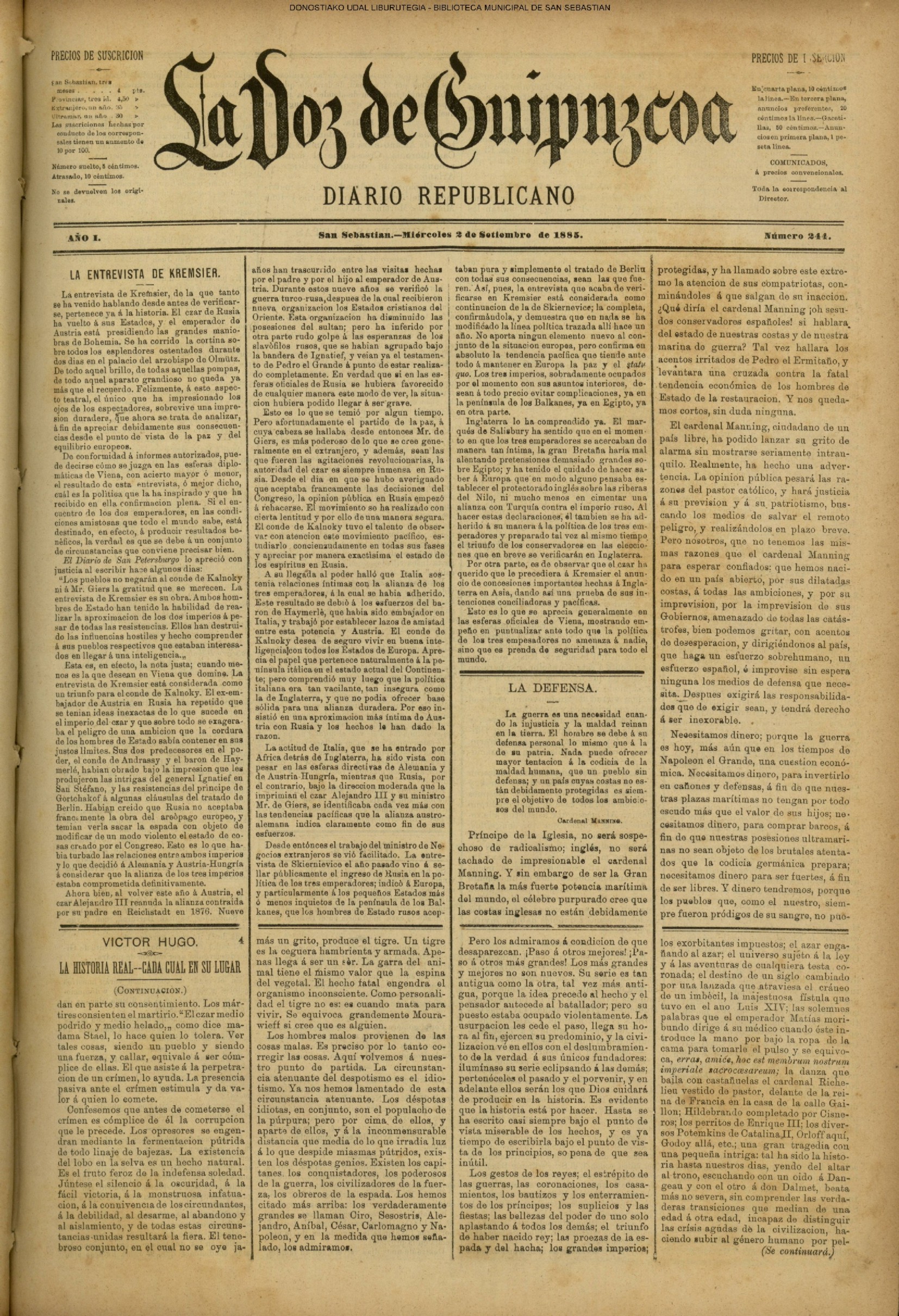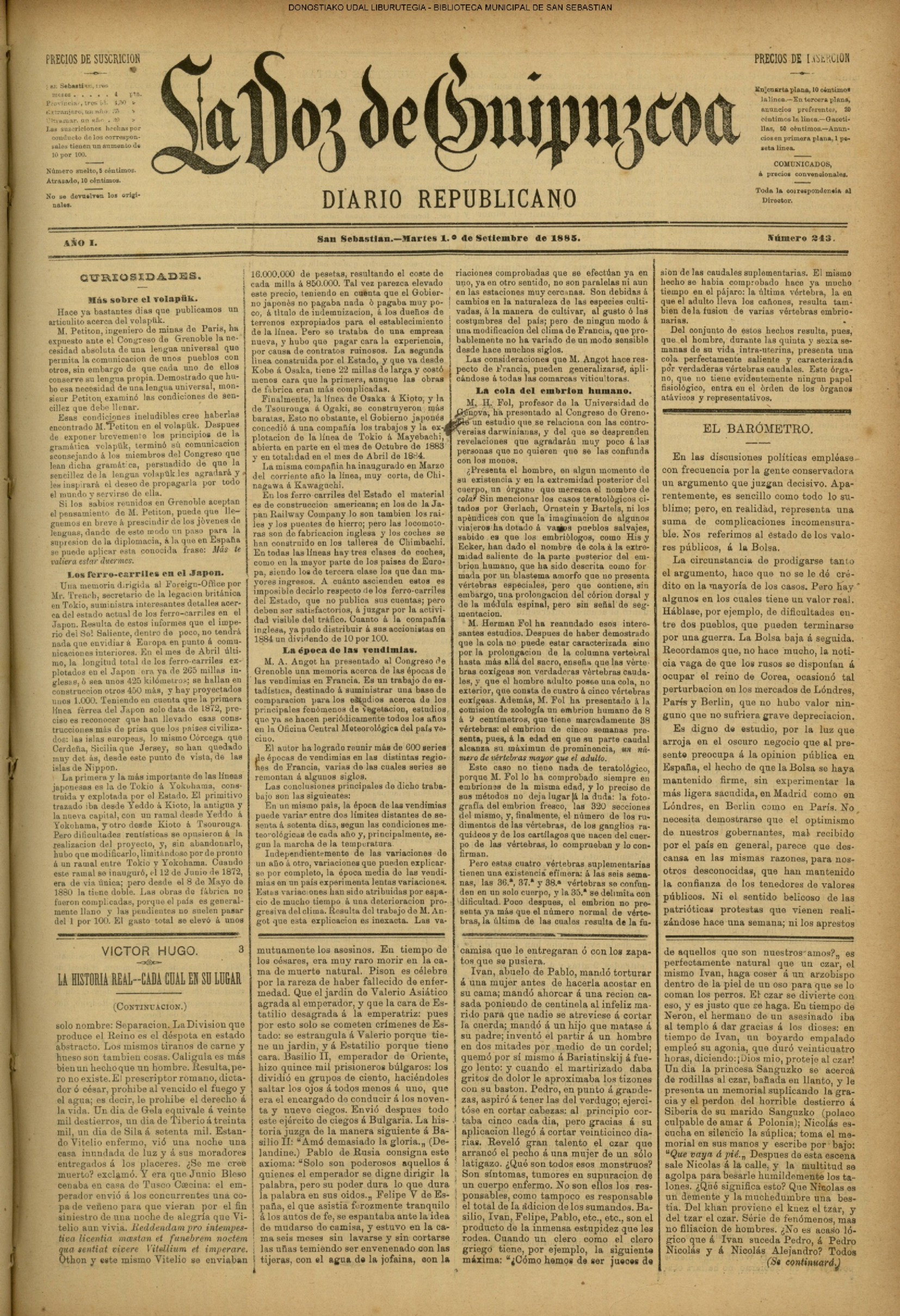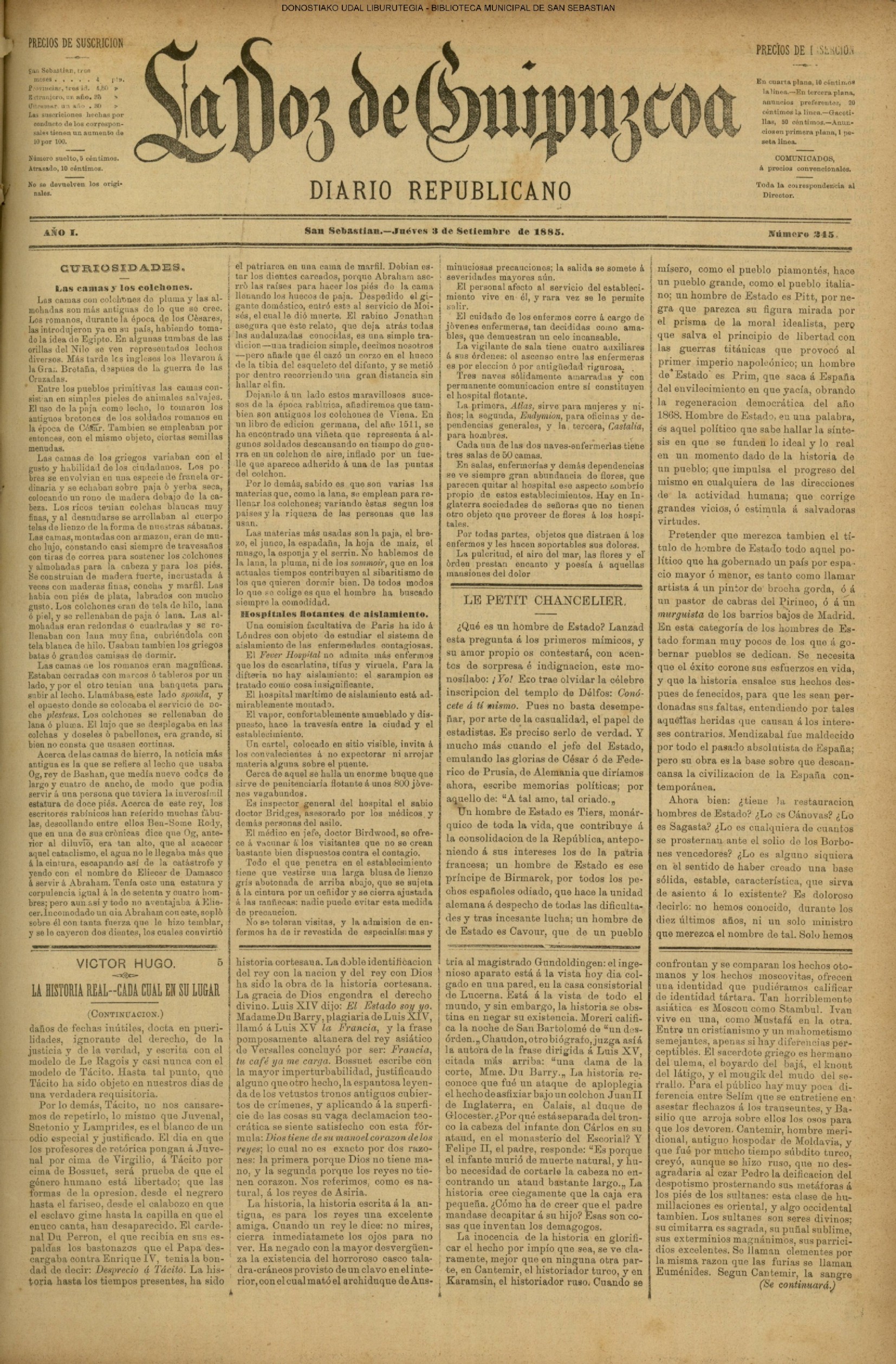«El día 21 de Julio, fiesta de S. M. la Reina Cristina, quedaron terminadas las soberbias obras hidráulicas llevadas a cabo en la majestuosa, a la vez que furiosa barra del Urumea, en la Zurriola, gracias a la energía y constancia del difunto Marqués de Salamanca.