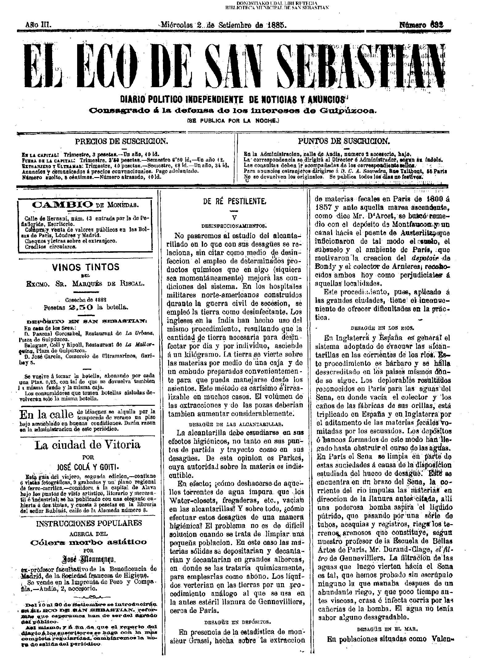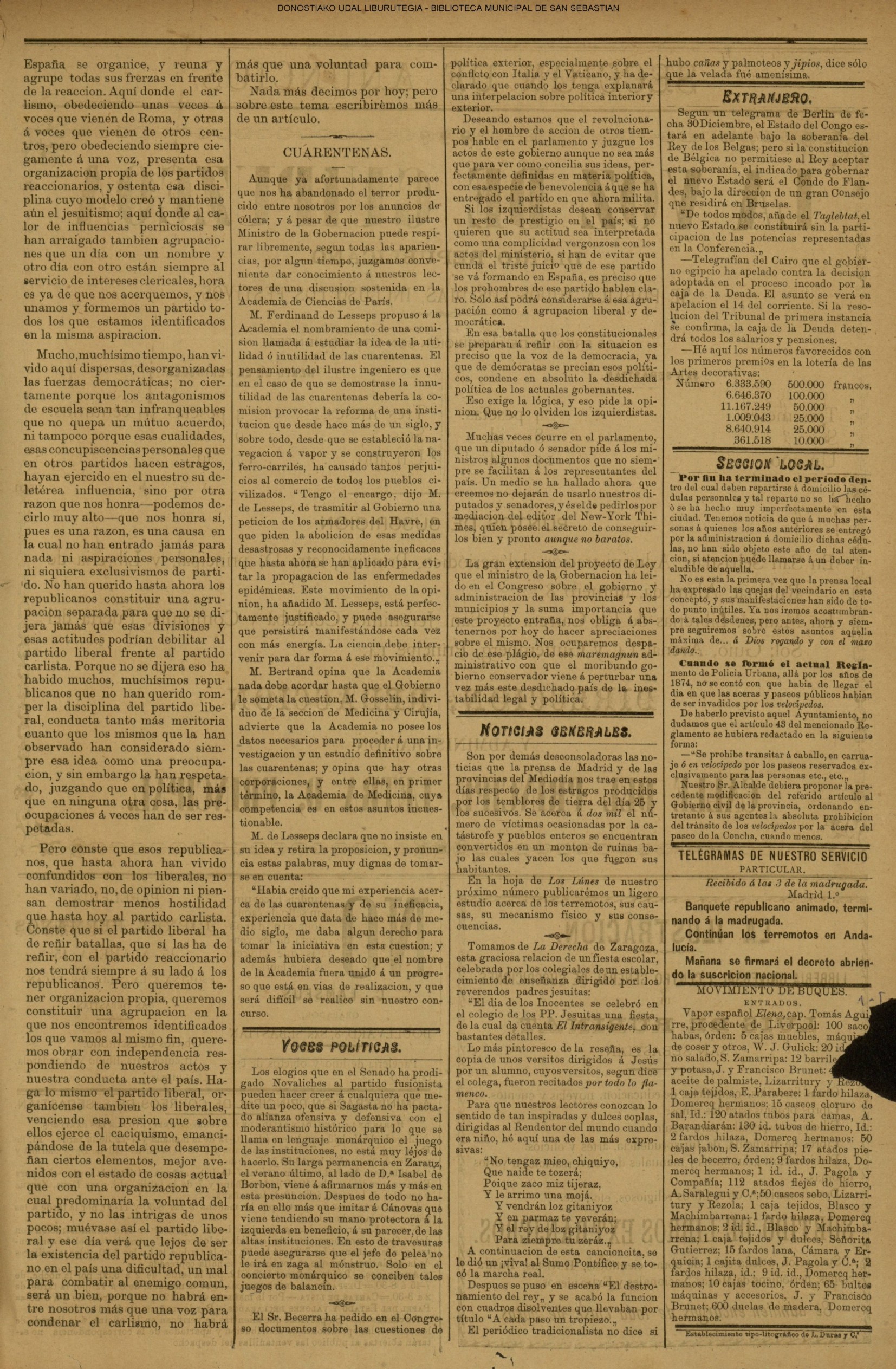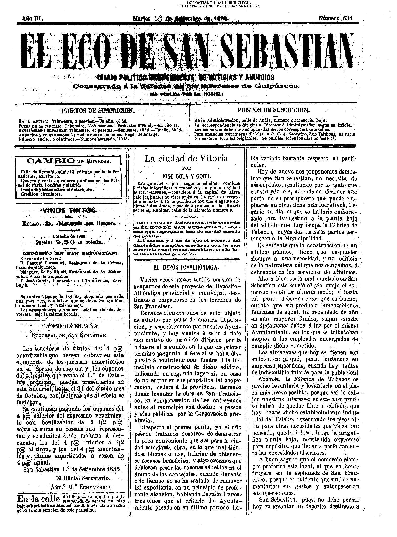 Como prometí a La Época, y por la importancia que representan dichas obras bajo el punto de vista de la prosperidad futura de San Sebastián, voy a ocuparme de ellas, sirviéndome de los datos que poseo y me tiene facilitados el director de las mismas, representante de la empresa