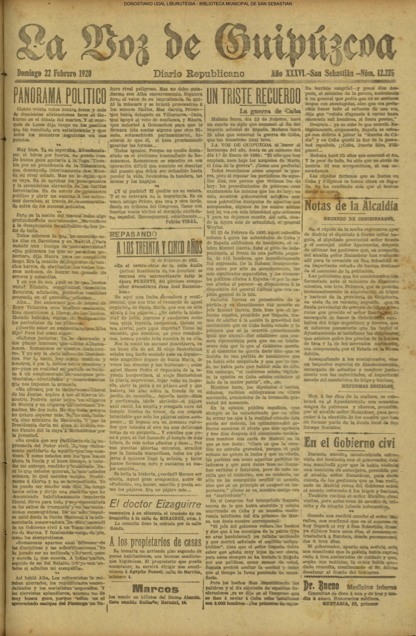 Según los datos publicados últimamente por el Banco general de Madrid, dicha Sociedad, cuyo balance de ganancias ha sido de 1.527.255 pesetas, compañía que a la muerte del Marqués de Salamanca se encargó directamente de dichas obras hidráulicas, el Banco general de Madrid tenía asignado un crédito hipotecario de Un millón Novecientas dos mil pesetas sobre los terrenos de la Zurrióla.