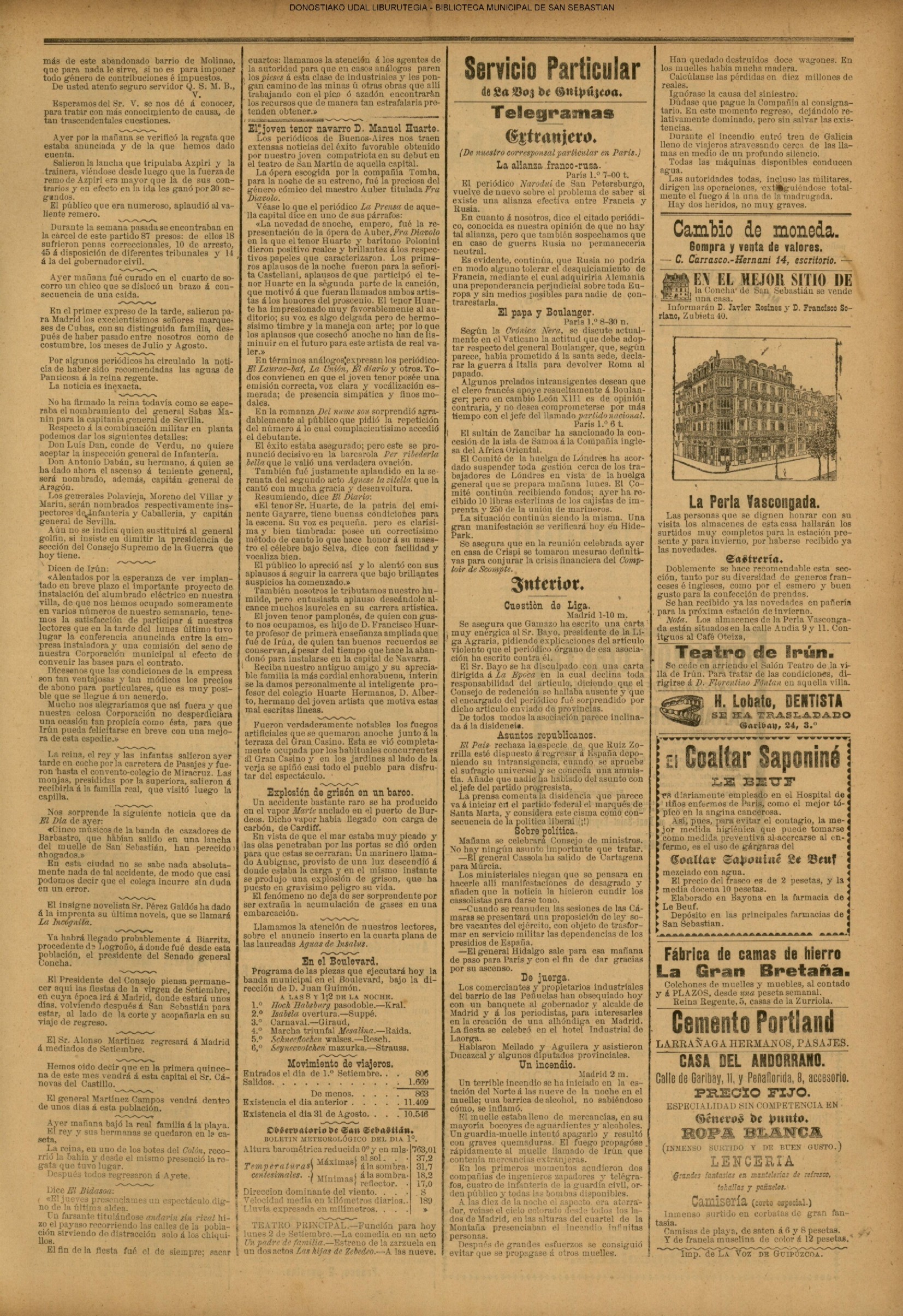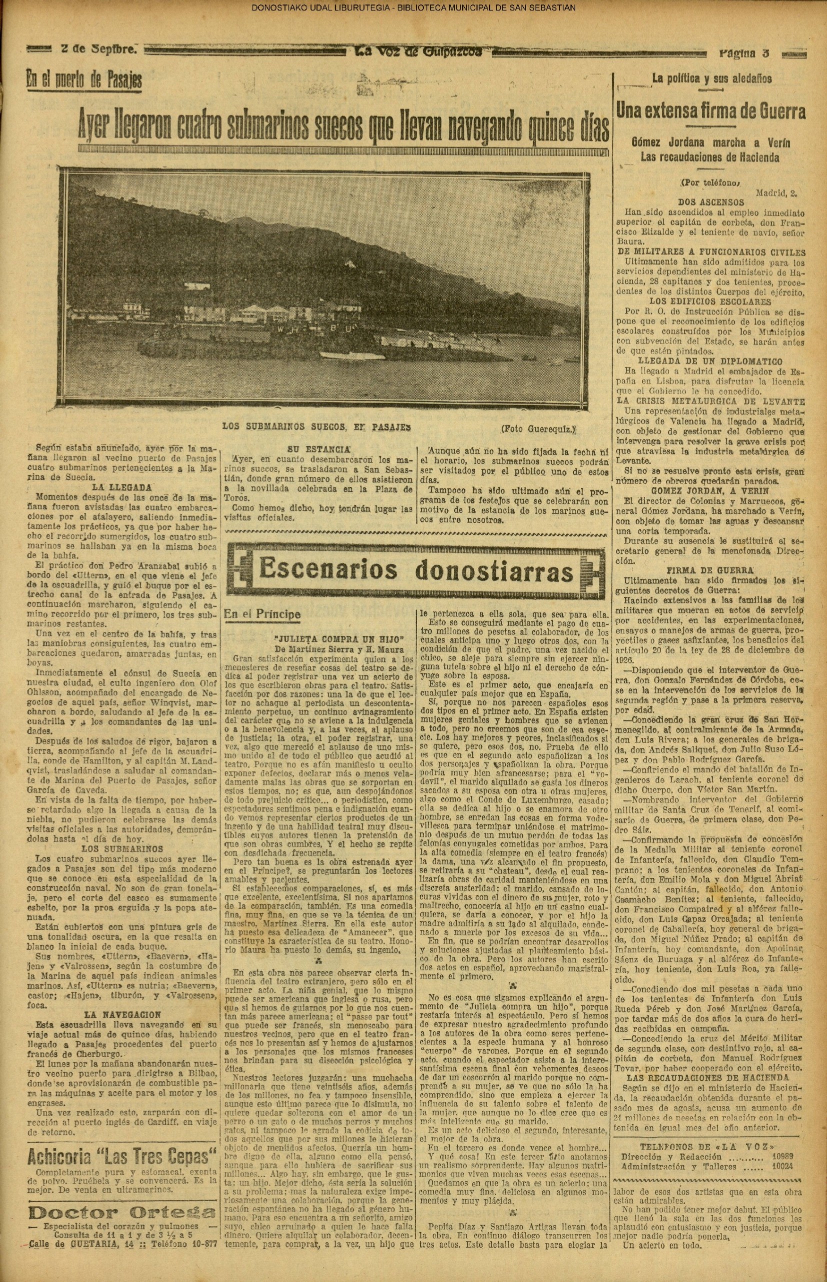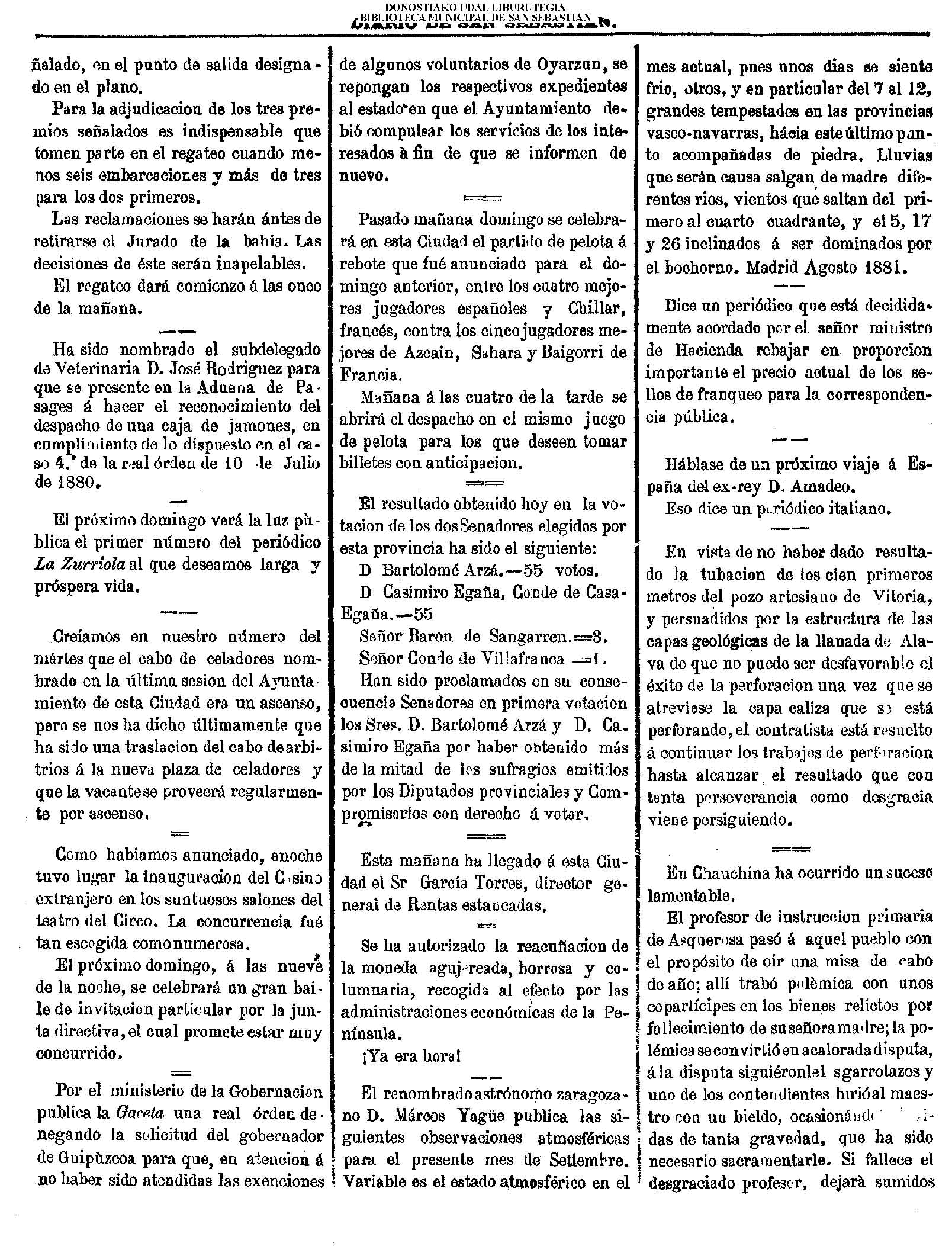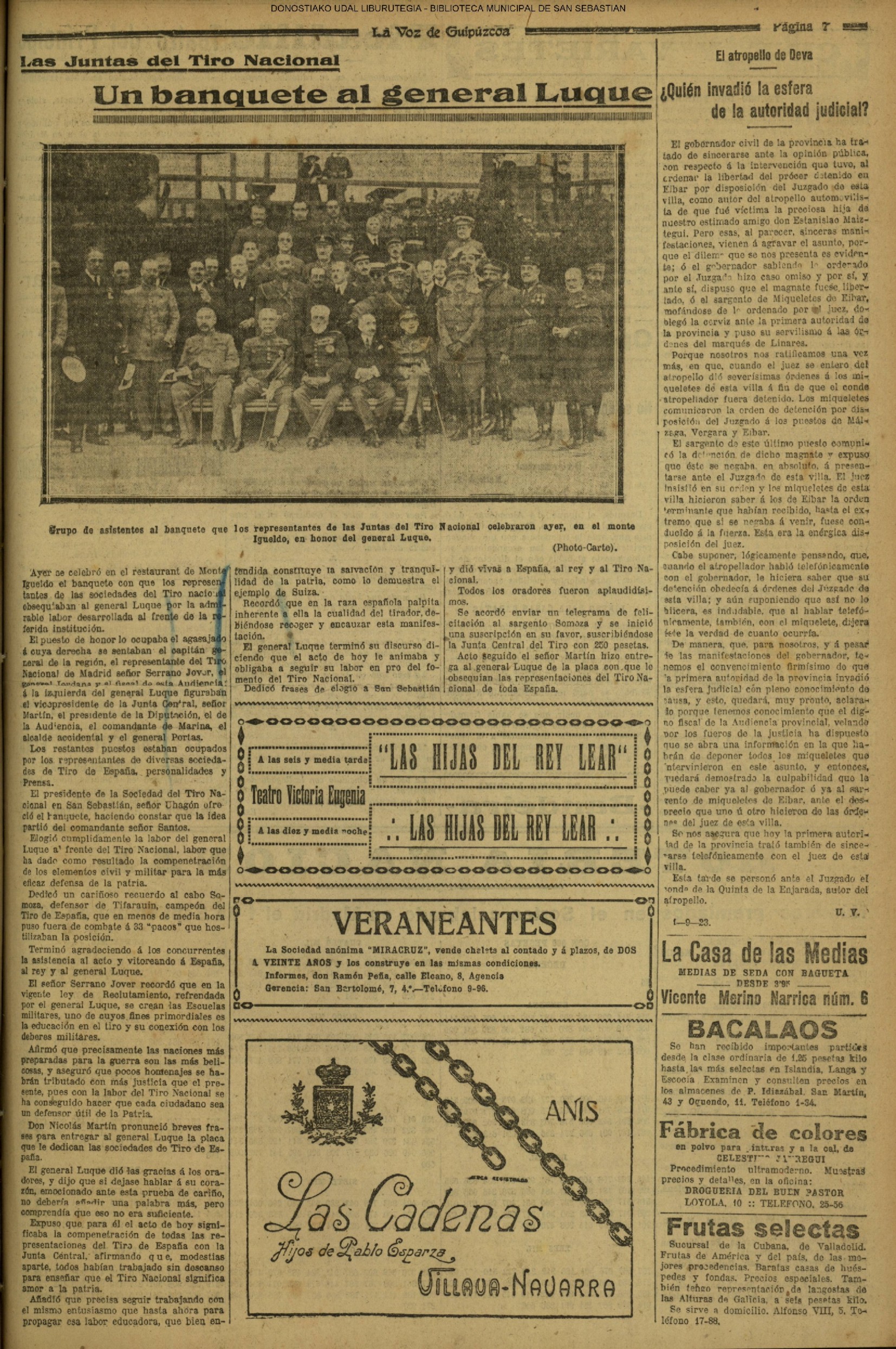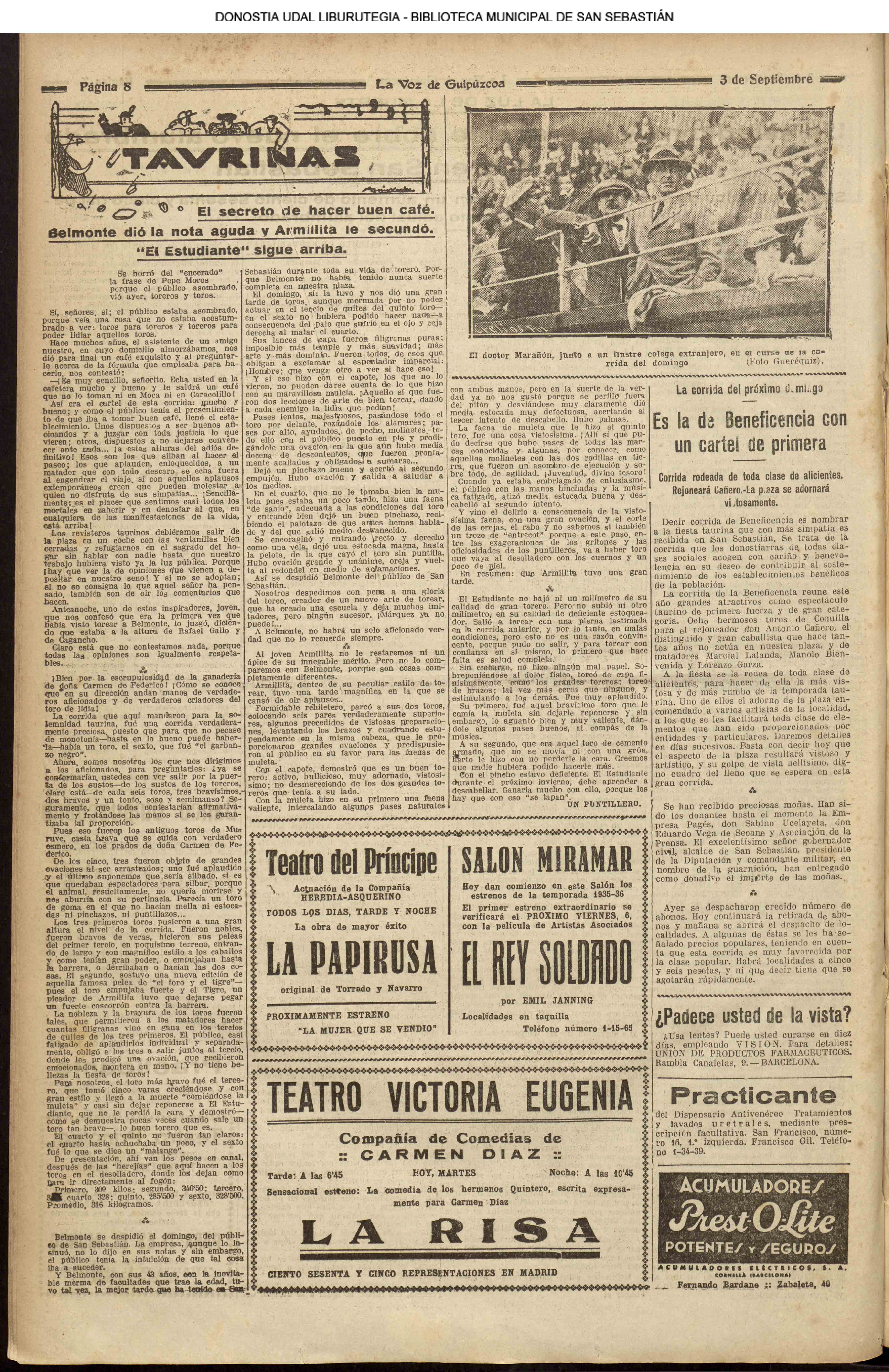 01 - septiembre![]() . | (1931) - LA VOZ DE GUIPUZCOA (CENTROS OFICIALES - Incautación de objetos de arte en una "villa" de San Sebastián.) (La voz de Guipuzcoa)(El Pueblo Vasco)(El Día)(La Constancia) ++++++++++++++++++++++++++++++++++++++++++++++ # EN EL GRAN CASINO.- 36 danzantes comenzaron la prueba para batir el record mundial de baile de resistencia (La Voz de Guipuzcoa)(El Pueblo Vasco)(El Día)(La Constancia) # TAURINAS - BECERRADA (La Voz de Guipuzcoa)(El Pueblo Vasco)(El Día)(La Constancia) ++++++++++++++++++++++++++++++++++++++++++++++ (1933) - (La voz de Guipuzcoa)(El Pueblo Vasco)(El Día)(La Constancia) ++++++++++++++++++++++++++++++++++++++++++++++ (1934) - LA VOZ DE GUIPUZCOA (CENTROS OFICIALES - En el casco viejo donostiarra se formó una manifestación contra el imperialismo y la guerra, y fue disuelta sin incidentes) # LOS AYUNTAMIENTOS VASCOS Y EL ESTADO.- Llegaron a San Sebastián los diputados catalanes que vienen con el propósito de asistir a la Asamblea convocada por la Comisión intermunicipal # PINTORES VASCOS .- Se inaugura en el CAT la exposición de cuadros de Flores Kaperotxipi y de Apellaniz # EL TEMPORAL.- Los veraneantes conocieron la furia del viento que viene del mar y que todo lo destruye ++++++++++++++++++++++++++++++++++++++++++++++ # UN PUEBLO AGRADECIDO .- Guetaria, el pueblo costeño, rindió un sencillo y emocionante HOMENAJE a don Juan Usabiaga y Lasquibar, cuyo nombre ha dado a su Plaza principal # TAURINAS .CORRIDA EXTRAORDINARIA (La voz de Guipuzcoa)(El Pueblo Vasco)(El Día)(La Constancia) # REGATAS EN LA BAHIA.- Ur-kirola en yolas y la tripulación de Aia-Orio en bateles fueron los gandores de las regatas del domingo # NATACIÓN - TRAVESÍA DEL URUMEA.- El francés Pouech, del Biarritz Olimpique, ganó brillantemente la travesia del Urumea, organizada por el Fortuna # CARRERAS DE CABALLOS- HIPÓDROMO DE LASARTE # FESTEJOS DEL 31 DE AGOSTO (La voz de Guipuzcoa)(El Pueblo Vasco)(El Día)(La Constancia) |