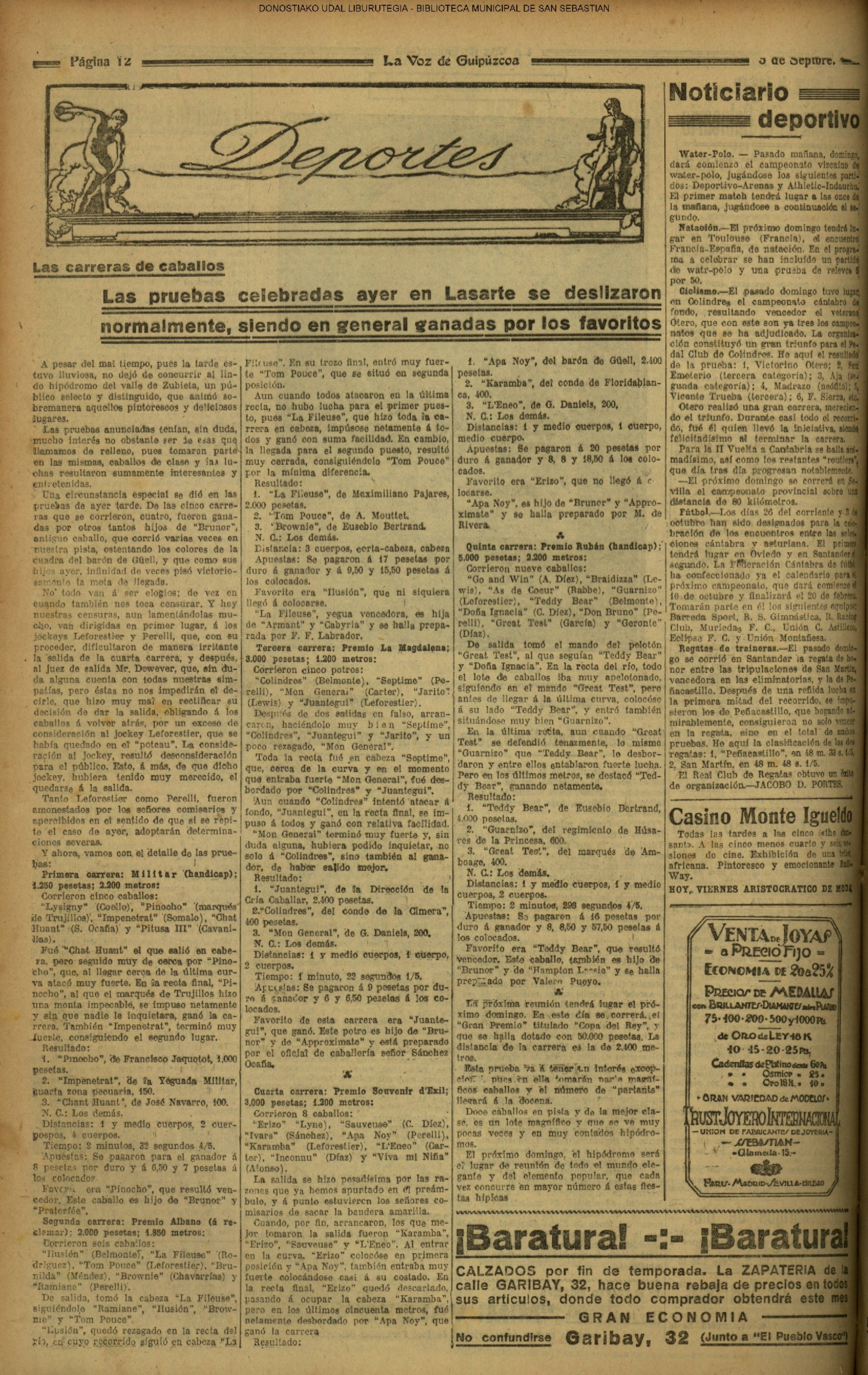 02 - septiembre![]() . | (1931) - LA VOZ DE GUIPUZCOA (CENTROS OFICIALES) (La voz de Guipuzcoa)(El Pueblo Vasco)(El Día)(La Constancia) ++++++++++++++++++++++++++++++++++++++++++++++ (La voz de Guipuzcoa)(El Pueblo Vasco)(El Día)(La Constancia) ++++++++++++++++++++++++++++++++++++++++++++++ (1933) - LA VOZ DE GUIPUZCOA (CENTROS OFICIALES) (La voz de Guipuzcoa)(El Pueblo Vasco)(El Día)(La Constancia) ++++++++++++++++++++++++++++++++++++++++++++++ (1934) - LA VOZ DE GUIPUZCOA (CENTROS OFICIALES) # LOS AYUNTAMIENTOS VASCOS Y EL ESTADO # TAURINAS (La voz de Guipuzcoa)(El Pueblo Vasco)(El Día)(La Constancia) # CARRERAS DE CABALLOS (La voz de Guipuzcoa)(El Pueblo Vasco)(El Día)(La Constancia) ++++++++++++++++++++++++++++++++++++++++++++++ # LOS PRODUCTORES DE GUIPUZCOA - Realiza una visita a la zona fabril el ministro de Industria y Comercio que fue obsequiado con un almuerzo en Azcoitia (La voz de Guipuzcoa)(El Pueblo Vasco)(El Día)(La Constancia) |