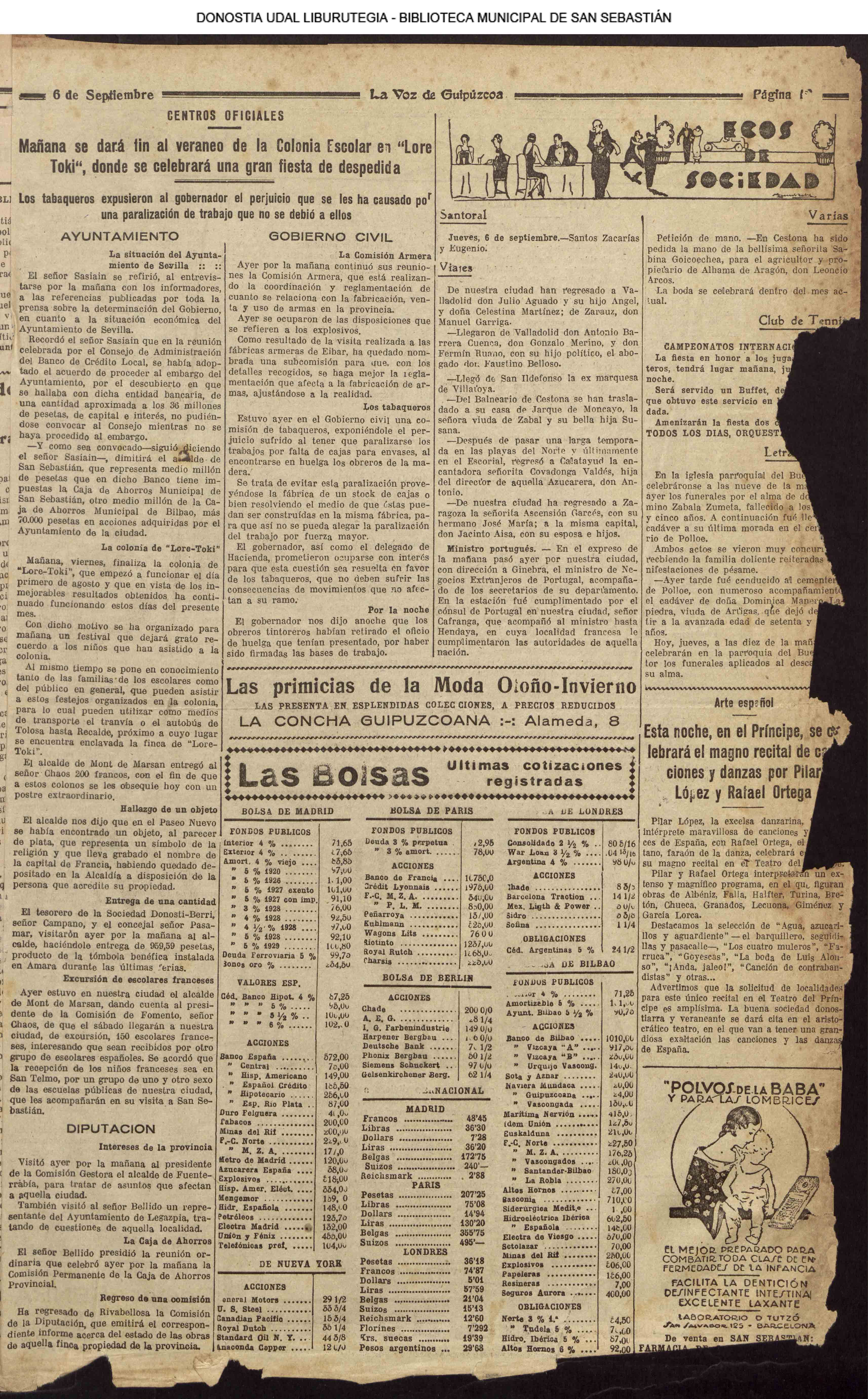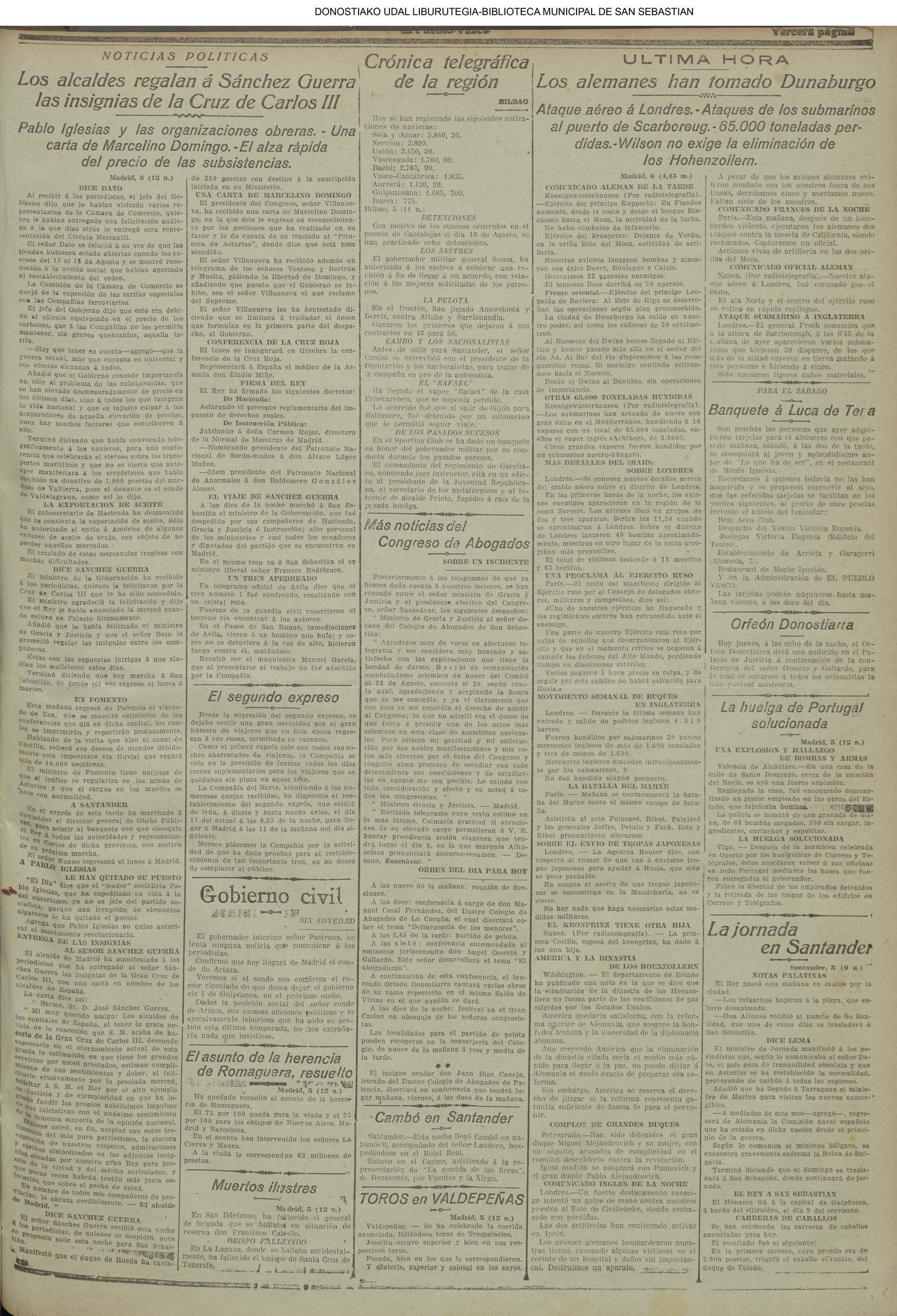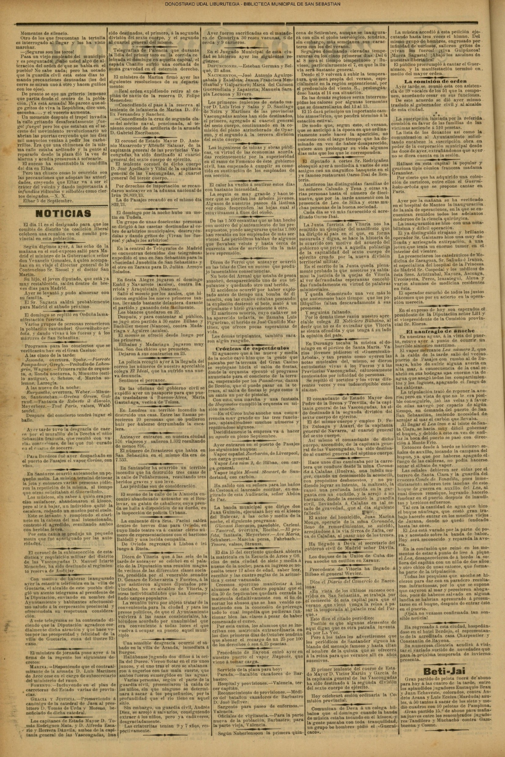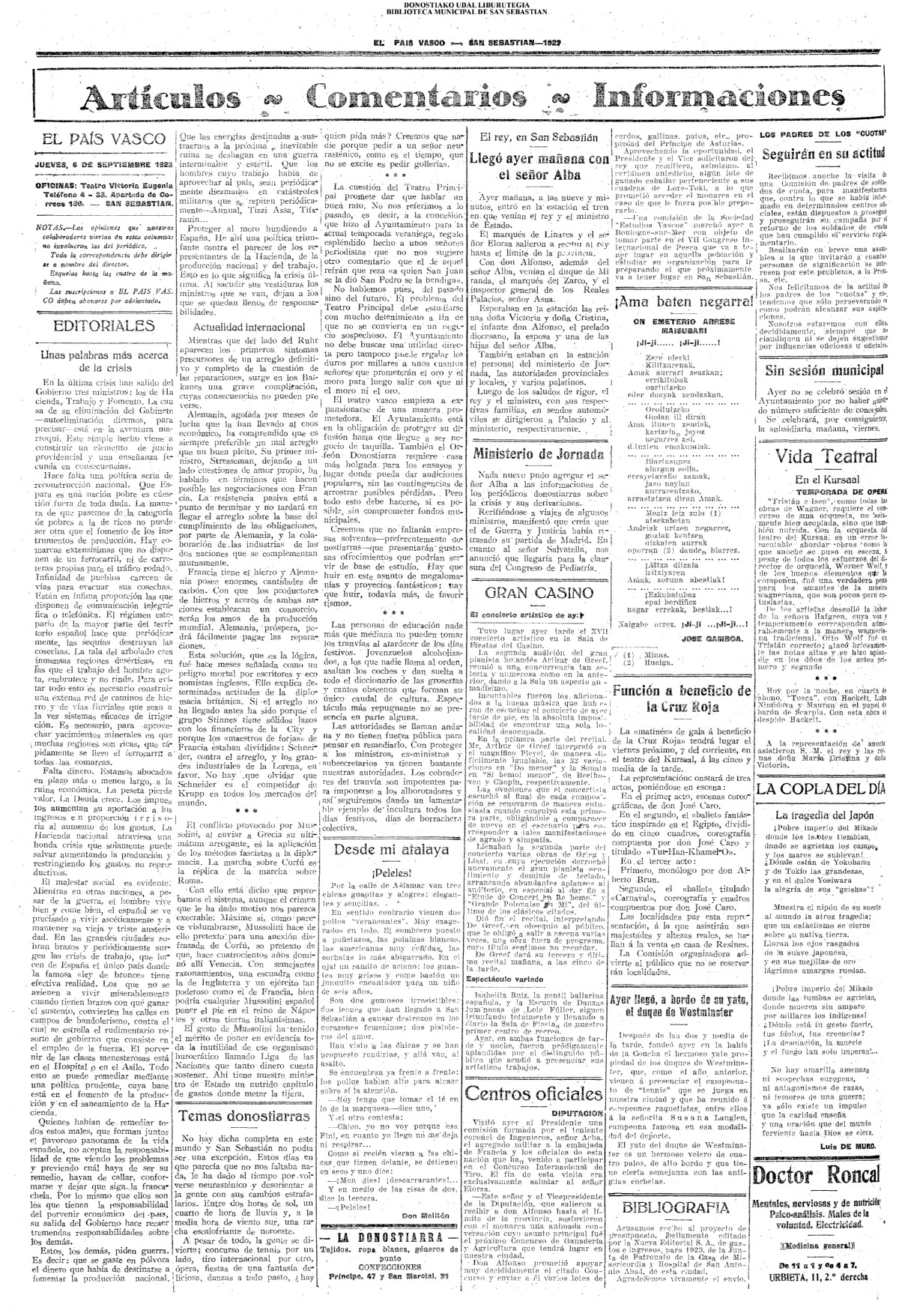 05 - septiembre![]() . | (1931) - LA VOZ DE GUIPUZCOA (CENTROS OFICIALES) # LLEGAN a San Sebastián los Ministros de Hacienda e Instrucción Pública (La voz de Guipuzcoa/cont)(El Pueblo Vasco)(El Día)(La Constancia) ++++++++++++++++++++++++++++++++++++++++++++++ # La fatídica barra de un puerto - en Orio perecen ahogados dos pescadores (La voz de Guipuzcoa)(El Pueblo Vasco)(El Día)(La Constancia) (La voz de Guipuzcoa)(El Pueblo Vasco)(El Día)(La Constancia) ++++++++++++++++++++++++++++++++++++++++++++++ (1933) - LA VOZ DE GUIPUZCOA (CENTROS OFICIALES) # ESTALLA EN CUBA UNA INSURRECIÓN MILITAR (La voz de Guipuzcoa)(El Pueblo Vasco)(El Día)(La Constancia) ++++++++++++++++++++++++++++++++++++++++++++++ (1934) - LA VOZ DE GUIPUZCOA (CENTROS OFICIALES) @ LOS AYUNTAMIENTOS VASCOS Y EL ESTADO (La voz de Guipuzcoa/cont)(El Pueblo Vasco)(El Día)(La Constancia) # PLENO MUNICIPAL (La voz de Guipuzcoa)(El Pueblo Vasco)(El Día)(La Constancia) # A UN CAZADOR LE MATARON DE UN TIRO (La voz de Guipuzcoa)(El Pueblo Vasco)(El Día)(La Constancia) ++++++++++++++++++++++++++++++++++++++++++++++ (La voz de Guipuzcoa)(El Pueblo Vasco)(El Día)(La Constancia) |