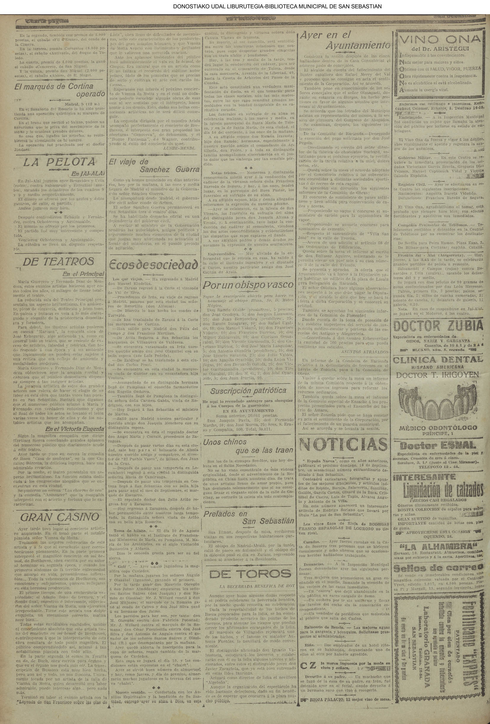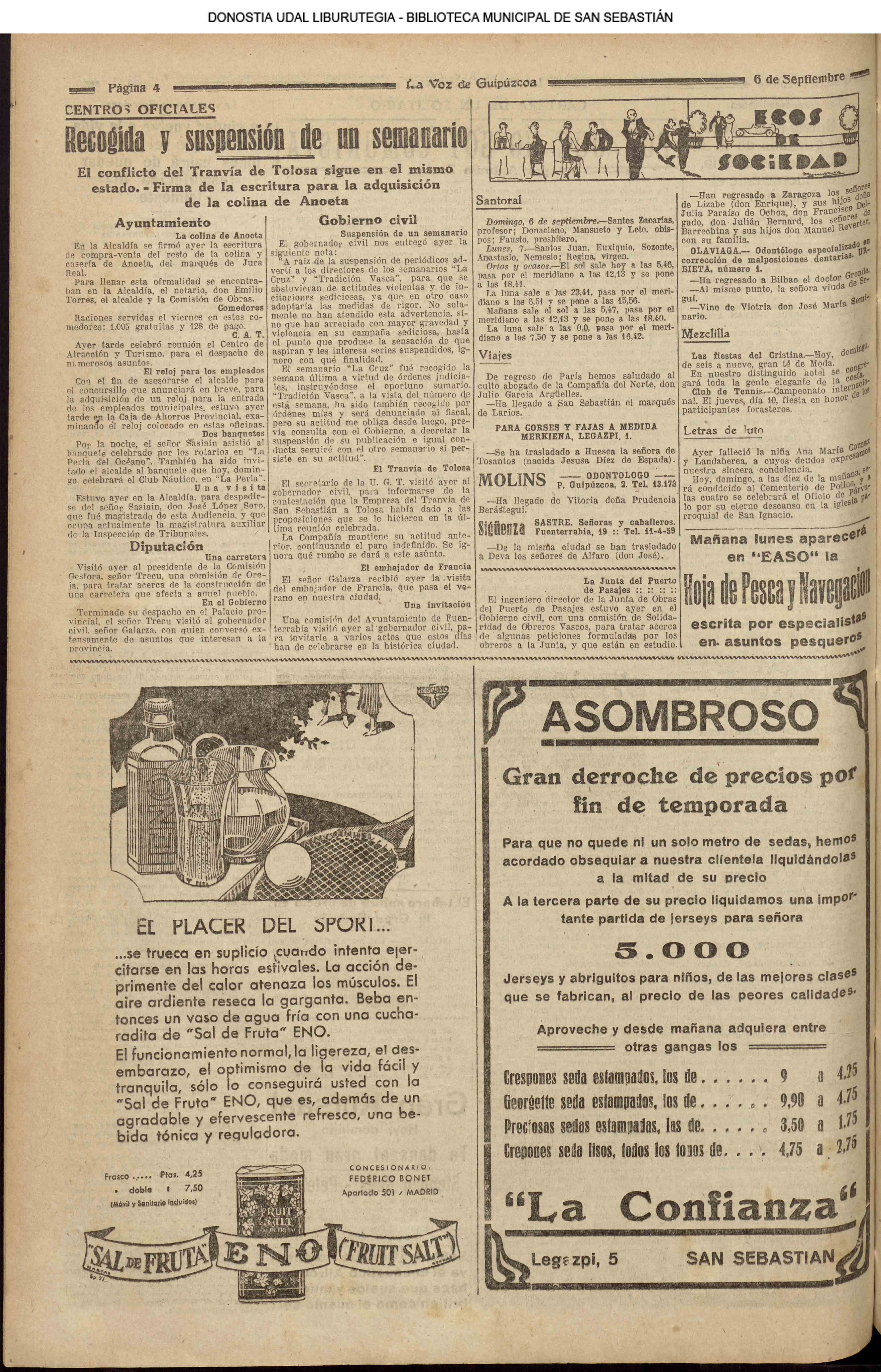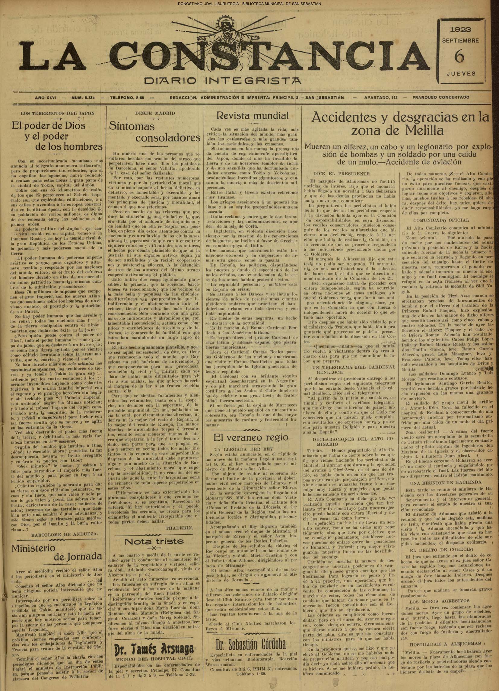 05 - septiembre![]() . | (1931) - LA VOZ DE GUIPUZCOA (CENTROS OFICIALES) # LLEGAN a San Sebastián los Ministros de Hacienda e Instrucción Pública (La voz de Guipuzcoa/cont)(El Pueblo Vasco)(El Día)(La Constancia) ++++++++++++++++++++++++++++++++++++++++++++++ # La fatídica barra de un puerto - en Orio perecen ahogados dos pescadores (La voz de Guipuzcoa)(El Pueblo Vasco)(El Día)(La Constancia) (La voz de Guipuzcoa)(El Pueblo Vasco)(El Día)(La Constancia) ++++++++++++++++++++++++++++++++++++++++++++++ (1933) - LA VOZ DE GUIPUZCOA (CENTROS OFICIALES) # ESTALLA EN CUBA UNA INSURRECIÓN MILITAR (La voz de Guipuzcoa)(El Pueblo Vasco)(El Día)(La Constancia) ++++++++++++++++++++++++++++++++++++++++++++++ (1934) - LA VOZ DE GUIPUZCOA (CENTROS OFICIALES) @ LOS AYUNTAMIENTOS VASCOS Y EL ESTADO (La voz de Guipuzcoa/cont)(El Pueblo Vasco)(El Día)(La Constancia) # PLENO MUNICIPAL (La voz de Guipuzcoa)(El Pueblo Vasco)(El Día)(La Constancia) # A UN CAZADOR LE MATARON DE UN TIRO (La voz de Guipuzcoa)(El Pueblo Vasco)(El Día)(La Constancia) ++++++++++++++++++++++++++++++++++++++++++++++ (La voz de Guipuzcoa)(El Pueblo Vasco)(El Día)(La Constancia) |