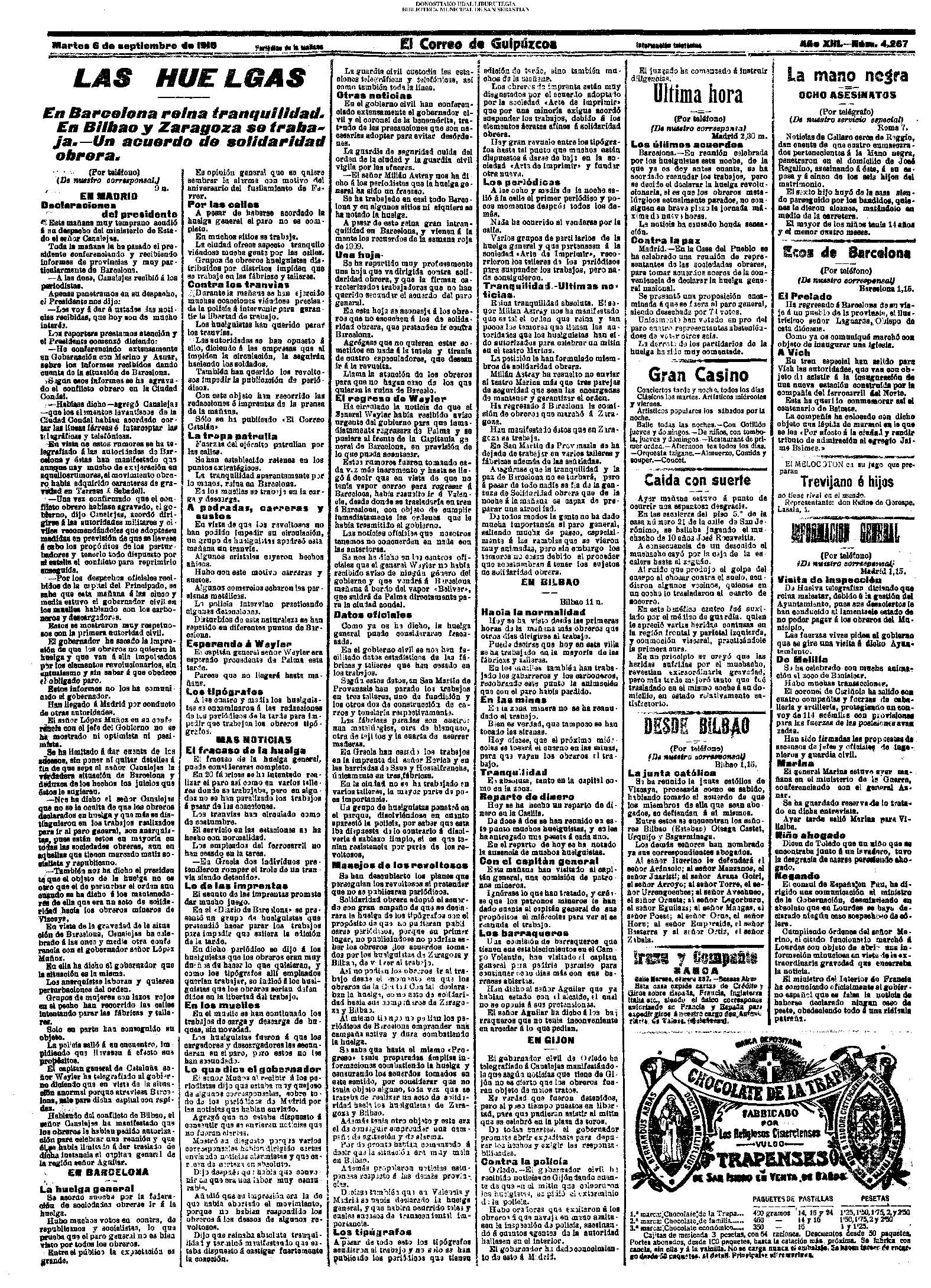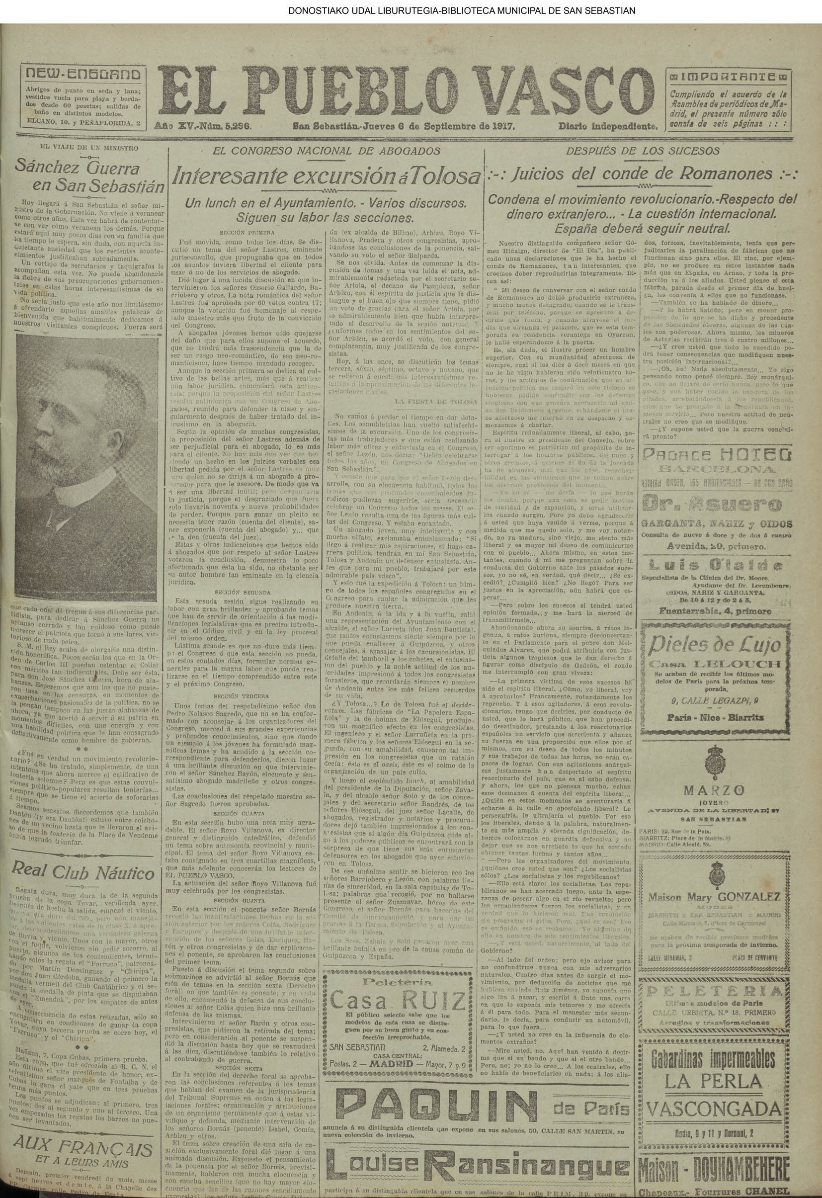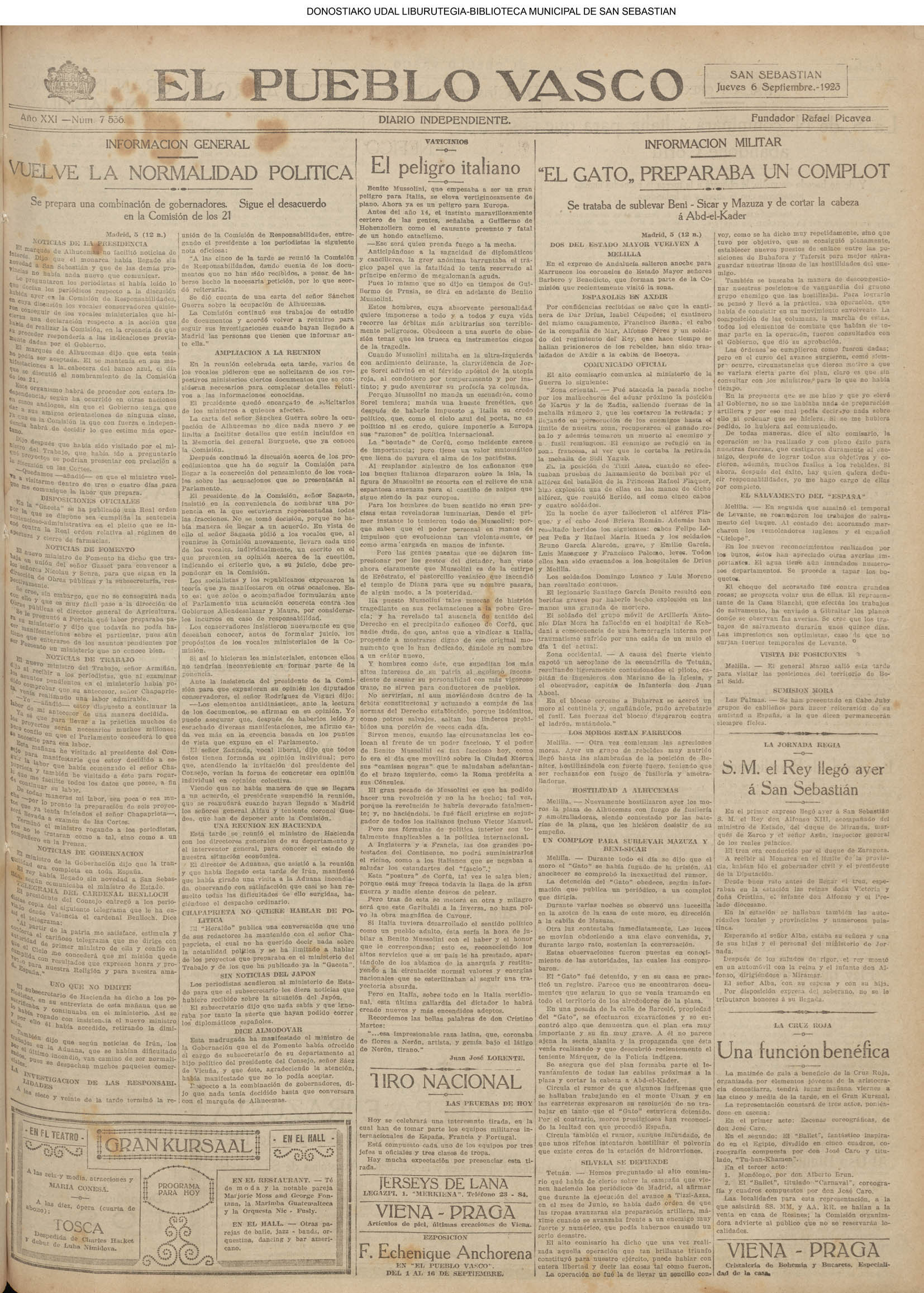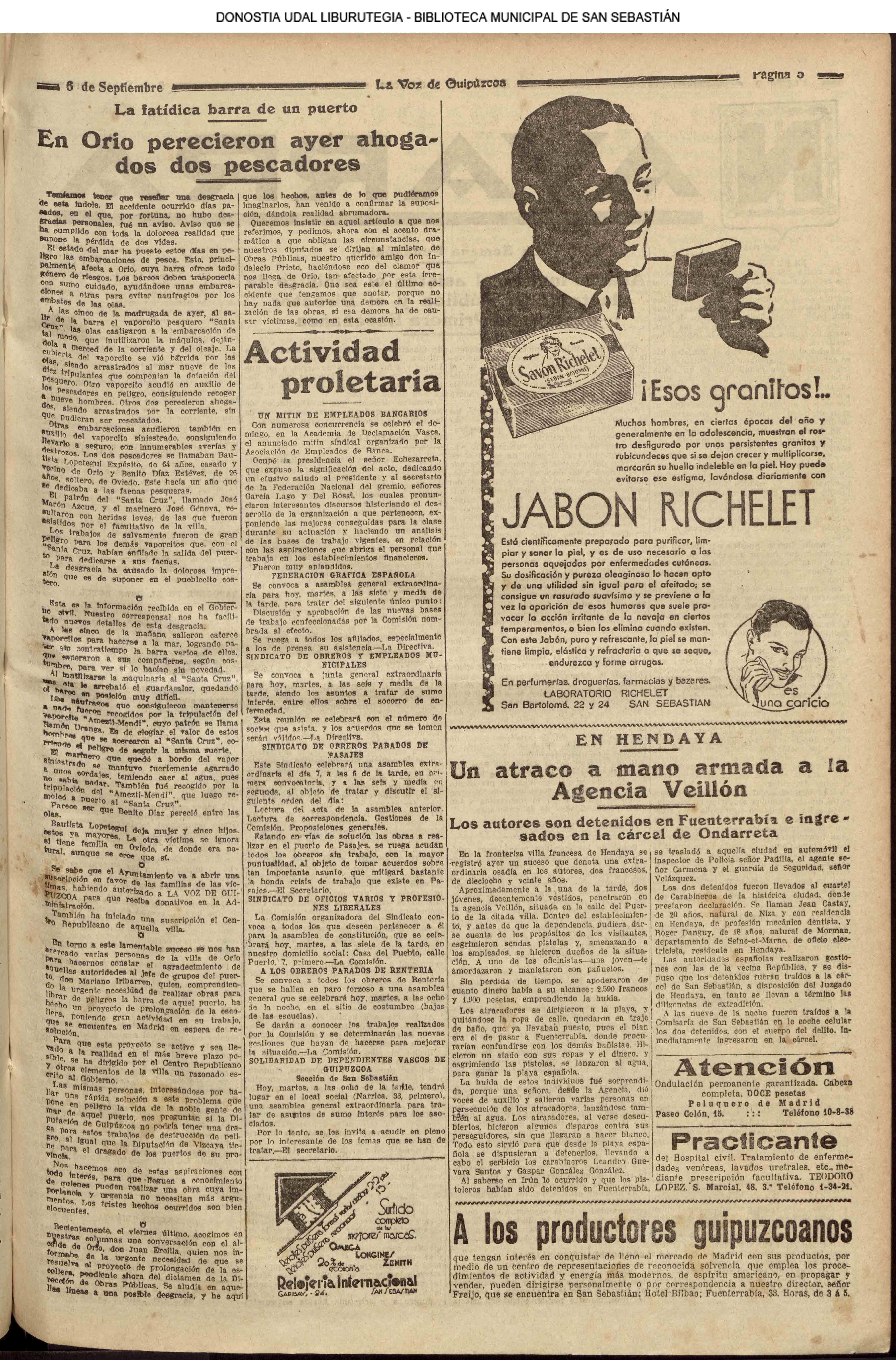 05 - septiembre![]() . | (1931) - LA VOZ DE GUIPUZCOA (CENTROS OFICIALES) # LLEGAN a San Sebastián los Ministros de Hacienda e Instrucción Pública (La voz de Guipuzcoa/cont)(El Pueblo Vasco)(El Día)(La Constancia) ++++++++++++++++++++++++++++++++++++++++++++++ # La fatídica barra de un puerto - en Orio perecen ahogados dos pescadores (La voz de Guipuzcoa)(El Pueblo Vasco)(El Día)(La Constancia) (La voz de Guipuzcoa)(El Pueblo Vasco)(El Día)(La Constancia) ++++++++++++++++++++++++++++++++++++++++++++++ (1933) - LA VOZ DE GUIPUZCOA (CENTROS OFICIALES) # ESTALLA EN CUBA UNA INSURRECIÓN MILITAR (La voz de Guipuzcoa)(El Pueblo Vasco)(El Día)(La Constancia) ++++++++++++++++++++++++++++++++++++++++++++++ (1934) - LA VOZ DE GUIPUZCOA (CENTROS OFICIALES) @ LOS AYUNTAMIENTOS VASCOS Y EL ESTADO (La voz de Guipuzcoa/cont)(El Pueblo Vasco)(El Día)(La Constancia) # PLENO MUNICIPAL (La voz de Guipuzcoa)(El Pueblo Vasco)(El Día)(La Constancia) # A UN CAZADOR LE MATARON DE UN TIRO (La voz de Guipuzcoa)(El Pueblo Vasco)(El Día)(La Constancia) ++++++++++++++++++++++++++++++++++++++++++++++ (La voz de Guipuzcoa)(El Pueblo Vasco)(El Día)(La Constancia) |