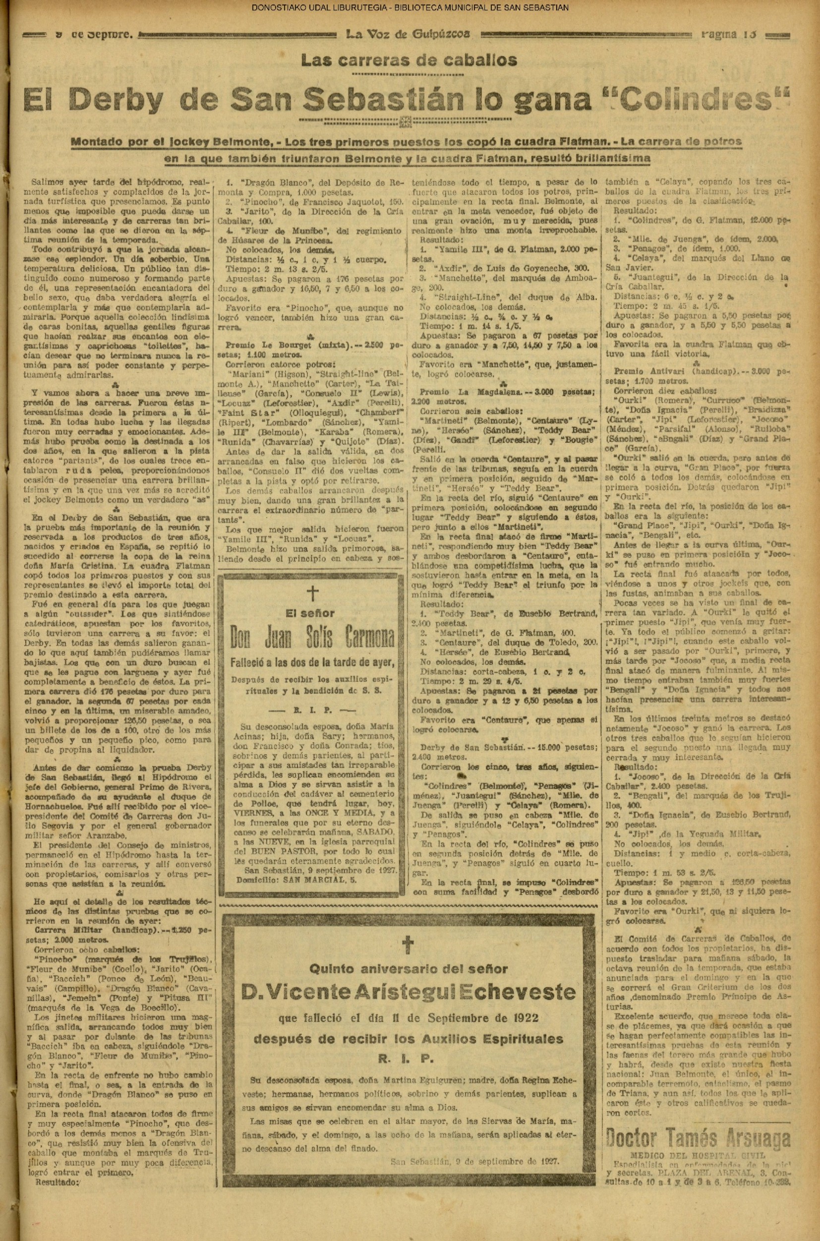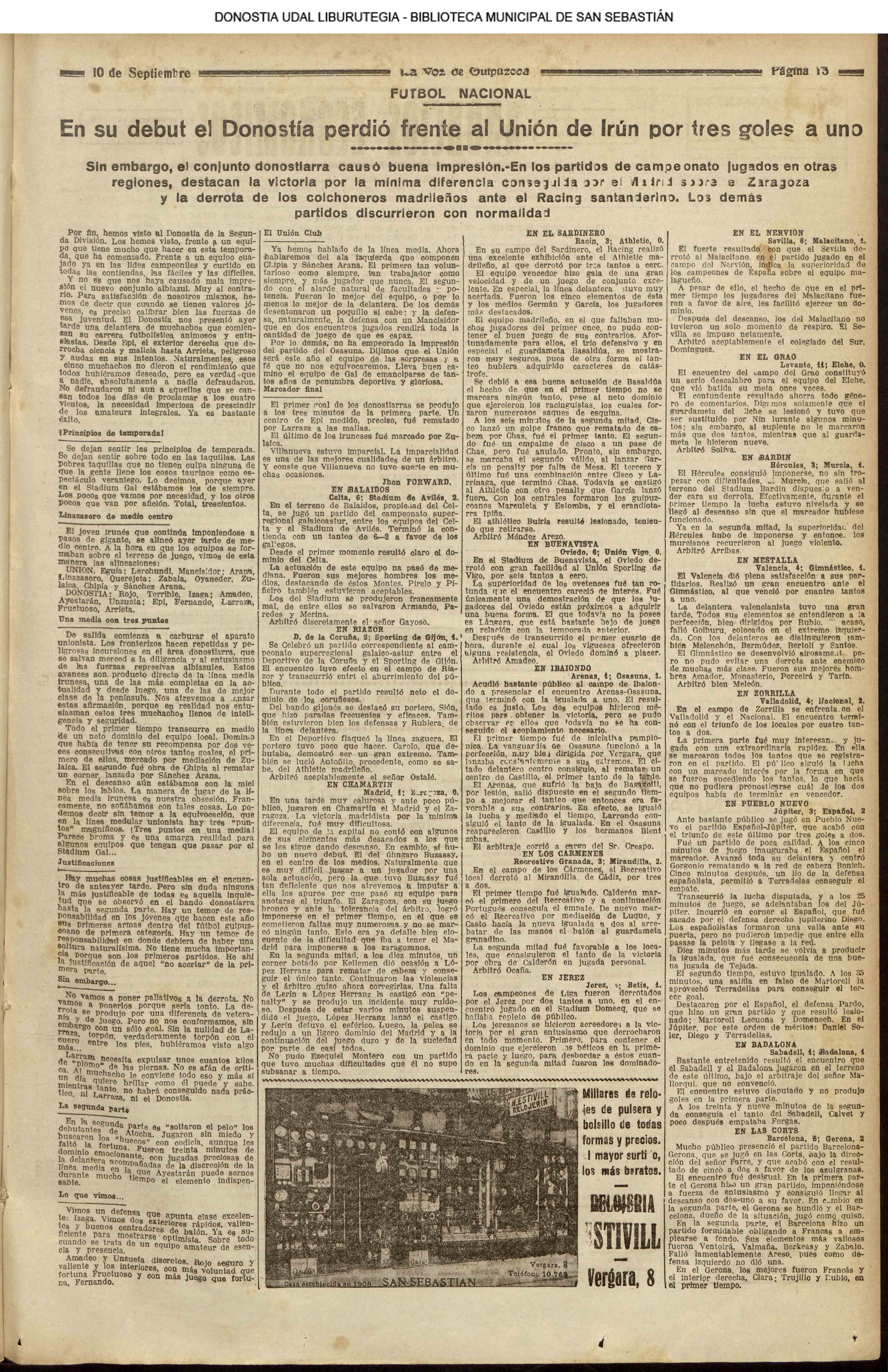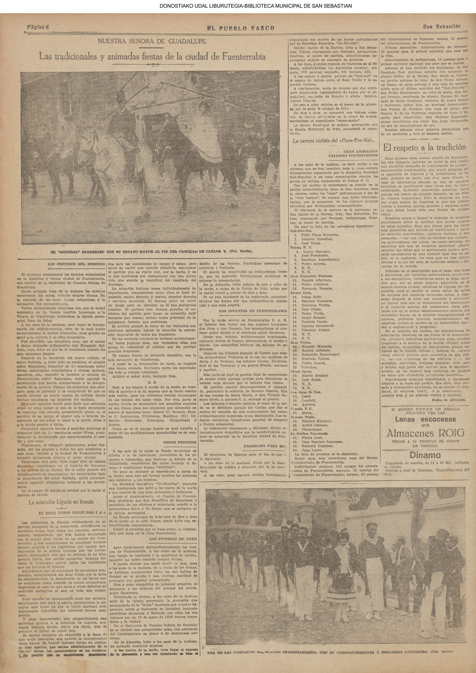 08 - septiembre![]() . | (1931) - LA VOZ DE GUIPUZCOA (CENTROS OFICIALES) (La voz de Guipuzcoa)(El Pueblo Vasco)(El Día)(La Constancia) ++++++++++++++++++++++++++++++++++++++++++++++ (1932) - LA VOZ DE GUIPUZCOA (CENTROS OFICIALES) (La voz de Guipuzcoa)(El Pueblo Vasco)(El Día)(La Constancia) ++++++++++++++++++++++++++++++++++++++++++++++ (1933) - # Durante veinticuatro horas, la vida de trabajo en San Sebastián quedó paralizada por la huelga general que se declaró por solidaridad con los obreros carroceros (La voz de Guipuzcoa/cont)(El Pueblo Vasco)(El Día)(La Constancia) ++++++++++++++++++++++++++++++++++++++++++++++ (1934) - LA VOZ DE GUIPUZCOA (CENTROS OFICIALES) (La voz de Guipuzcoa)(El Pueblo Vasco)(El Día)(La Constancia) ++++++++++++++++++++++++++++++++++++++++++++++ (1935) - LA VOZ DE GUIPUZCOA (CENTROS OFICIALES) # REGATAS EN LA CONCHA (La voz de Guipuzcoa/cont)(El Pueblo Vasco)(El Día)(La Constancia) # ALARDE DE FUENTERRABIA (La voz de Guipuzcoa)(El Pueblo Vasco)(El Día)(La Constancia) # FOOTBALL - UNIÓN DE IRÚN (3-1) DONOSTIA (La voz de Guipuzcoa)(El Pueblo Vasco)(El Día)(La Constancia) # TAURINAS CORRIDA DE LA BENEFICENCIA (La voz de Guipuzcoa)(El Pueblo Vasco)(El Día)(La Constancia) |