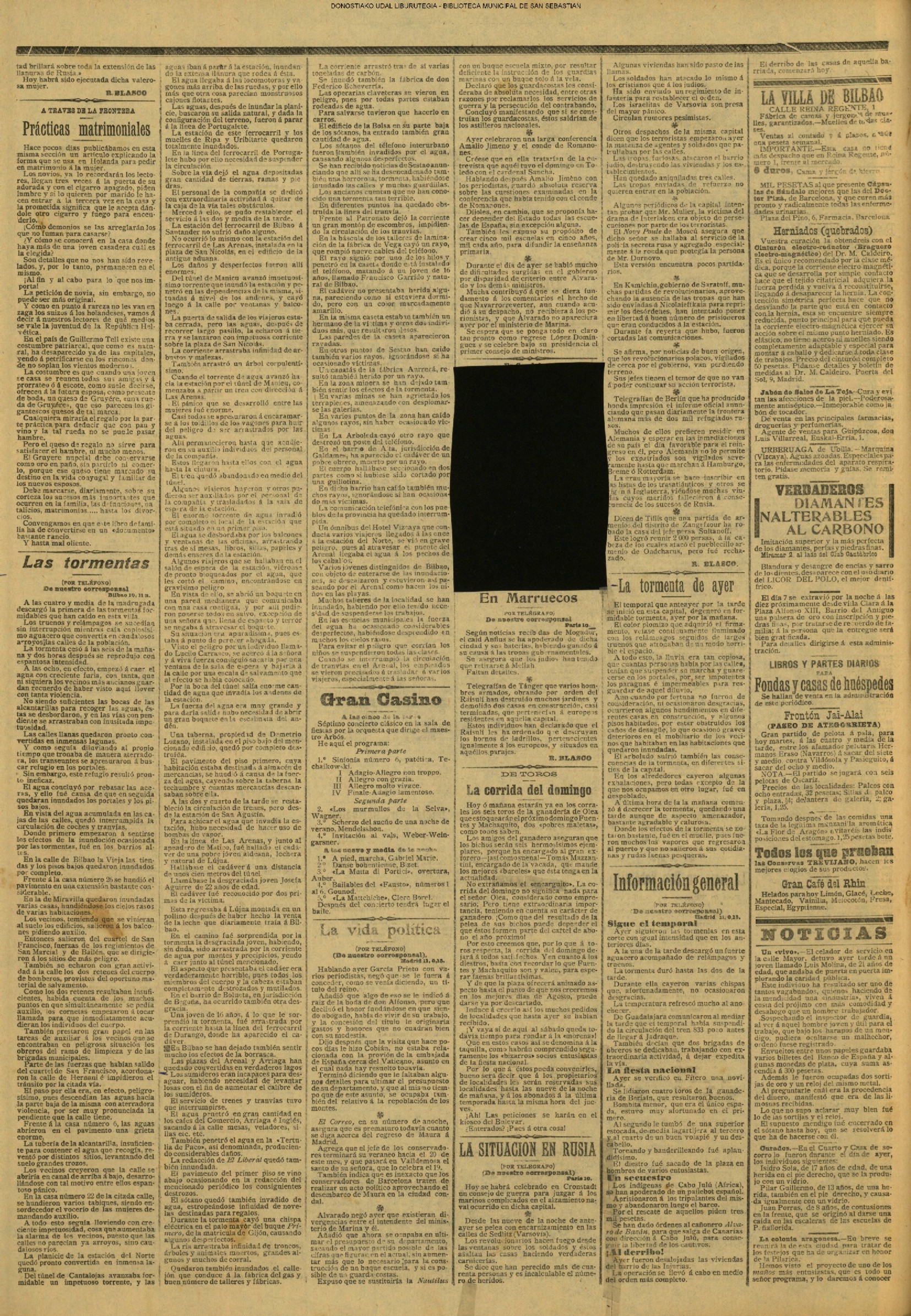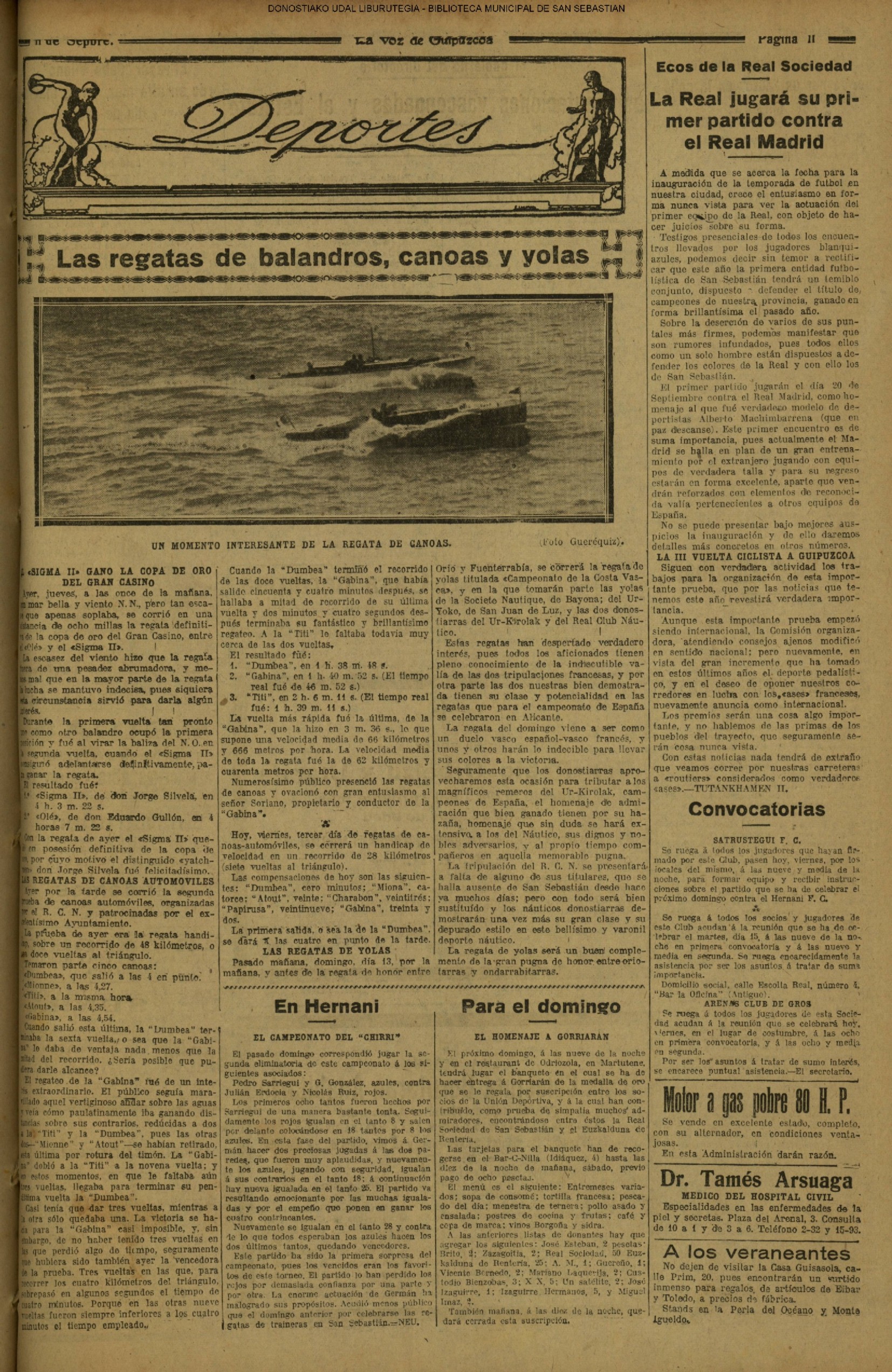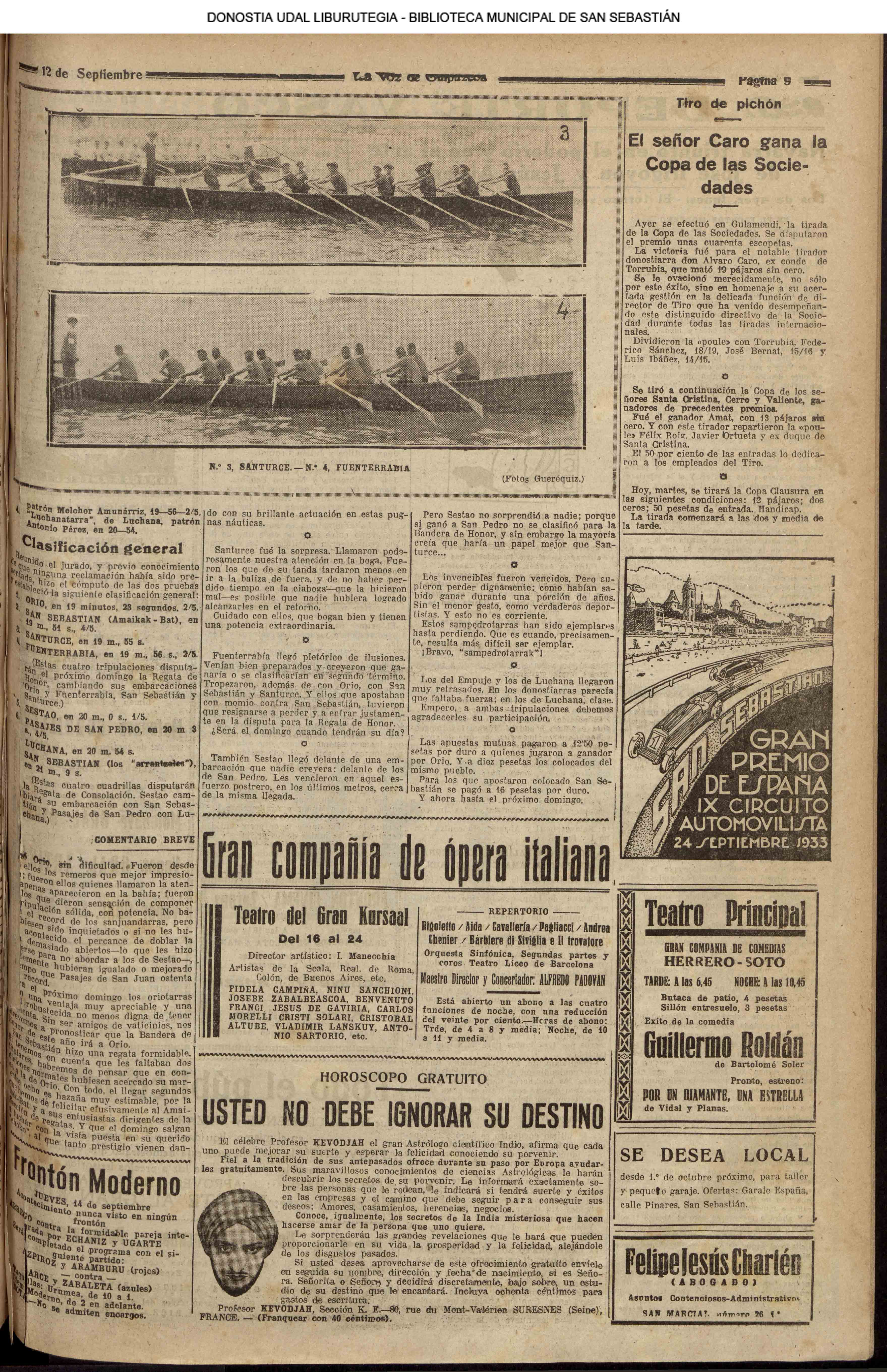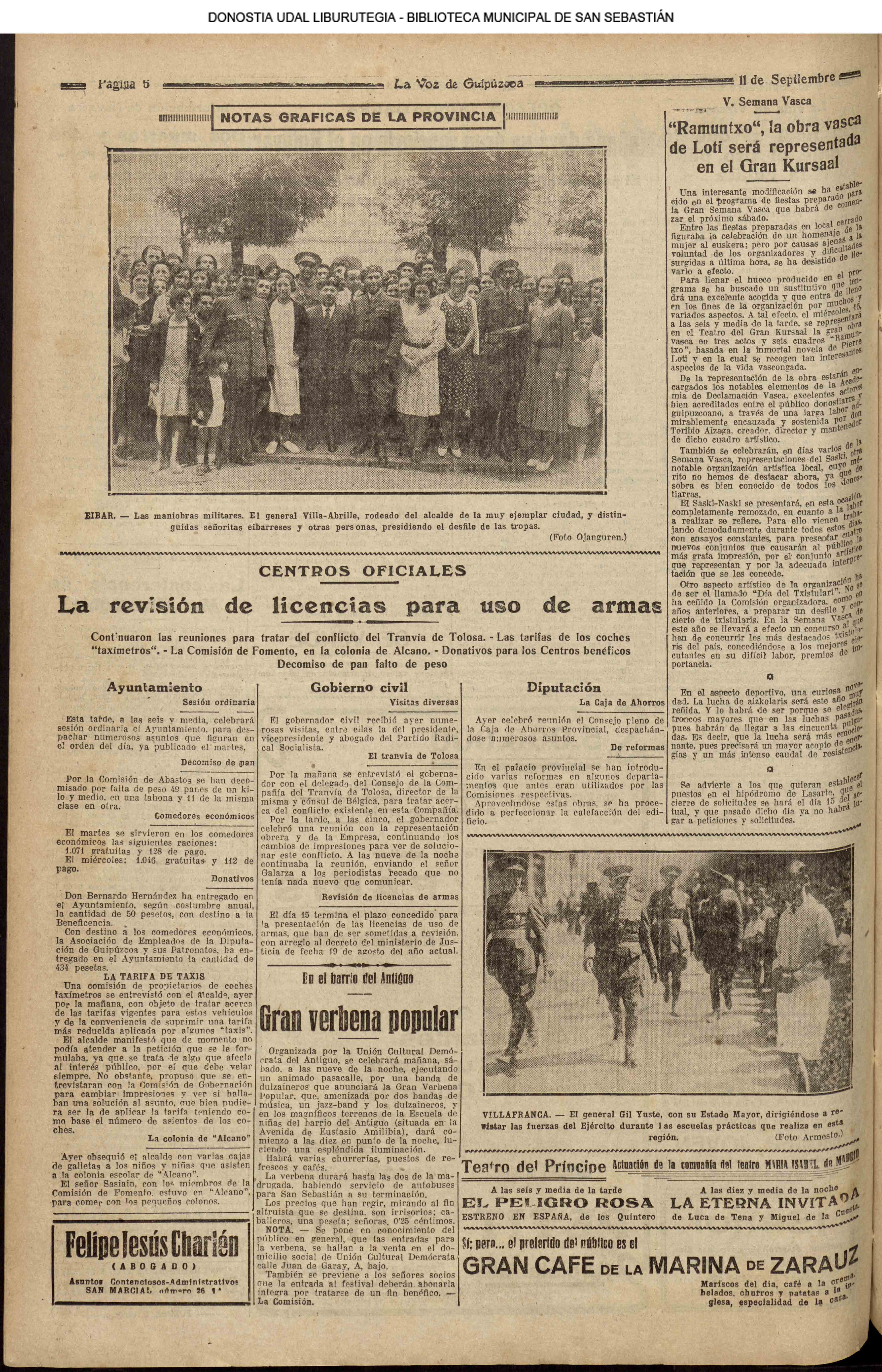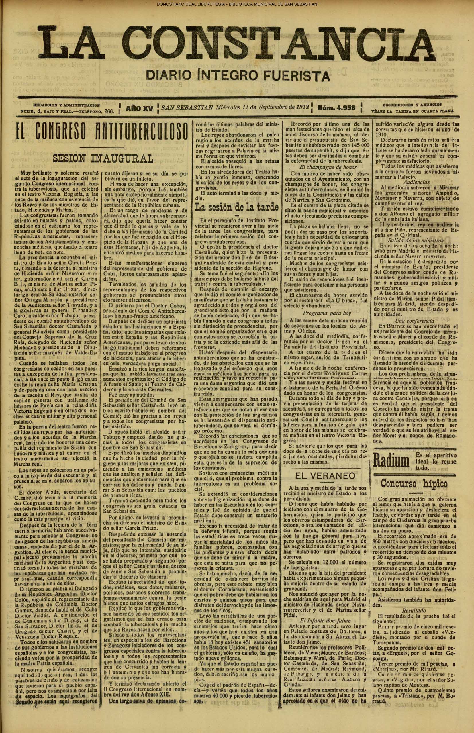 10 - septiembre![]() . | (1931) - LA VOZ DE GUIPUZCOA (CENTROS OFICIALES) (La voz de Guipuzcoa)(El Pueblo Vasco)(El Día)(La Constancia) ++++++++++++++++++++++++++++++++++++++++++++++ (1932) - LA VOZ DE GUIPUZCOA (CENTROS OFICIALES) # UN DÍA DE TRIUNFO PARA LA REPÚBLICA- El Presidente de la República, Sr. Alcalá Zamora llega a San Sebastián (La voz de Guipuzcoa/cont/cont/cont)(El Pueblo Vasco)(El Día)(La Constancia) ++++++++++++++++++++++++++++++++++++++++++++++ # EN EL PUERTO DE PASAJES, se celebró una importante asamblea para pedir la reposición o suspensión del decreto que eleva las tarifas. (La voz de Guipuzcoa)(El Pueblo Vasco)(El Día)(La Constancia) # REGATAS EN LA CONCHA # TAURINAS. CORRIDA DE LA BENEFICENCIA (La voz de Guipuzcoa)(El Pueblo Vasco)(El Día)(La Constancia) ++++++++++++++++++++++++++++++++++++++++++++++ # ATENTADO- UN CRIMEN ODIOSO.- A la noche dispararon sus pistolas unos individuos contra el ex director general de Seguridad don Manuel Andrés (La voz de Guipuzcoa/cont)(El Pueblo Vasco)(El Día)(La Constancia) ++++++++++++++++++++++++++++++++++++++++++++++ (1935) - LA VOZ DE GUIPUZCOA (CENTROS OFICIALES : La Comisión Gestora municipal, por medio de un representante, expresó su pésame a don Pío Baroja, por el fallecimiento de su madre) # ANIVERSARIO DE LA MUERTE DE MANUEL ANDRÉS - Fue conmemorado el aniversario del acontecimiento luctuoso con un solemne silencio de recuerdo y de homenaje republicano (La voz de Guipuzcoa)(El Pueblo Vasco)(El Día)(La Constancia) # EN LA CASA CONSISTORIAL . .- A cuenta de las obras de desmonte y relleno en Amara entablose nuevo debate en la reunión que celebró la Gestora, acordándose que el informe quede para más amplio estudio. (La voz de Guipuzcoa)(El Pueblo Vasco)(El Día)(La Constancia) |