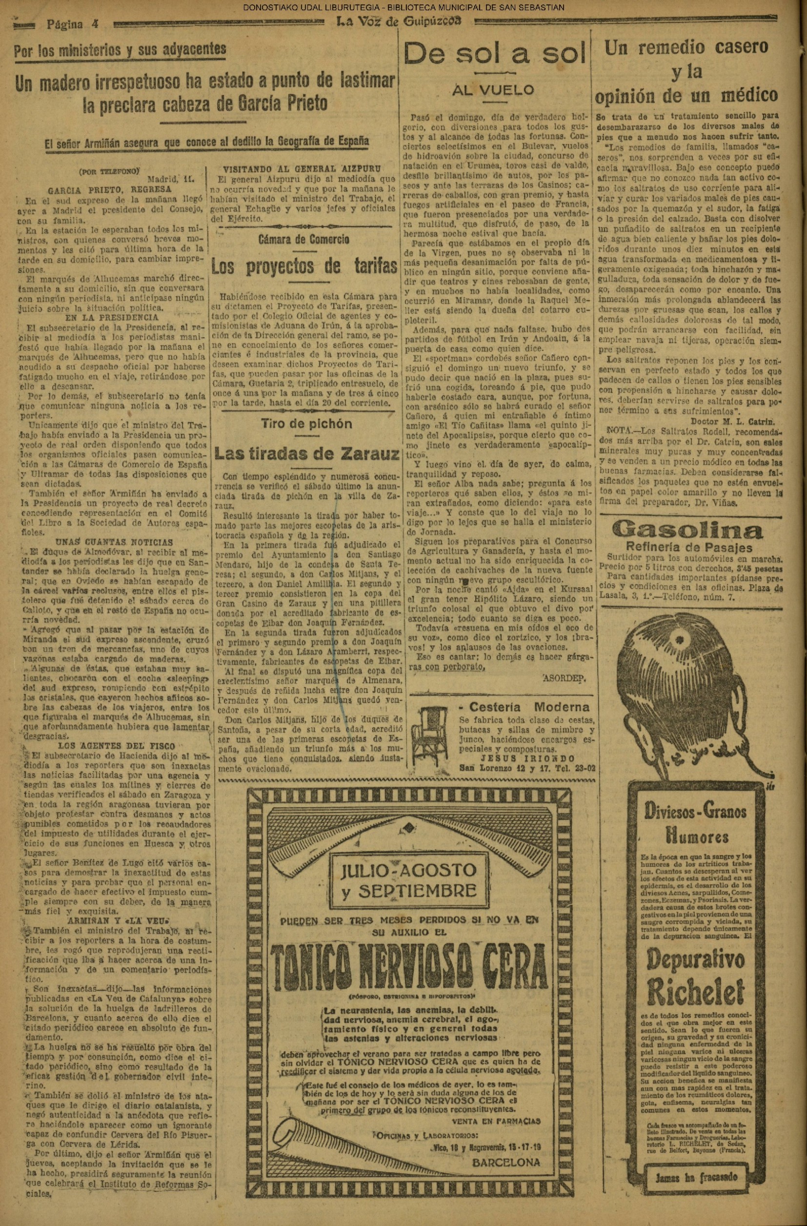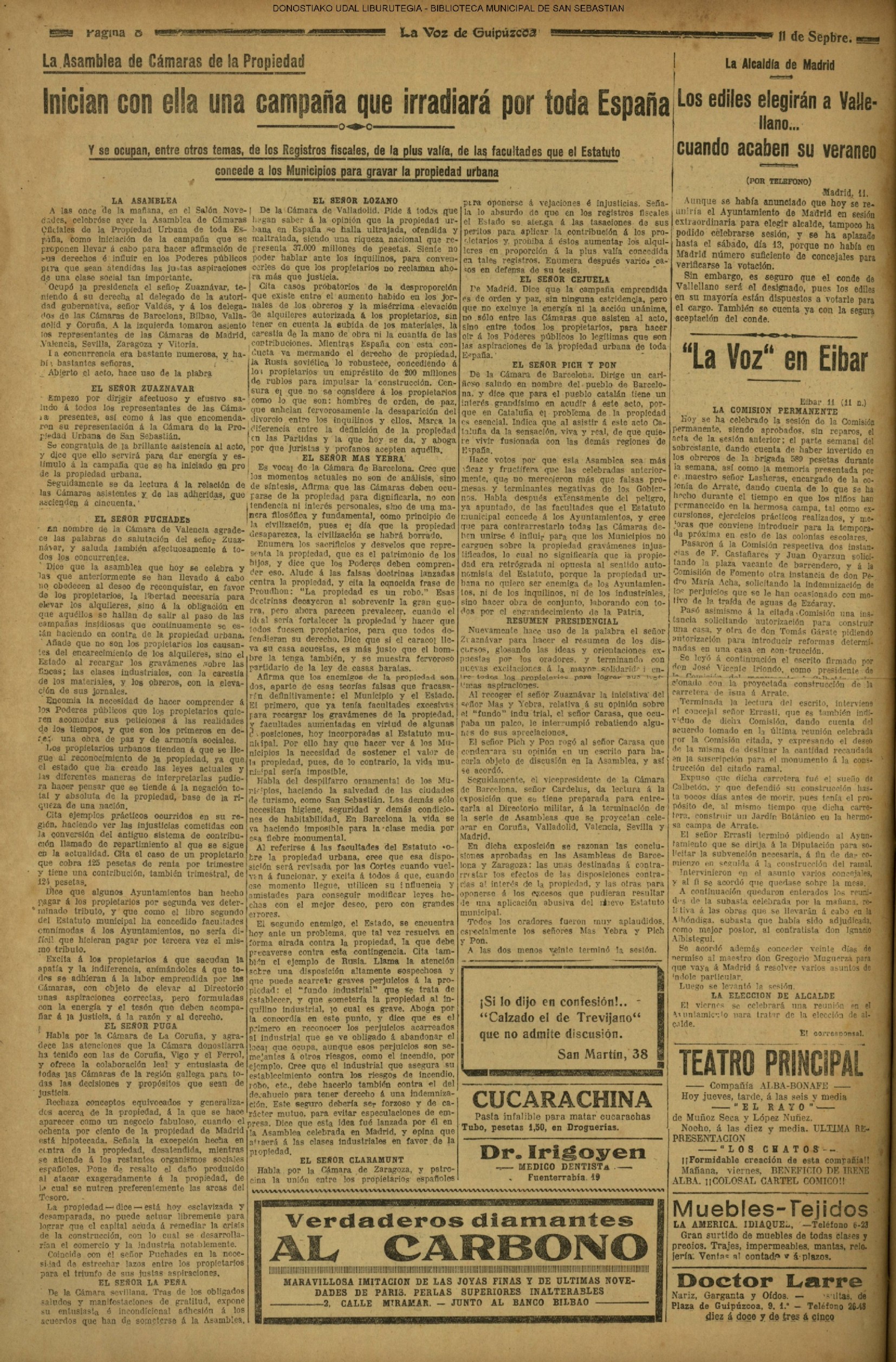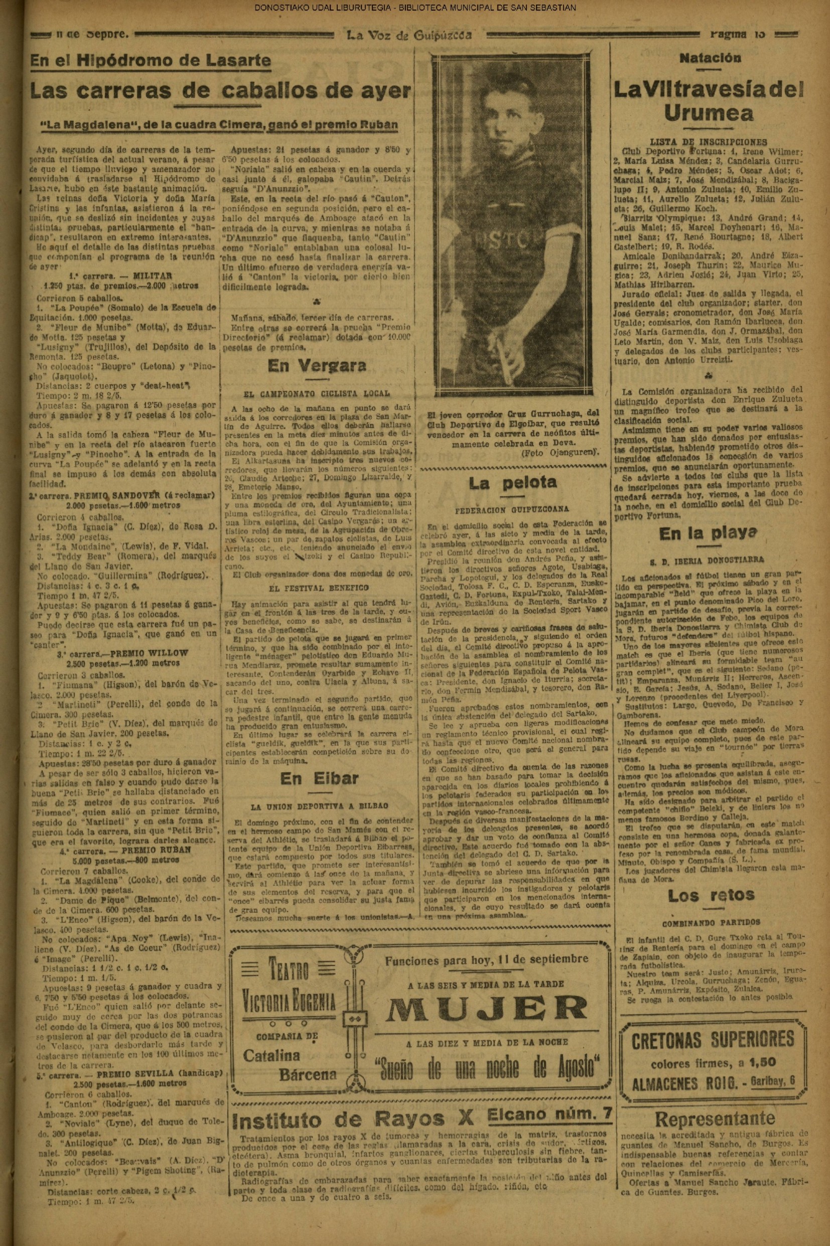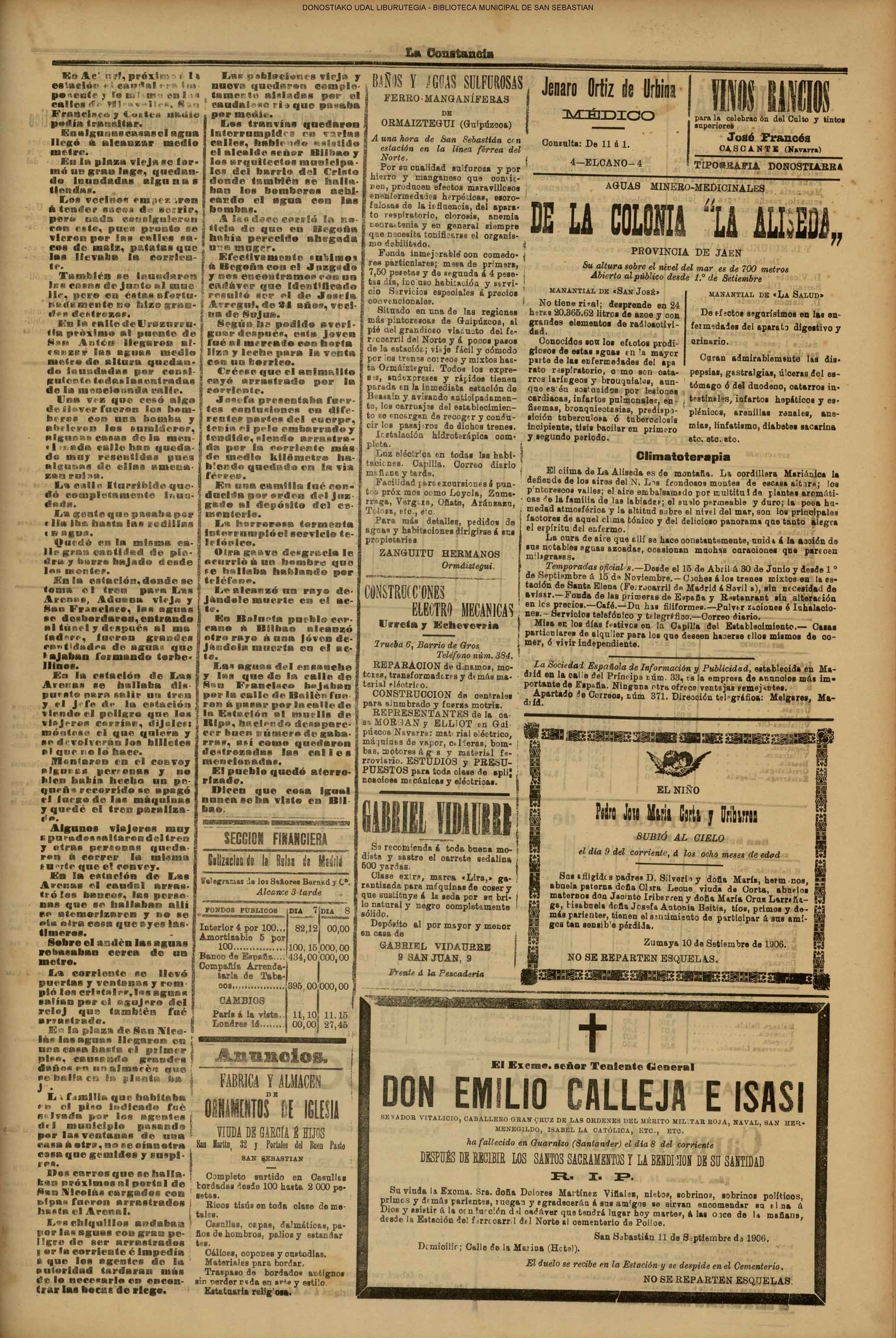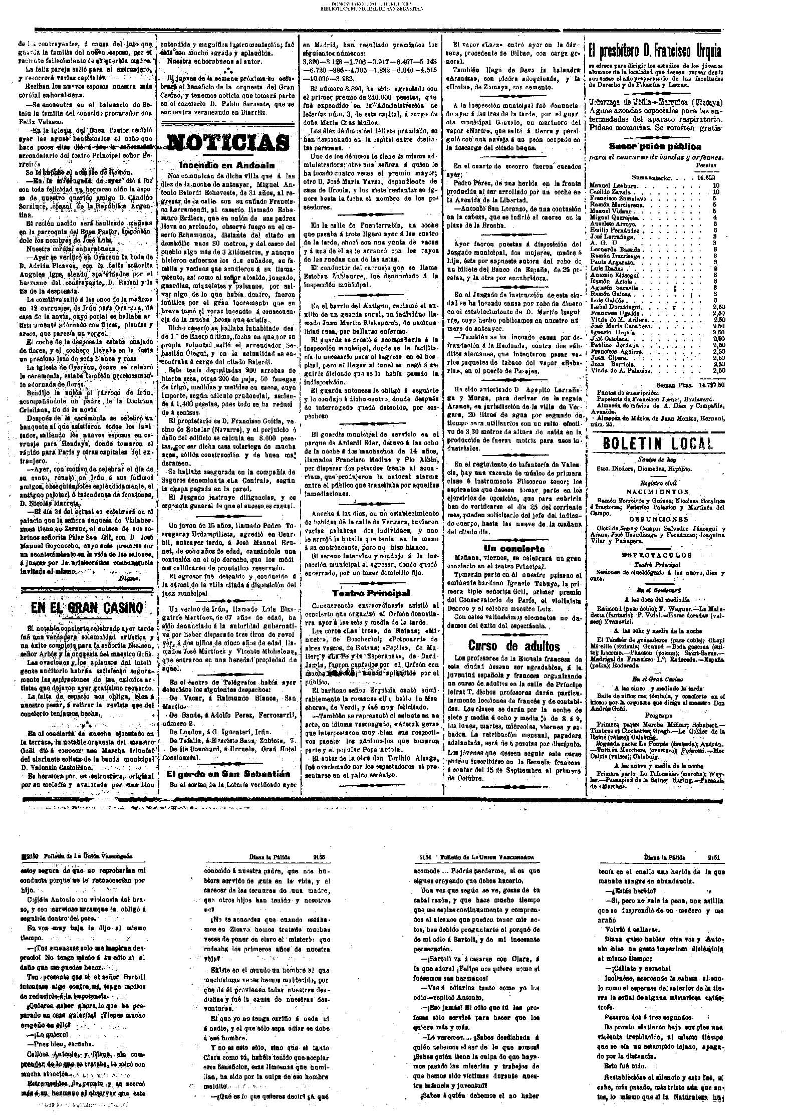 10 - septiembre![]() . | (1931) - LA VOZ DE GUIPUZCOA (CENTROS OFICIALES) (La voz de Guipuzcoa)(El Pueblo Vasco)(El Día)(La Constancia) ++++++++++++++++++++++++++++++++++++++++++++++ (1932) - LA VOZ DE GUIPUZCOA (CENTROS OFICIALES) # UN DÍA DE TRIUNFO PARA LA REPÚBLICA- El Presidente de la República, Sr. Alcalá Zamora llega a San Sebastián (La voz de Guipuzcoa/cont/cont/cont)(El Pueblo Vasco)(El Día)(La Constancia) ++++++++++++++++++++++++++++++++++++++++++++++ # EN EL PUERTO DE PASAJES, se celebró una importante asamblea para pedir la reposición o suspensión del decreto que eleva las tarifas. (La voz de Guipuzcoa)(El Pueblo Vasco)(El Día)(La Constancia) # REGATAS EN LA CONCHA # TAURINAS. CORRIDA DE LA BENEFICENCIA (La voz de Guipuzcoa)(El Pueblo Vasco)(El Día)(La Constancia) ++++++++++++++++++++++++++++++++++++++++++++++ # ATENTADO- UN CRIMEN ODIOSO.- A la noche dispararon sus pistolas unos individuos contra el ex director general de Seguridad don Manuel Andrés (La voz de Guipuzcoa/cont)(El Pueblo Vasco)(El Día)(La Constancia) ++++++++++++++++++++++++++++++++++++++++++++++ (1935) - LA VOZ DE GUIPUZCOA (CENTROS OFICIALES : La Comisión Gestora municipal, por medio de un representante, expresó su pésame a don Pío Baroja, por el fallecimiento de su madre) # ANIVERSARIO DE LA MUERTE DE MANUEL ANDRÉS - Fue conmemorado el aniversario del acontecimiento luctuoso con un solemne silencio de recuerdo y de homenaje republicano (La voz de Guipuzcoa)(El Pueblo Vasco)(El Día)(La Constancia) # EN LA CASA CONSISTORIAL . .- A cuenta de las obras de desmonte y relleno en Amara entablose nuevo debate en la reunión que celebró la Gestora, acordándose que el informe quede para más amplio estudio. (La voz de Guipuzcoa)(El Pueblo Vasco)(El Día)(La Constancia) |