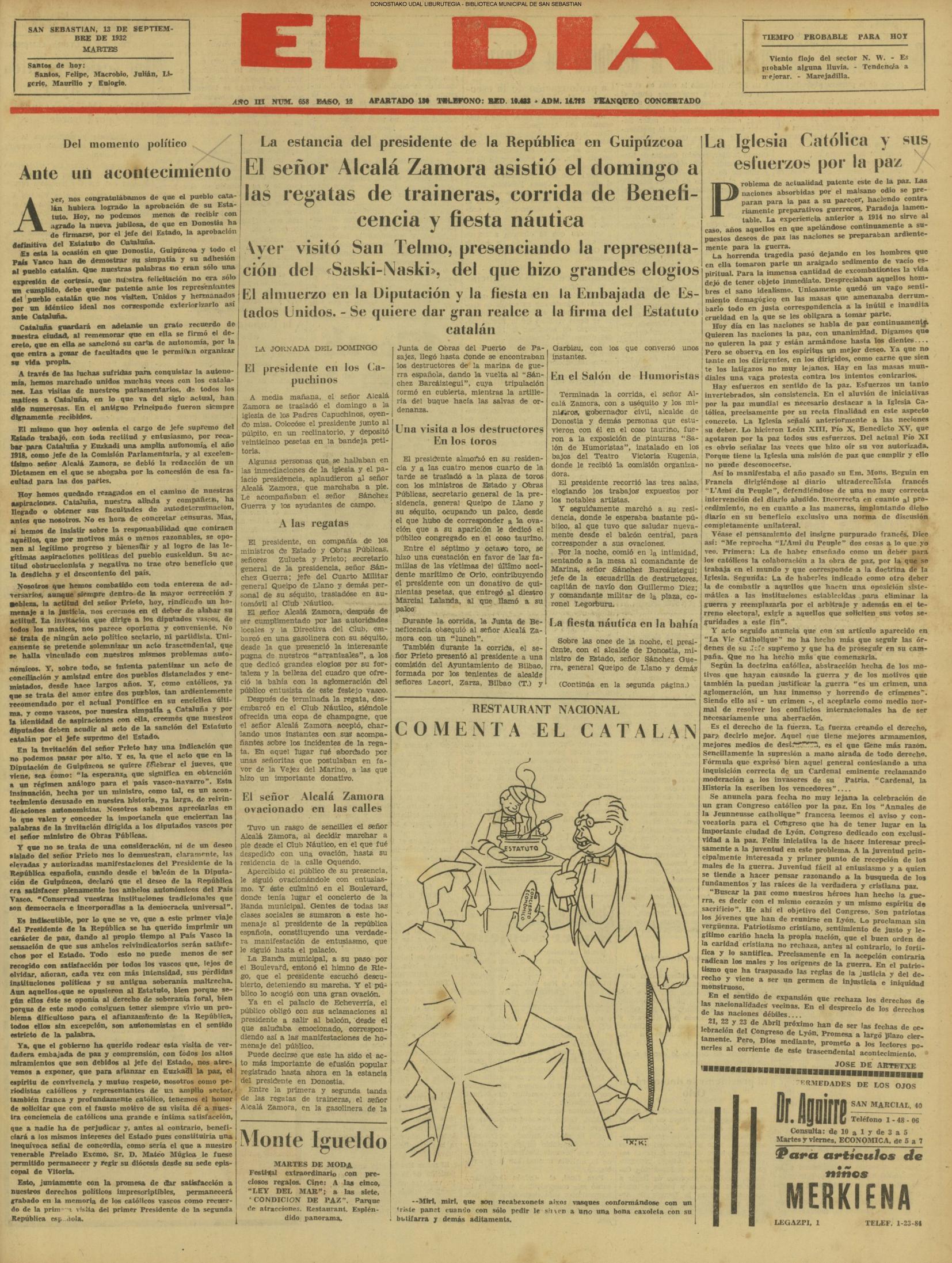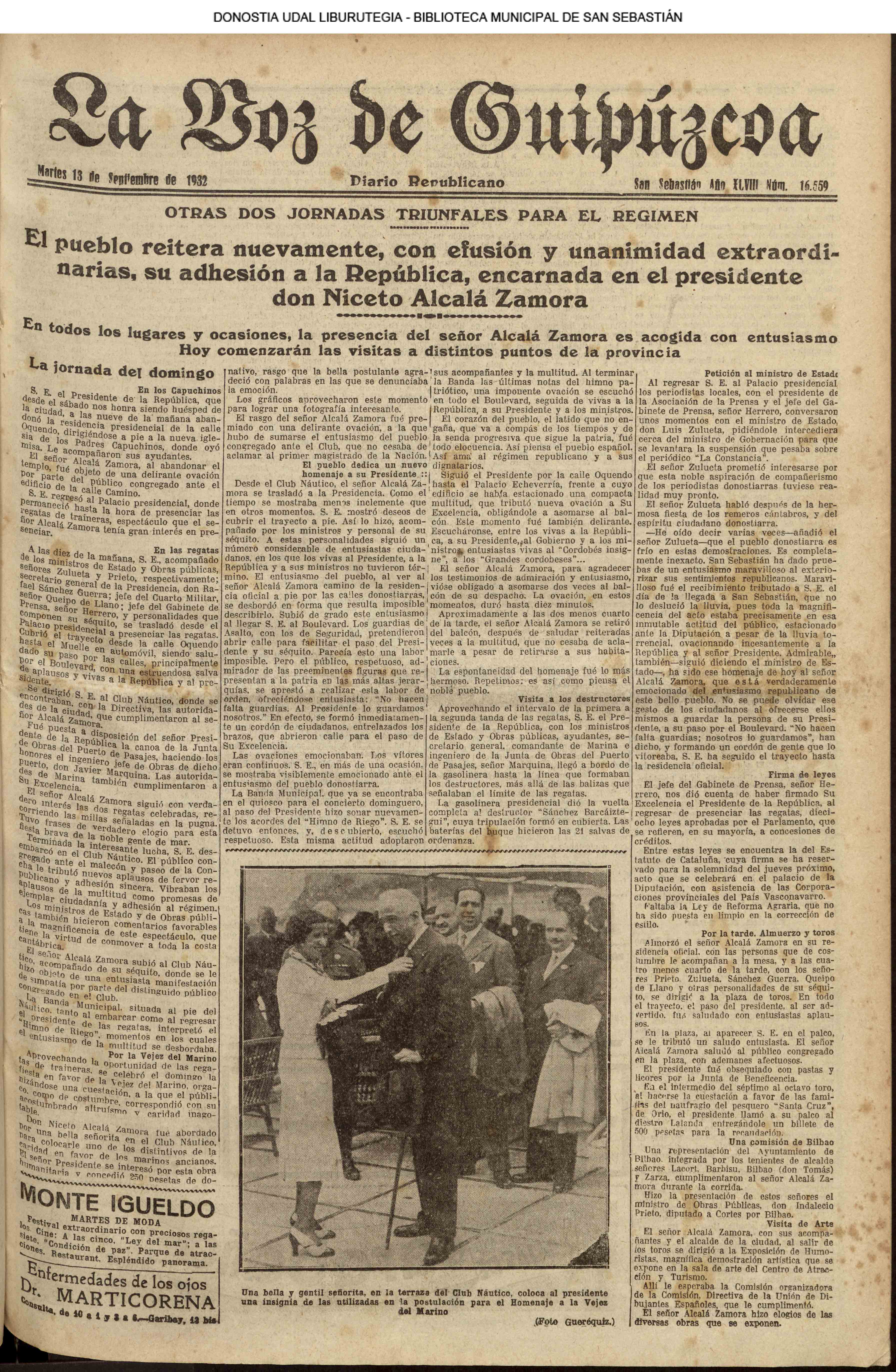 (La Voz de Guipúzcoa)(El Pueblo Vasco)(El Día)(La Constancia) (La voz de Guipuzcoa)(El Pueblo Vasco)(El Día)(La Constancia) ++++++++++++++++++++++++++++++++++++++++++++++ (1932) - LA VOZ DE GUIPUZCOA (CENTROS OFICIALES) LA ESTANCIA DEL PRESIDENTE DE LA REPÚBLICA